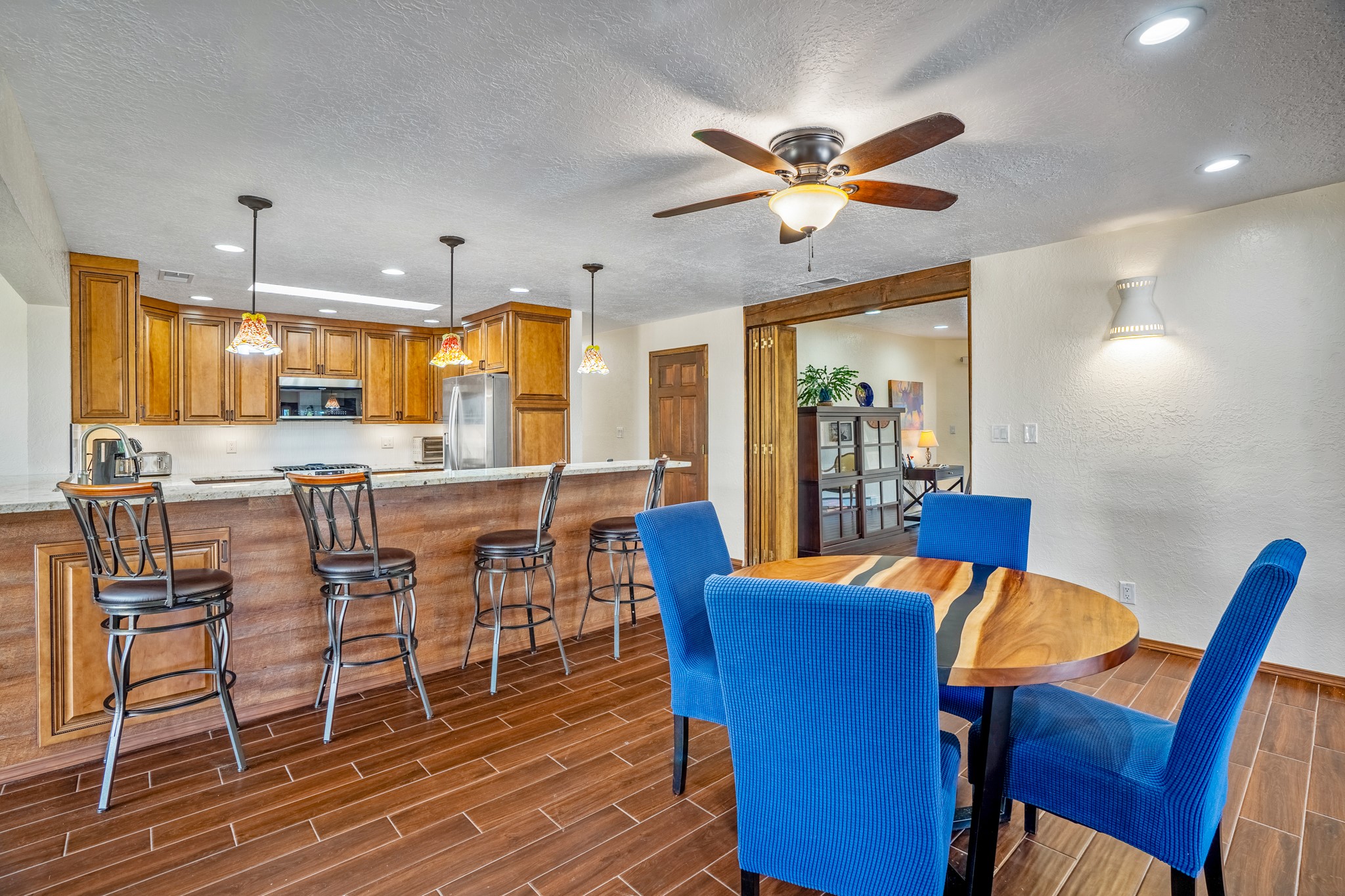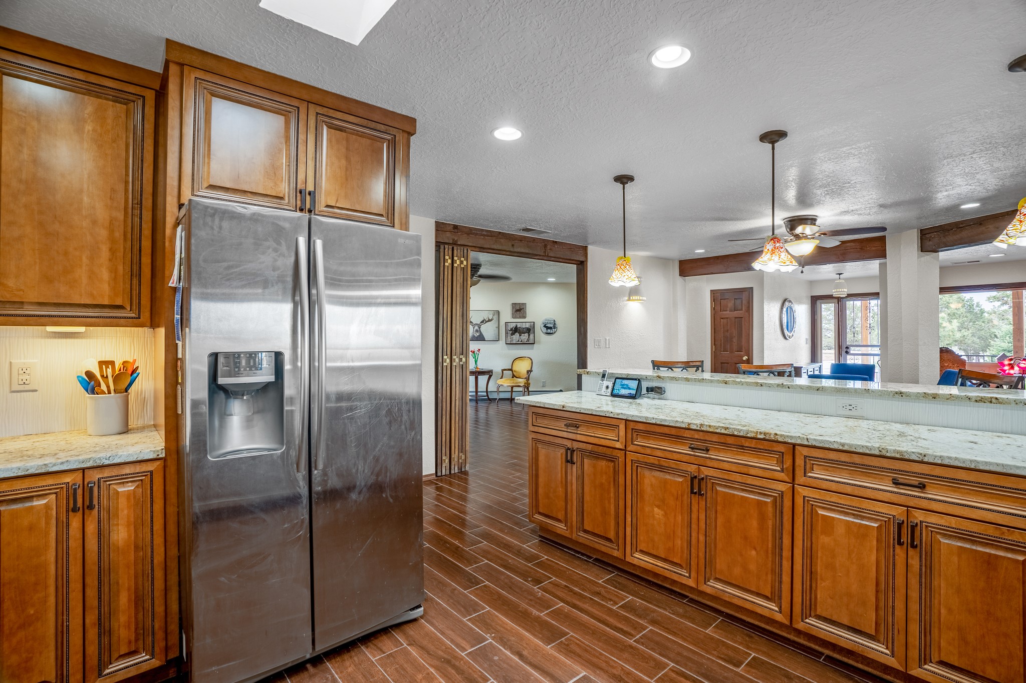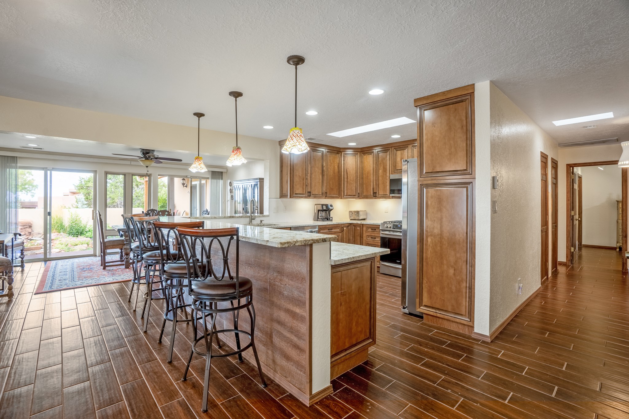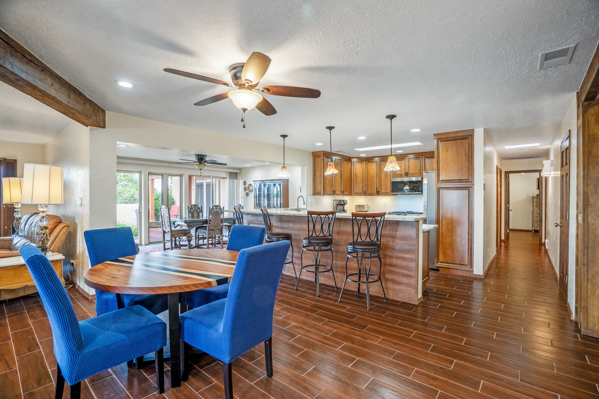 This diverse floor plan is perfect if you like to entertain, have a large family or work at home. Active solar system is approx. 3 years old! The kitchen was remodeled about 5 years ago and features stone counters, a large pantry and newer appliances. The primary bedroom was extended and now has a fireplace, room for a sitting area and you be amazed at the size of the primary closet. The primary bathroom was also totally remodeled, and you will feel like you are at a luxury spa! Two living/ public areas including the living room at the front of the home and the den to the side of the kitchen. The den space would also make a wonderful formal dining area. A lot of thought was put into the remodel of the kitchen, primary bedroom, utility room which has marvelous storage. No lack of storage here. Do you cherish your privacy while working at home? You will absolutely love the "hidden" office feature. Fabulous circular driveway with an island of mature trees in the middle. No need to worry about the maintenance of your driveway! Three car garage with a separate storage area! Intimate garden and yard space off the kitchen. The current den has a portal and fenced yard space with views of the foothills to the east. Whole house water softener and 2 separate whole house air conditioning units.