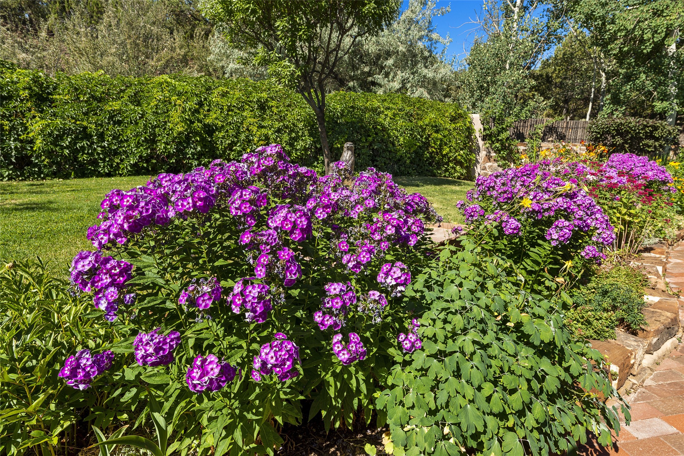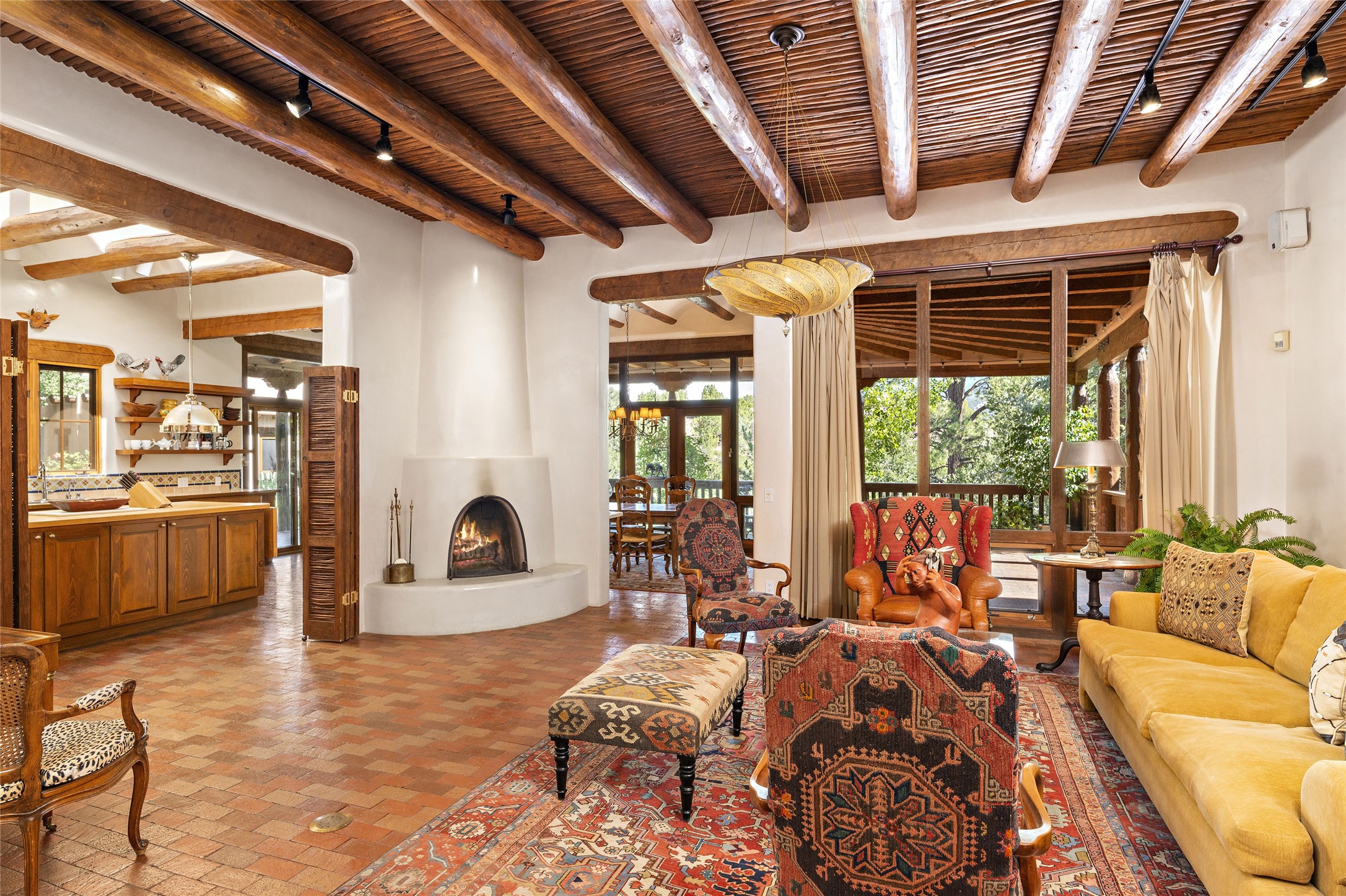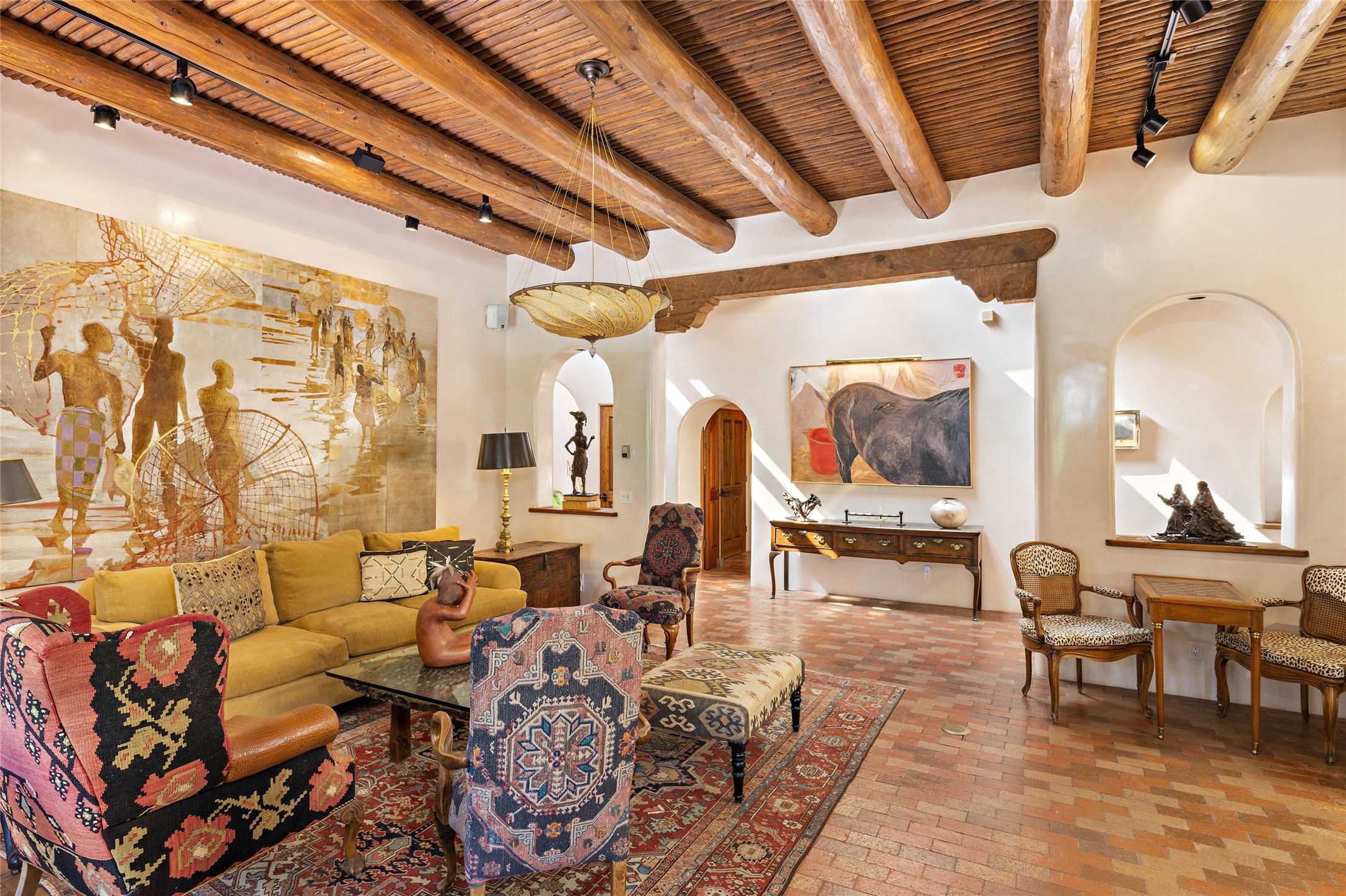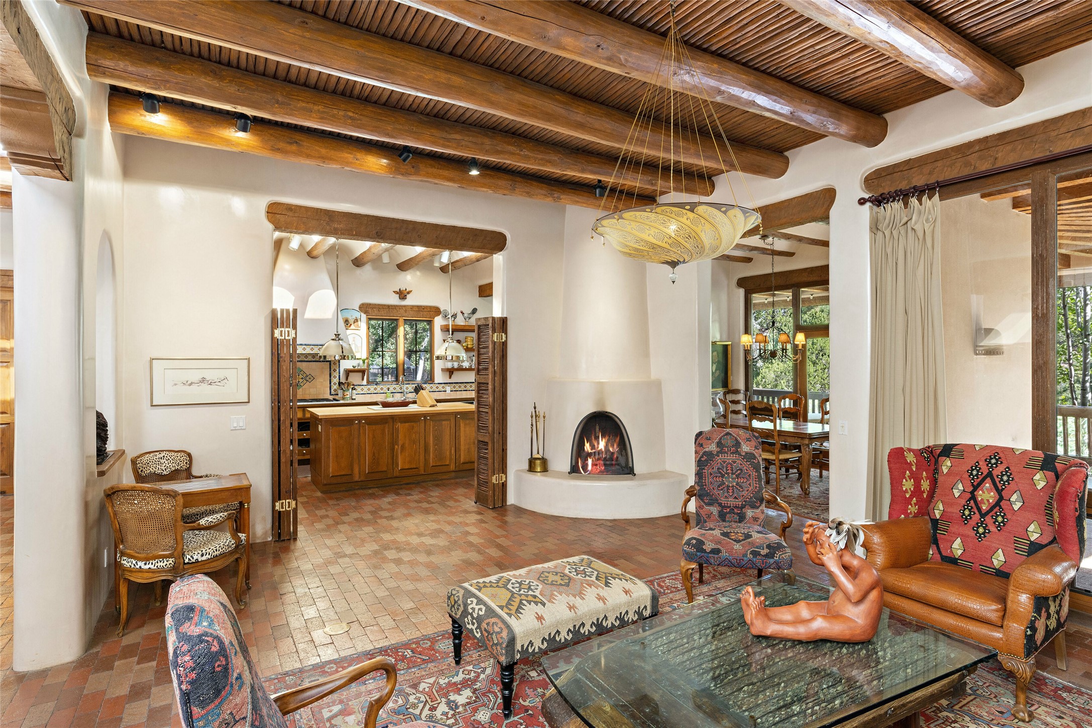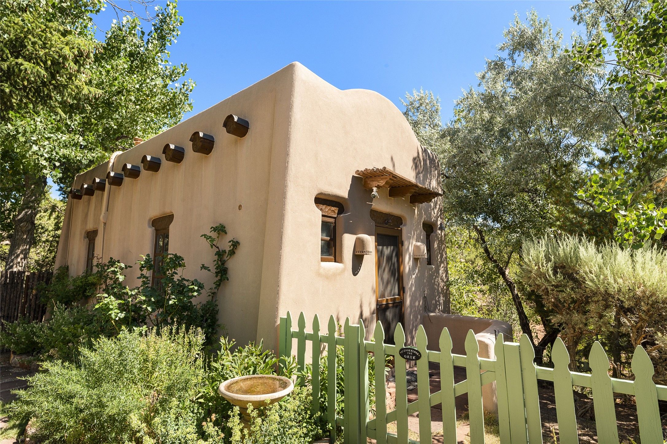 This beautiful 3 acre compound, set back off Bishops Lodge Rd, with views of the Sangre de Cristos features a 3 bedroom, 2.5 bathroom main house, a detached casita and a studio. Gorgeous gardens and gracious portals allow for multiple outdoor living areas. Privacy and serenity, just 3 miles from the plaza, this home is an entertainers dream.