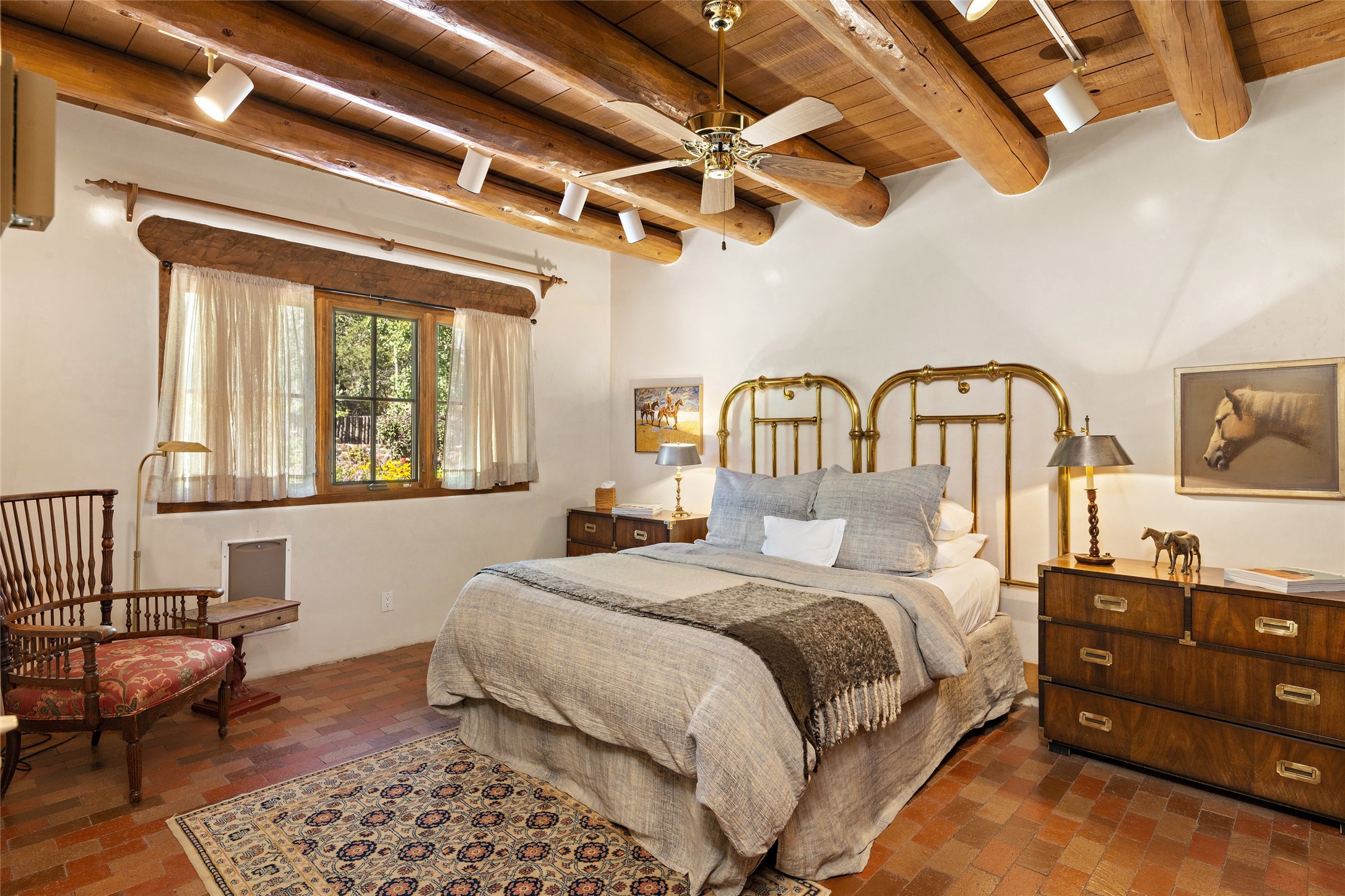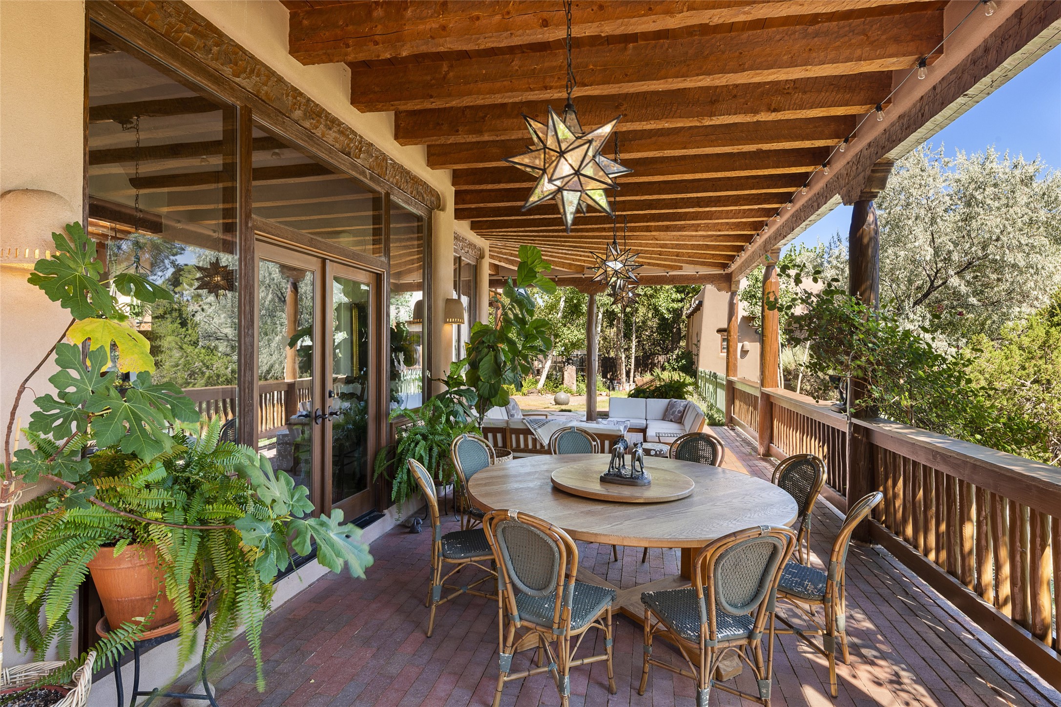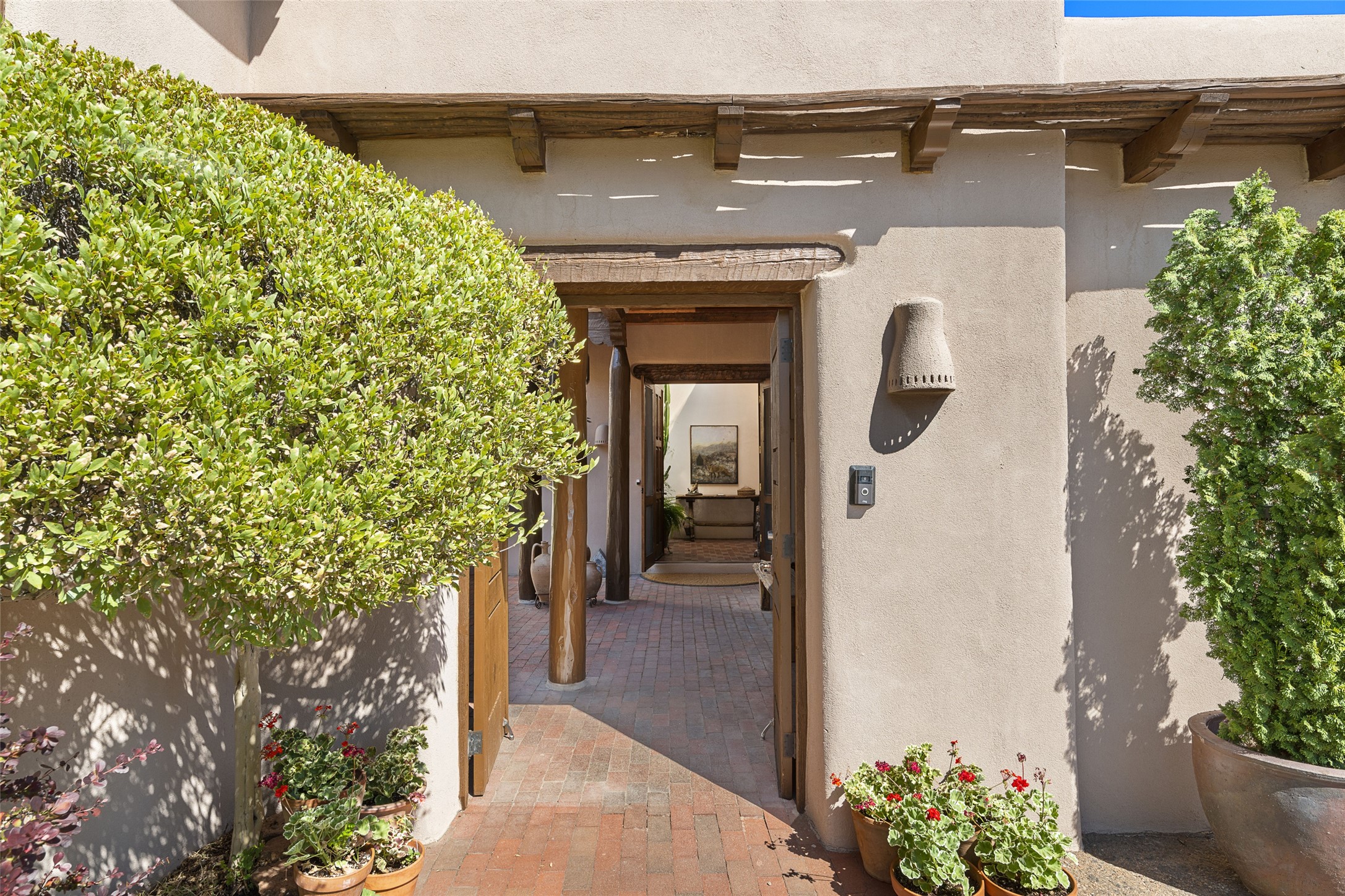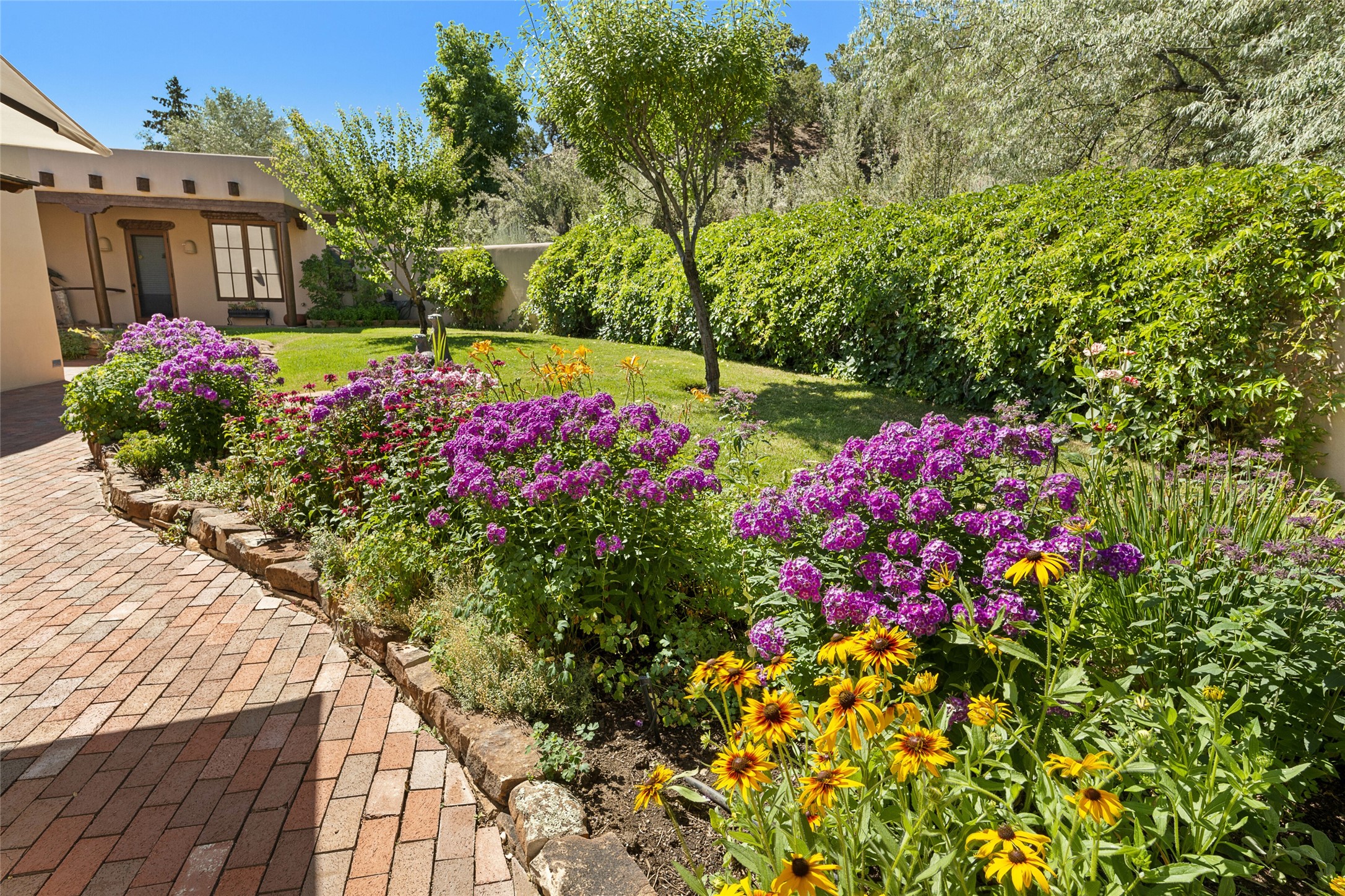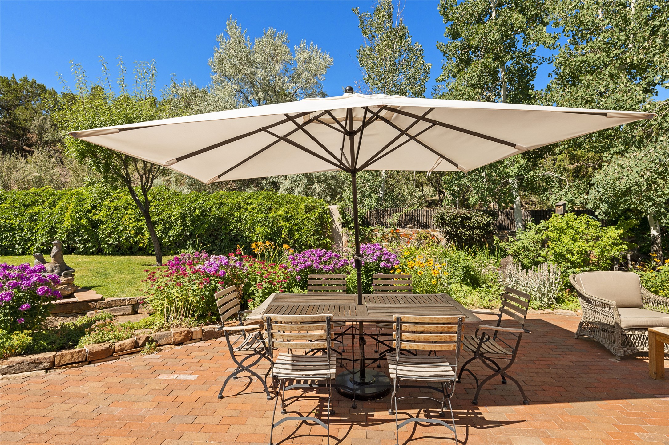 This beautiful 3 acre compound, set back off Bishops Lodge Rd, with views of the Sangre de Cristos features a 3 bedroom, 2.5 bathroom main house, a detached casita and a studio. Gorgeous gardens and gracious portals allow for multiple outdoor living areas. Privacy and serenity, just 3 miles from the plaza, this home is an entertainers dream.