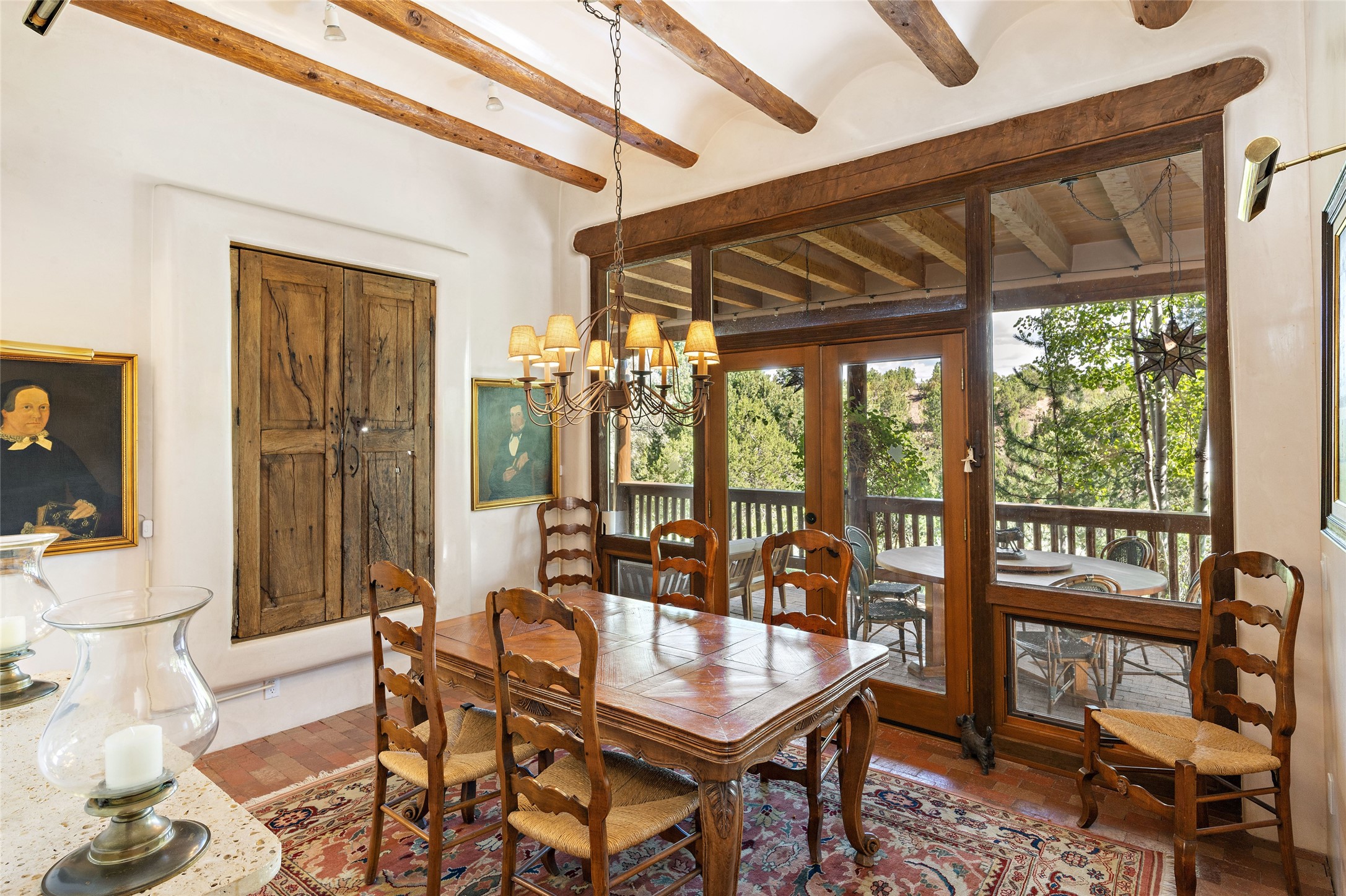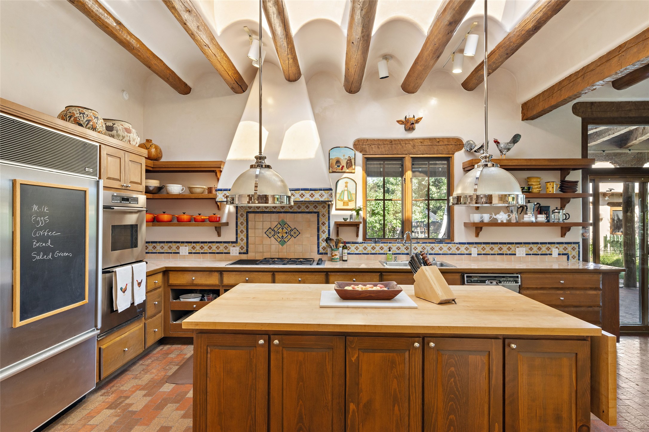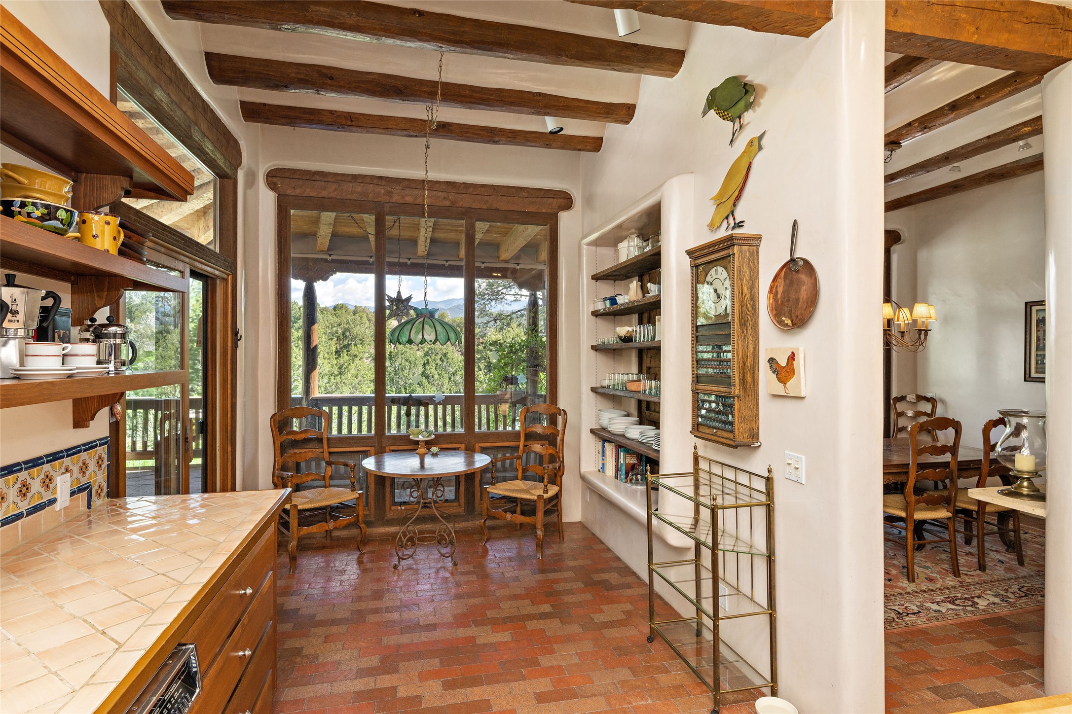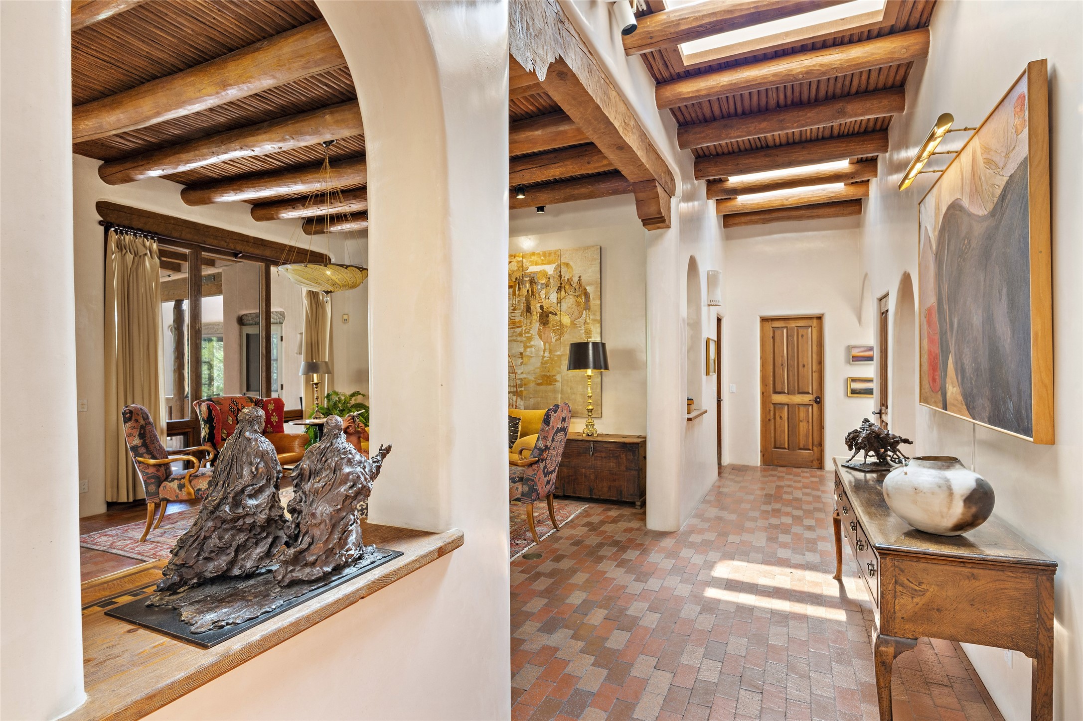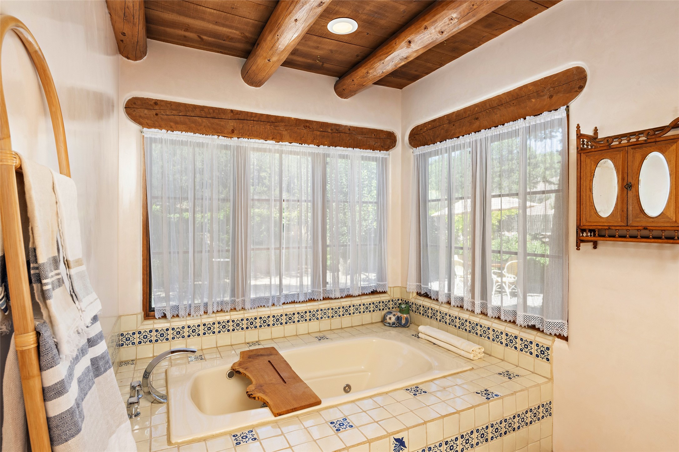 This beautiful 3 acre compound, set back off Bishops Lodge Rd, with views of the Sangre de Cristos features a 3 bedroom, 2.5 bathroom main house, a detached casita and a studio. Gorgeous gardens and gracious portals allow for multiple outdoor living areas. Privacy and serenity, just 3 miles from the plaza, this home is an entertainers dream.