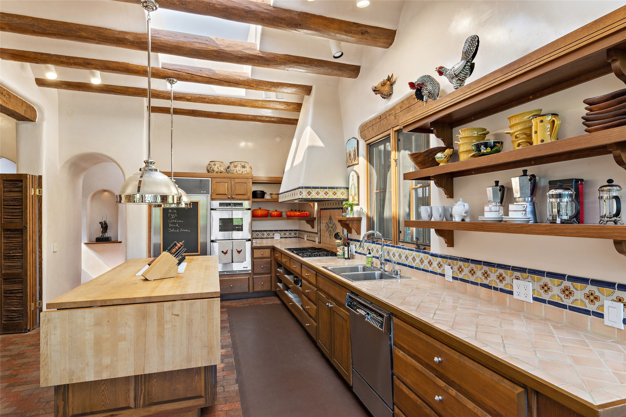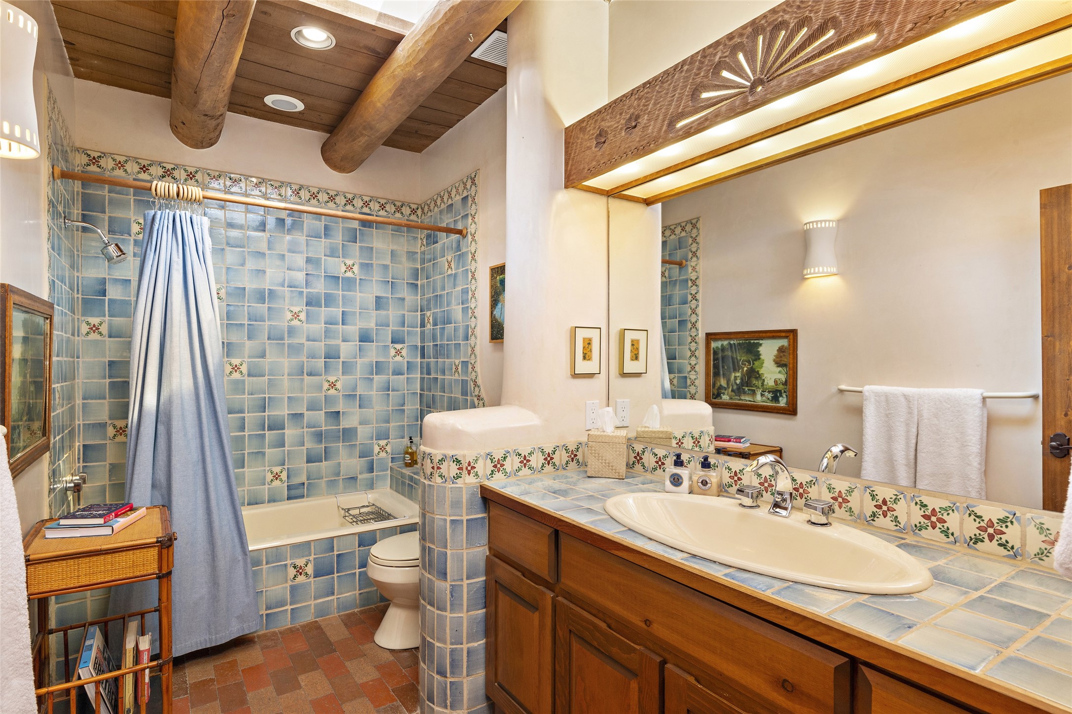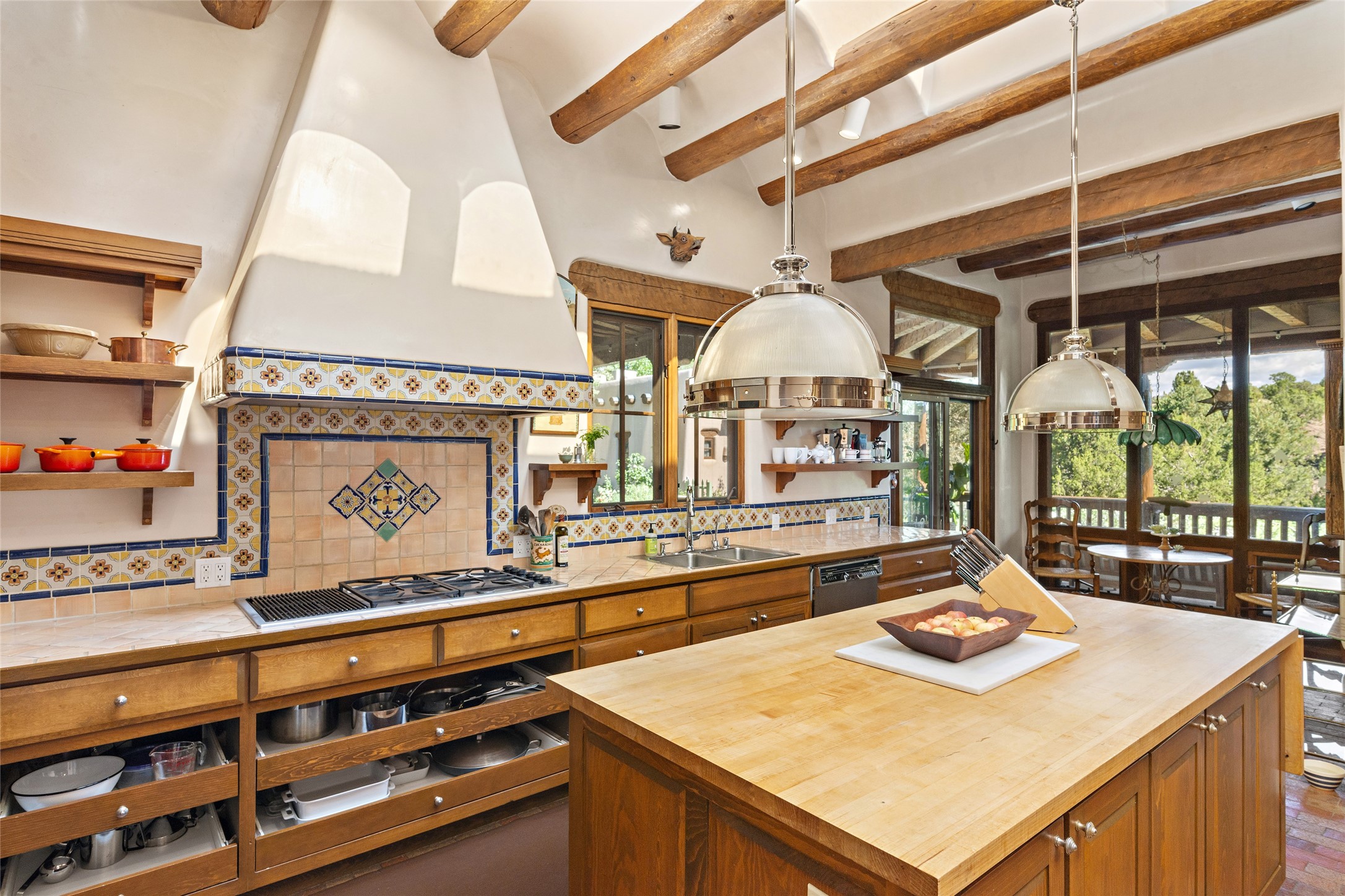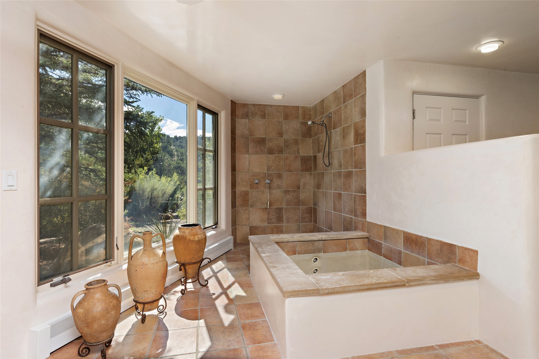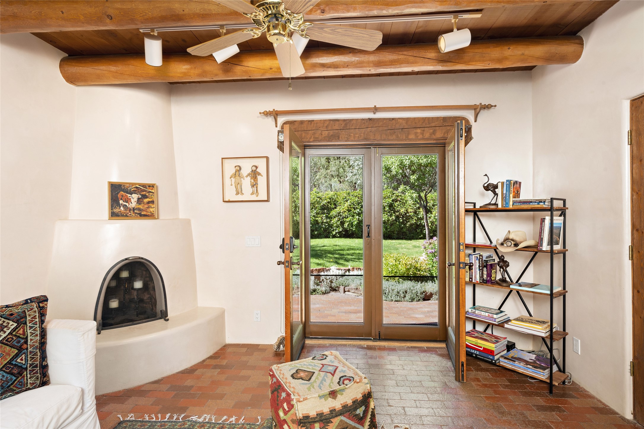 This beautiful 3 acre compound, set back off Bishops Lodge Rd, with views of the Sangre de Cristos features a 3 bedroom, 2.5 bathroom main house, a detached casita and a studio. Gorgeous gardens and gracious portals allow for multiple outdoor living areas. Privacy and serenity, just 3 miles from the plaza, this home is an entertainers dream.