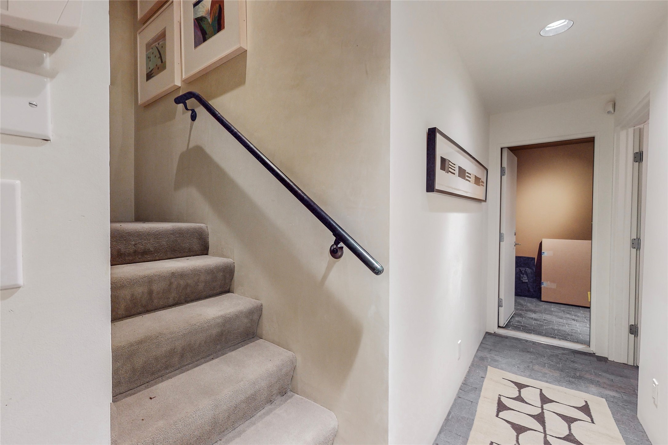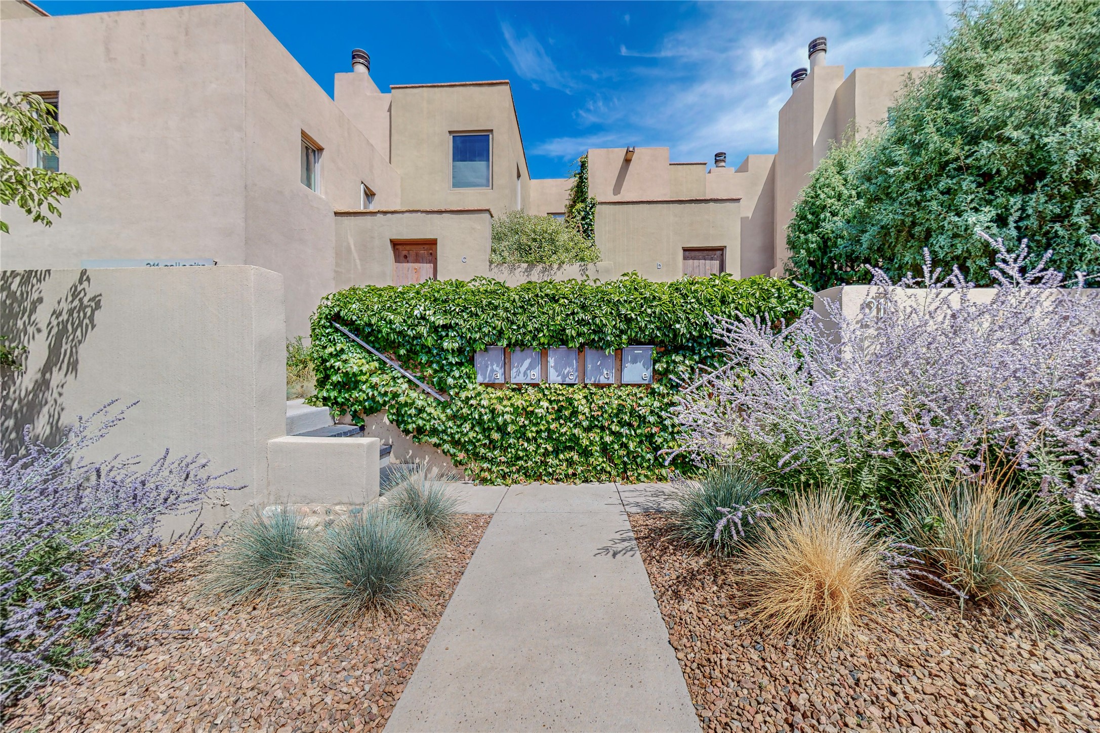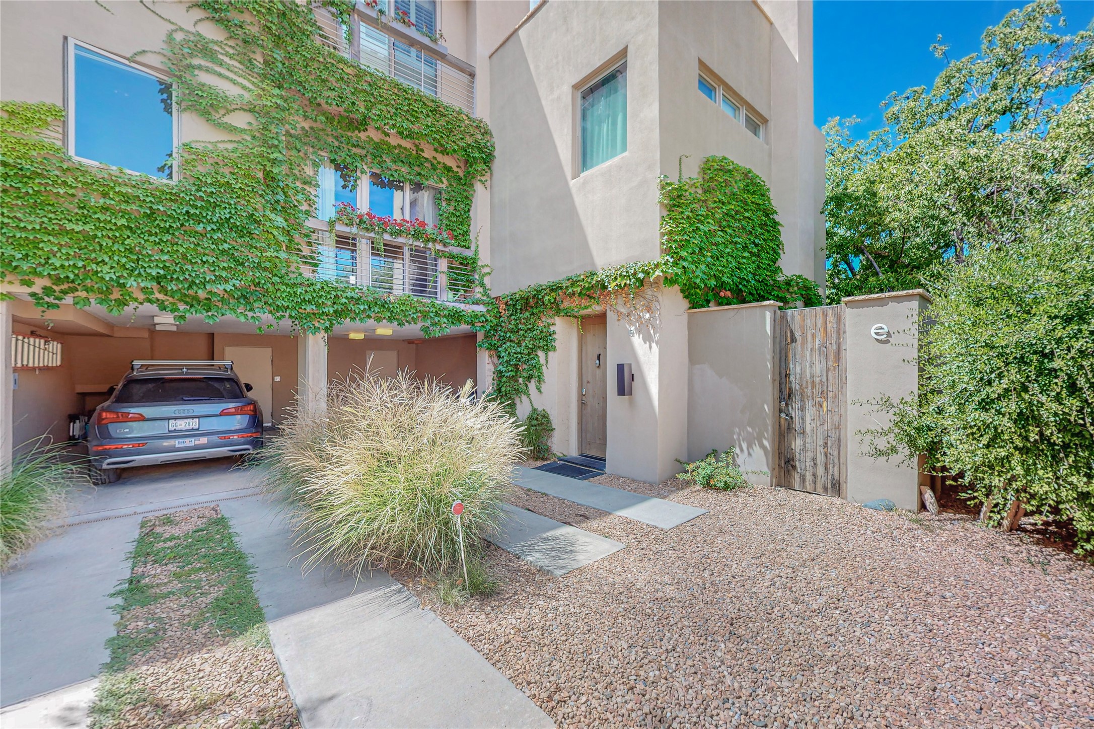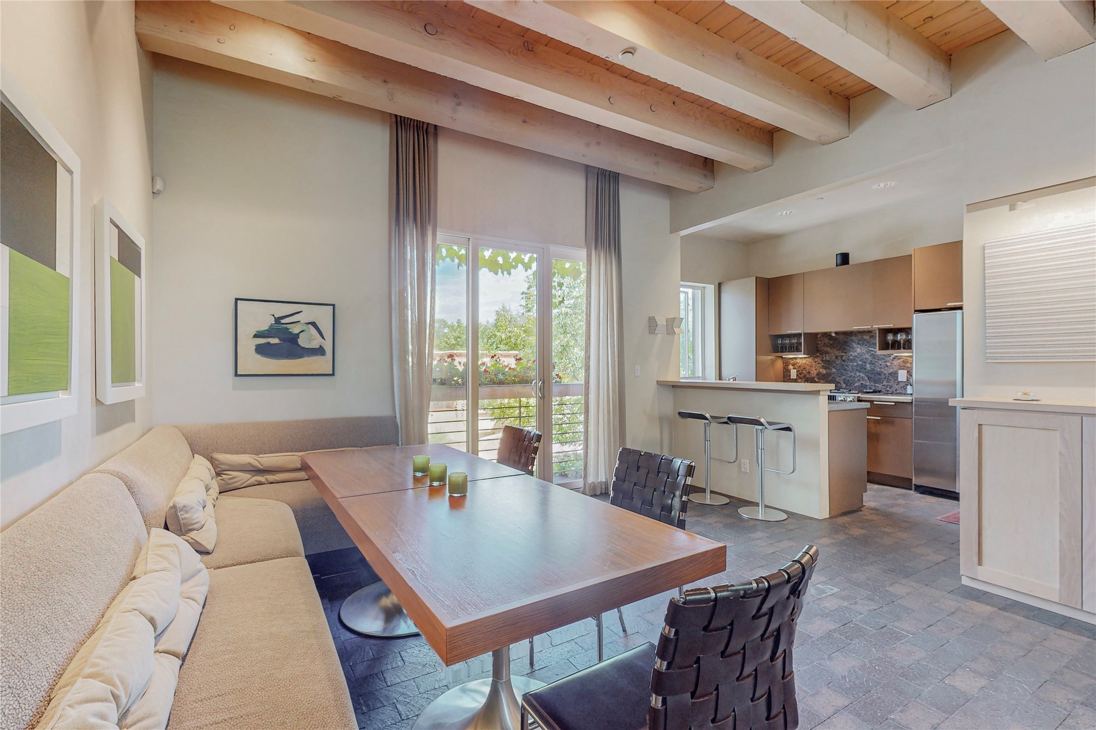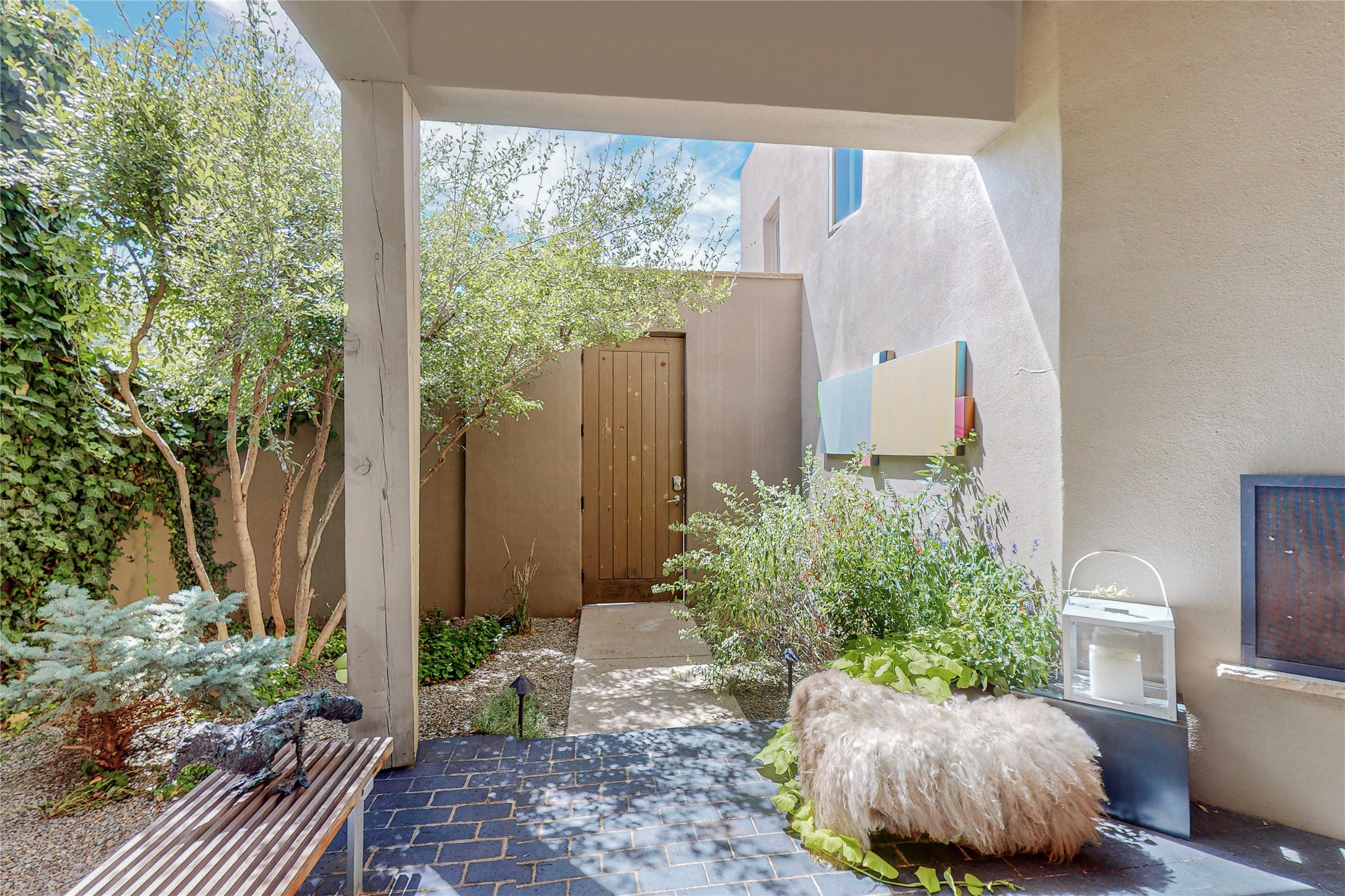 A rare opportunity to purchase the largest unit in Callecita Place, a contemporary designed community by noted local architect Trey Jordan of just 5 residences. This one-owner unit with 3 levels has a generous layout and wall space that is an art-lovers dream! Two bedrooms, each with ensuite bathrooms. A den area upstairs makes the perfect workspace. Mountain views from the primary bedroom! Open concept living and dining on the main level complete with a powder room. High-end finishes throughout. The lower level offers you a mud room and very large storage room. The private gated courtyard professionally landscaped offers an elegant entrance into the property. Two off street parking spaces, one covered. A perfect lock and leave residence with ideal proximity to The Plaza, Ft. Marcy Park and Recreation Center.