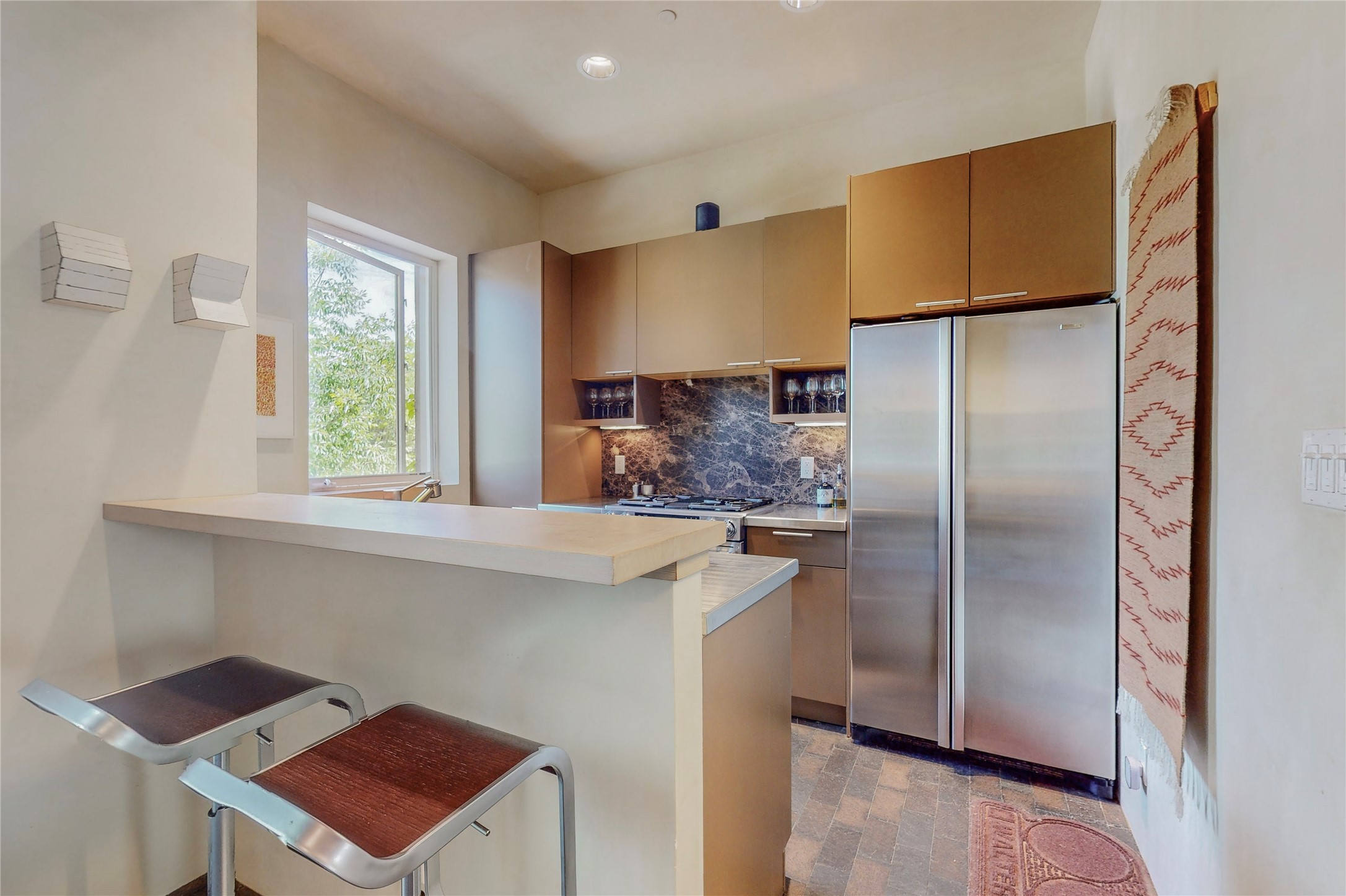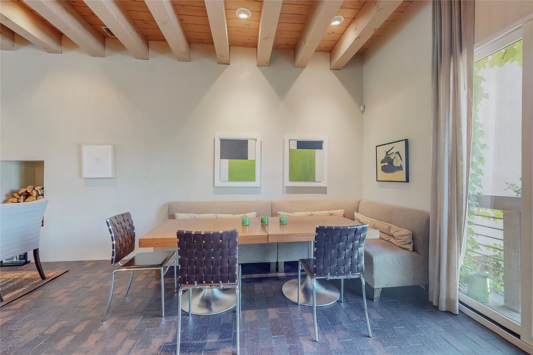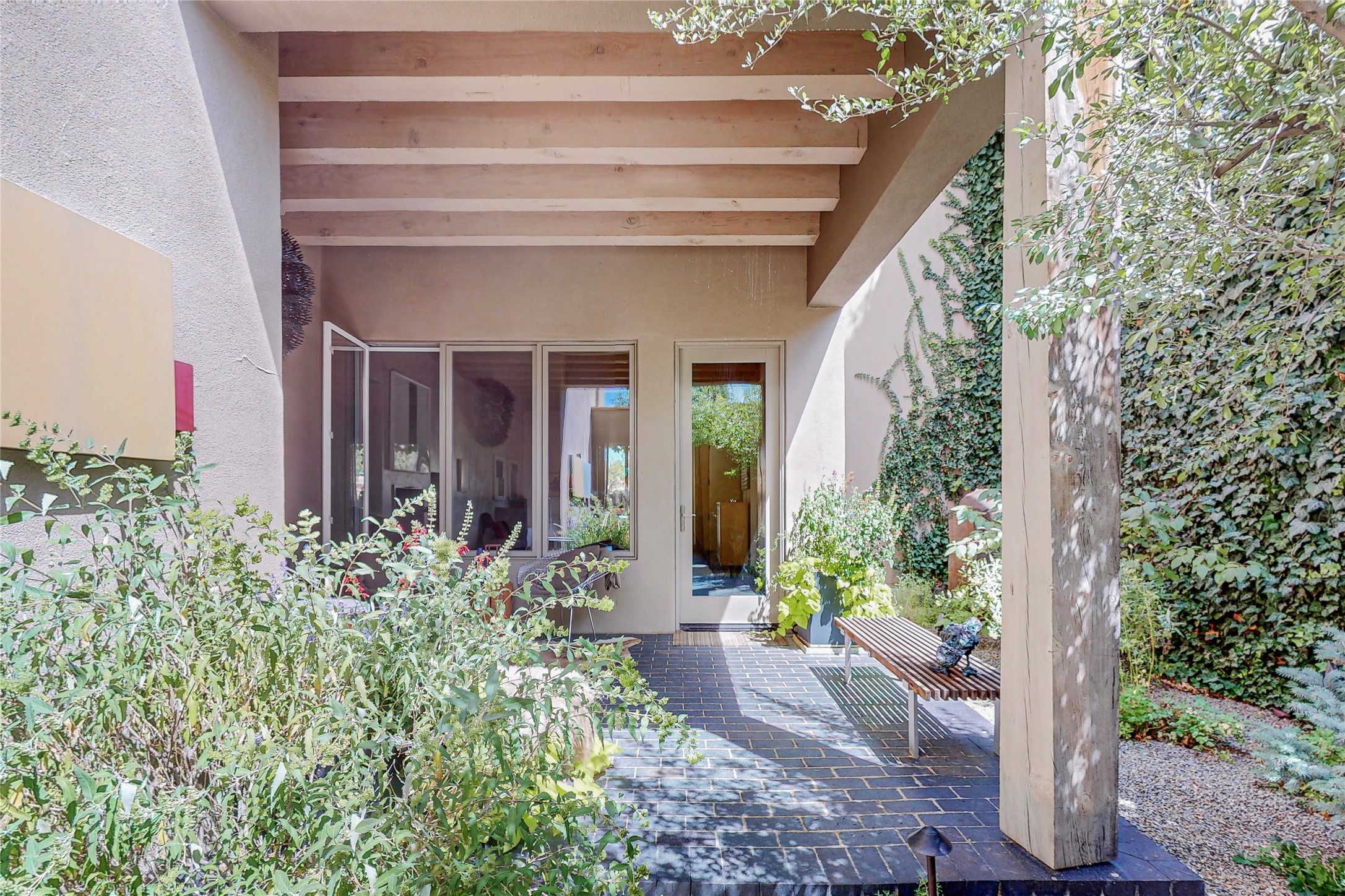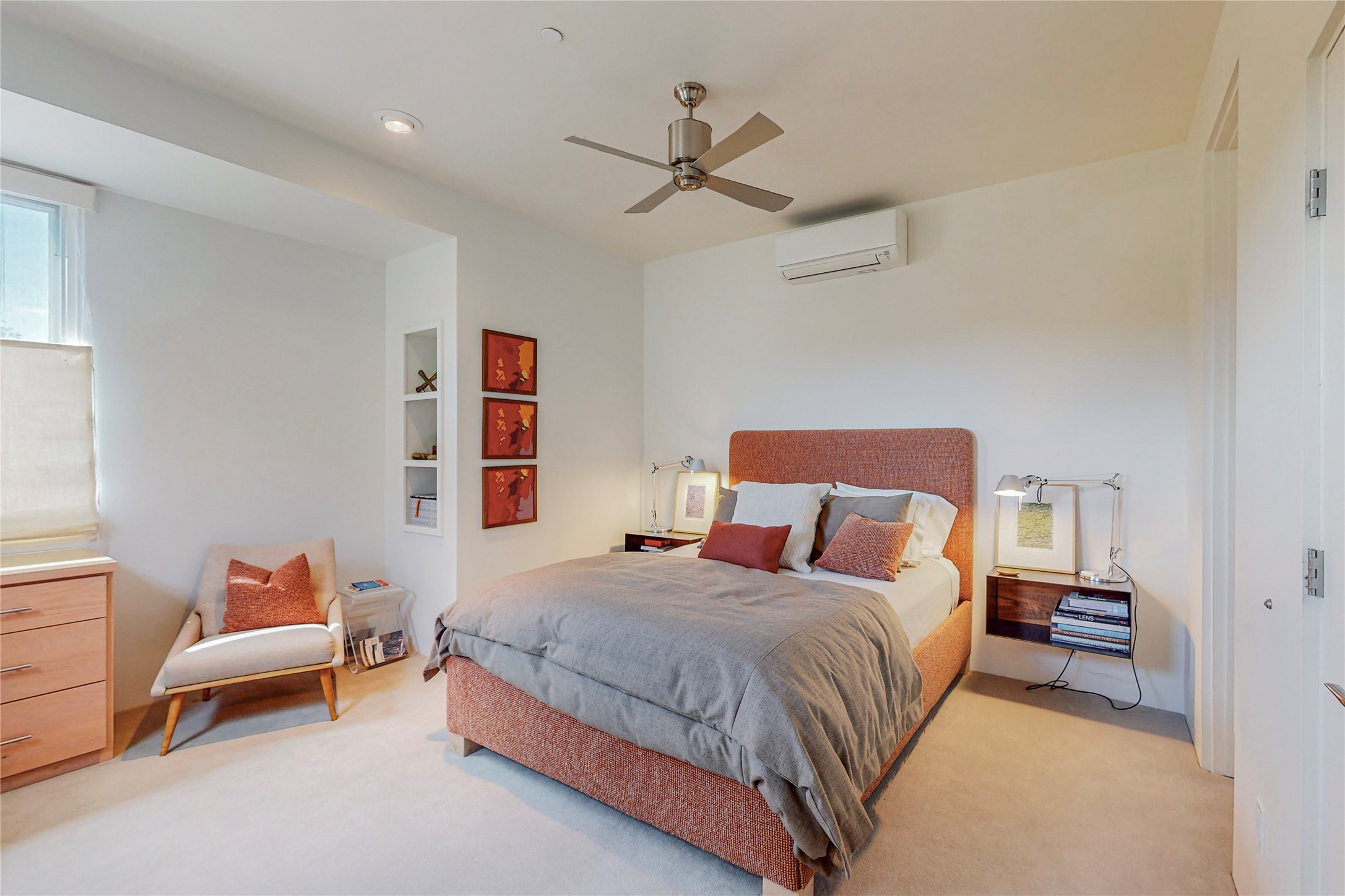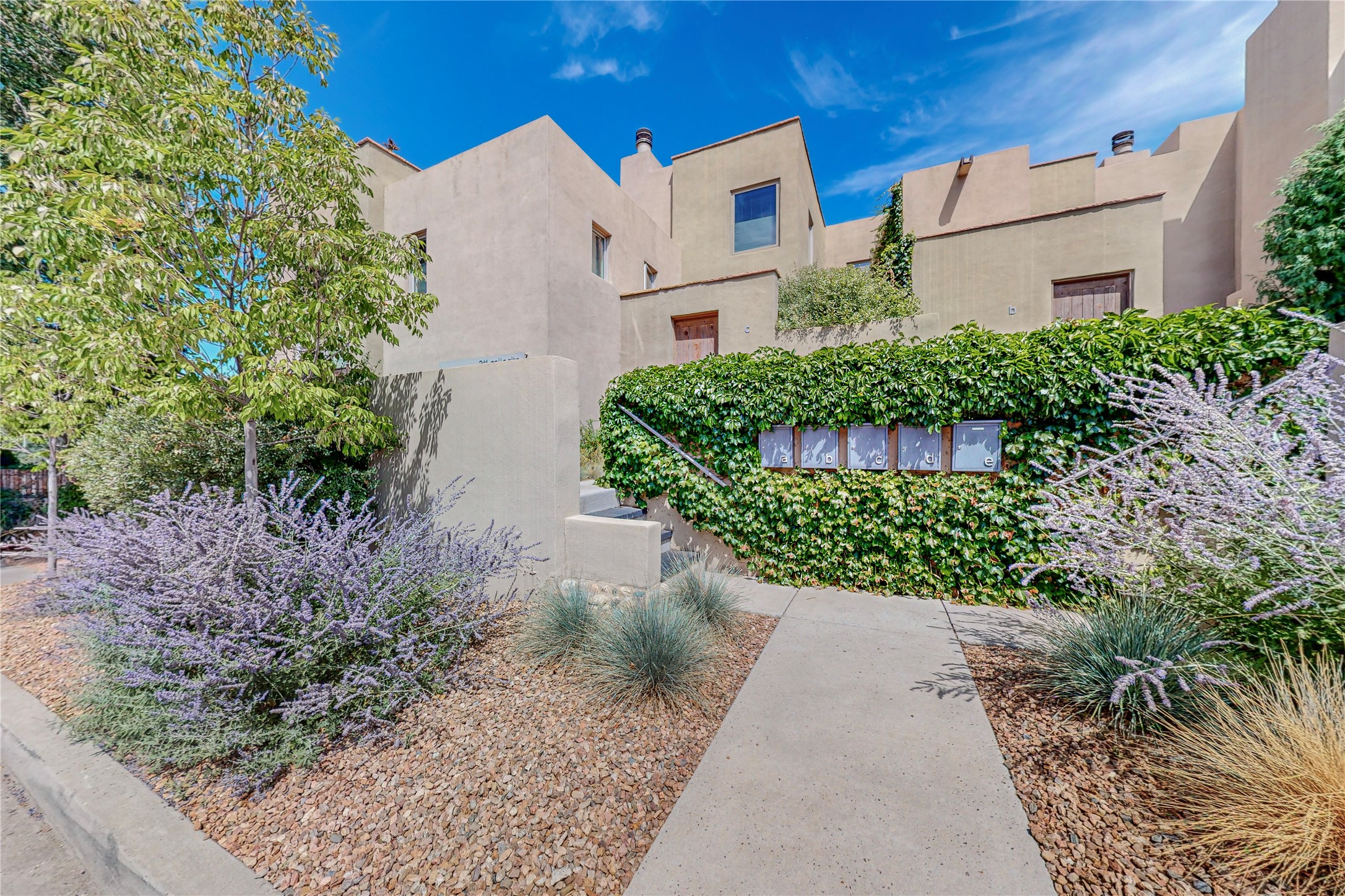 A rare opportunity to purchase the largest unit in Callecita Place, a contemporary designed community by noted local architect Trey Jordan of just 5 residences. This one-owner unit with 3 levels has a generous layout and wall space that is an art-lovers dream! Two bedrooms, each with ensuite bathrooms. A den area upstairs makes the perfect workspace. Mountain views from the primary bedroom! Open concept living and dining on the main level complete with a powder room. High-end finishes throughout. The lower level offers you a mud room and very large storage room. The private gated courtyard professionally landscaped offers an elegant entrance into the property. Two off street parking spaces, one covered. A perfect lock and leave residence with ideal proximity to The Plaza, Ft. Marcy Park and Recreation Center.