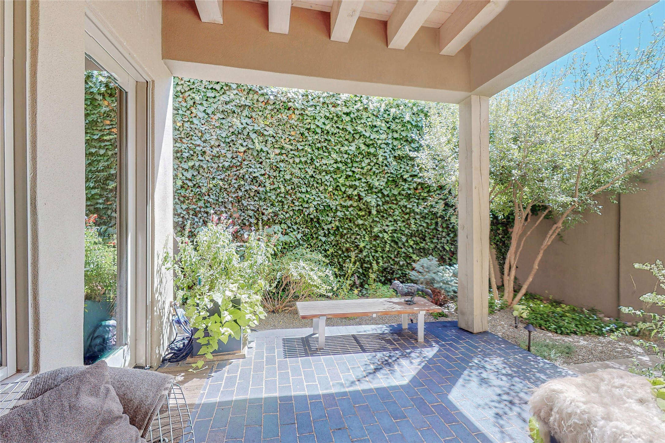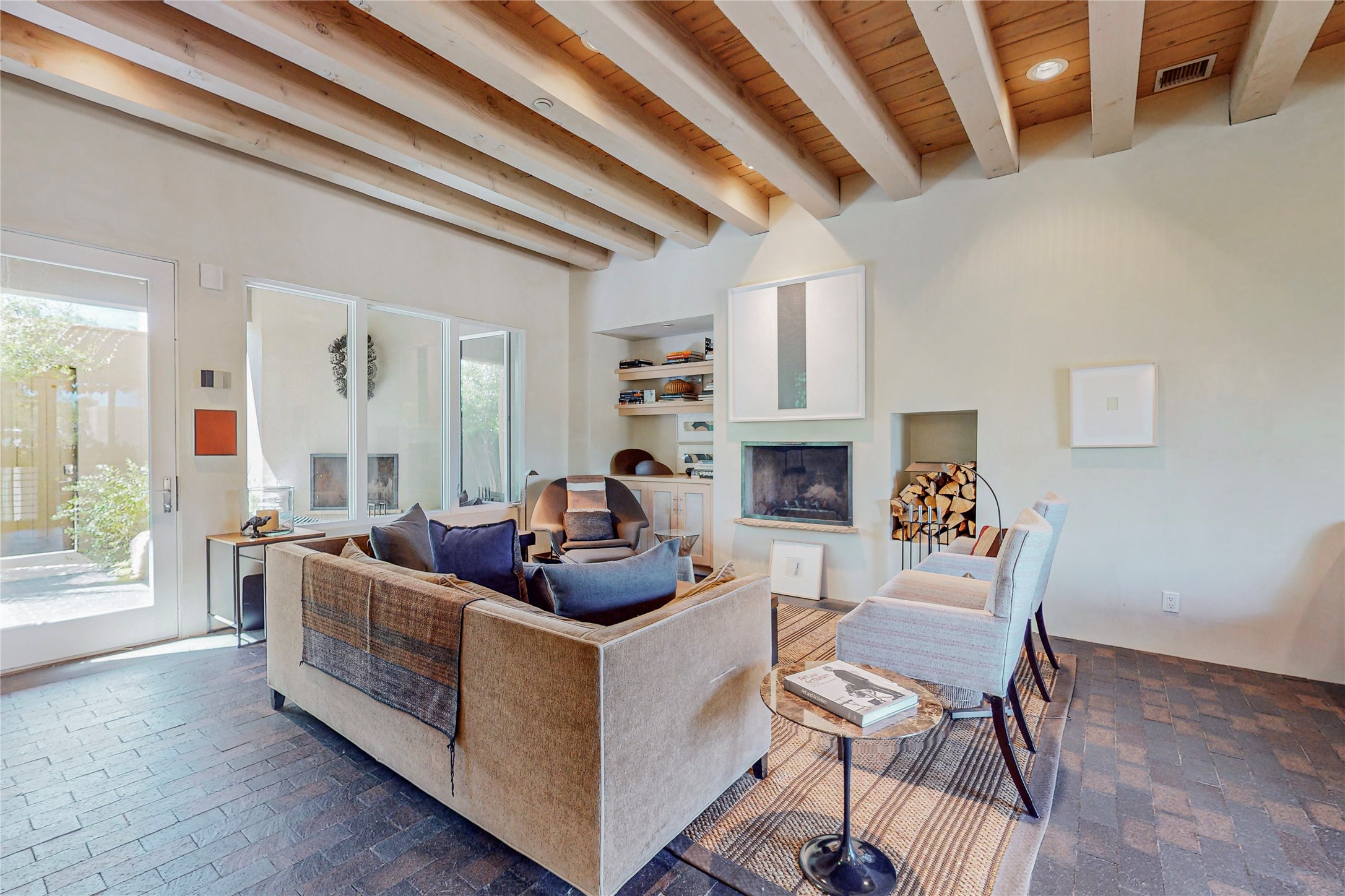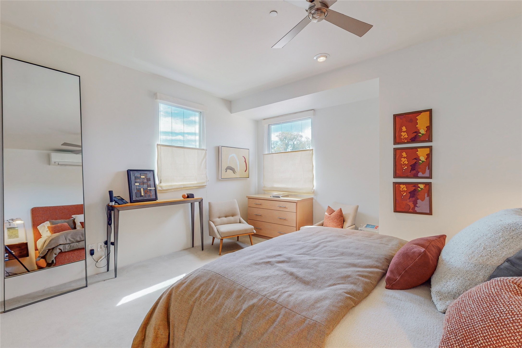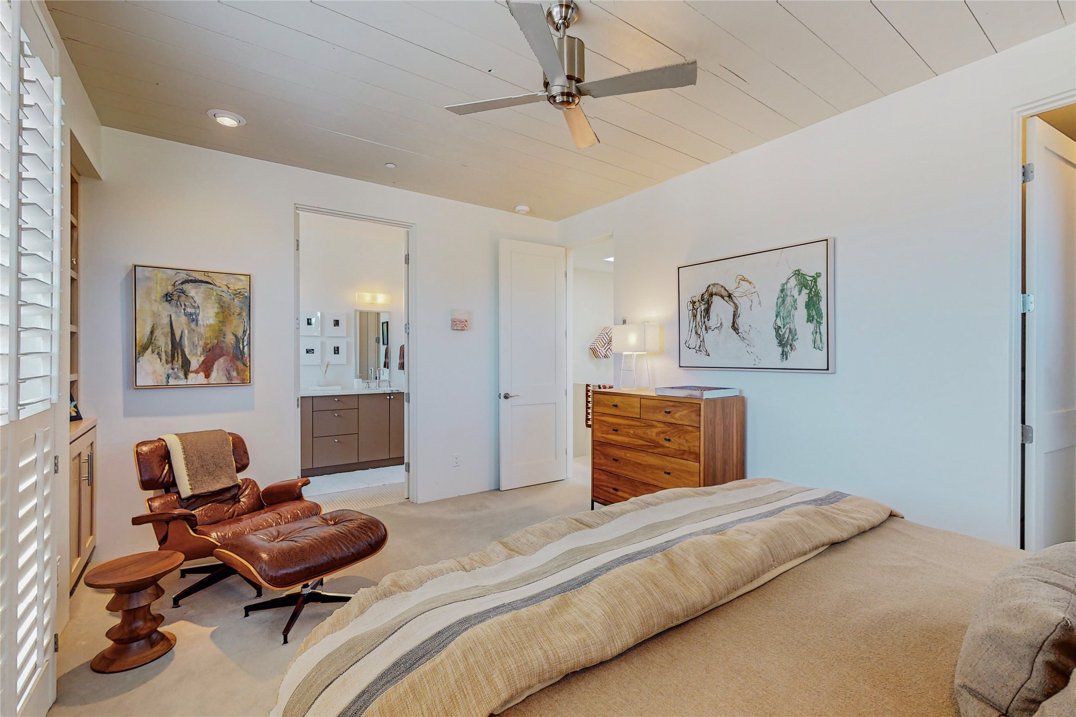 A rare opportunity to purchase the largest unit in Callecita Place, a contemporary designed community by noted local architect Trey Jordan of just 5 residences. This one-owner unit with 3 levels has a generous layout and wall space that is an art-lovers dream! Two bedrooms, each with ensuite bathrooms. A den area upstairs makes the perfect workspace. Mountain views from the primary bedroom! Open concept living and dining on the main level complete with a powder room. High-end finishes throughout. The lower level offers you a mud room and very large storage room. The private gated courtyard professionally landscaped offers an elegant entrance into the property. Two off street parking spaces, one covered. A perfect lock and leave residence with ideal proximity to The Plaza, Ft. Marcy Park and Recreation Center.