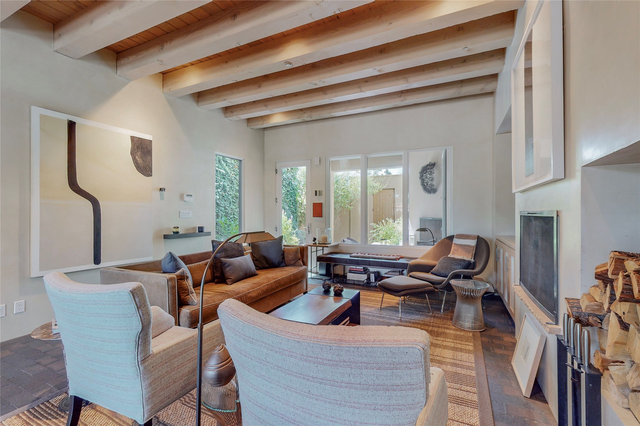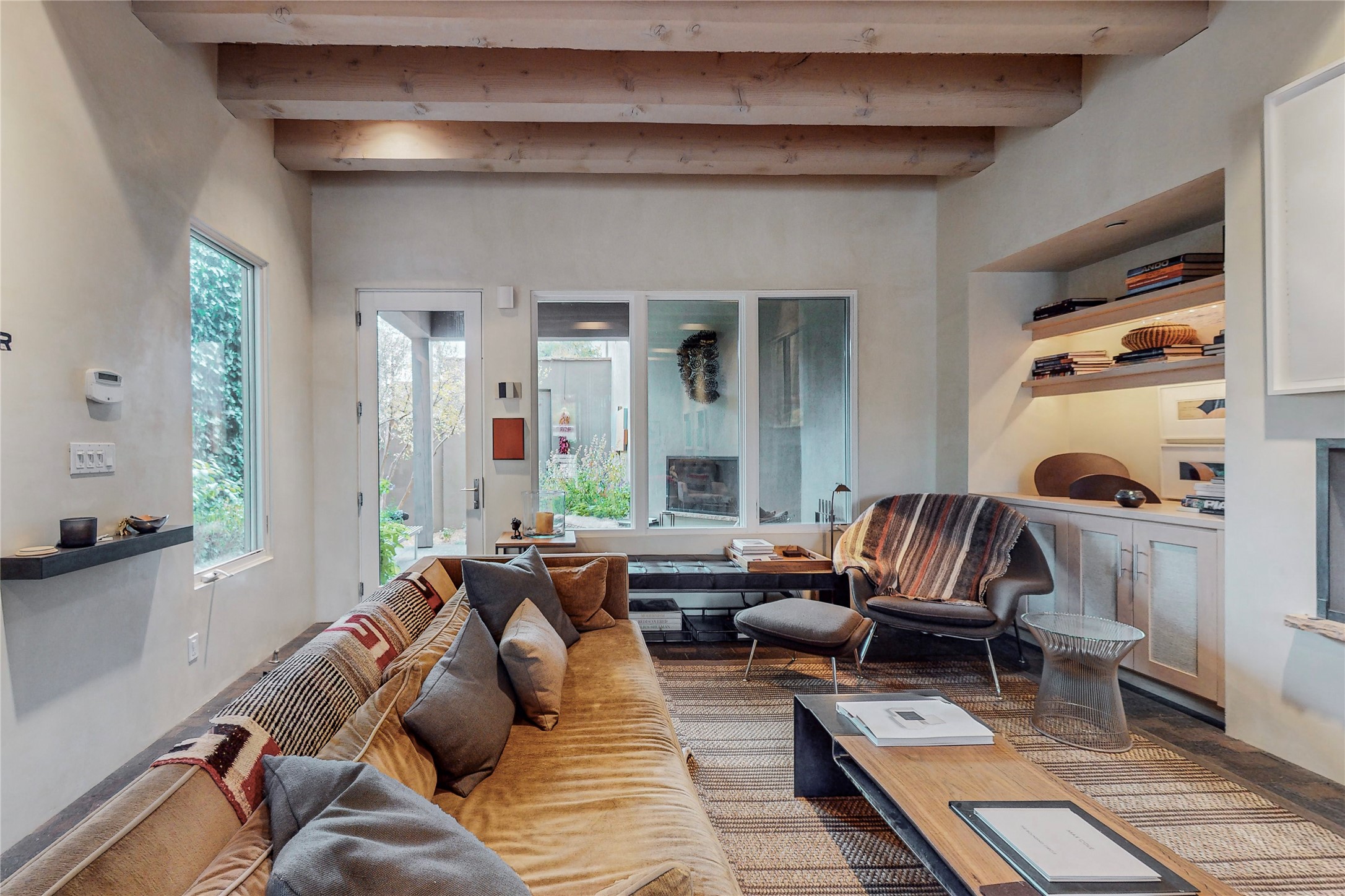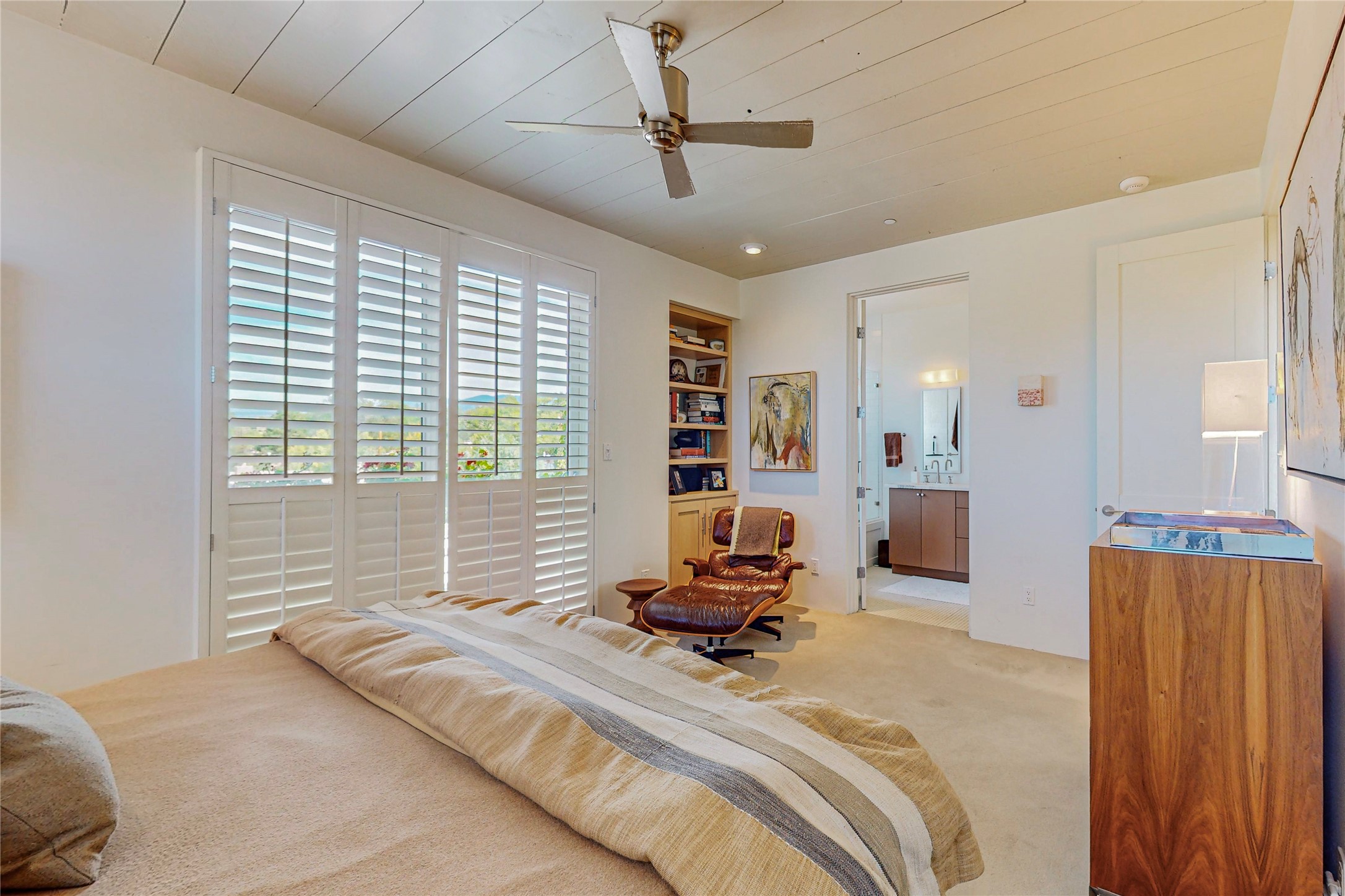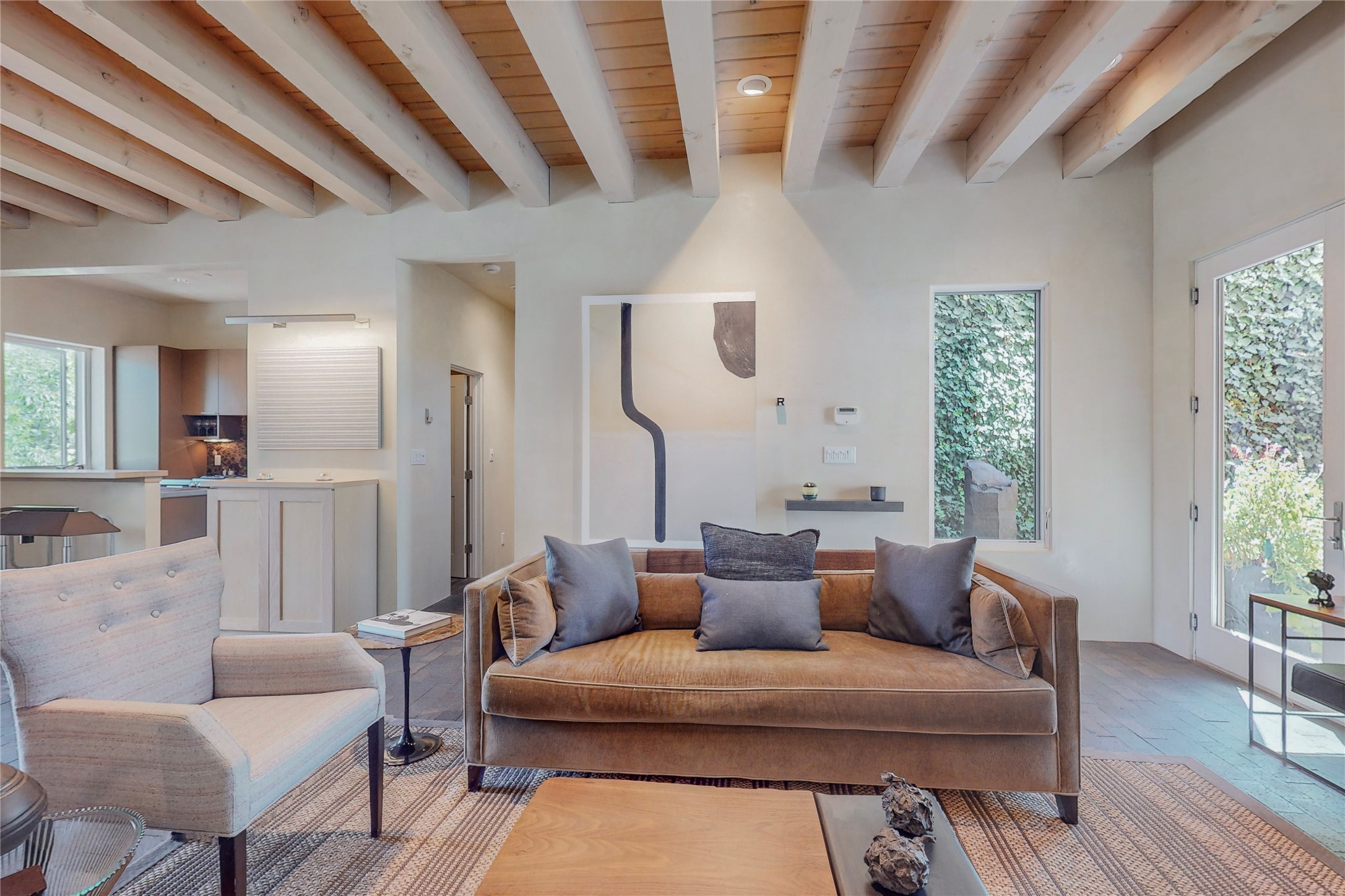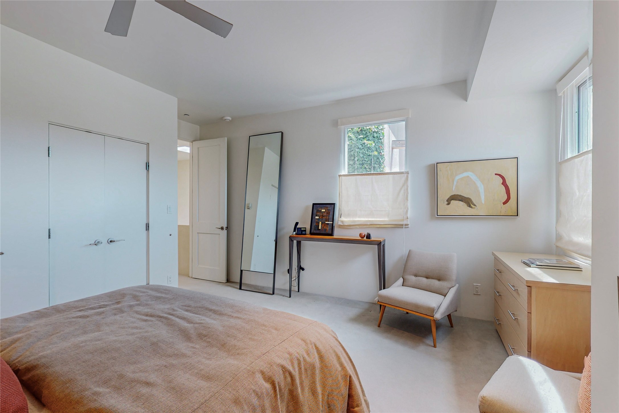 A rare opportunity to purchase the largest unit in Callecita Place, a contemporary designed community by noted local architect Trey Jordan of just 5 residences. This one-owner unit with 3 levels has a generous layout and wall space that is an art-lovers dream! Two bedrooms, each with ensuite bathrooms. A den area upstairs makes the perfect workspace. Mountain views from the primary bedroom! Open concept living and dining on the main level complete with a powder room. High-end finishes throughout. The lower level offers you a mud room and very large storage room. The private gated courtyard professionally landscaped offers an elegant entrance into the property. Two off street parking spaces, one covered. A perfect lock and leave residence with ideal proximity to The Plaza, Ft. Marcy Park and Recreation Center.