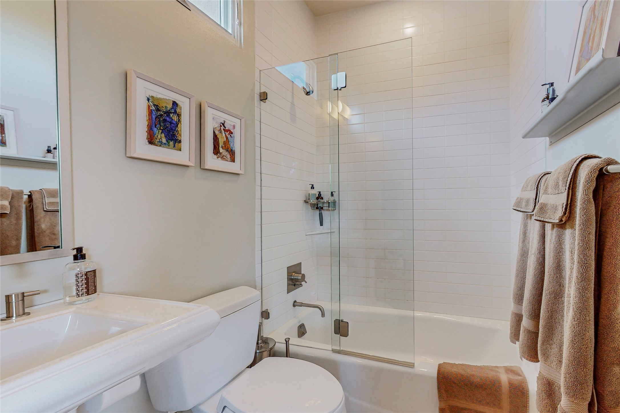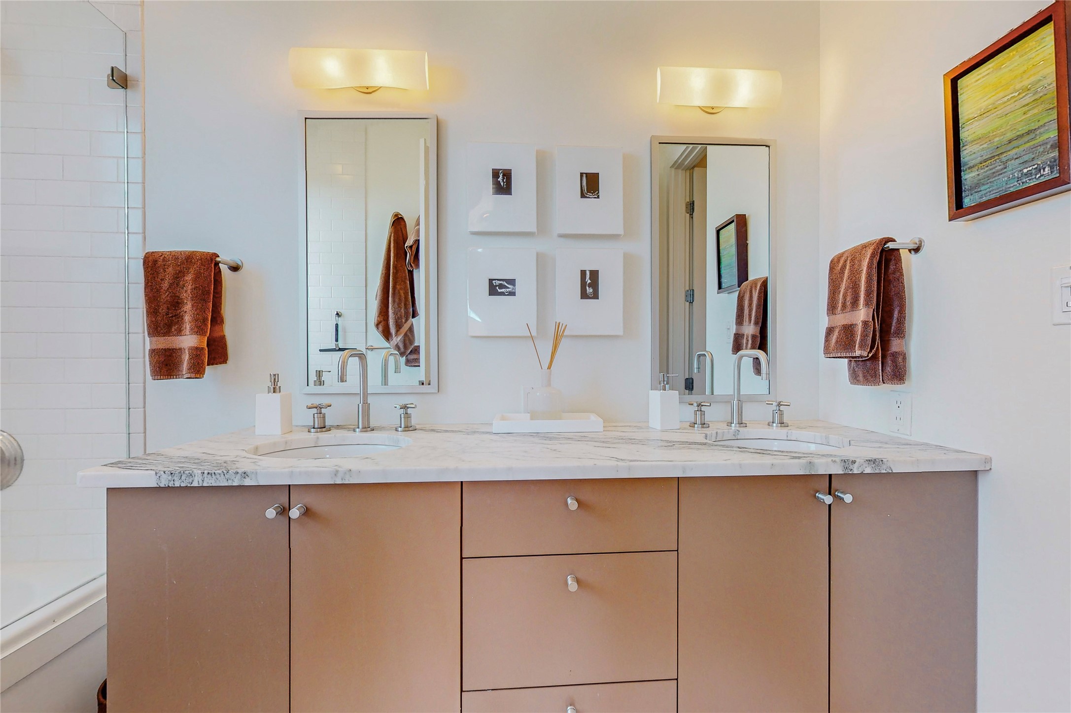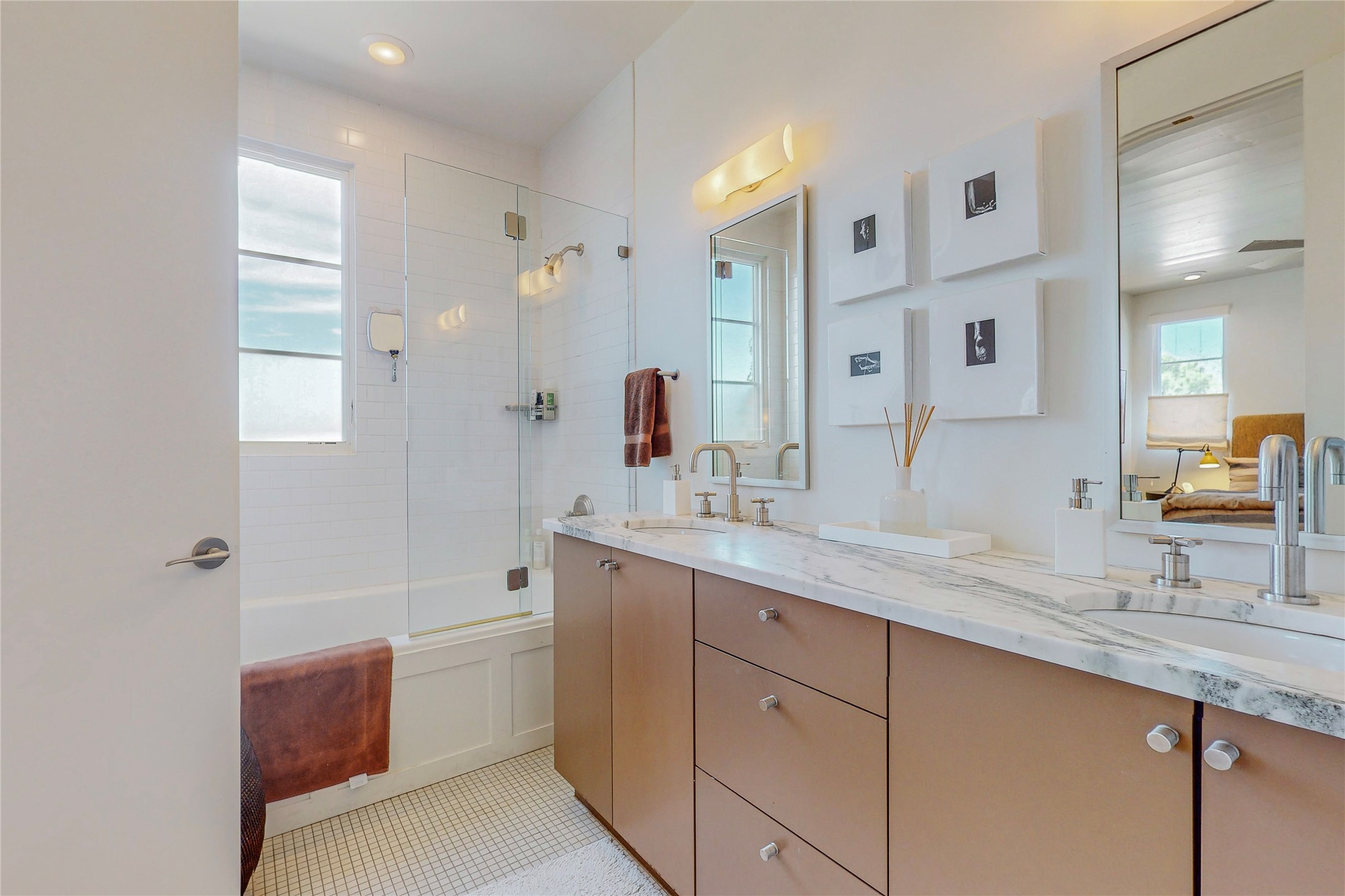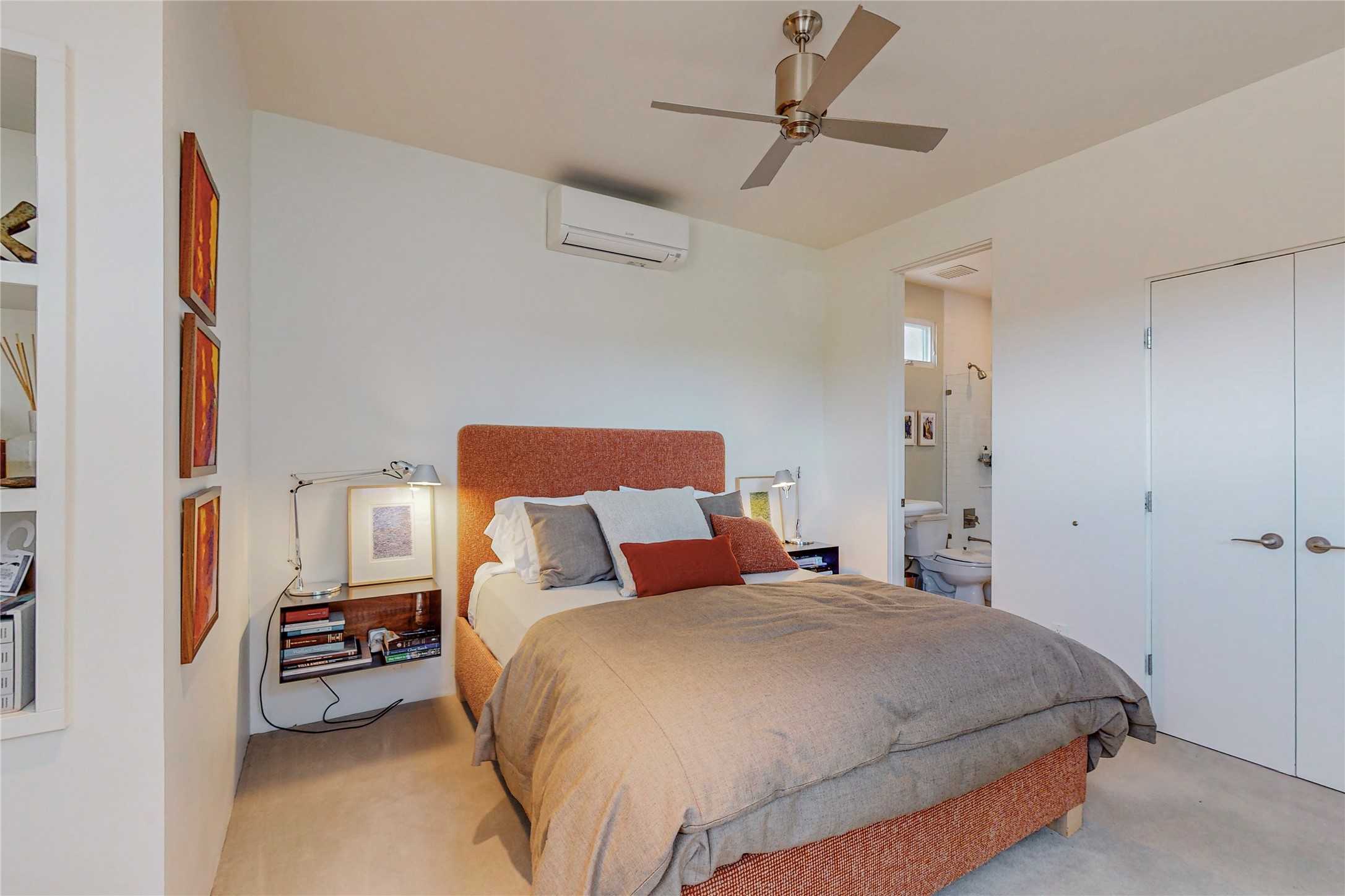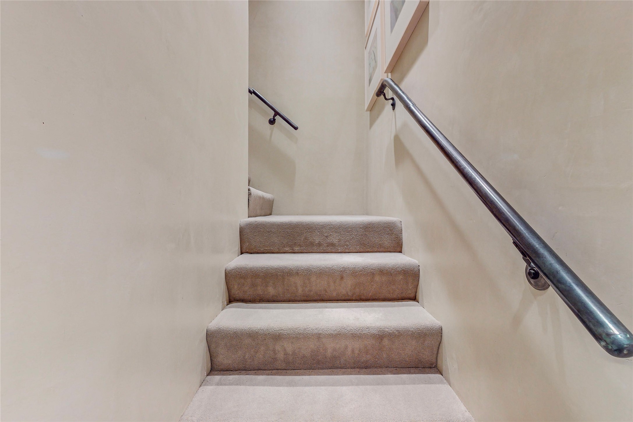A rare opportunity to purchase the largest unit in Callecita Place, a contemporary designed community by noted local architect Trey Jordan of just 5 residences. This one-owner unit with 3 levels has a generous layout and wall space that is an art-lovers dream! Two bedrooms, each with ensuite bathrooms. A den area upstairs makes the perfect workspace. Mountain views from the primary bedroom! Open concept living and dining on the main level complete with a powder room. High-end finishes throughout. The lower level offers you a mud room and very large storage room. The private gated courtyard professionally landscaped offers an elegant entrance into the property. Two off street parking spaces, one covered. A perfect lock and leave residence with ideal proximity to The Plaza, Ft. Marcy Park and Recreation Center.
