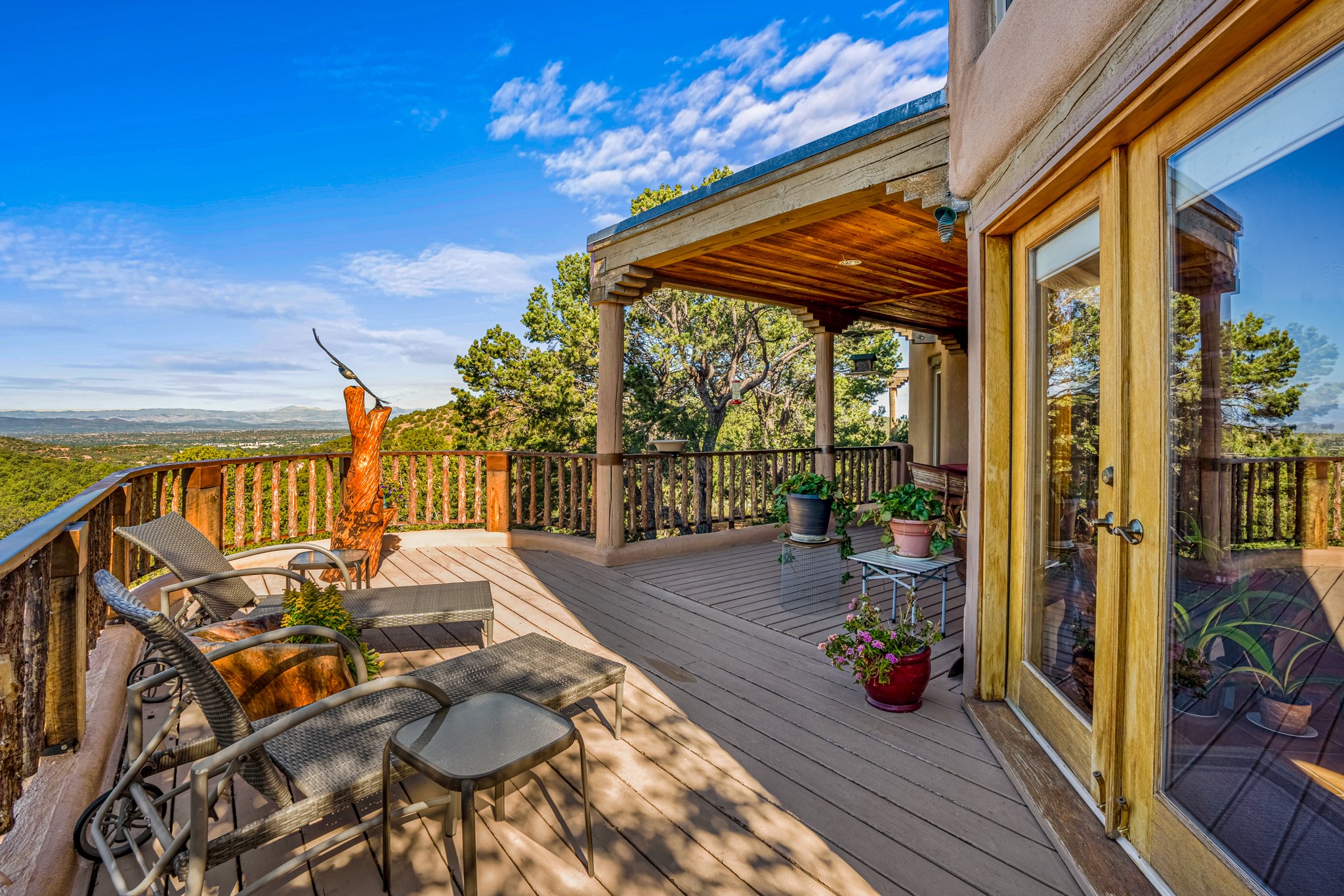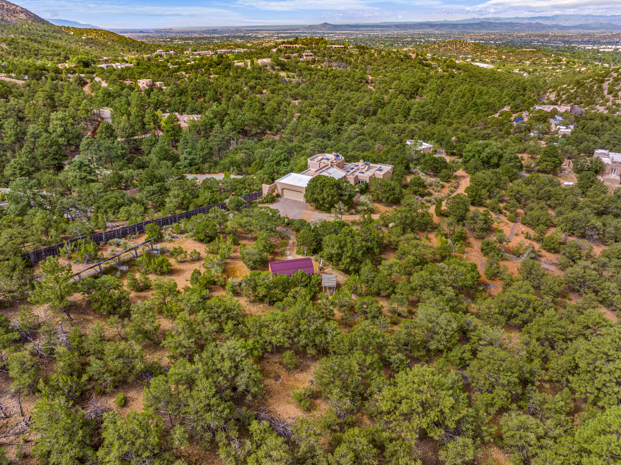 NEW & IMPROVED! Sweet Santa Fe sanctuary nestled in the foothills and situated on a sprawling 3 acre lot w/forever views! This well maintained estate boasts a ~2,400 square foot, 3-bed, 2-bath main house + ~860sf 1 bed+office/1 bath casita .As you step inside the main house, the sun soaked spacious living areas are bathed in natural light, thanks to the incredible South/West exposures that provide breathtaking unobstructed views of the surrounding landscape and majestic sunsets from 7600' high. Deluxe kitchen has tons of workspace. Enjoy the multiple outdoor spaces to drink in the vistas and wildlife.The charming standalone casita offers a perfect retreat for guests or could serve as an income-generating rental unit (there is a recent rental history). Additionally, there's a studio equipped with heating/air conditioning providing a versatile space for your creative pursuits or as an office, multiple storage sheds, and outdoor areas for relaxing.For those who crave a workspace with a view, an additional studio (with electricity), currently used as a workshop, offers endless possibilities. Whether you're an artist, craftsman, or simply seeking a quiet place to work, you'll find inspiration here.This home is also environmentally conscious, featuring a 36-panel solar array that not only reduces energy costs but also minimizes your carbon footprint.Hidden in a peaceful neighborhood of just 8 homes, you'll enjoy tranquility and privacy while still being less than a 10-minute drive from downtown Santa Fe. Plus, outdoor enthusiasts will delight in the convenience of adjacent hiking trails (Atalaya, Castle Rock, Dorothy Stewart, Picacho), allowing you to explore the natural beauty of the area at your leisure.This is your opportunity to own a piece of Santa Fe's enchanting landscape and embrace a lifestyle that combines the charm of the Southwest with modern comfort and convenience. Come experience the magic of this Santa Fe oasis for yourself!