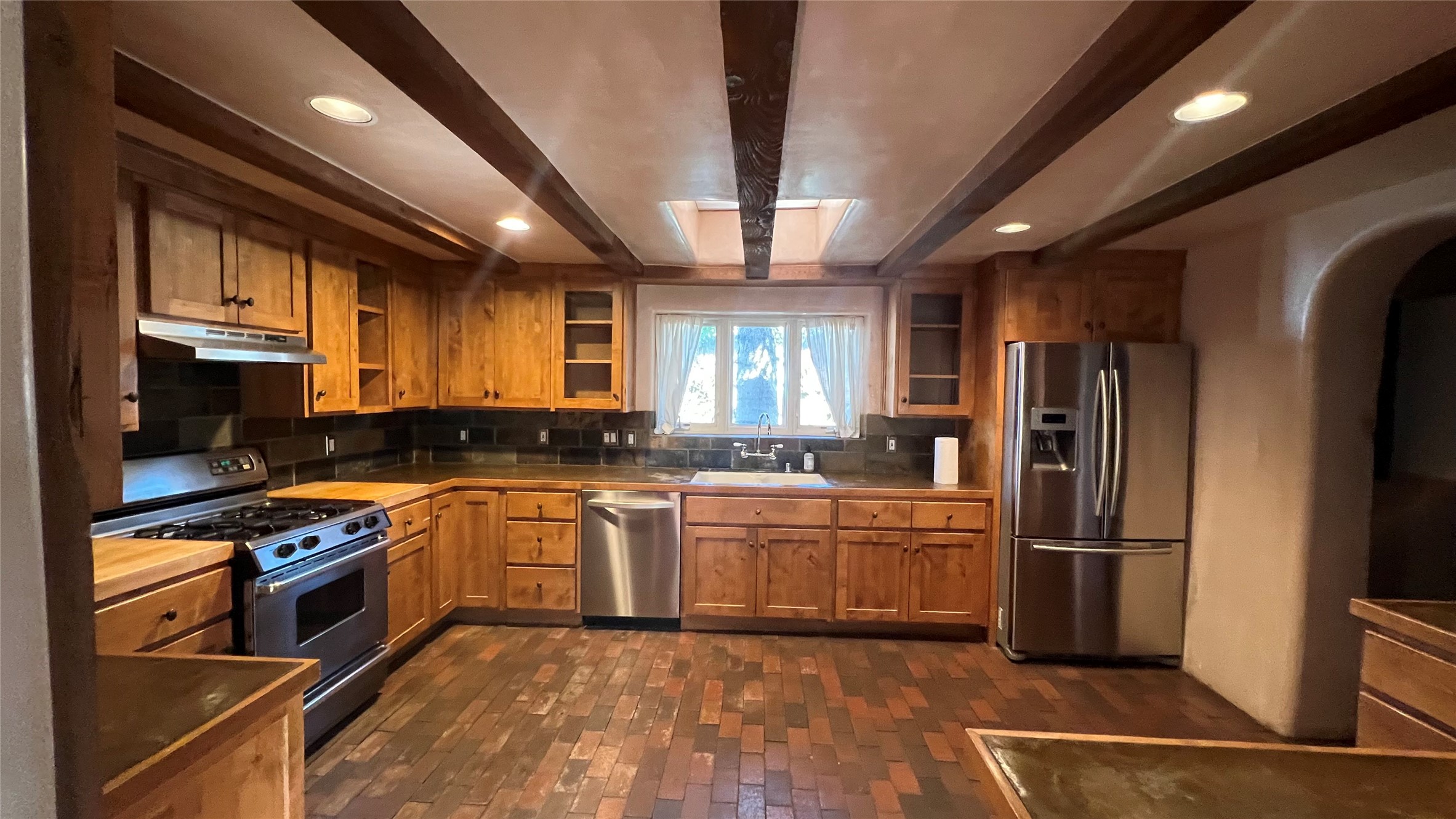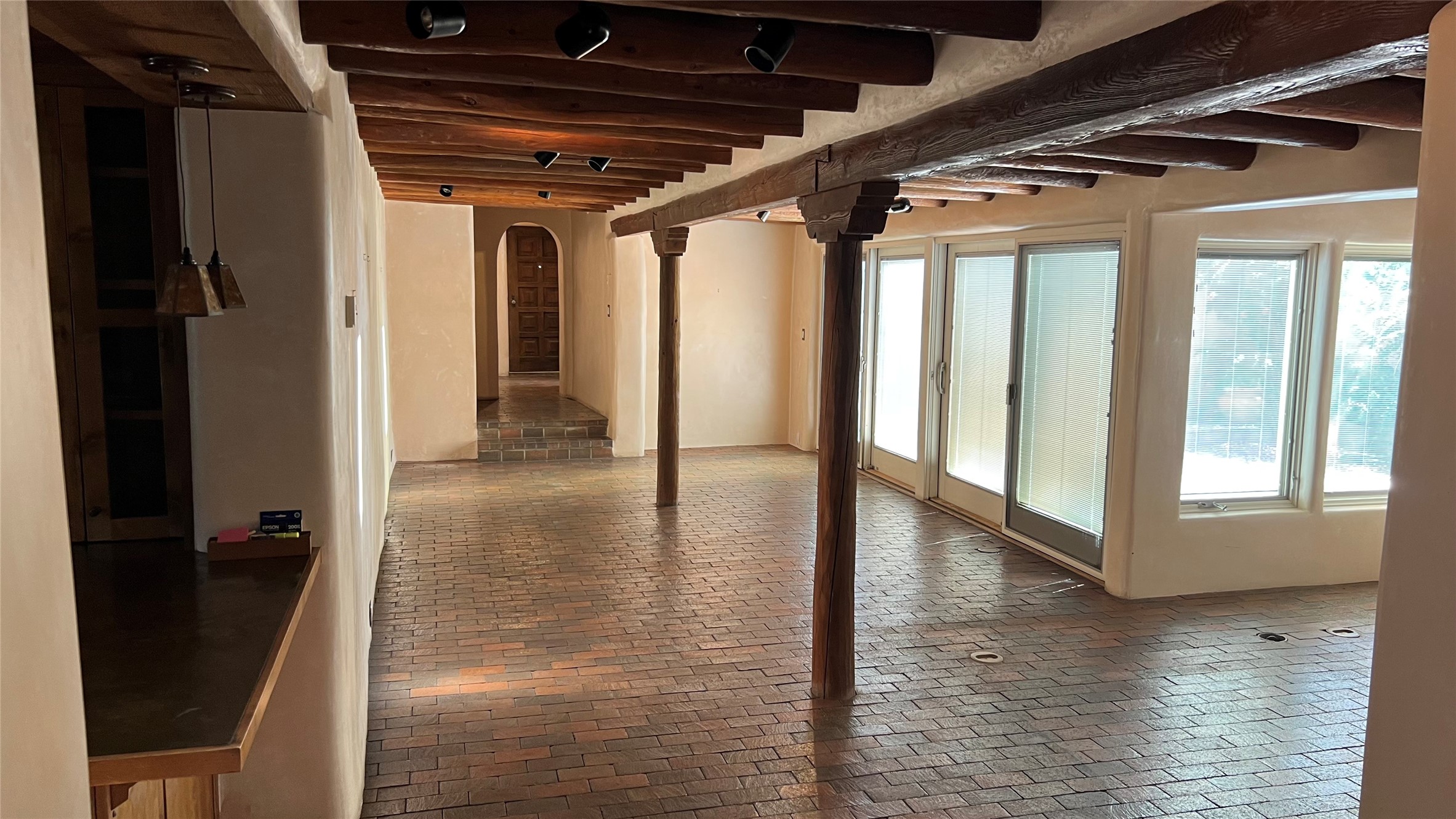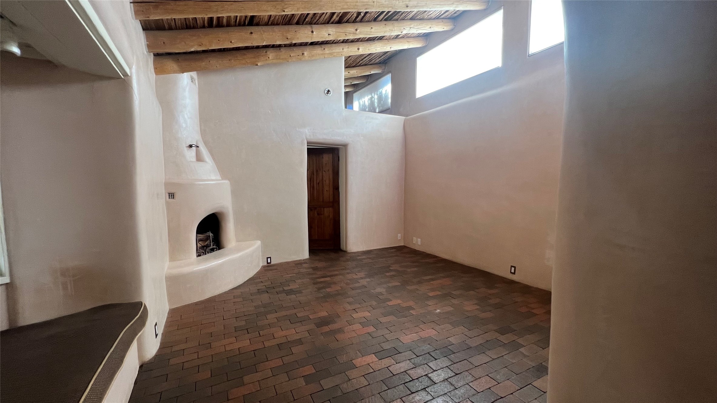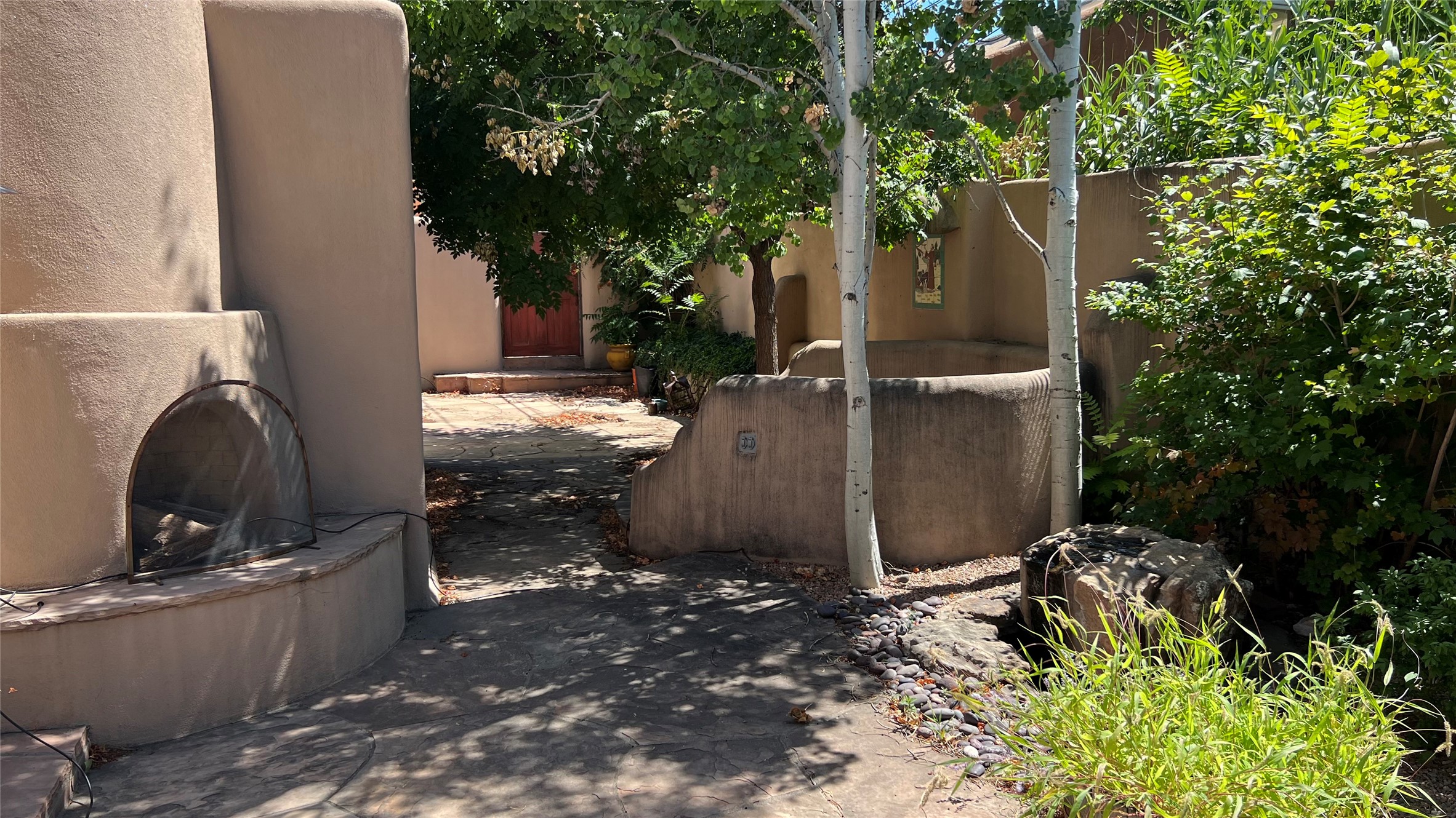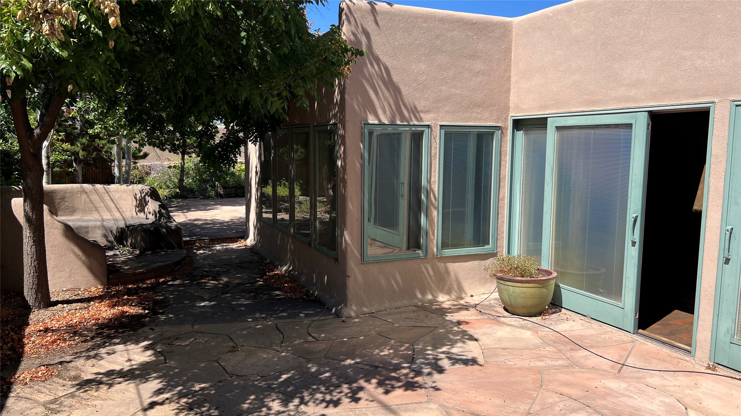 Located in the prestigious South Capital area, within Wood Gormley School District and minutes from the plaza, this spacious 2280 sq foot pueblo style 3 bedroom 2 bath home boosts a beautiful open concept with updated kitchen cabinets and appliances. It offers plenty of space for a family and friends to enjoy both inside and out. There are four kiva fireplaces three inside and one outdoors. The interior features a large living and dining area, a very large kitchen with updated cabinets and appliances, two very large bedrooms and a third bedroom that can be a bedroom or an office as well. The exterior of the home includes a private courtyard with a stone firepit and wood sauna. The yard is perfect for outdoor entertaining or just relaxing in the Santa Fe sunshine. The home has two outdoor parking spaces. With some creativity and a little TLC you can transform this property into your dream home. This home is held in an estate and is sold in its current condition. There is deferred maintenance. Appraisal attached and Inspection report available