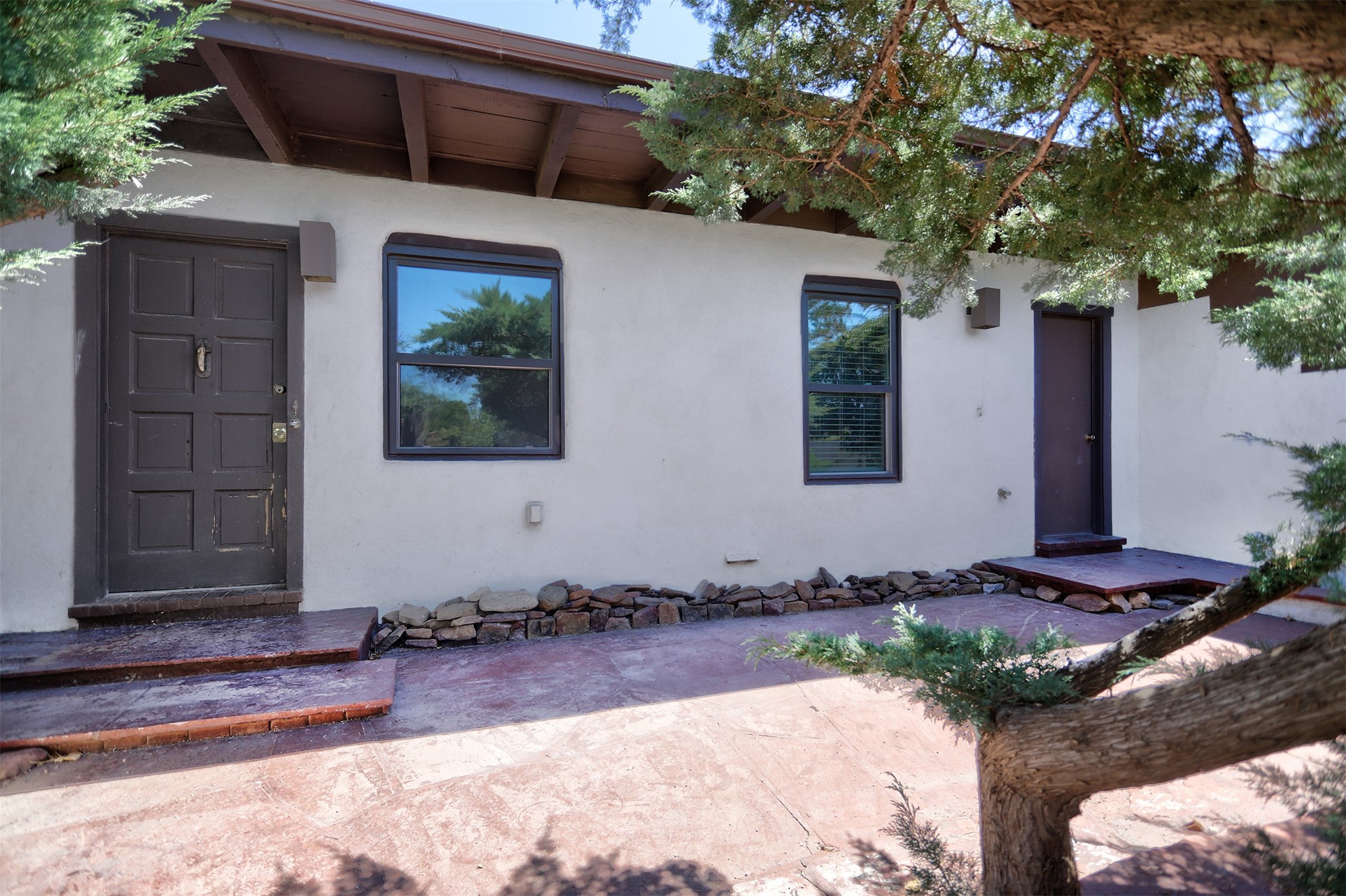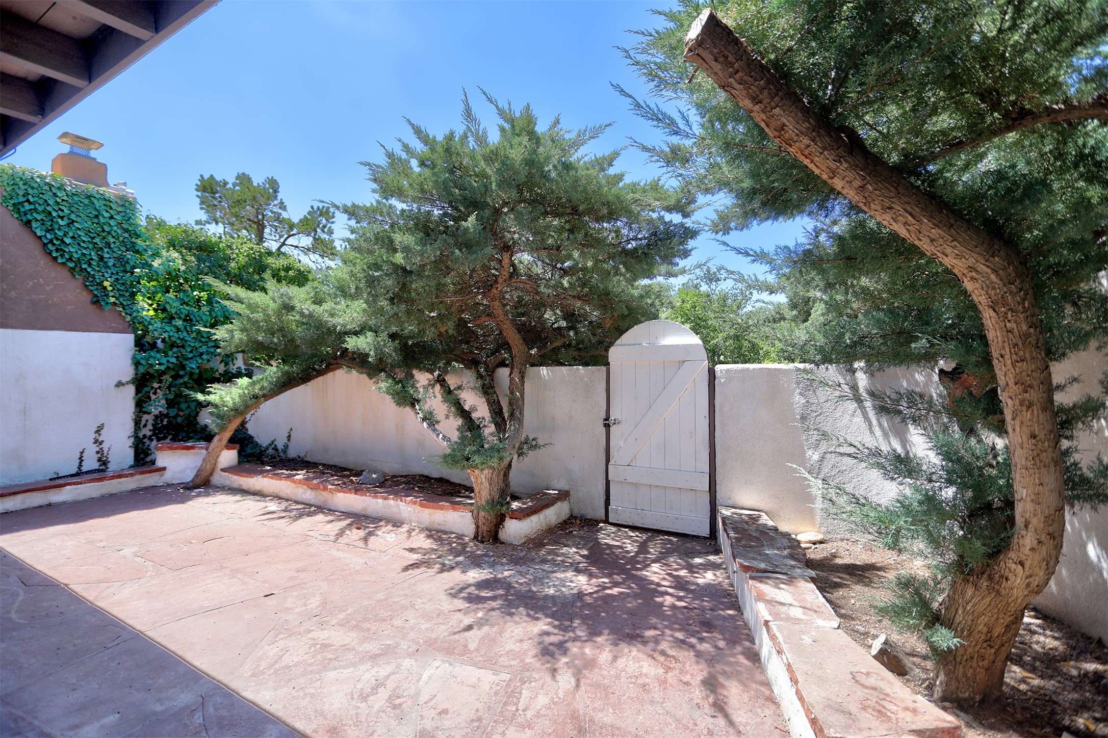 Live among the trees in your 2 bedroom and 1 bath condo in the North Hills Compound, located a short distance north of the plaza. Open floor plan, large bedrooms and beamed ceilings. Gated front patio offers shade and privacy and lead to the 2 reserved parking spaces directly in front of the condo. Ft Marcy park and rec is just a 10 minute walk away, and just 15 minutes to the plaza. Miles and miles of the most perfect dog walking arroyos in Santa Fe surround the property.