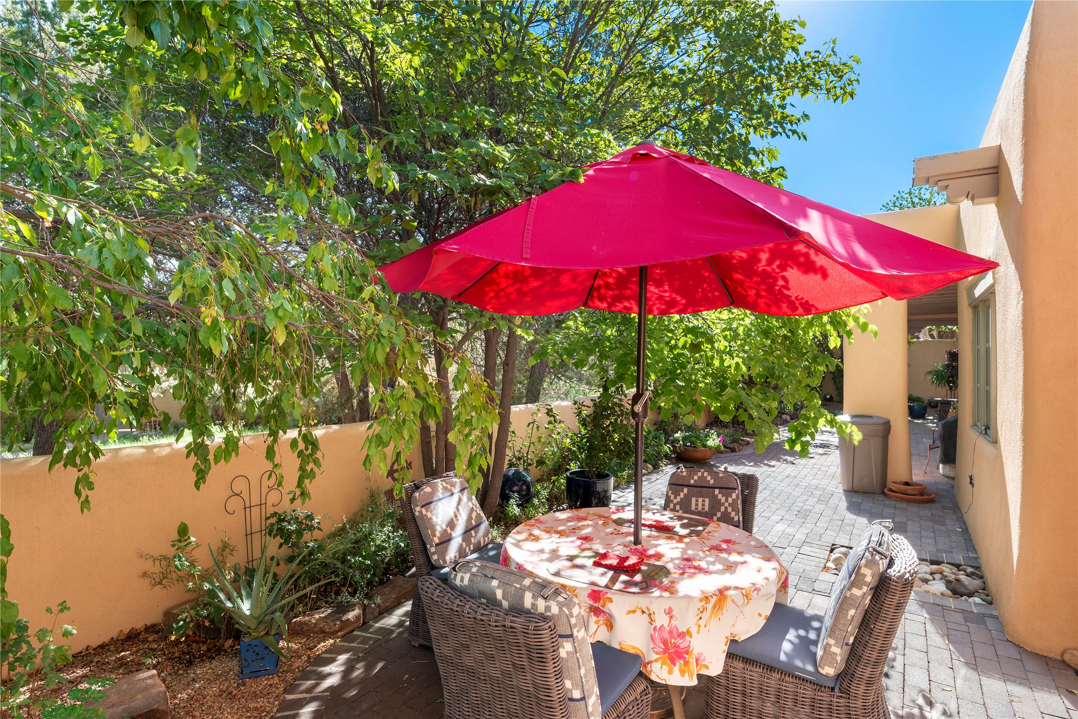 One of the most desirable floor plans in Quail Run the Pinon C features 2 bedrooms + Den or a potential 3rd bedroom. Pride of ownership throughout. Located in a private interior location adjacent to green space adds to the privacy. The interior has all the famous Quail Run design touches with an additional skylight in the living room to wash the wall with ambient light. 2 kiva fireplaces and nice separation of bedrooms with ensuite baths. Outdoor portals and patios are sanctuaries of lush gardens with access from different locations. Perfect for entertaining or just enjoying a peaceful retreat. Easy walking distance to the club house and all the amenities. 24 hour gated hosted security and just 3 miles to the Santa Fe Plaza. The owners request 24 hour notice for showings.
