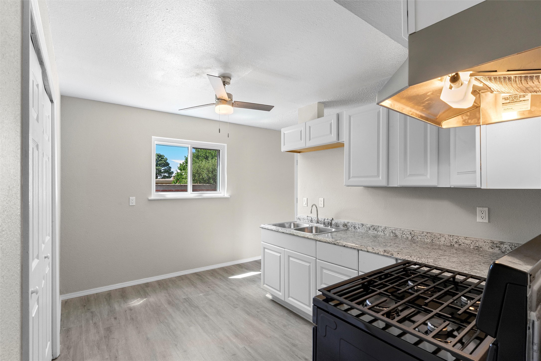 Offering 6K credit to buyers! Welcome to 1706 Callejon, a Northern New Mexico-style home blending Southwestern charm and modern flair. With 3 bedrooms and a tastefully styled modern bathroom, this residence offers both comfort and function. Inside, the soft tan and white color scheme is accented by wood laminate flooring, creating an inviting space that straddles both classic and contemporary styles. Though compact, the kitchen is thoughtfully designed, and a separate laundry room adds extra convenience. Outdoors, a large walled-in backyard offers privacy and endless possibilities for leisure or landscaping. A small covered porch and a mature fruit tree in the front yard complete the idyllic setting. Located just two miles from Santa Fe Plaza, you're never far from shops, galleries, or fine dining. New windows and water heater installed in Sept 2023. Nearby River Park and easy access to State Road 599 make both nature and commuting easily accessible. Don't miss the chance to call this move-in-ready gem your home.