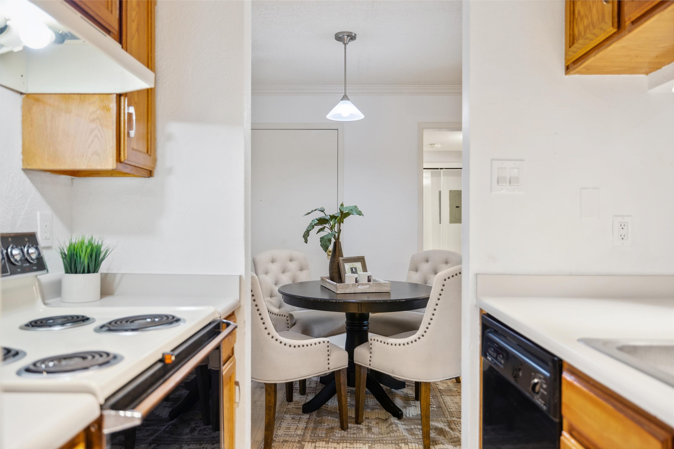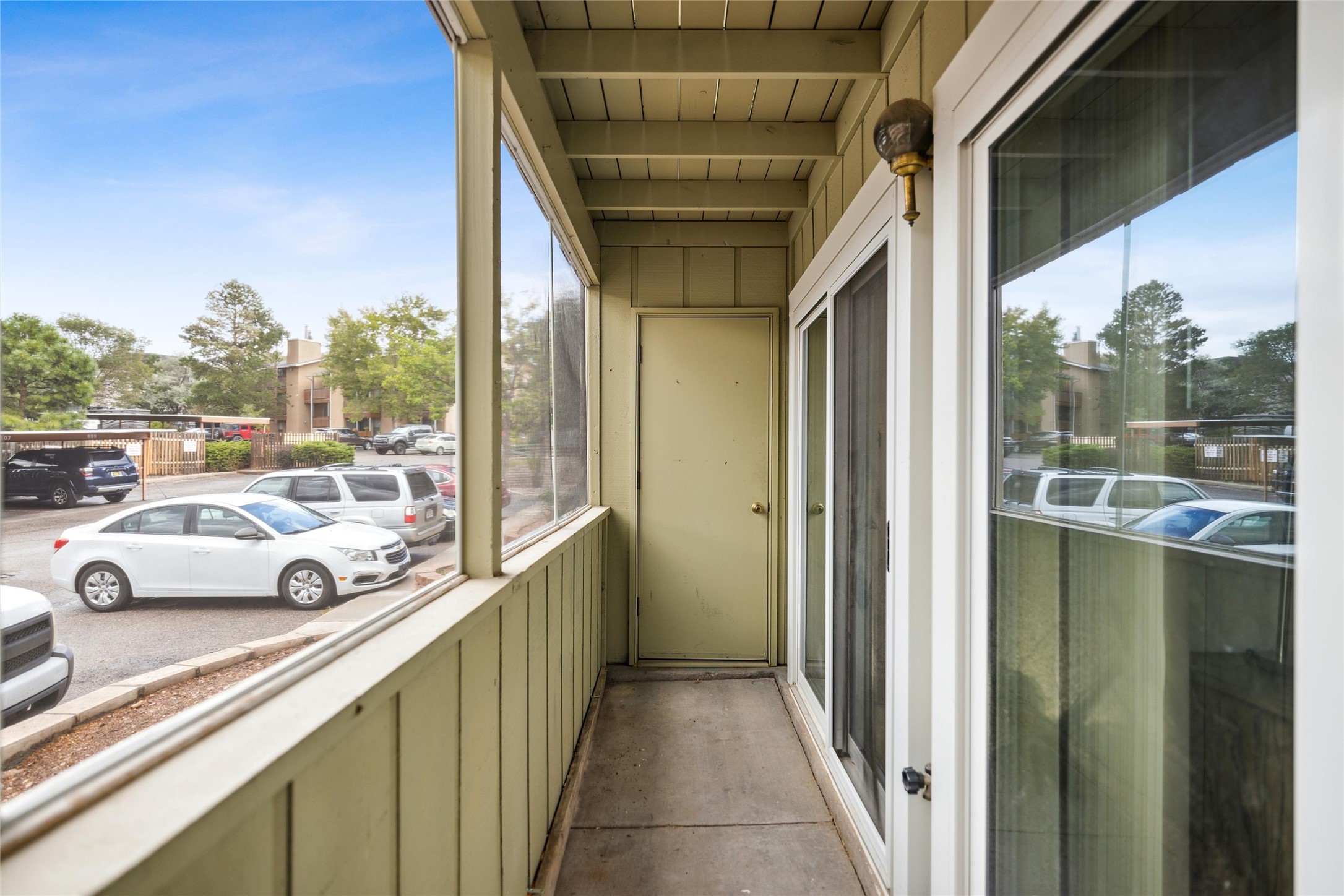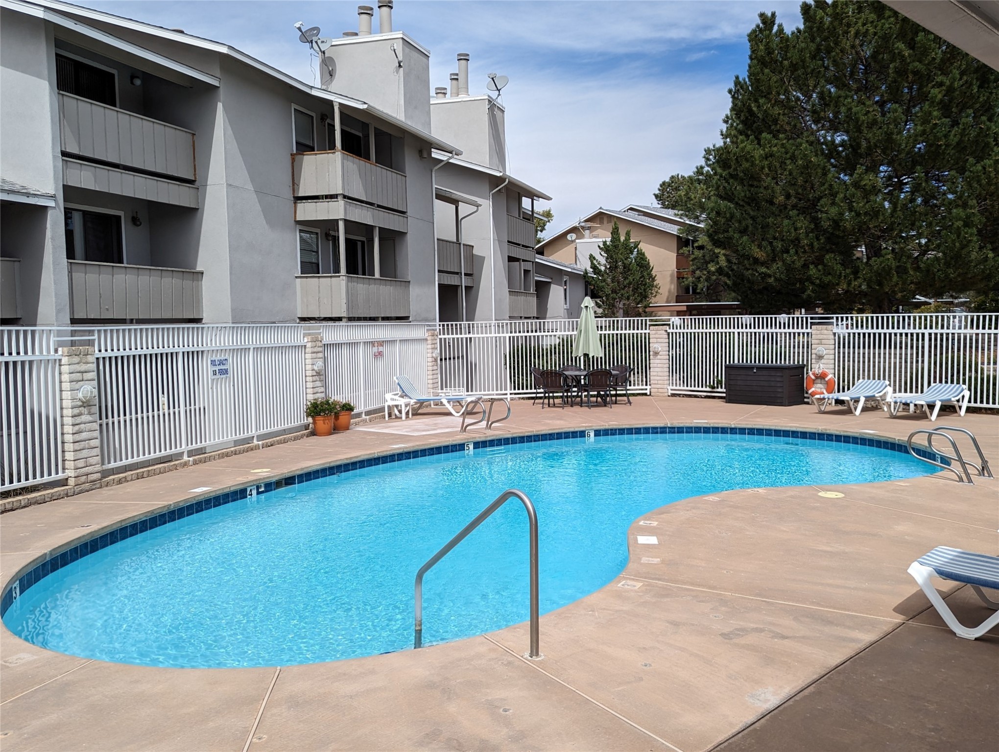 Discover this charming 1-bedroom, 1-bathroom ground-level condo in a prime Los Alamos location, just across Trinity Dr. from Ashley Pond. This home offers modern amenities such as brand new energy-efficient ProVia windows and slider doors that can lock while open to let fresh air in while providing peace of mind. Brand new water resistant laminate flooring was just added in high traffic areas. A walk-in closet, your own washer and dryer, new lighting including lighted ceiling fans, a screened in porch, and a private storage closet round out the list of accommodations in this home. The condo complex offers a clubhouse, workout room, and pool for residents, along with reserved carport parking. Cozy up by the woodburning fireplace in this inviting space, where convenience meets comfort. Don't miss out on this ideal opportunity to live in the heart of Los Alamos, NM. Schedule a private tour today or stop by the open house this Saturday, 9/23 from 1 - 3pm.