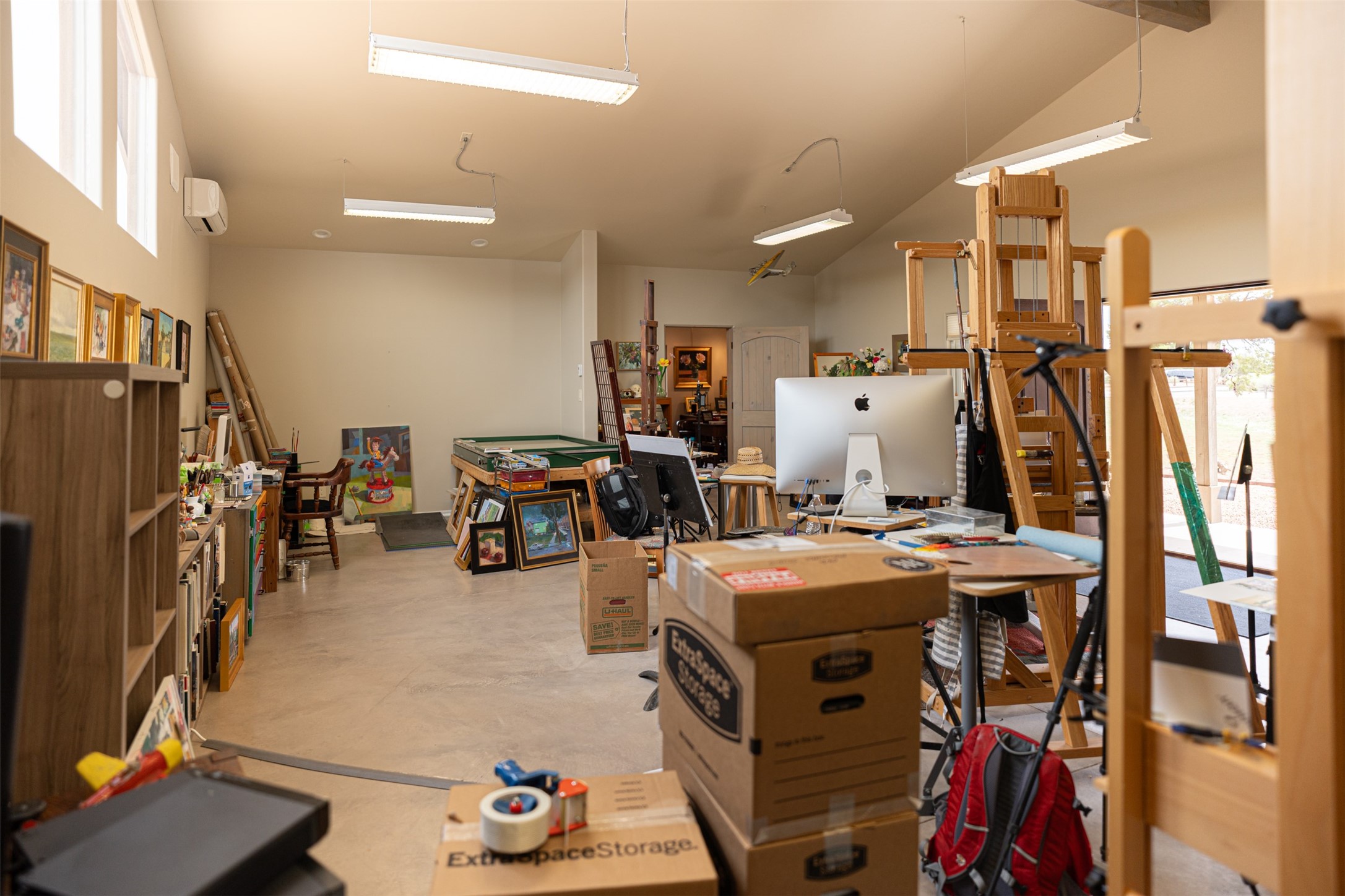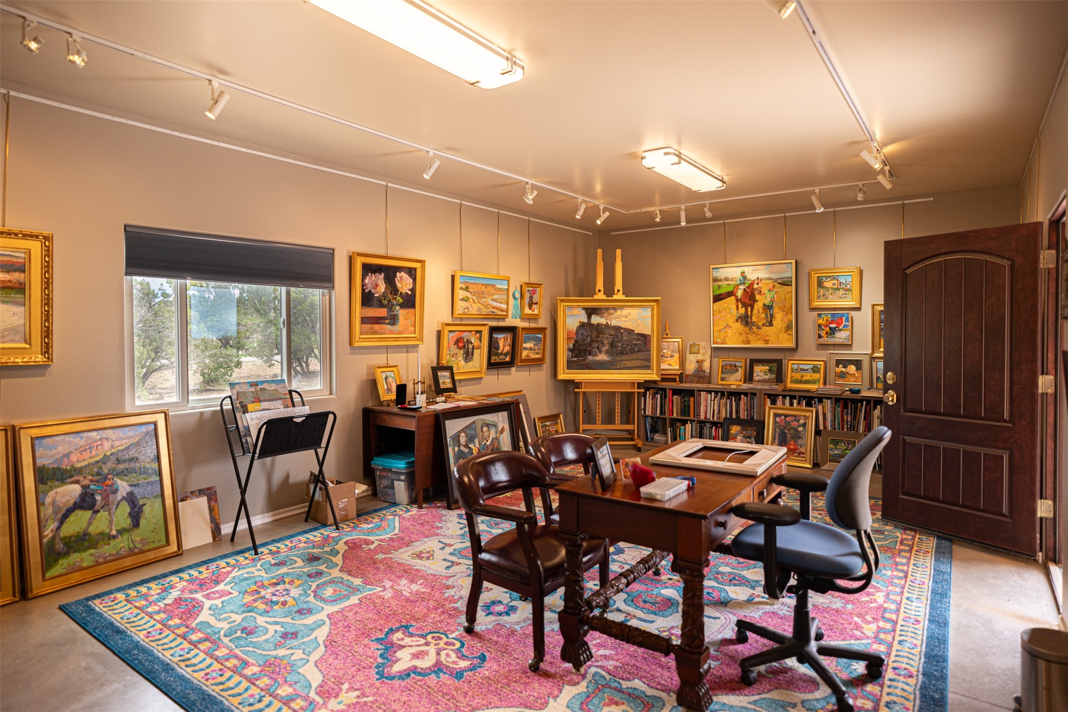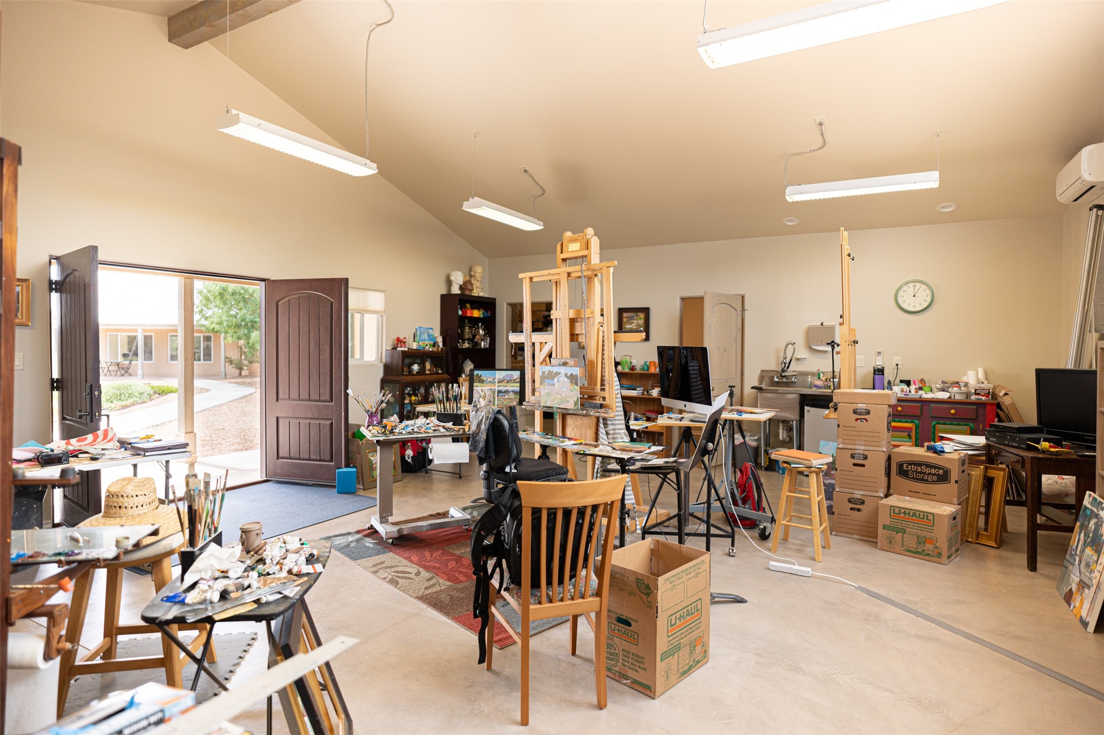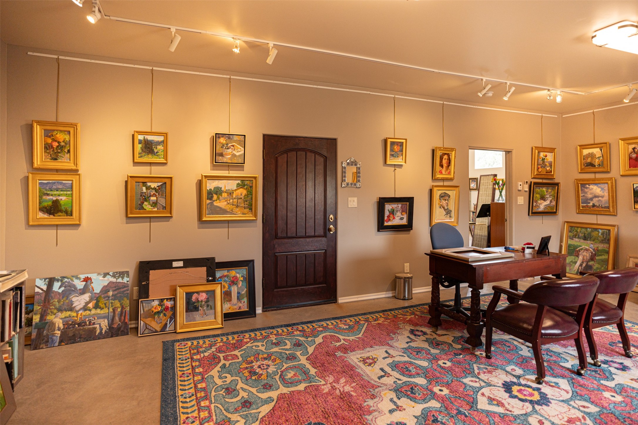 BROKER TOUR ON WEDNESDAY, OCTOBER 18 FROM 10AM-1PMThis custom residence sits on a 2.5-acre parcel of land, with three bedrooms, three bathrooms, and an attached oversized two-car garage. This property offers a truly exceptional opportunity to own a stunning home paired with a separate 1,900-square-foot professional art studio. Notably, the art studio was constructed by the renowned artist, Louis Escobedo (www.louisescobedo.com). The art studio features a gallery space with its own private entrance, a half-bathroom, and a storage room that could be transformed into an additional bedroom to suit your preferences. The generously proportioned work area within the studio is flooded with natural light, providing an inspiring environment for creativity. The 2,424-square-foot custom home features 15-foot vaulted wood ceilings and an open floor plan that lends an air of spaciousness and elegance. Each of the bedrooms connects to a generous patio, ideal for hosting gatherings with family and friends or simply unwinding in a serene setting. The primary bedroom has an ensuite bathroom with dual sinks and a fully enclosed glass shower area. The main house's kitchen is equipped with stainless steel appliances for your daily use, including a convenient winery chiller to keep your beverages refreshingly cold for special occasions. This house has a laundry room furnished with washer & dryer, and ample cabinets for storages. The 2.5-acre lot showcases native landscaping and offers breathtaking panoramic views of the surrounding mountains. This property represents the perfect fusion of artistic inspiration and opulent living, making it a truly unique and captivating opportunity.
