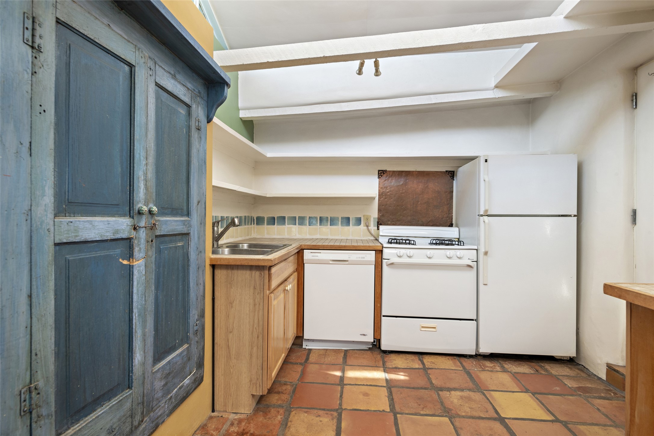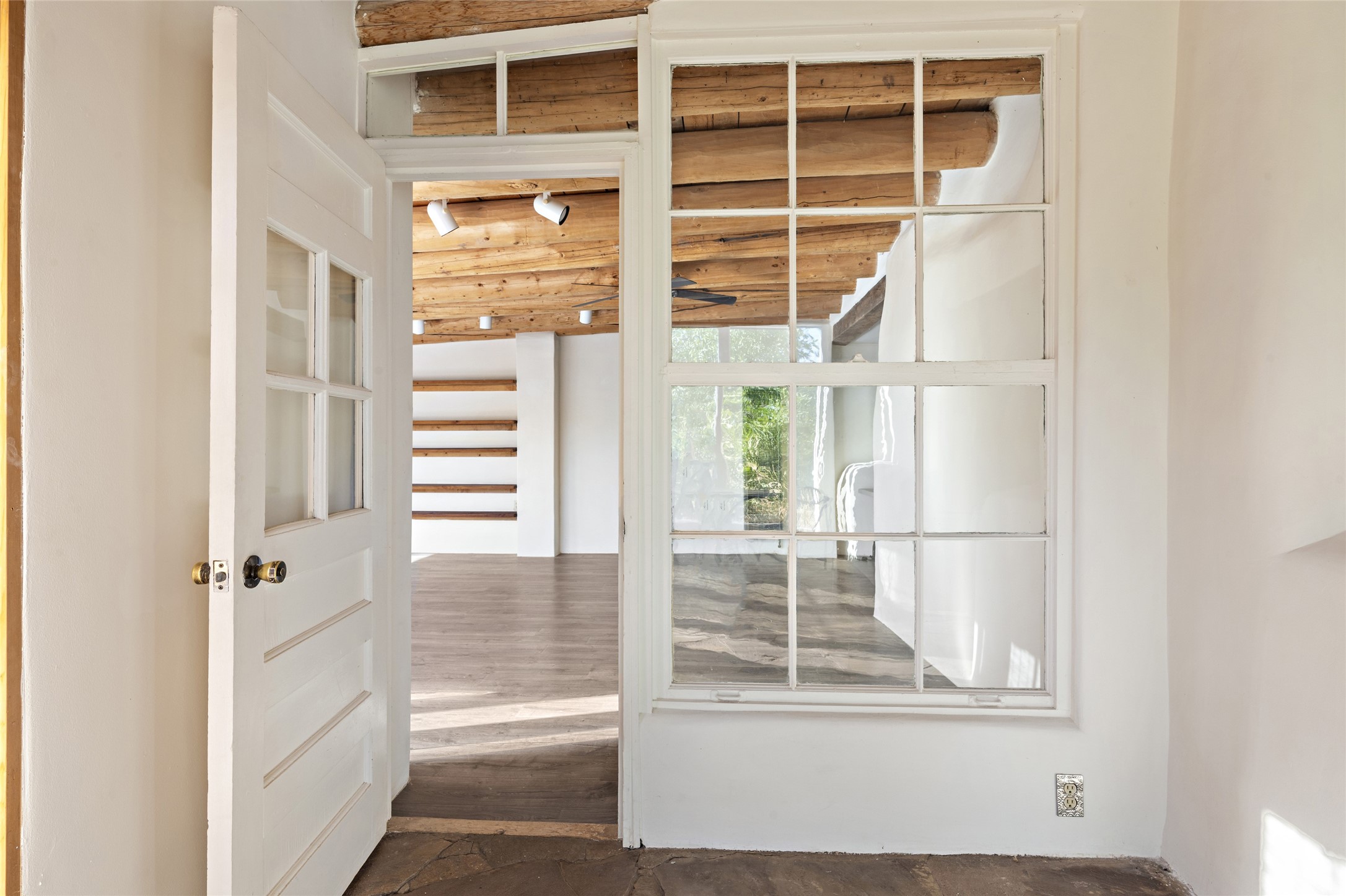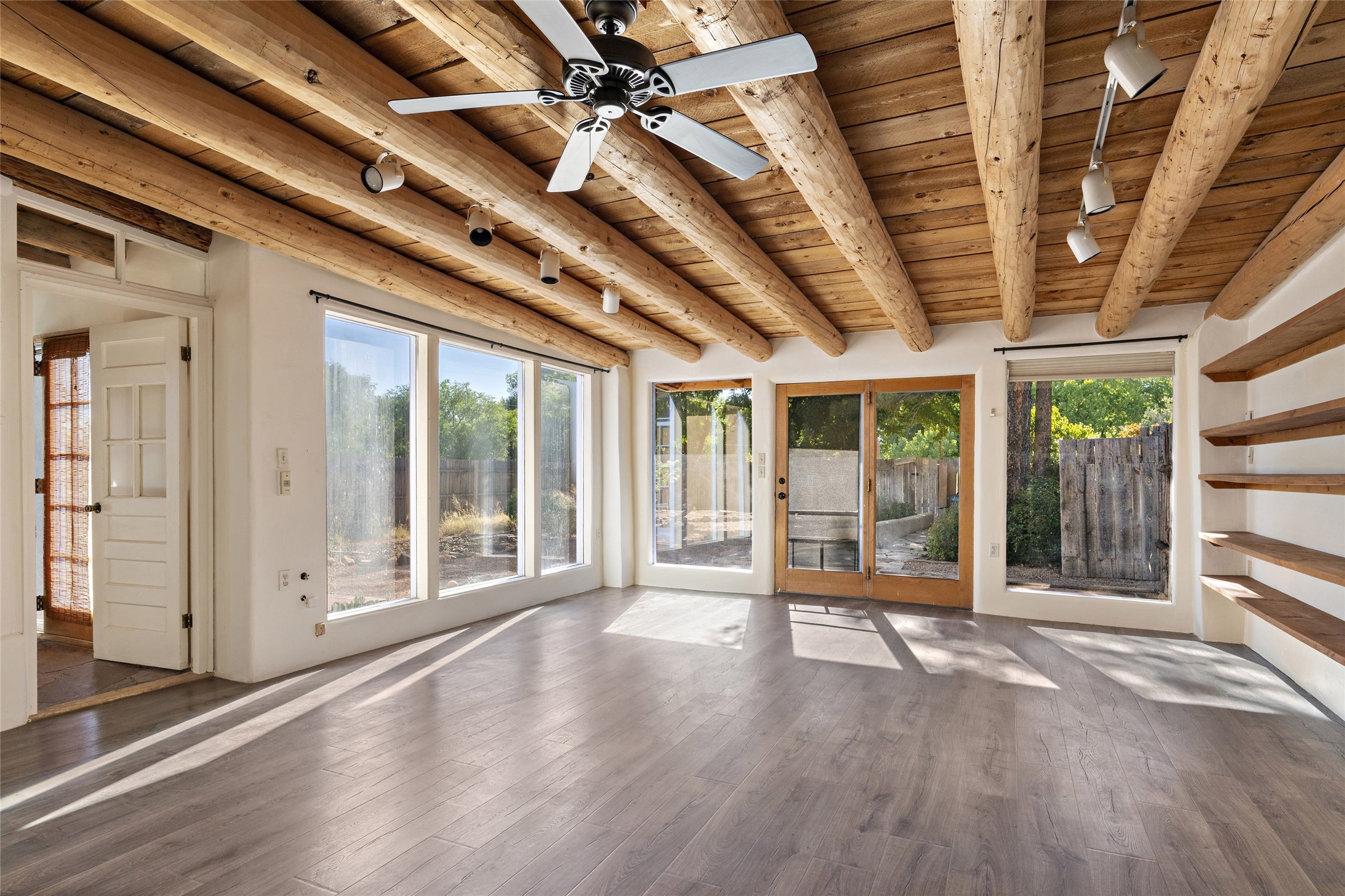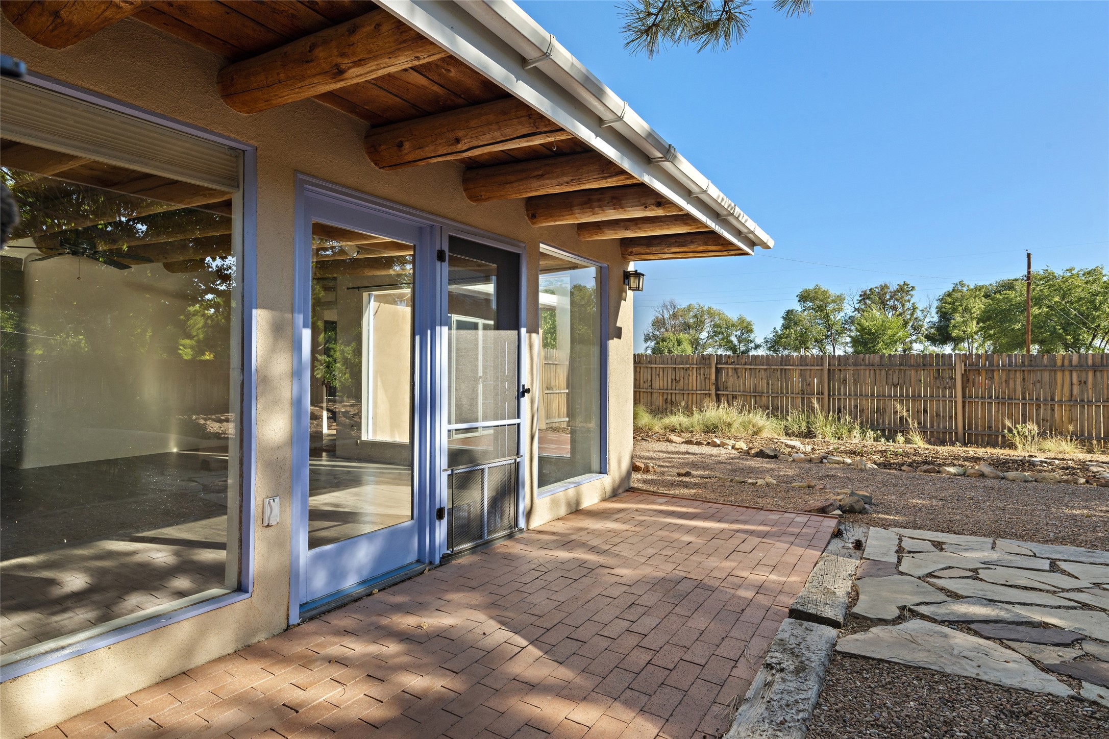 Nestled along the banks of the Galisteo Creek, this sweet original adobe/double adobe home is sited on a picturesque 0.75 +/- acres. There is a large outdoor courtyard with private and captivating views of the gardens, the Galisteo valley and bosque. The functionality of the home lends itself to be 1 to 3 bedroom spaces with plenty of natural light - ideal for artists and studio space. There is a full bathroom and kitchen off the living area. Architectural features include a large wood-burning fireplace, vigas, latillas, antique mesquite doors in the bedroom and kitchen pantry, as well as flagstone, Saltillo tile and wood flooring. A mechanical room doubles as a laundry room with a washer, dryer and utility sink. 5B La Otra Vanda is being offered by the seller for purchase as well.
