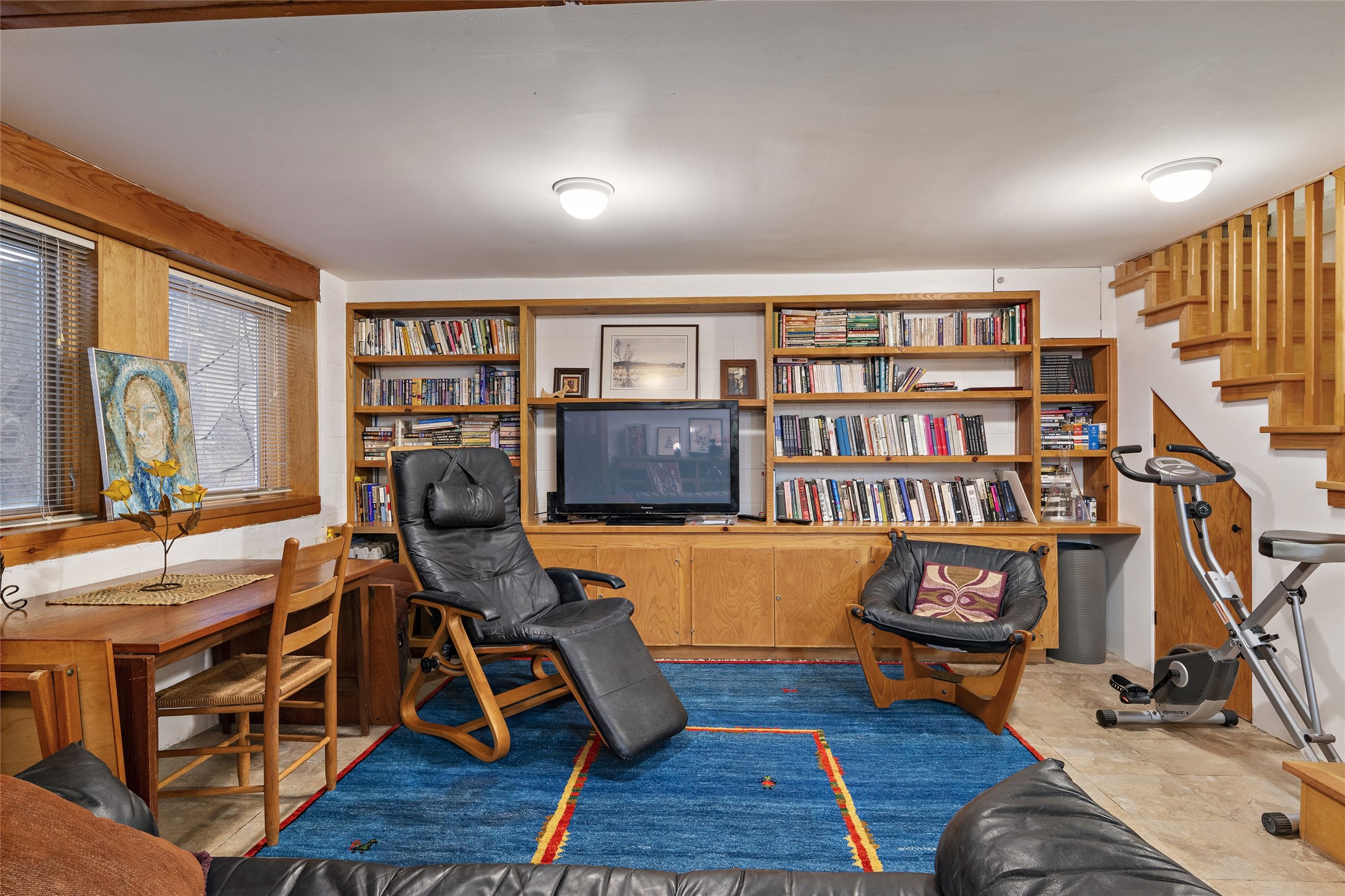 This Adobe home is gracefully tucked away in the heart of Santa Fe's sought-after Historic Eastside, along the enchanting Camino Del Monte Sol. Set within this locale, this property invites you to partake in the rich tapestry of Santa Fe's storied history. This captivating home stands proudly on a generous .56-acre lot, boasting a beautiful landscape adorned with lush vegetation and a diverse array of fruit trees. Imagine waking up to the fragrant scent of peaches, apricots, apples, nectarines, pears, and cherries wafting through your backyard. Irrigation is available on the property, fostering the growth of the beautiful vegetation. There is a large varnished carport for two cars with two additional parking spaces on the property. Step inside, and you'll discover a thoughtfully designed residence that seamlessly combines comfort and elegance. Featuring three bedrooms, including a spacious primary suite, and a total of three bathrooms (one full bath and two 3/4 baths.) Inside, you'll appreciate the brick flooring throughout the open living area and the granite countertops in the chef's kitchen, blending classic Santa Fe style with modern convenience. Evaporative cooling and ceiling fans throughout ensure your comfort during the warmer months. Tall ceilings with vigas add to the sense of spaciousness, while historic charm infuses each room. The fireplace in the living room is perfect to gather around while entertaining. The expansive yard provides endless opportunities for relaxation, outdoor dining, or simply basking in the New Mexico sunshine. Shaded entertaining areas with large portals invite you to savor the outdoors while staying cool. This remarkable home in Santa Fe's historic Eastside is more than just a place to live; it's a gateway to a storied past and a haven for modern living. Don't miss the opportunity to make this exceptional home your own and experience the true essence of Santa Fe's charm and history.