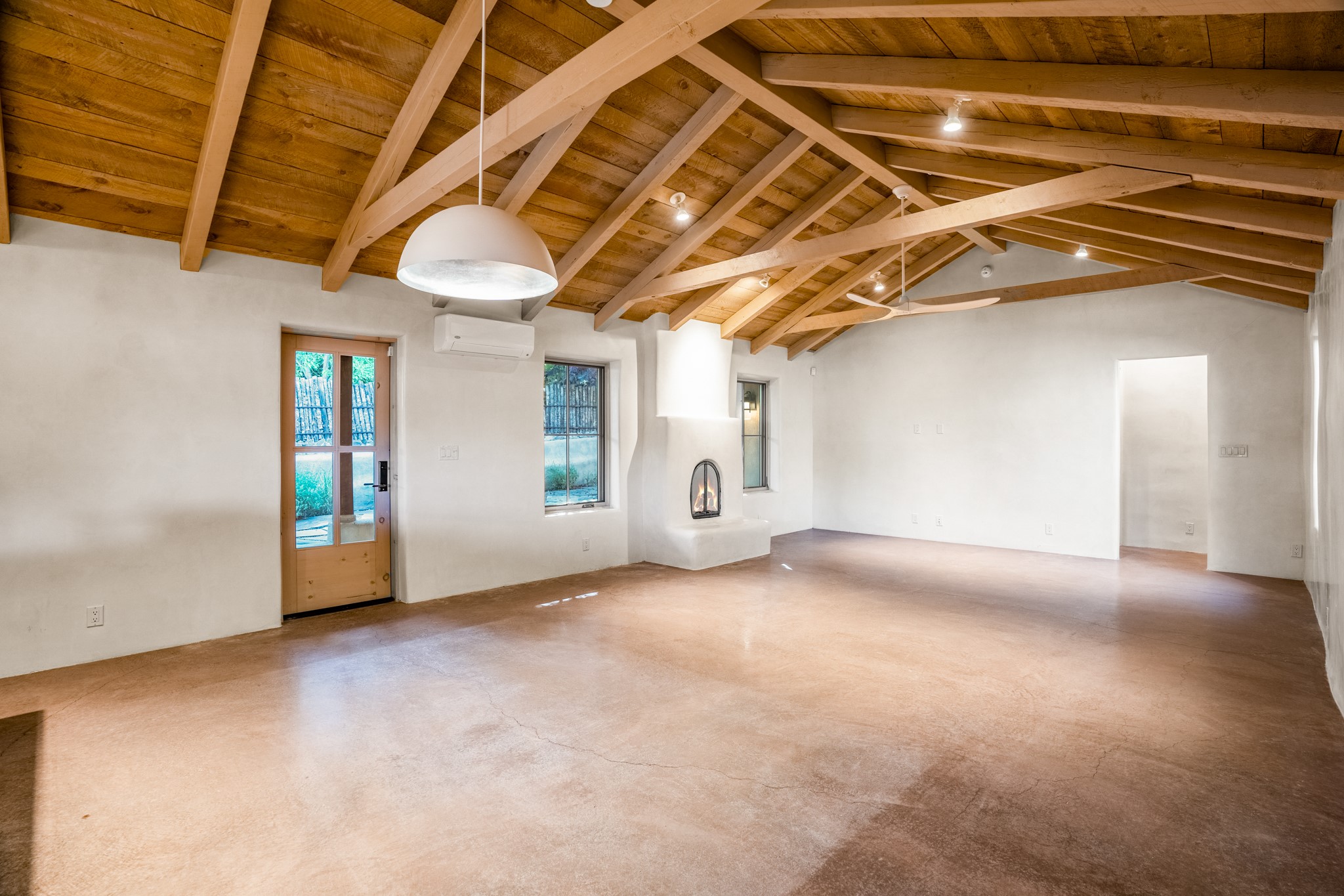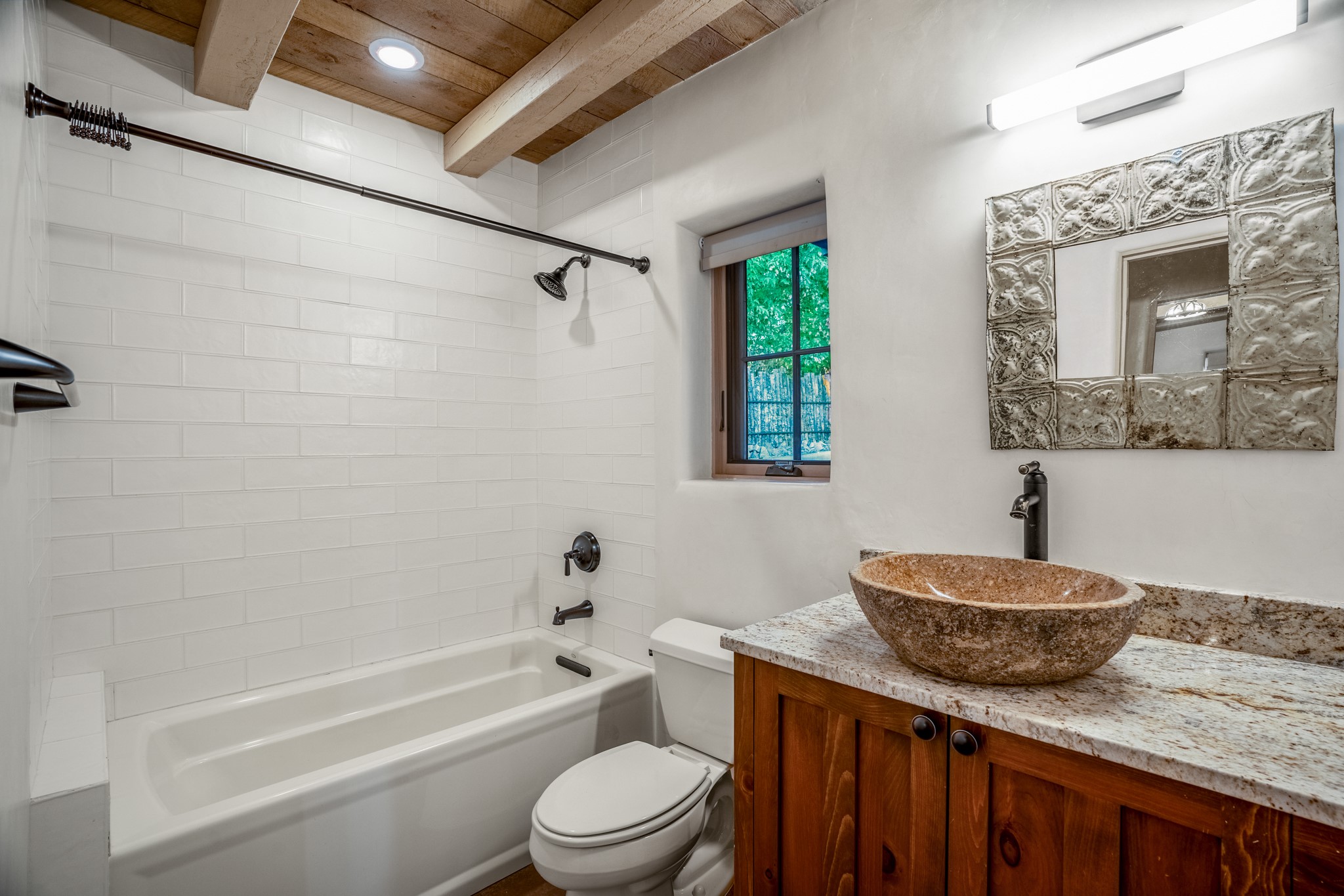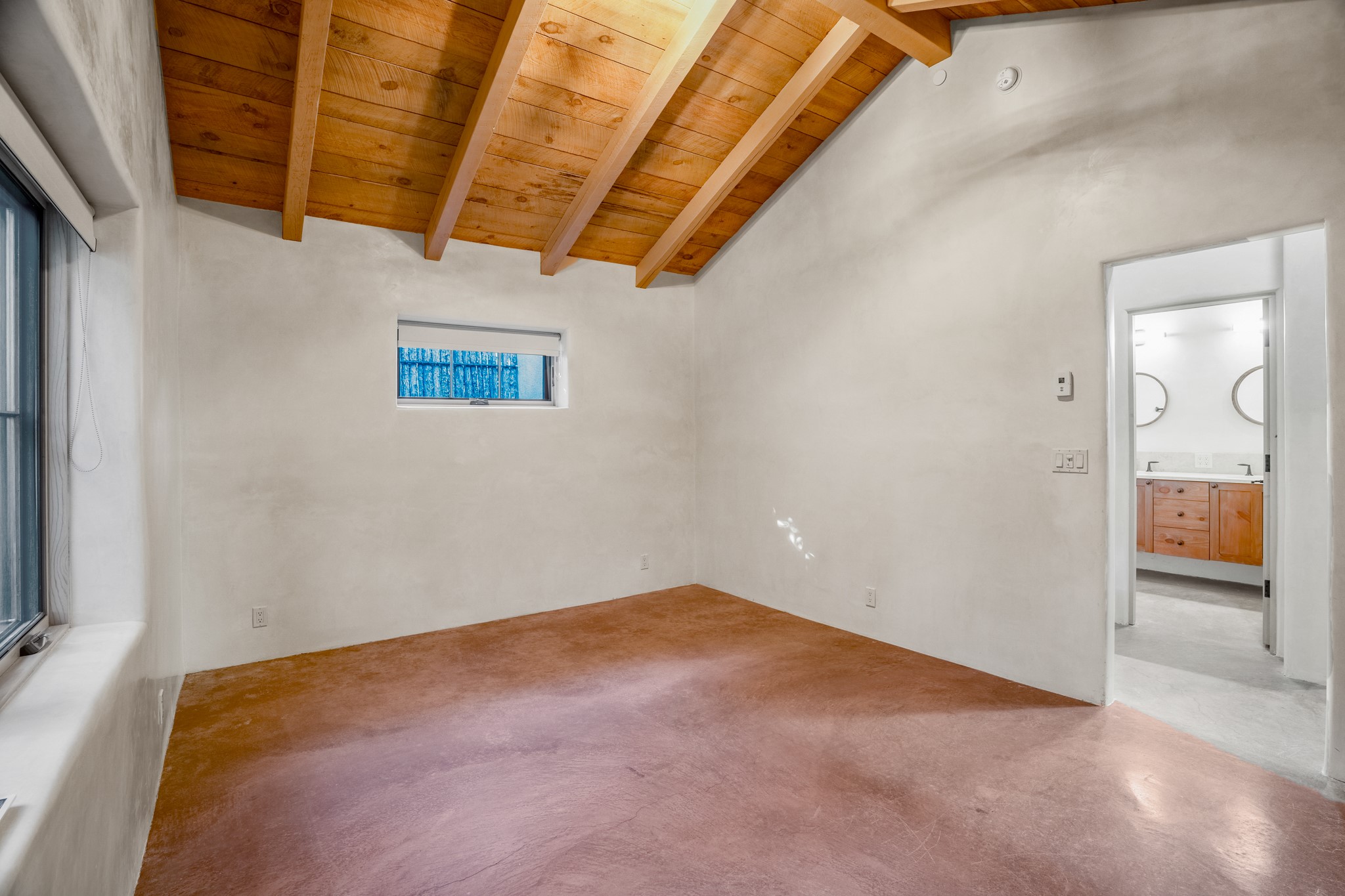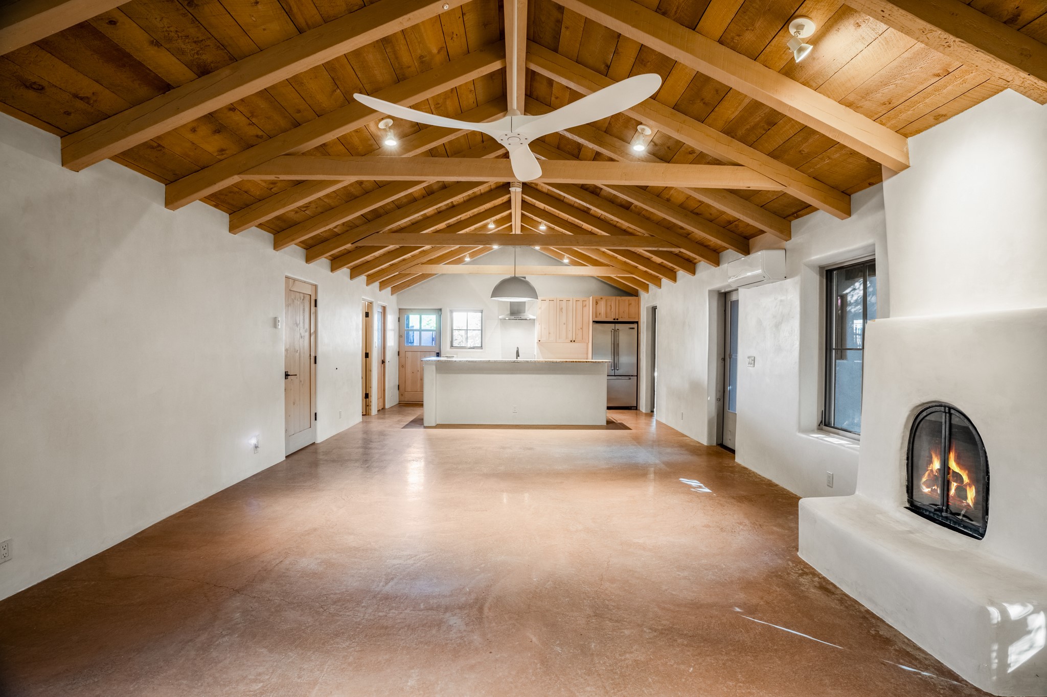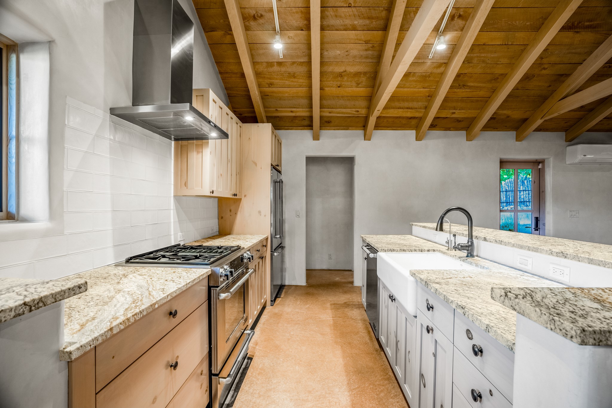 Exuding pride of ownership! Absolutely delightful and pristine 2 bedroom, 2 full bath home with 2 designated parking spaces (1 of which is a carport) single level downtown detached condo on Canyon Rd is minutes to the Santa Fe Plaza, Downtown Subscription, galleries, Patrick Smith Park & fine dining such as Geronimo, The Compound & many others. Charm and warmth abound this Northern New Mexico energy efficient (HERS rating of 53) adobe home built by True North Builders in 2014 with a pitched roof, plaster walls throughout including in the bedrooms and baths. This gem offers an open concept kitchen with granite counters, subway tile backsplash, soft close drawers/cabinets, stainless steel Jenn-air appliances, pantry with built-in shelving, and a breakfast bar. The living room is grand and offers high ceiling with beams and a wood burning fireplace. Both bathrooms are beautifully appointed with high end finishes. Owner's suite has an ensuite bath with double vanities, separate shower and tub and a custom-built walk-in closet. The outdoor spaces offer mature landscaping, drip irrigation, a private front entry walled and gated courtyard in addition to a sweet little yard with a large portal, flagstone patio, walk-way, various sitting areas and gardens. Features and amenities: Concrete floors-2nd bedroom with walk in closet-Ceiling fans-Wood doors-Security system-Radiant in floor heat-Mini splits-Water filtration system at kitchen sink faucet-Hard wired smoke & carbon monoxide detectors-Track lighting-Large laundry room with washer and dryer-Good bedroom separation-Plenty of storage and more. Short term rentals permitted by COA.