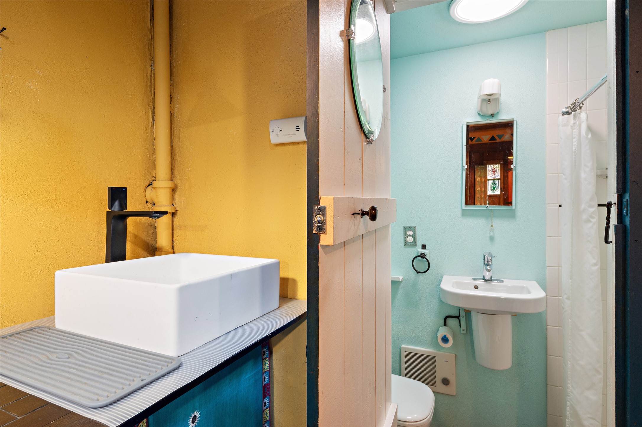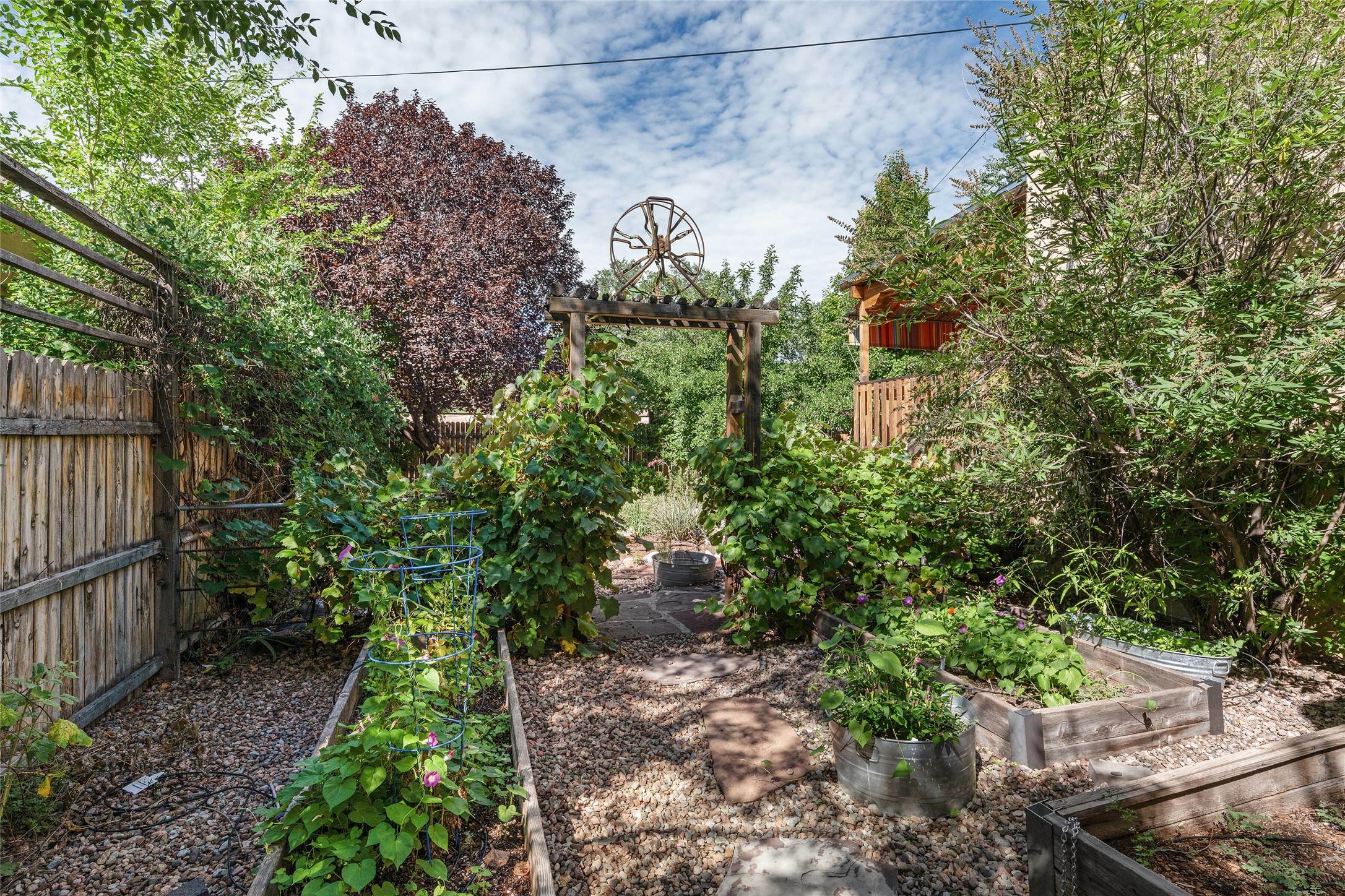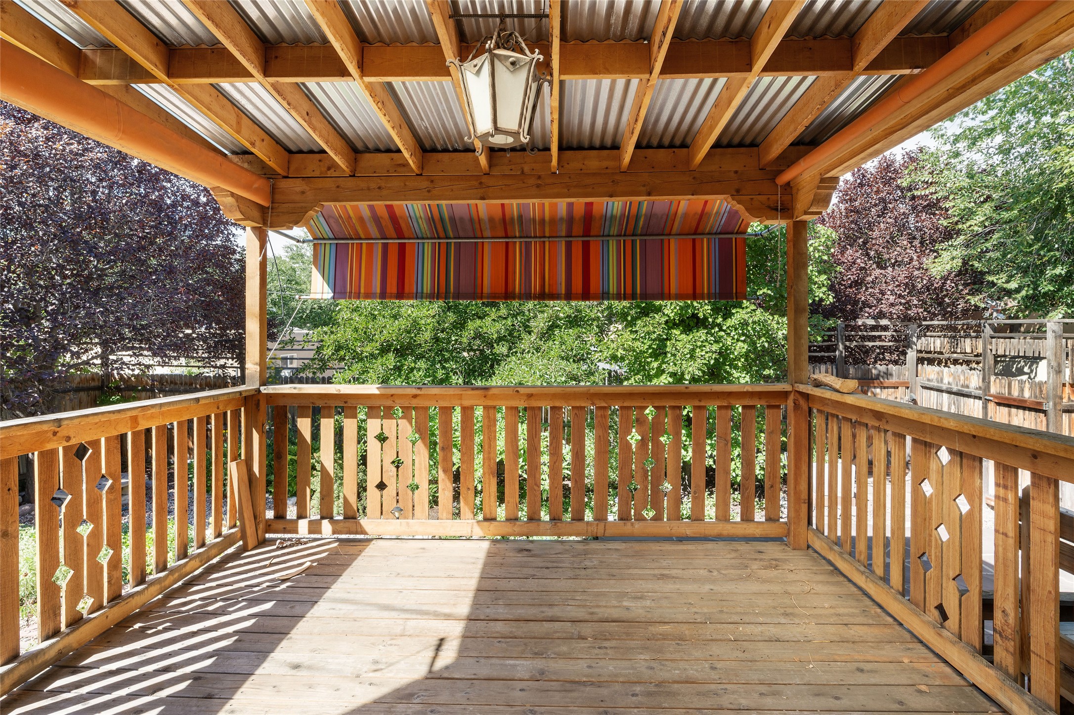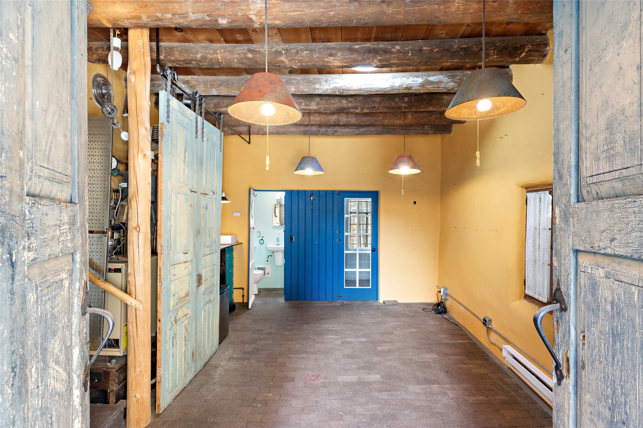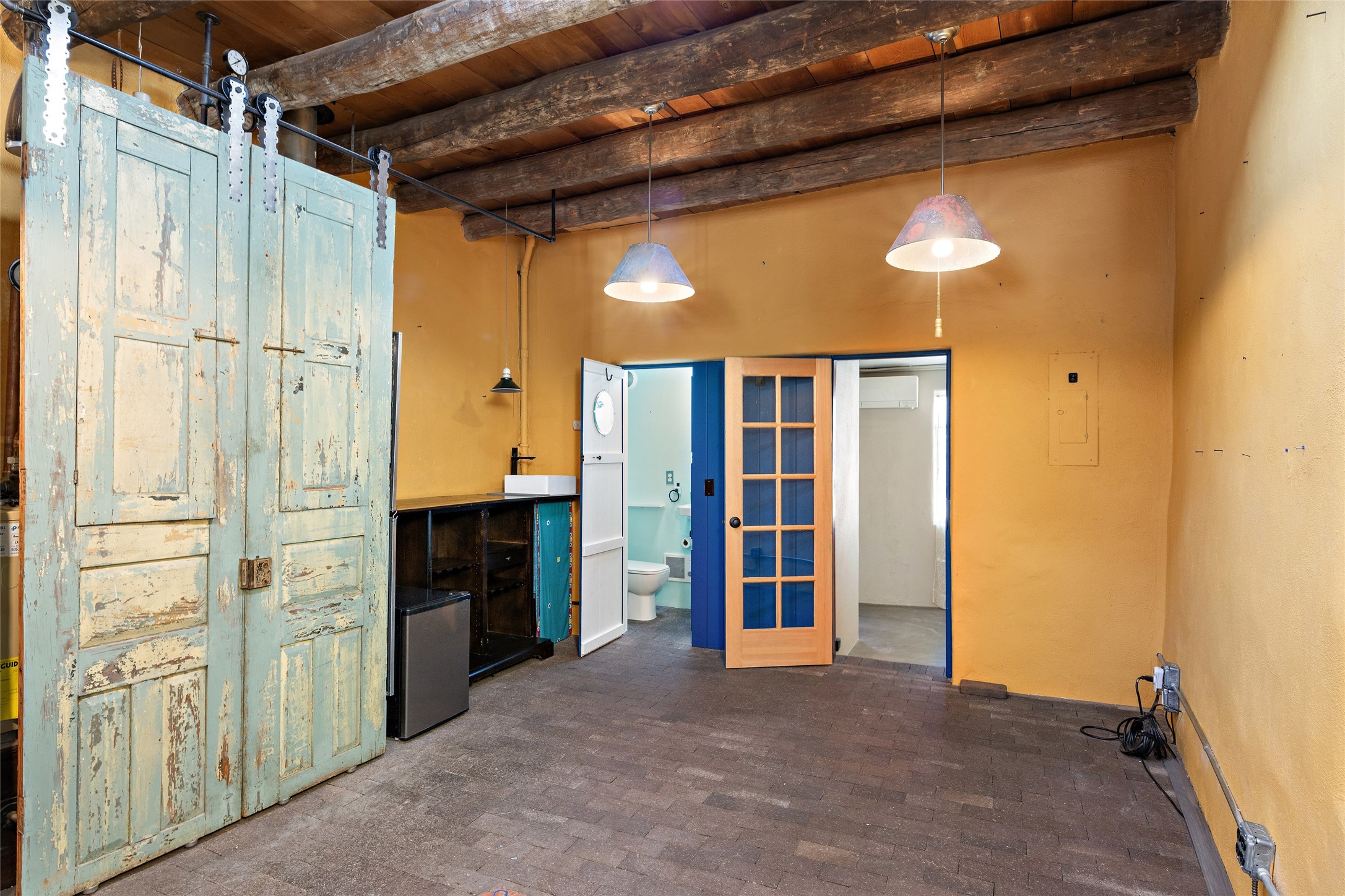 A hop and a skip to Clafoutis, Trader Joe's, Wholefoods around the corner, Santa Fe is on your doorstep. This delightful adobe home built in 1940 is a rare find, it exudes Santa Fe charm with vigas and beautiful, painted, wooden floors. Two of the bedrooms still have traditional cabinetry. The kitchen/dining area was plastered using American Clay, it has painted cabinetry and a genuine vintage Chambers range, just like Georgia O'Keefe's, with French doors leading out to the balcony and a glorious garden which is on drip. The attached garage was converted into a studio with a second bathroom. The studio can be used as a flex room or a third bedroom. The house was updated in 2014 forward, with a new bathroom, new water heater, galvanized pipes were replaced between 2016-2018. In 2020 it was re-stuccoed and a new roof put on with a transferable warranty until 2030. It has mini splits and a Whole House Water Filtration System was added. It has been loved and cared for and kept in good condition. The fireplace is non-functional.
