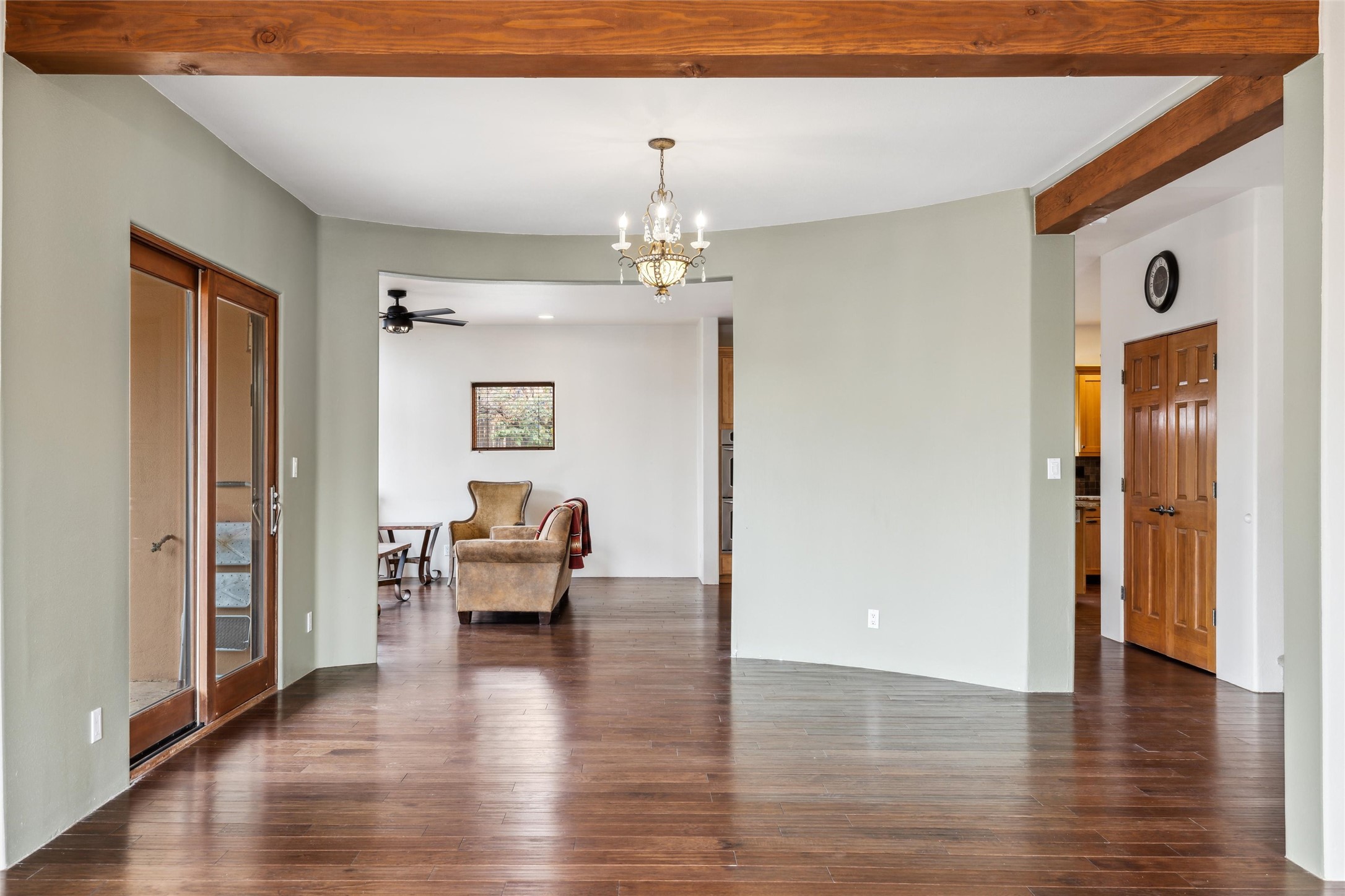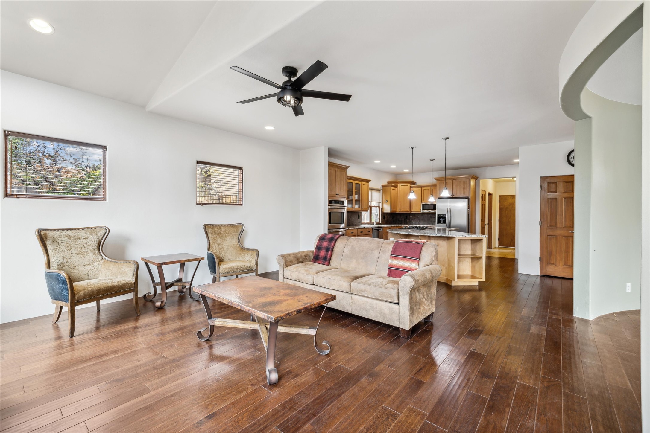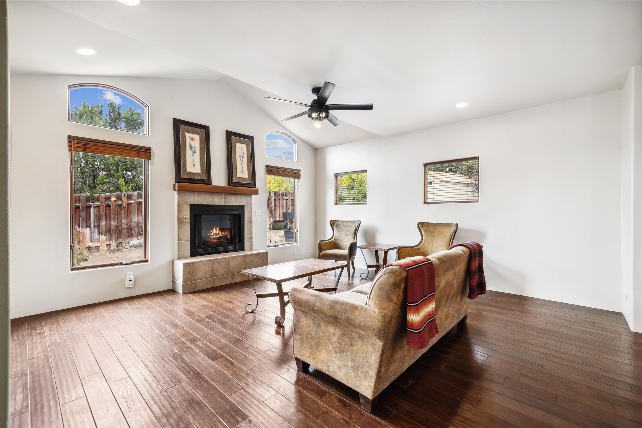 Experience the allure of White Rock, New Mexico, in this elegant Pion Trails residence. With over 2,800 square feet of living space, this home offers a luxurious lifestyle. The remodeled kitchen, complete with a Bosch dishwasher, is a chef's delight. Four bedrooms and three baths ensure ample space for your family. However, it's the expansive yard that sets this property apart. Positioned at the end of a tranquil cul-de-sac, the yard offers endless possibilities for relaxation and recreation. Beyond the gate lies direct access to open space and a park, providing the perfect balance of privacy and nature at your doorstep. Live the dream in this spacious, well-appointed home.
