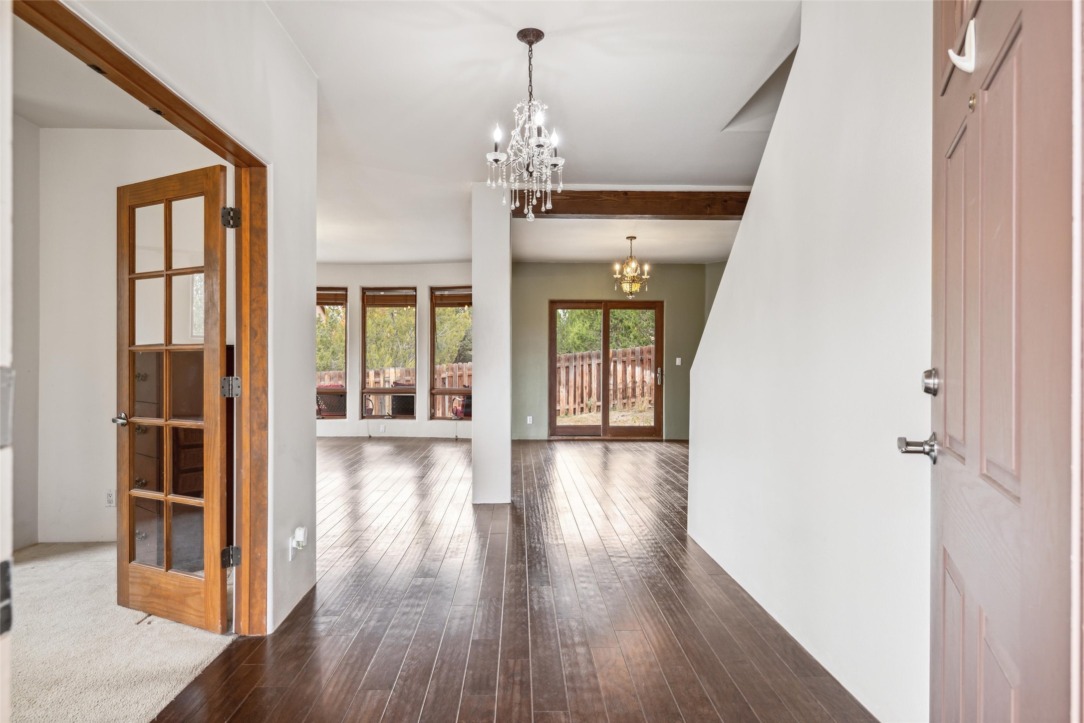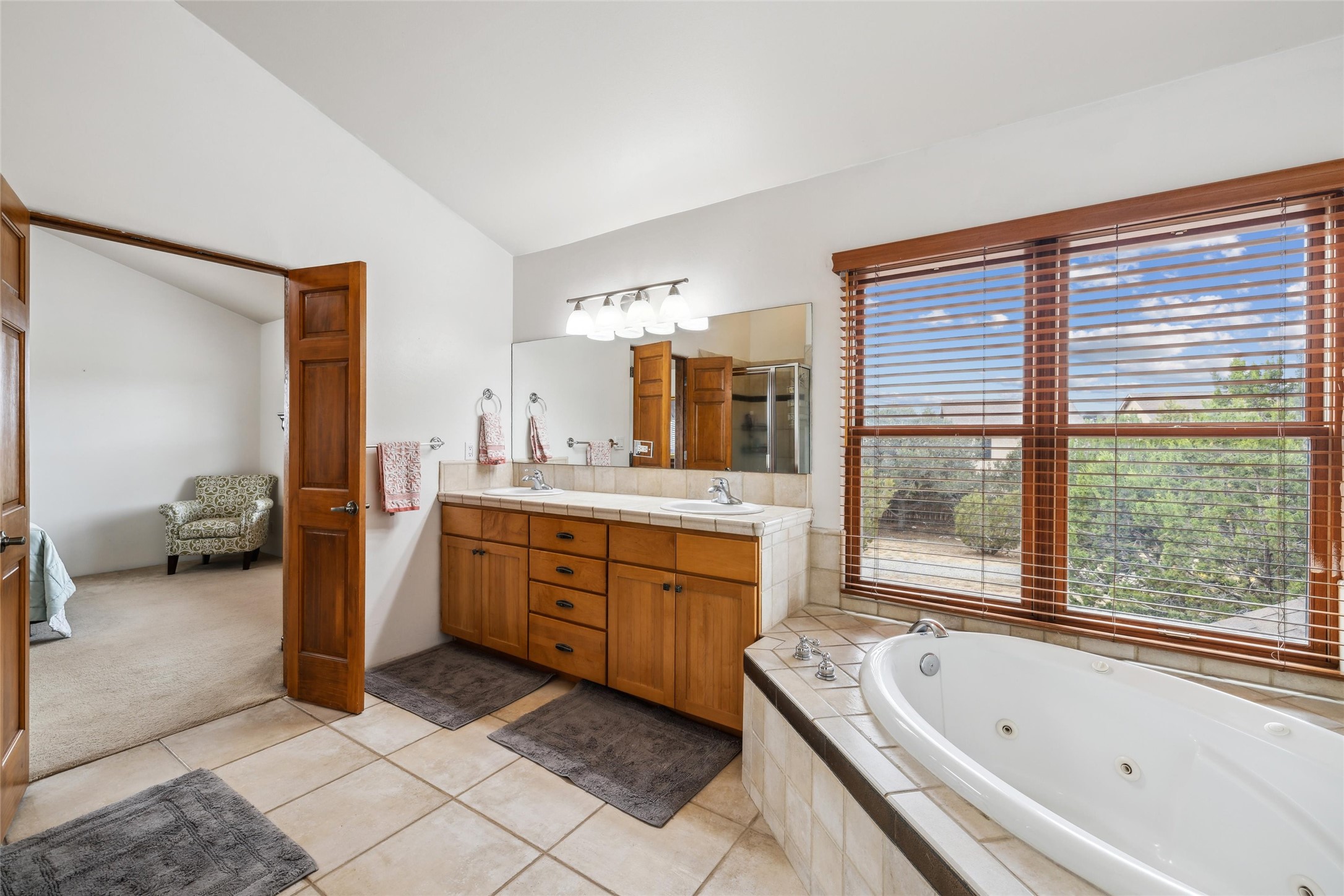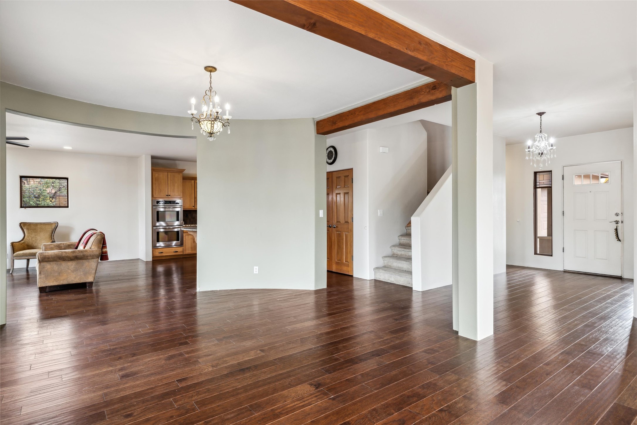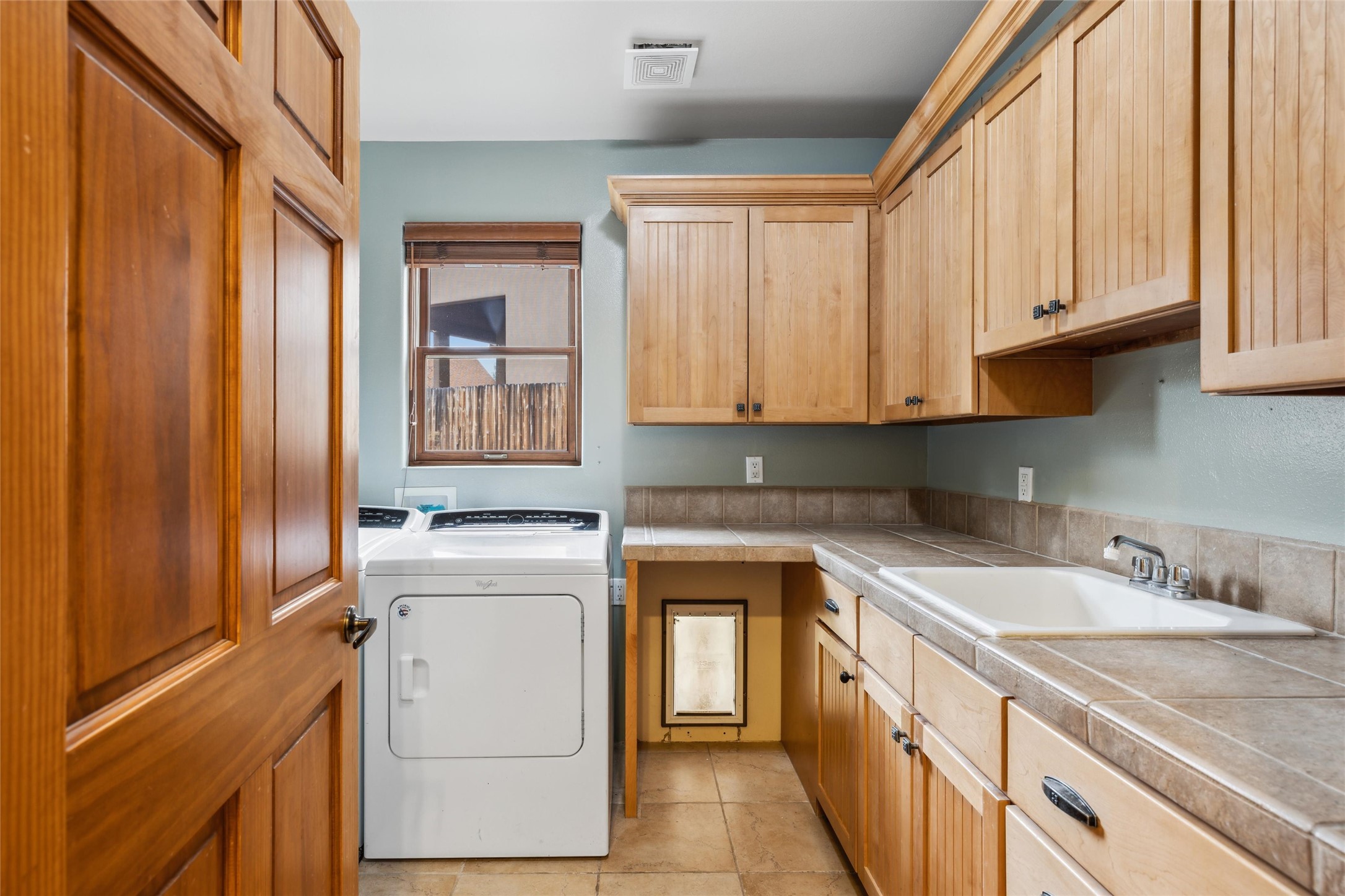 Experience the allure of White Rock, New Mexico, in this elegant Pion Trails residence. With over 2,800 square feet of living space, this home offers a luxurious lifestyle. The remodeled kitchen, complete with a Bosch dishwasher, is a chef's delight. Four bedrooms and three baths ensure ample space for your family. However, it's the expansive yard that sets this property apart. Positioned at the end of a tranquil cul-de-sac, the yard offers endless possibilities for relaxation and recreation. Beyond the gate lies direct access to open space and a park, providing the perfect balance of privacy and nature at your doorstep. Live the dream in this spacious, well-appointed home.