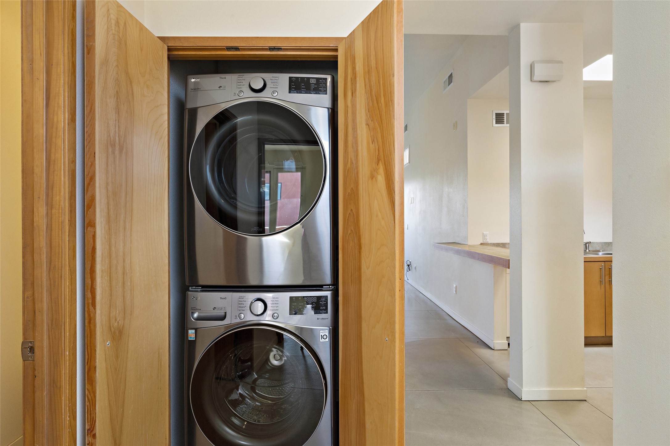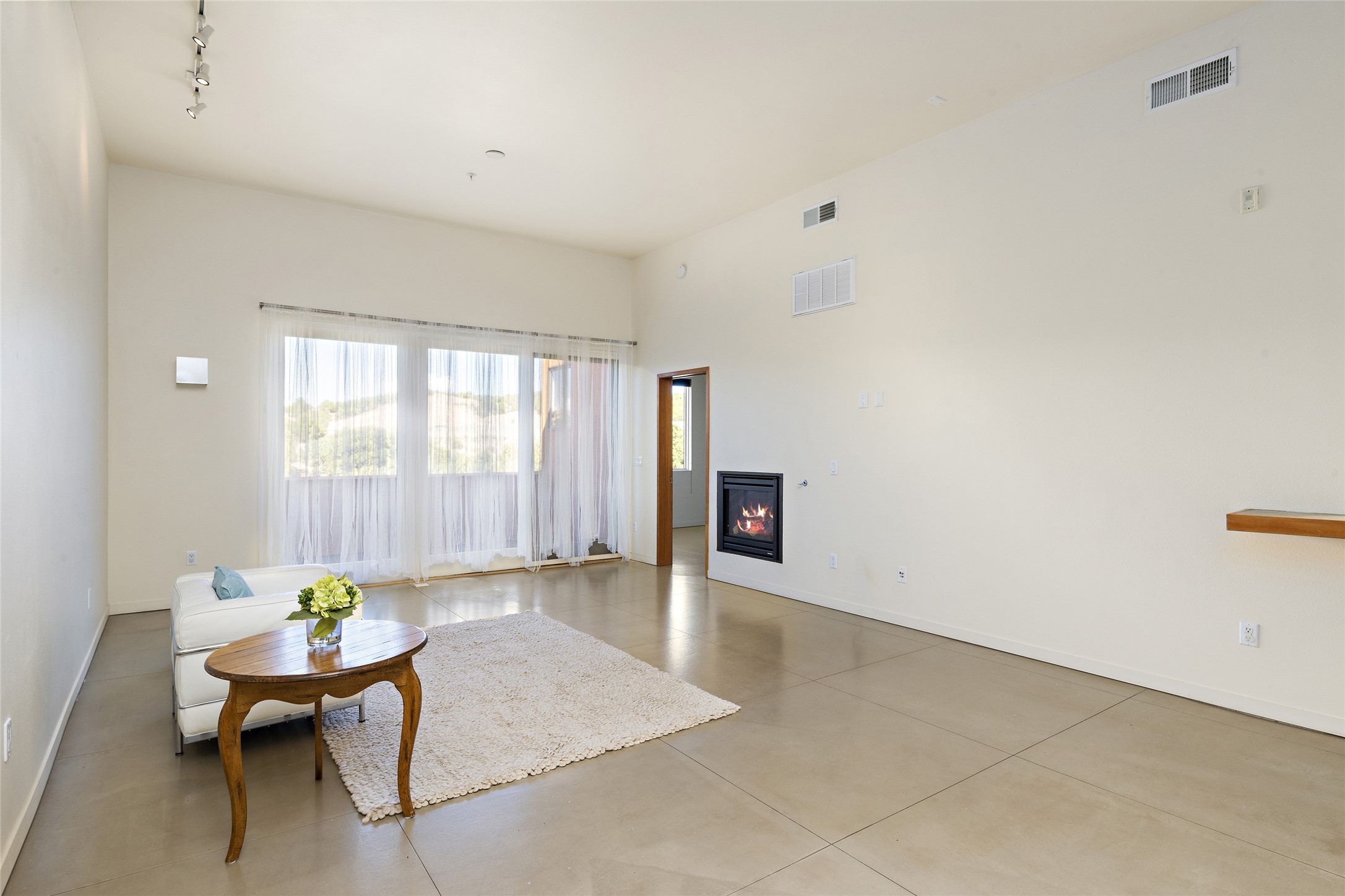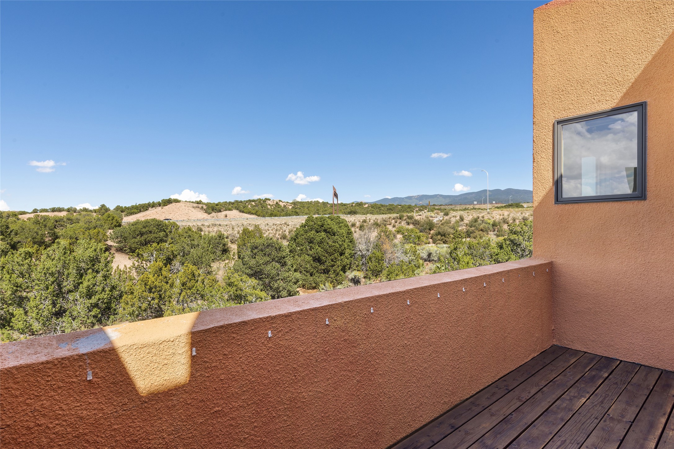 This light and bright two bedroom and 1-3/4 bathroom Zocalo condo is ideally located in Santa Fe's Northside with easy access to the 599 Bypass Highway and just minutes to downtown. Open and modern, the space has high ceilings in the large living area with a wooded view deck via sliding glass doors. A gas burning fireplace flanks the living area adding a warm detail to the space. The primary bedroom ensuite is separated from the secondary bedroom, boasting lots of storage, a walk-in closet, and a large spa-like bathroom with a large soaking tub and tiled shower. The secondary bedroom has its own private view deck from a sliding glass door. The kitchen opens up on to the living/dining area with a laundry area tucked away in a closet with a full size stackable washer and dryer. Ideal as a full time, second home or lucrative rental, the condo comes with an oversized, detached one-car garage and an additional designated parking space. The condo has forced air heating and central refrigerated A/C. Amenities include a fitness center, swimming pool, conference room, clubhouse kitchen, all maintained by the HOA close to shopping and great walking/bike trails.