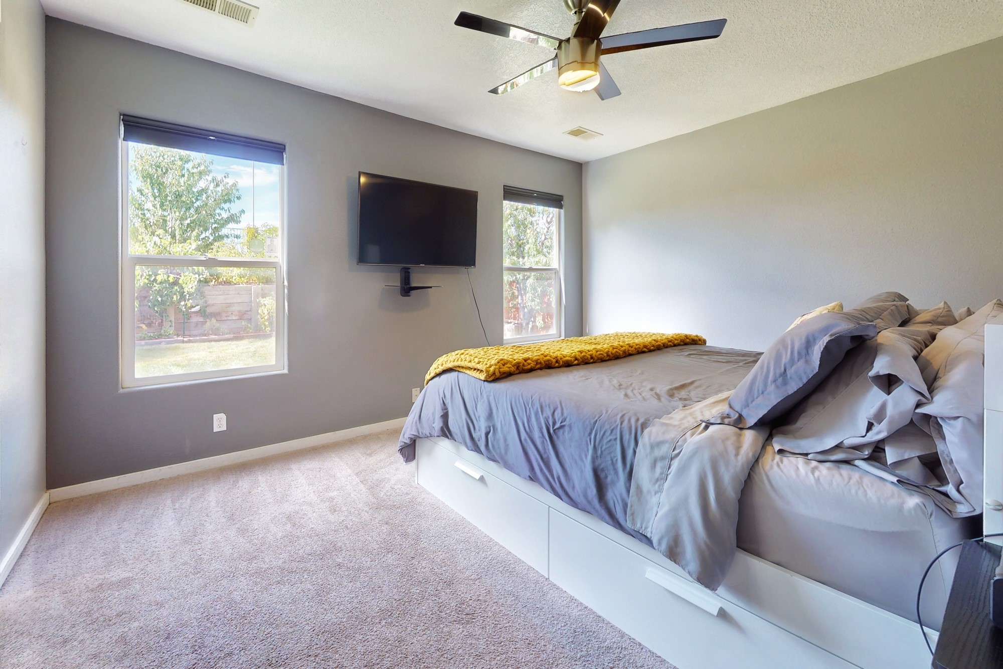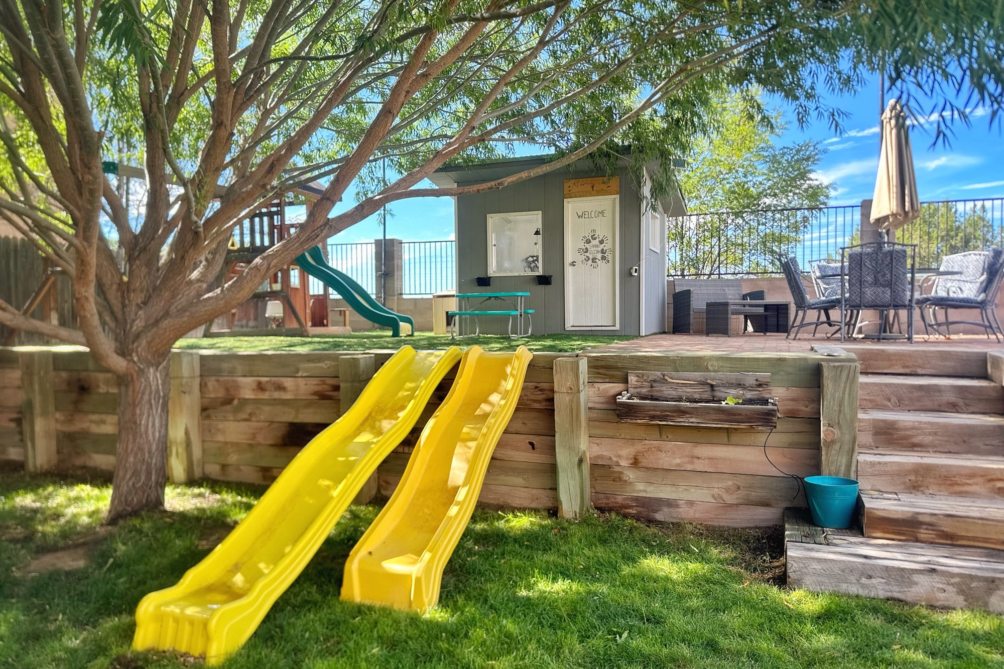 Don't Miss Out on this Exceptional Golf Course Home! Spacious and open, this 3-bedroom, 2-bathroom home offers the perfect blend of comfort and style. Enjoy an upgraded kitchen and bathrooms with granite countertops and custom tile work. Ceiling fans in all rooms along with added recessed lighting offer the custom touch you are looking for. The open-concept design connects the living space with the kitchen and dining area, perfect for entertaining friends and family. Tiled floors throughout the main living areas and kitchen, accentuated by a cozy fireplace. Natural light floods the space, creating a warm and inviting ambiance. The eat-in kitchen boasts a good-sized pantry for all your storage needs. Outdoor living has been thoughtfully designed and expands the living space of the home to enjoy it to its fullest! Fully landscaped with mature trees and a drip system. Completing the package is a finished and heated 2-car garage, keeping your vehicles safe and providing extra storage space. Nothing is needed here but a proud new owner.