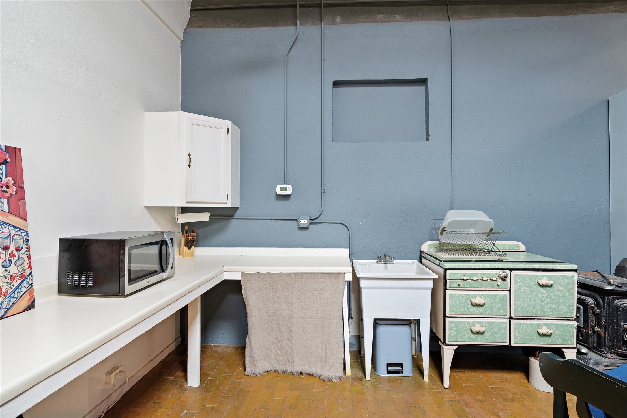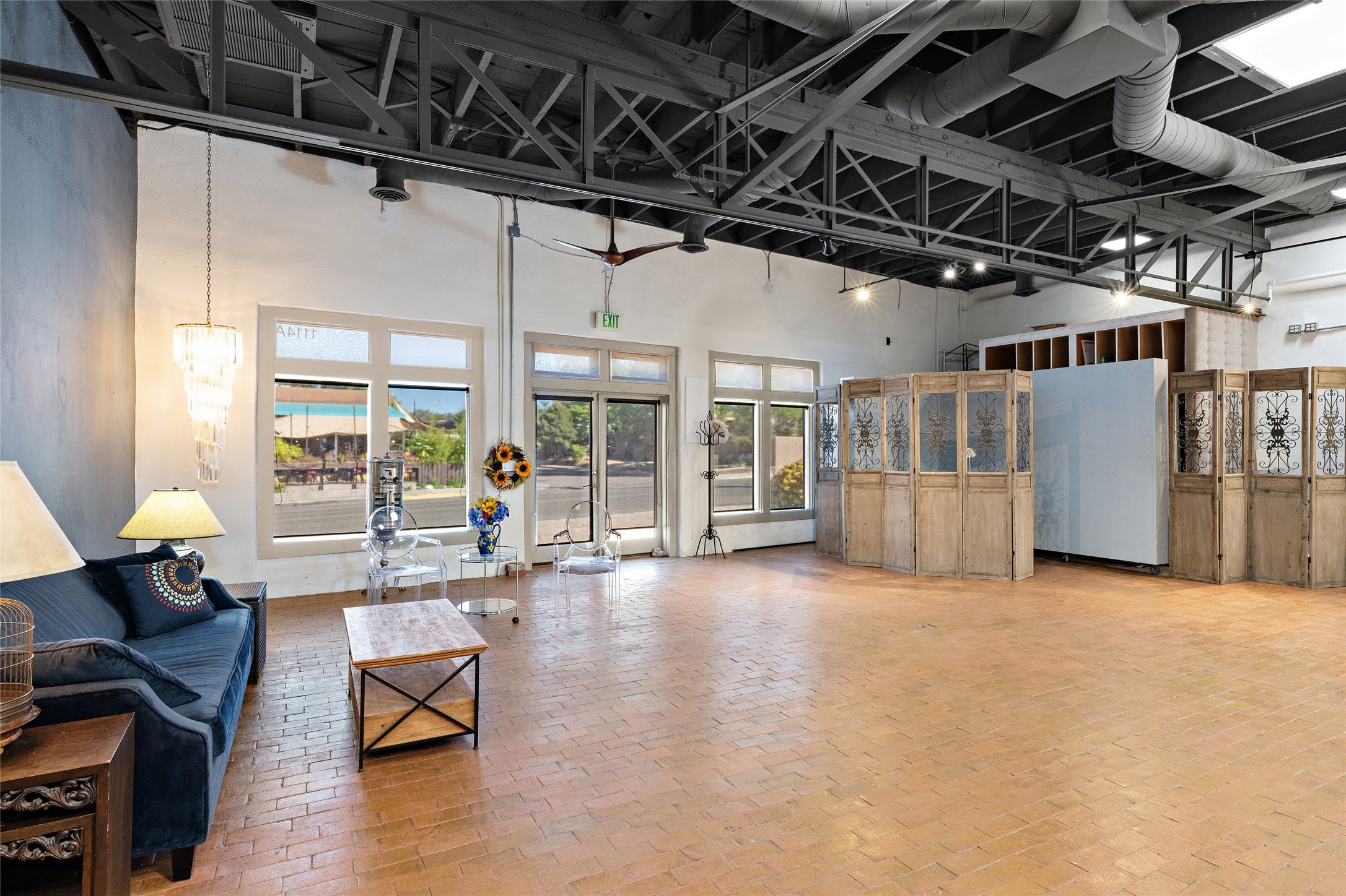 LIVE/WORK! Calling all Artists, Architects, Designers, Creatives, and Santa Fe Free Spirits. Here is your blank canvas to build your dream live/work space in a prime location in Santa Fe, New Mexico. Located between the Railyard and Baca Art Districts, and across the street from the ever-popular Tune-Up Cafe, the space is an excellent location for your studio and gallery. Formerly known as The City of Mud, two units comprise this rare and wonderful opportunity. Unit A is a grand open studio space with high ceilings, four skylights and three movable white gallery walls; perfect for displaying your work in the best possible light. Behind this grand studio is Unit B, separated from A through double glass doors, this is the place that you can call home with a modern kitchen, living and dining areas, a bedroom, and even a jetted tub. The combination of these units is an artist's dream where you can follow your heart's desire, creating your visions with a place to display them for all the world to see. Excellent parking in building parking lot.