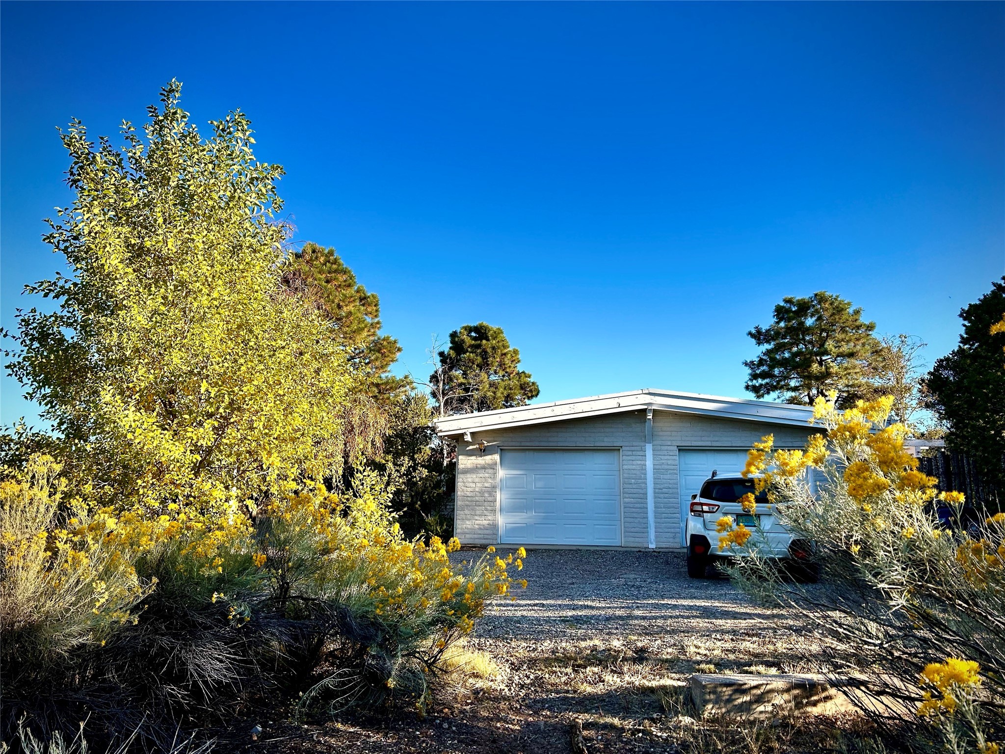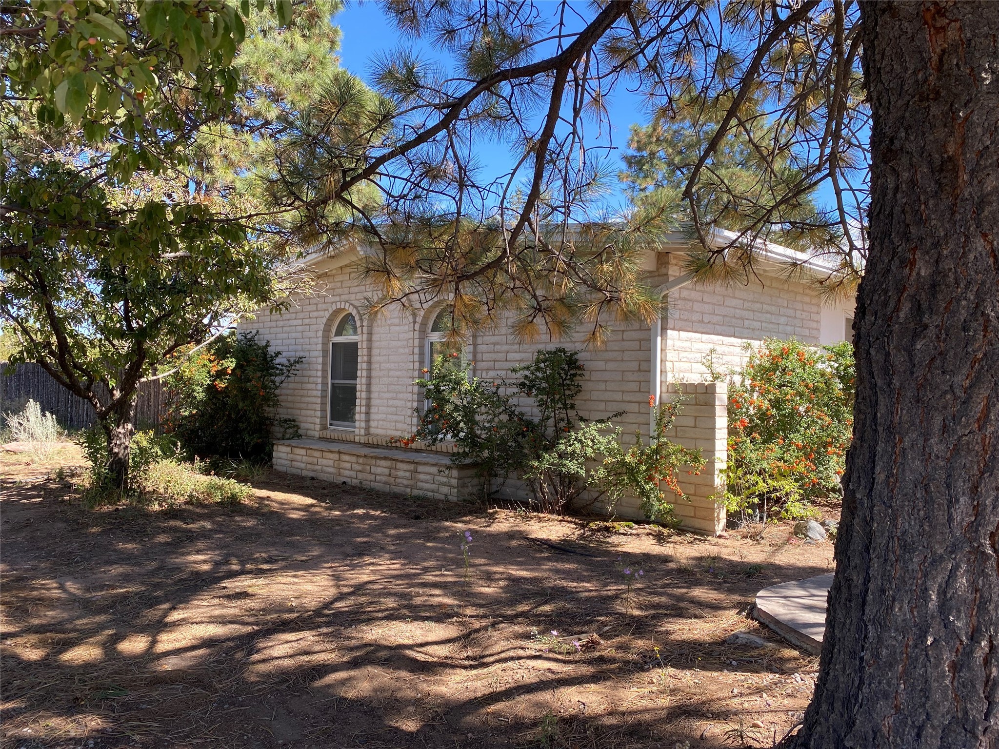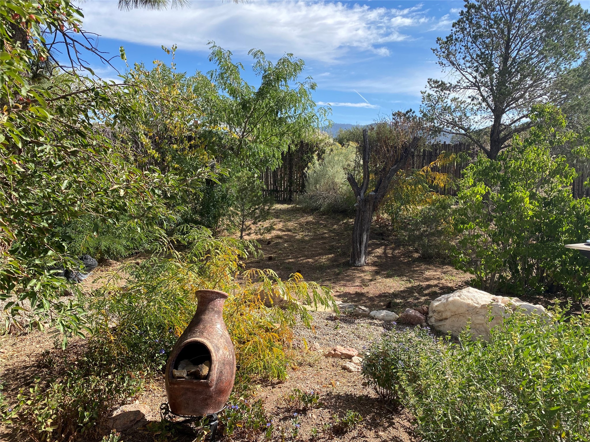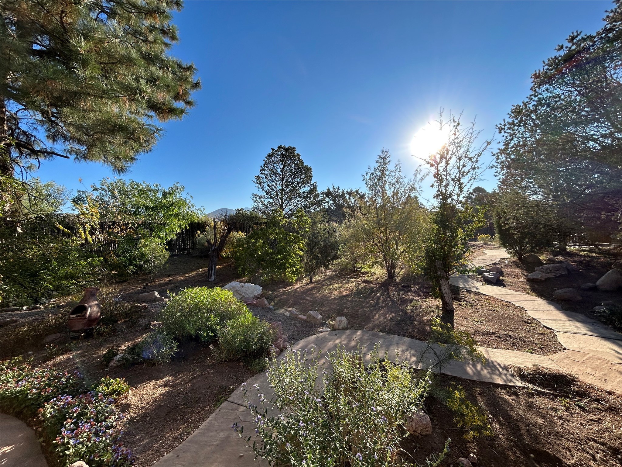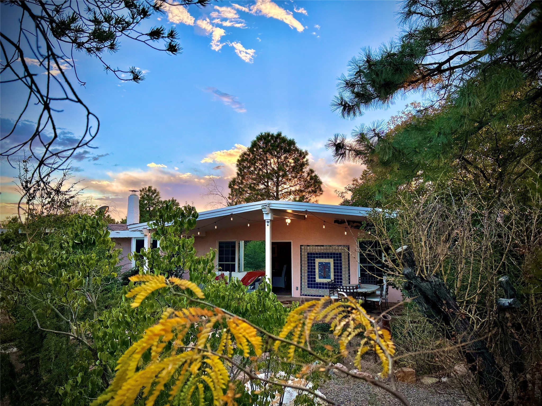 This home sits on an amazing 1 acre lot within the desirable Sol y Lomas neighborhood, close to town but on a quiet dirt road. The 1/4 acre fenced backyard features a great covered portal with views of Sun and Moon Mountains, a flagstone pathway leading to a raised garden bed and an "interesting" pagoda structure. The lush landscaping includes five majestic Ponderosa trees, four Apple trees among many other pine and deciduous trees. The property is being sold "as-is" due to some conditions and the purchase will be limited to cash buyers only. The price is reflective of the cost of the improvements needed. The home is a well laid out single level floor plan with 3 bedrooms, 1 full bath and 1 3/4 bath. It has a beautiful living area that expands to the outdoor covered portal. The back workroom near the garage is not included in the square footage. The 2 car attached garage is finished and features two separate bays. This property is near many amenities including shopping, restaurants, Christus St. Vincent hospital and just a 10 minute drive to the Santa Fe Plaza.