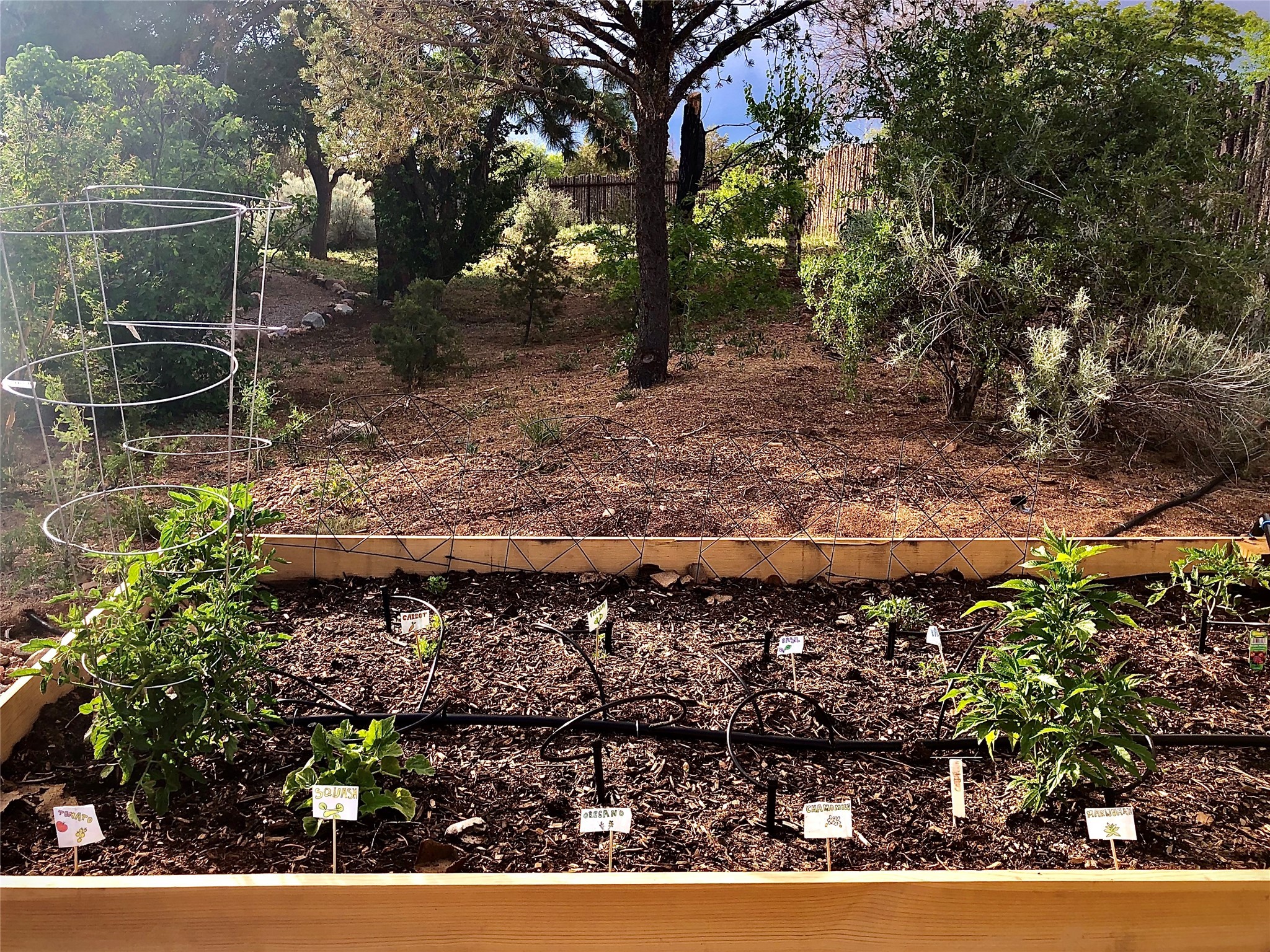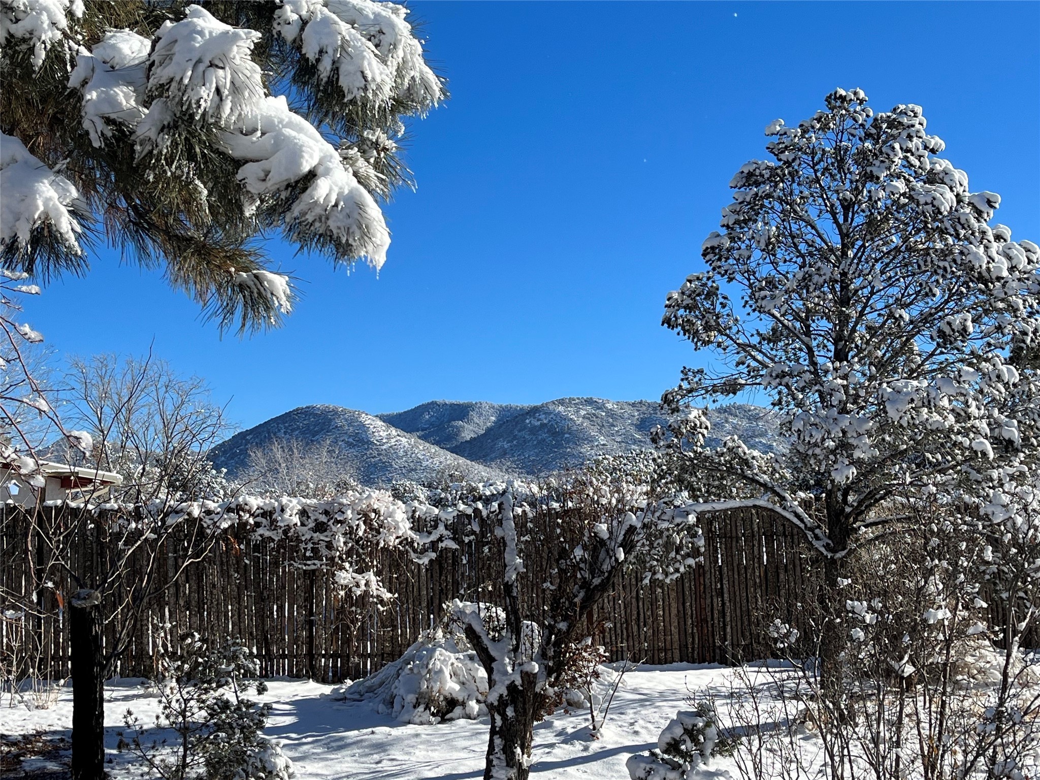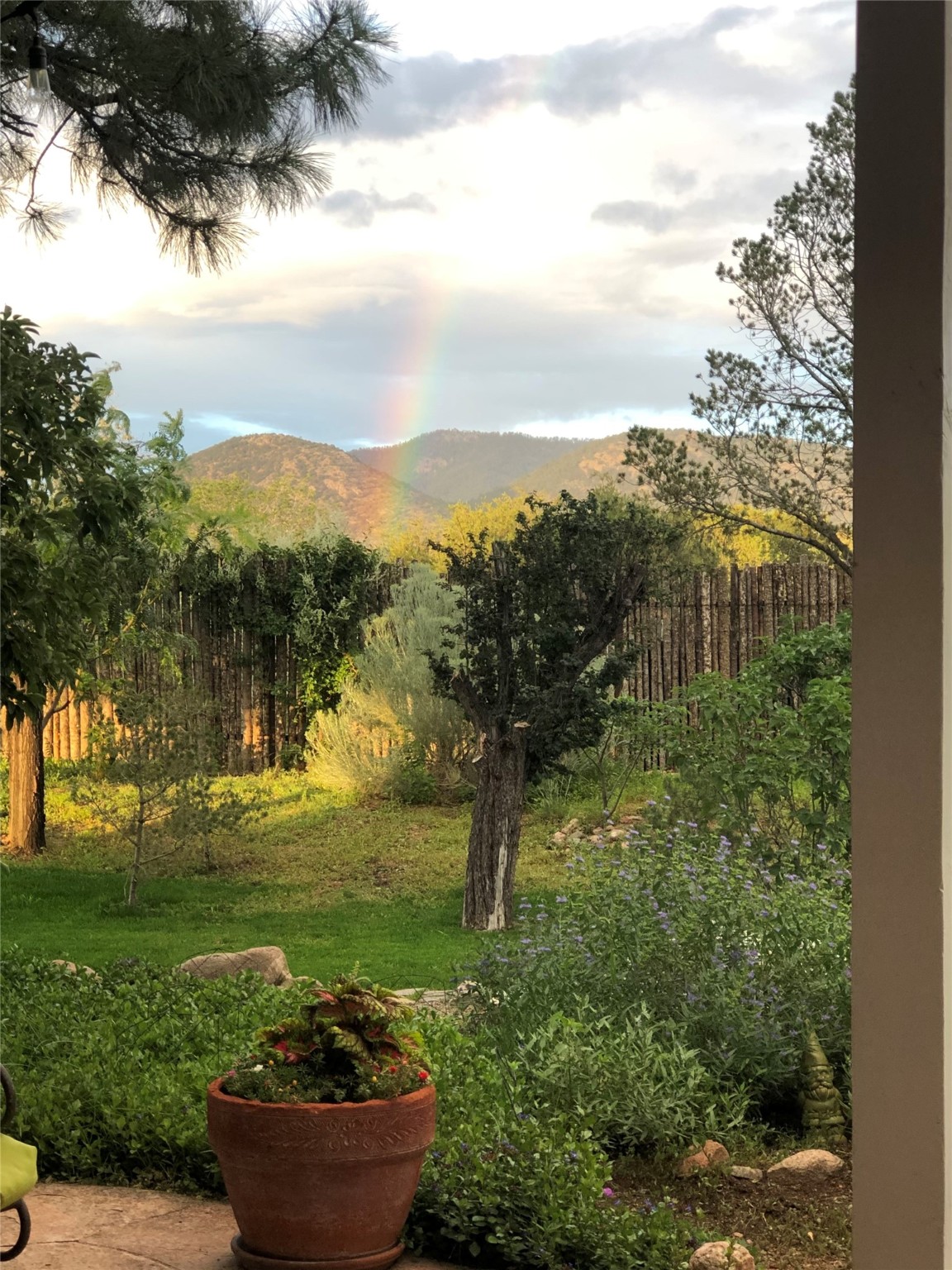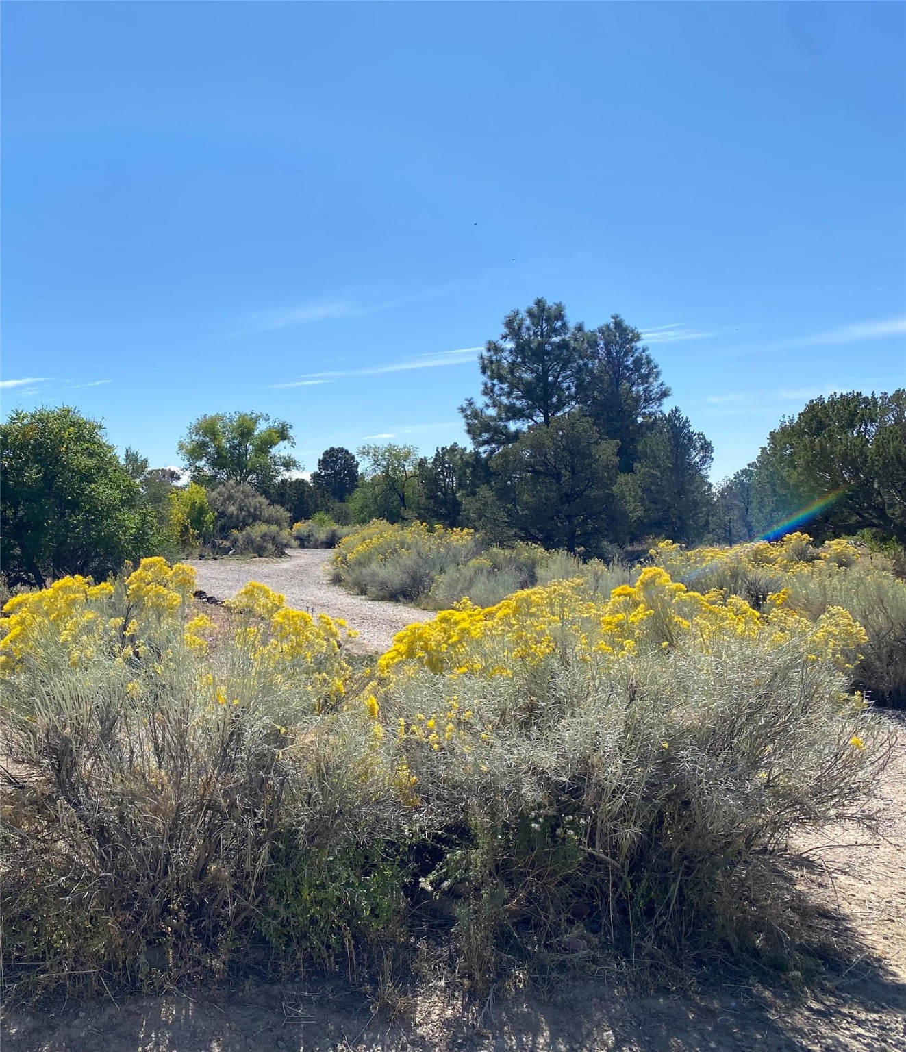 This home sits on an amazing 1 acre lot within the desirable Sol y Lomas neighborhood, close to town but on a quiet dirt road. The 1/4 acre fenced backyard features a great covered portal with views of Sun and Moon Mountains, a flagstone pathway leading to a raised garden bed and an "interesting" pagoda structure. The lush landscaping includes five majestic Ponderosa trees, four Apple trees among many other pine and deciduous trees. The property is being sold "as-is" due to some conditions and the purchase will be limited to cash buyers only. The price is reflective of the cost of the improvements needed. The home is a well laid out single level floor plan with 3 bedrooms, 1 full bath and 1 3/4 bath. It has a beautiful living area that expands to the outdoor covered portal. The back workroom near the garage is not included in the square footage. The 2 car attached garage is finished and features two separate bays. This property is near many amenities including shopping, restaurants, Christus St. Vincent hospital and just a 10 minute drive to the Santa Fe Plaza.