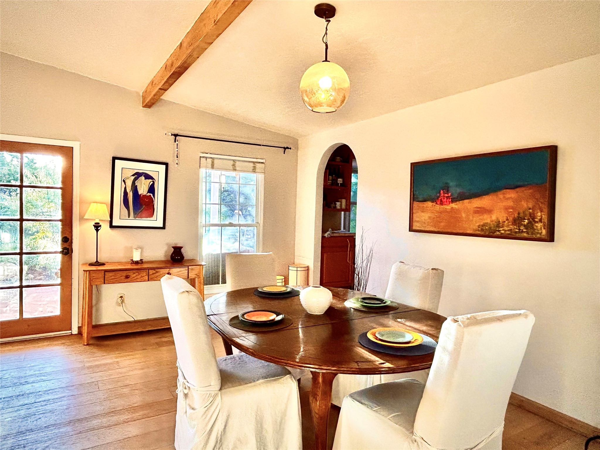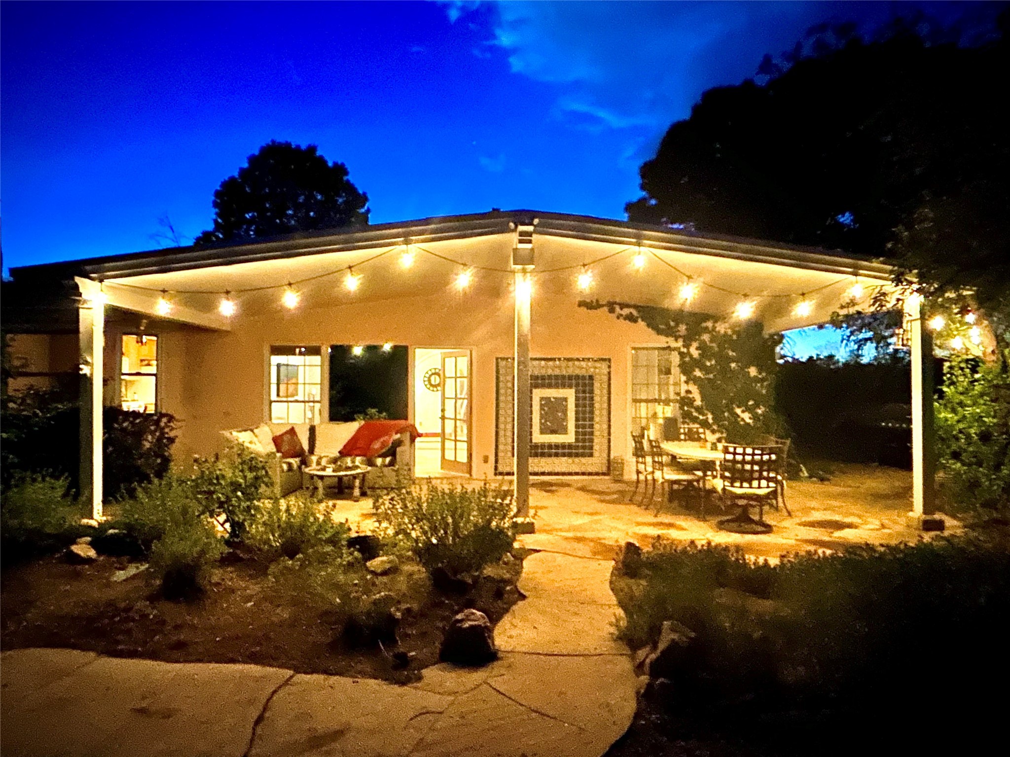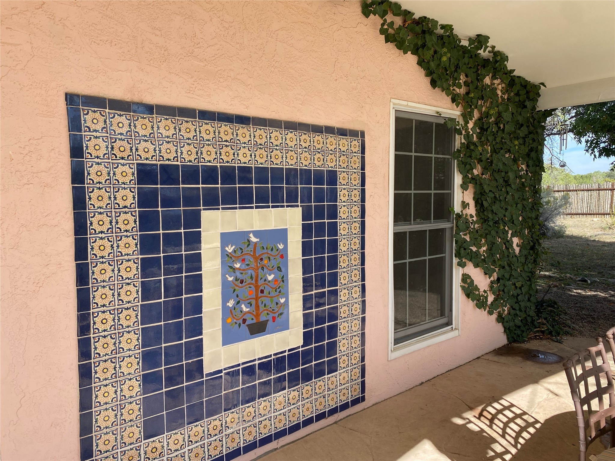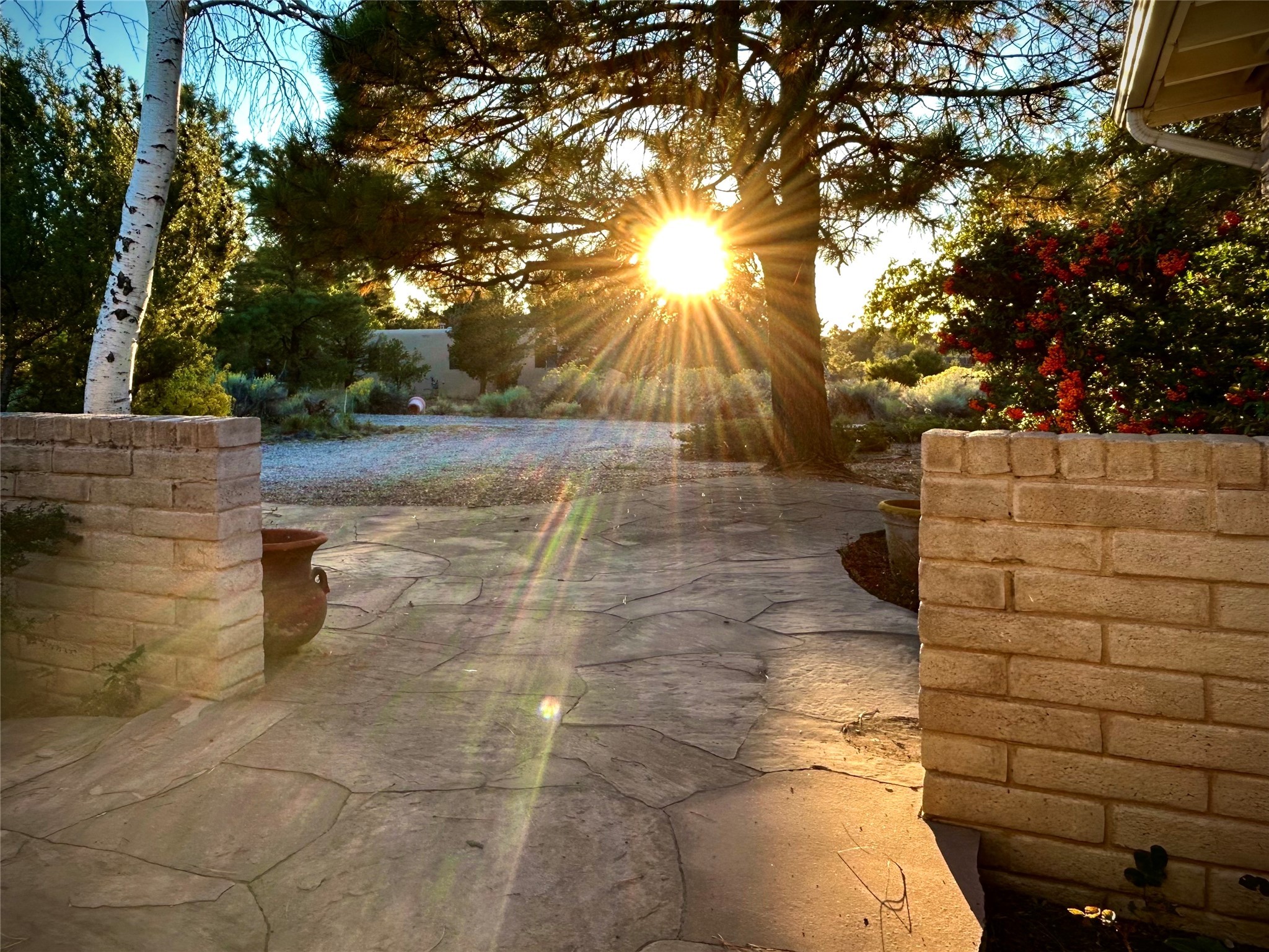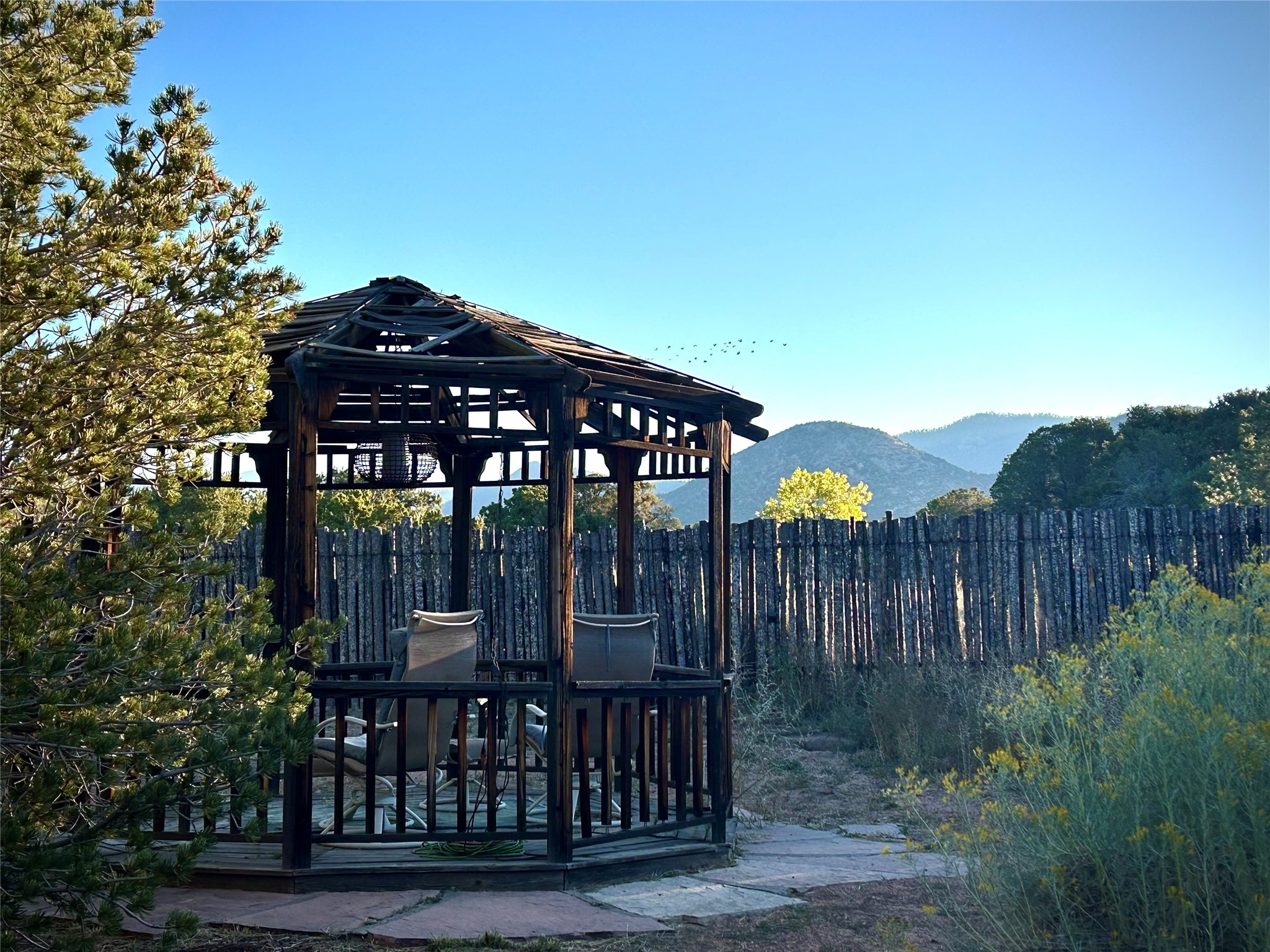 This home sits on an amazing 1 acre lot within the desirable Sol y Lomas neighborhood, close to town but on a quiet dirt road. The 1/4 acre fenced backyard features a great covered portal with views of Sun and Moon Mountains, a flagstone pathway leading to a raised garden bed and an "interesting" pagoda structure. The lush landscaping includes five majestic Ponderosa trees, four Apple trees among many other pine and deciduous trees. The property is being sold "as-is" due to some conditions and the purchase will be limited to cash buyers only. The price is reflective of the cost of the improvements needed. The home is a well laid out single level floor plan with 3 bedrooms, 1 full bath and 1 3/4 bath. It has a beautiful living area that expands to the outdoor covered portal. The back workroom near the garage is not included in the square footage. The 2 car attached garage is finished and features two separate bays. This property is near many amenities including shopping, restaurants, Christus St. Vincent hospital and just a 10 minute drive to the Santa Fe Plaza.