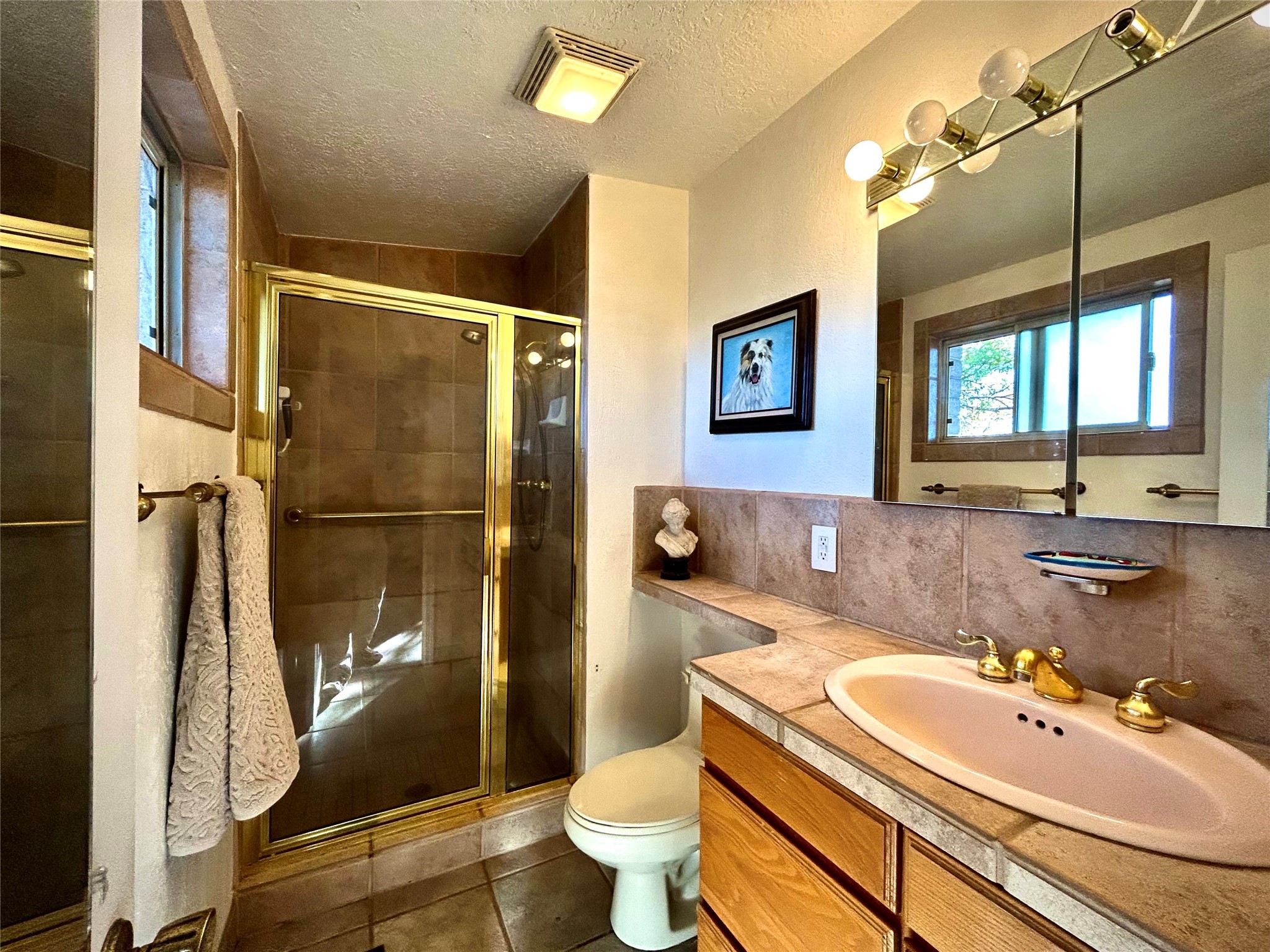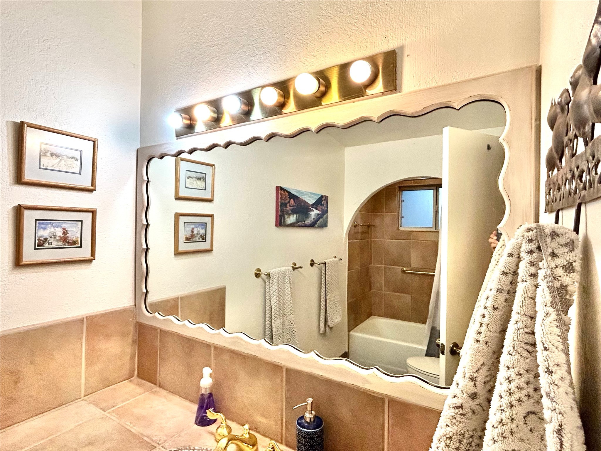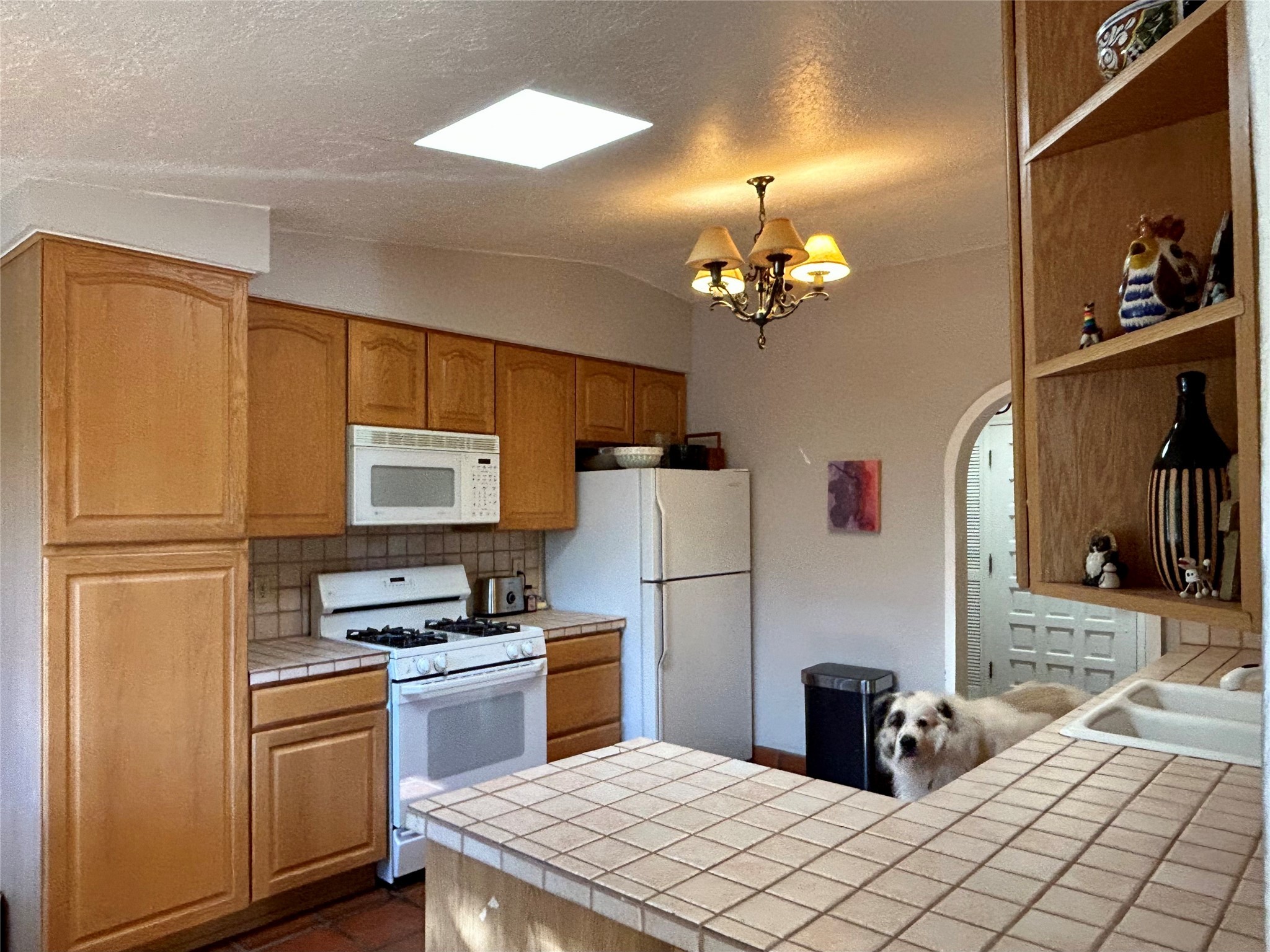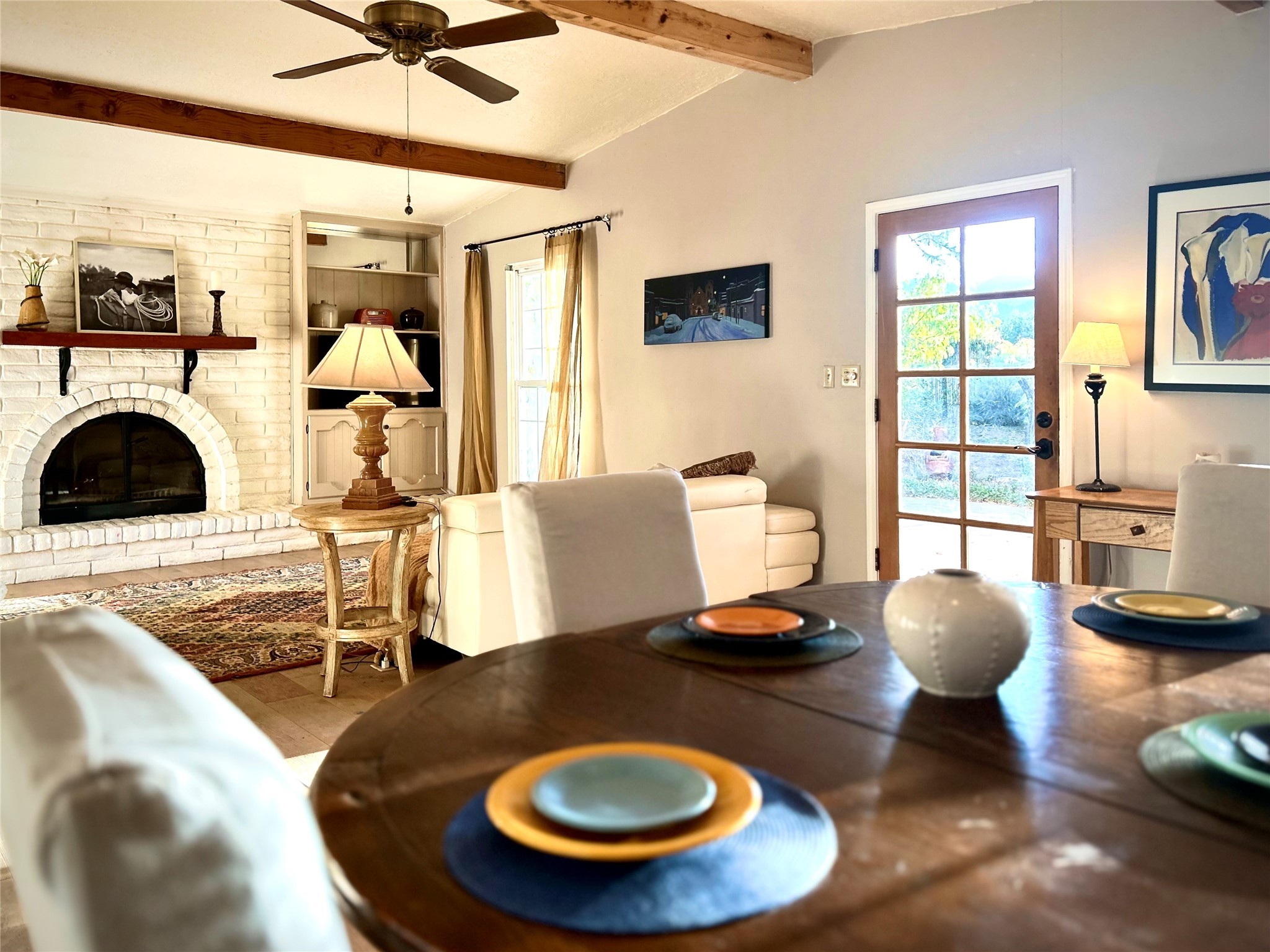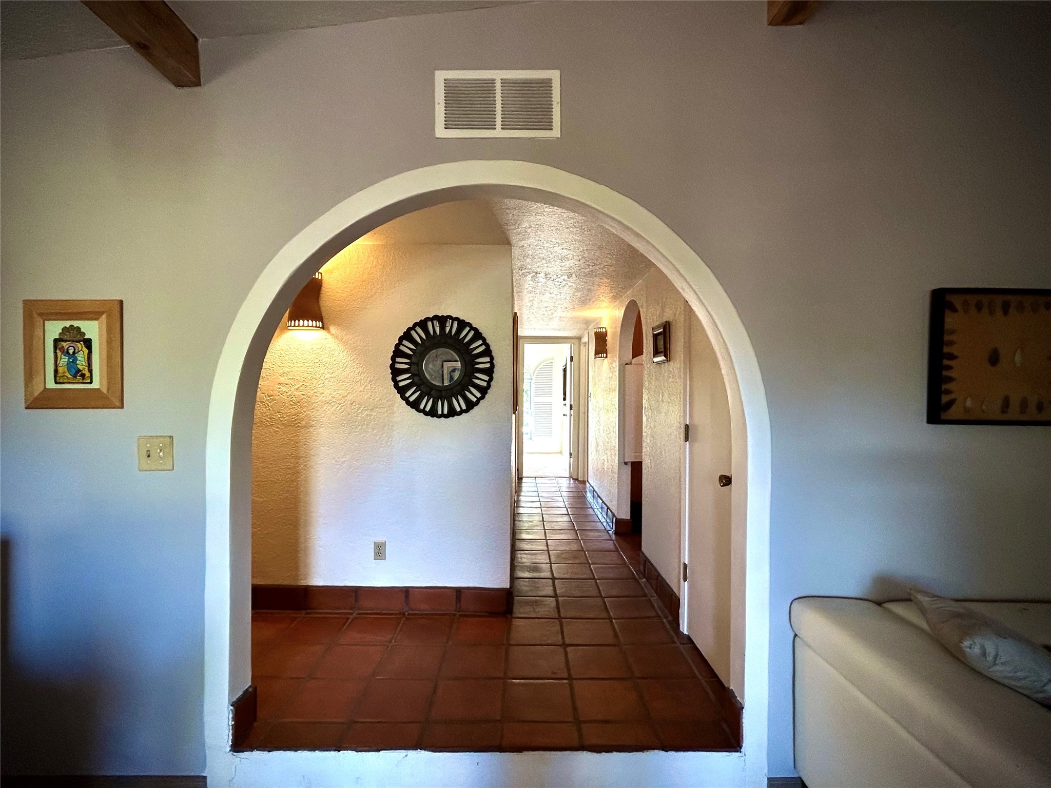 This home sits on an amazing 1 acre lot within the desirable Sol y Lomas neighborhood, close to town but on a quiet dirt road. The 1/4 acre fenced backyard features a great covered portal with views of Sun and Moon Mountains, a flagstone pathway leading to a raised garden bed and an "interesting" pagoda structure. The lush landscaping includes five majestic Ponderosa trees, four Apple trees among many other pine and deciduous trees. The property is being sold "as-is" due to some conditions and the purchase will be limited to cash buyers only. The price is reflective of the cost of the improvements needed. The home is a well laid out single level floor plan with 3 bedrooms, 1 full bath and 1 3/4 bath. It has a beautiful living area that expands to the outdoor covered portal. The back workroom near the garage is not included in the square footage. The 2 car attached garage is finished and features two separate bays. This property is near many amenities including shopping, restaurants, Christus St. Vincent hospital and just a 10 minute drive to the Santa Fe Plaza.