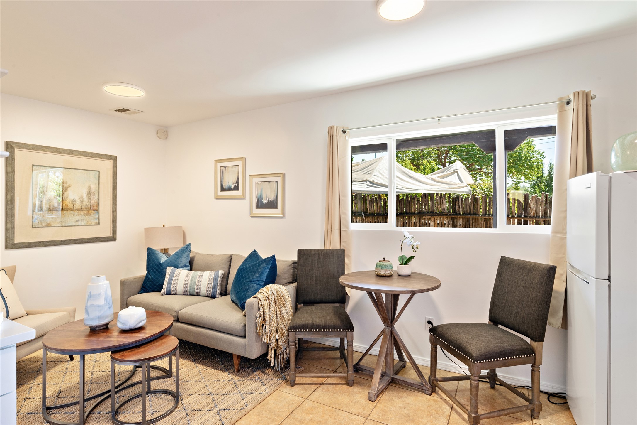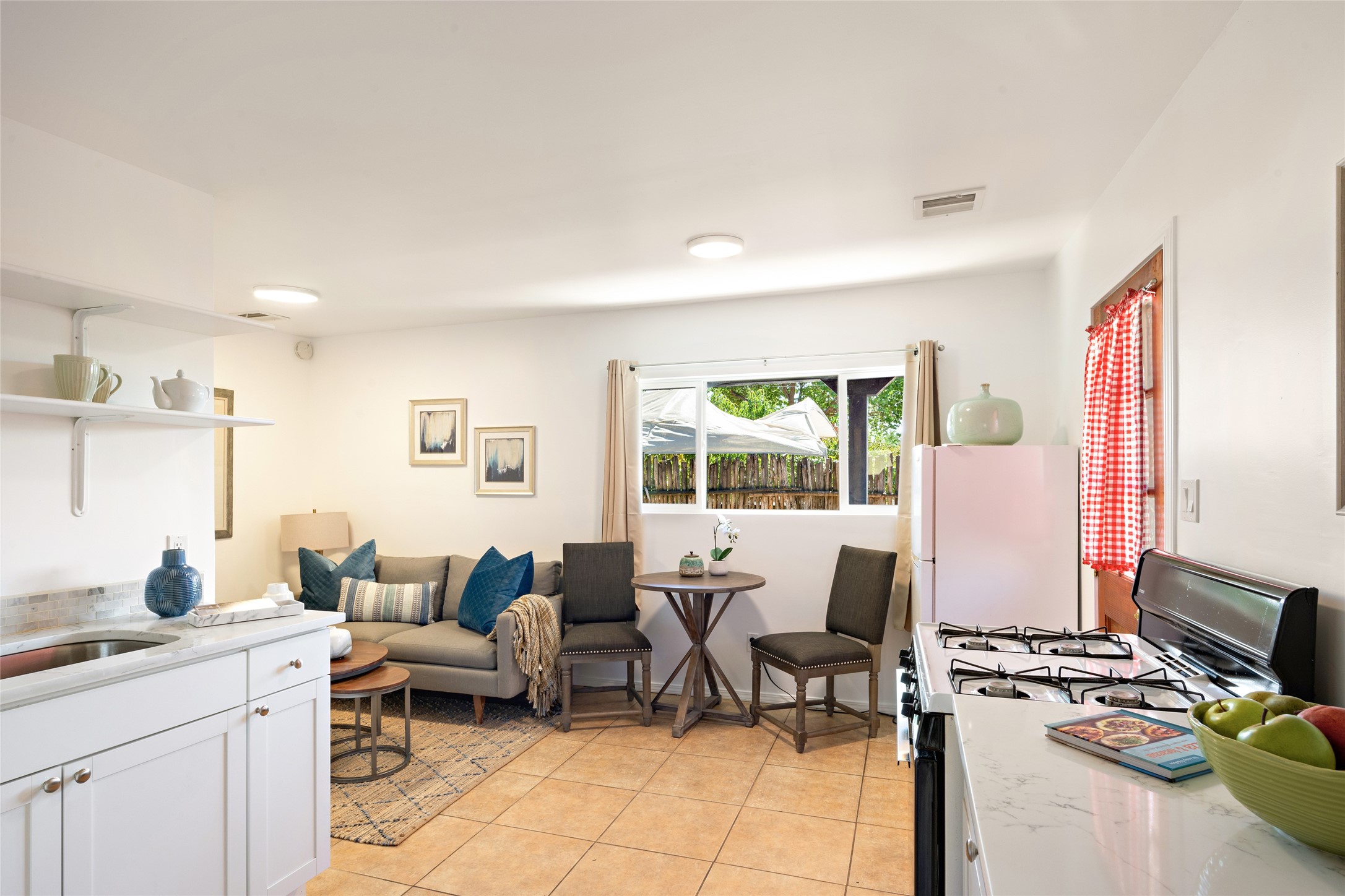 Two, enchanting and fully restored casitas with exceptional quality and located close to town! The casitas are single level, one-bedroom, one-bath homes, each enjoying private yards, storage, and two off-street parking spots. Both casitas have new kitchen and bathrooms and much more including refrigerated air-conditioning, forced-air heat, washer, dryer, bathrooms with a tiled, walk-in shower and closets. The comprehensive remodel done is 2022 included a new sewer line, water line, electrical, insulation, paint, new cabinets, tiled, new windows, new stucco, and a new metal roof. You can rent them both or live in one and use the other as an office/studio or for guests. The efficient and well-designed casitas are 526 and 437 square feet, respectively. The property is located off West Alameda, near the Food Coop, a bus route, a bike trail, and the dog park. One unit is currently rented, rental history available. Unit A is easy to show, Unit B on second showings only, with notice required.