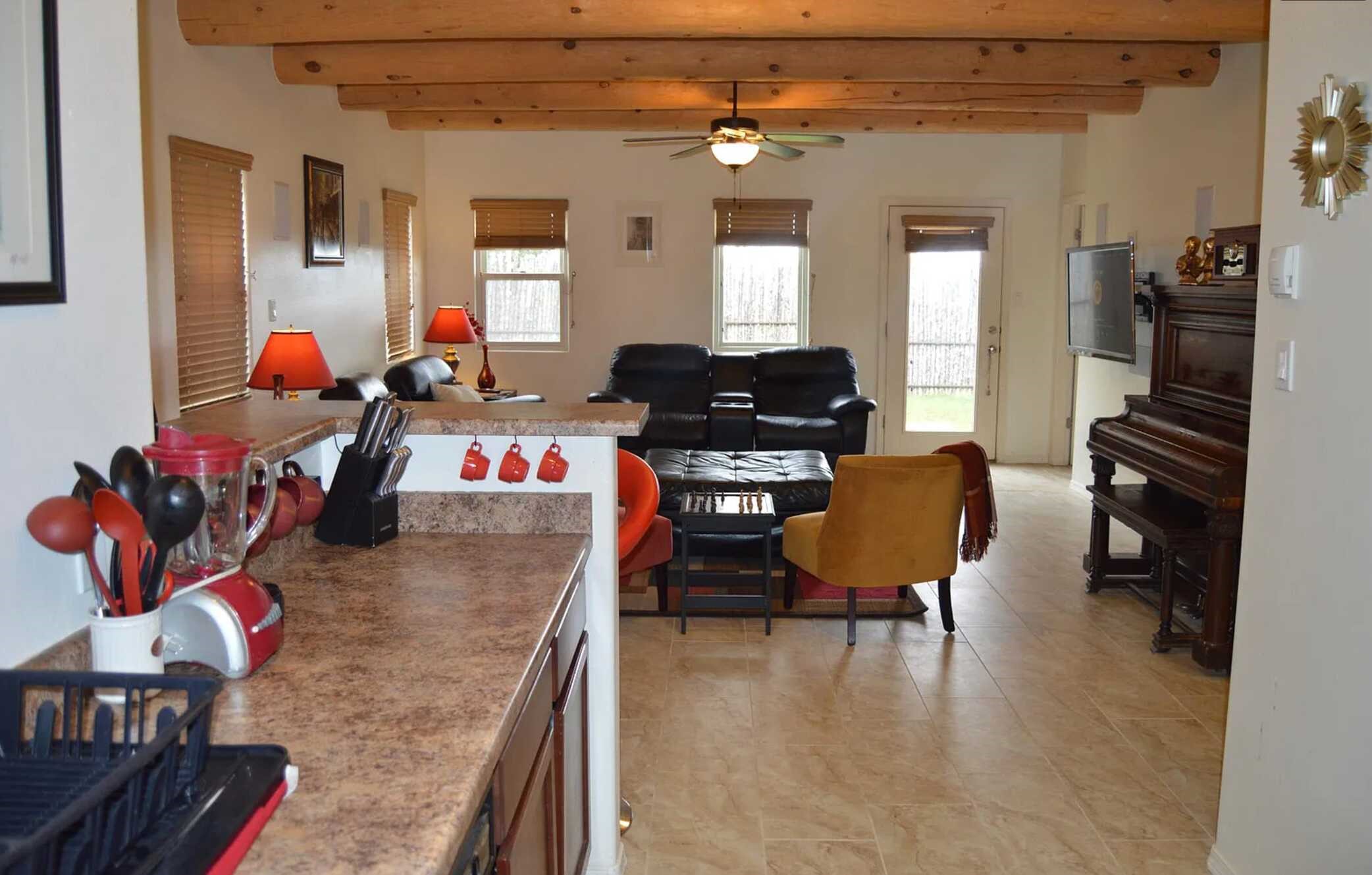 Welcome to your perfectly located and charming home in the foothills of Santa Fe! Nestled in the highly desired Wood Gormley school district, this 1,264 sq. ft. gem offers not only a perfect location but also numerous features that make it a great find. From energy-efficient solar panels to a durable propanel roof, this home has lots of green features to ensure an efficient living situation.As you enter, you'll be welcomed into a warm and inviting living area filled with natural light. The open floor plan allows for easy flow between the kitchen and living room, making it ideal for entertaining or spending quality time with loved ones.Adjacent to the kitchen is a formal dining room. This space is perfect for hosting dinner parties, holiday gatherings, or enjoying family meals in a more formal setting.Step outside through the glass door and discover your charming backyard retreat. Despite its modest size, this outdoor space is a true haven. Imagine sipping your morning coffee on the patio or hosting barbecues with friends and family as the sun sets in the distance. The backyard is designed for low maintenance, allowing you to enjoy the natural beauty of Santa Fe.Features:Solar Panels: Enjoy energy efficiency and cost savings with the solar panel system installed on the roof. Say goodbye to high energy bills and reduce your carbon footprint.Propanel Roof: The home boasts a durable propanel roof that not only adds to its Southwestern charm but also provides exceptional longevity and protection against the elements.Spectacular Sunsets: Witness breathtaking sunsets every evening from the comfort of your own backyard. The Santa Fe foothills provide the perfect backdrop for this eastside home.Desirable School District: Located in a highly desired Wood Gormley School district, this home ensures your children receive an excellent education in one of Santa Fe's top-rated schools.Irrigation for front and back yard.Location:This home is ideally situated in the foothills of Santa Fe. Quick bicycle ride to downtown Santa Fe.Great restaurant options are minutes away. Close to I-25 for commuting, minutes to the plaza, quick drive to the ski area, and access to great trails.