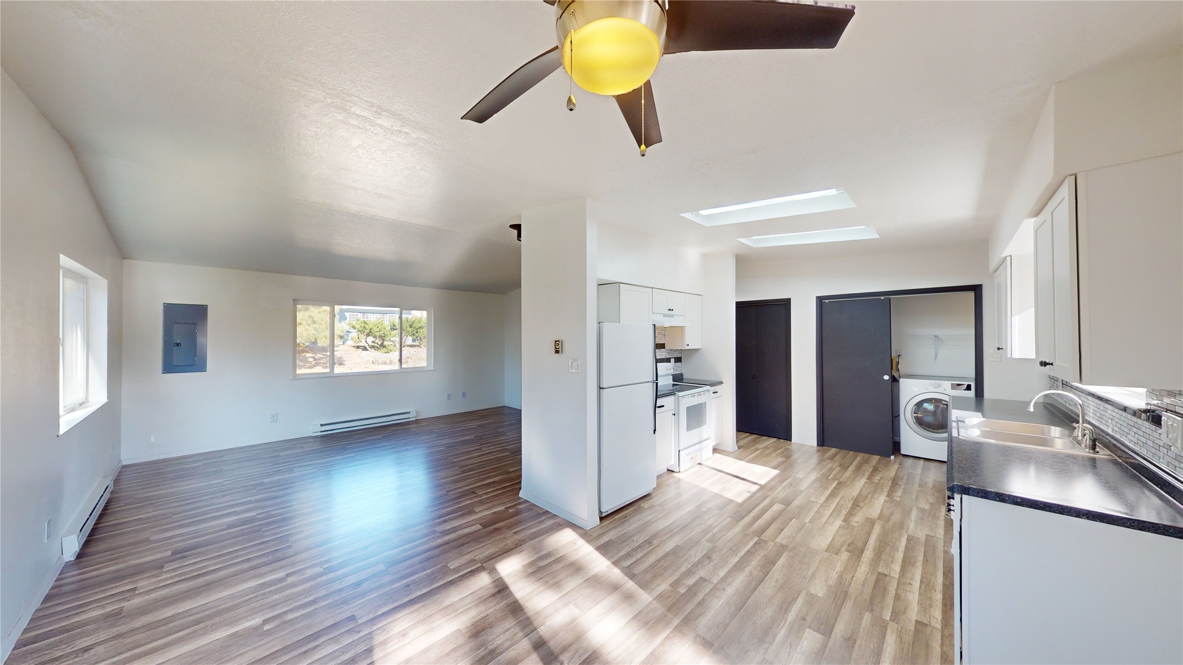 Nestled in the heart of Los Alamos, this single-family home offers a blend of modern comfort and natural beauty. With three bedrooms and two full bathrooms, this residence has been lovingly updated to provide a modern and inviting living space for its next owners.Step inside to discover a light-filled home that seamlessly combines cozy, classic charm with contemporary flair. The updated kitchen, bathrooms, and flooring throughout reflect a commitment to easy living. Situated in the sought-after North Community, this home enjoys the serenity of a sweet neighborhood that exudes a welcoming atmosphere. With a trailhead just moments away, you are invited to explore the natural beauty that Los Alamos has to offer. Convenience is key, and this home delivers with its proximity to the neighborhood park, offering a perfect retreat for relaxation and recreation. Additionally, the strategic placement of the property places it just a short distance from Atomic City Transit routes 8 and 9, ensuring easy access to the town's attractions. Whether you have vehicles or just need additional storage or working space, the attached two-car garage is one of this property's best features. This easy-care home is not just a residence; it's a lifestyle. Schedule a showing today to see for yourself all that it has to offer.