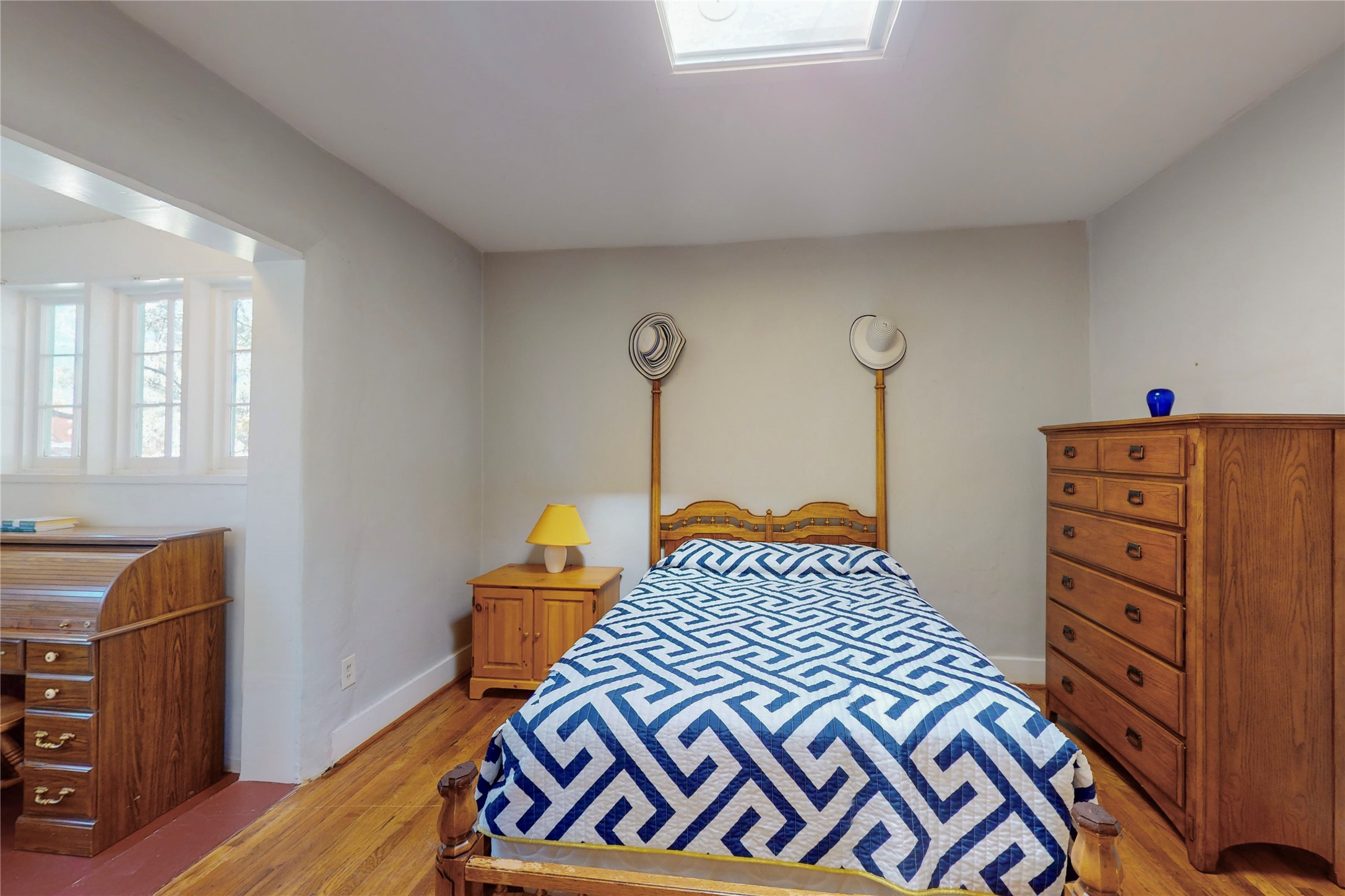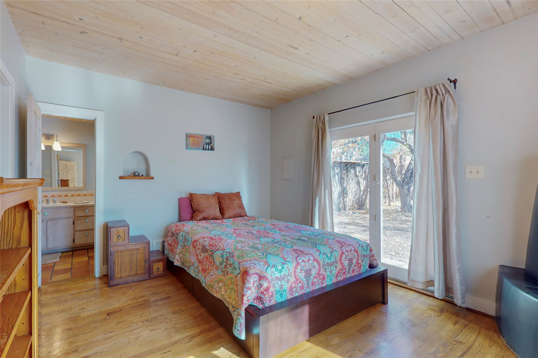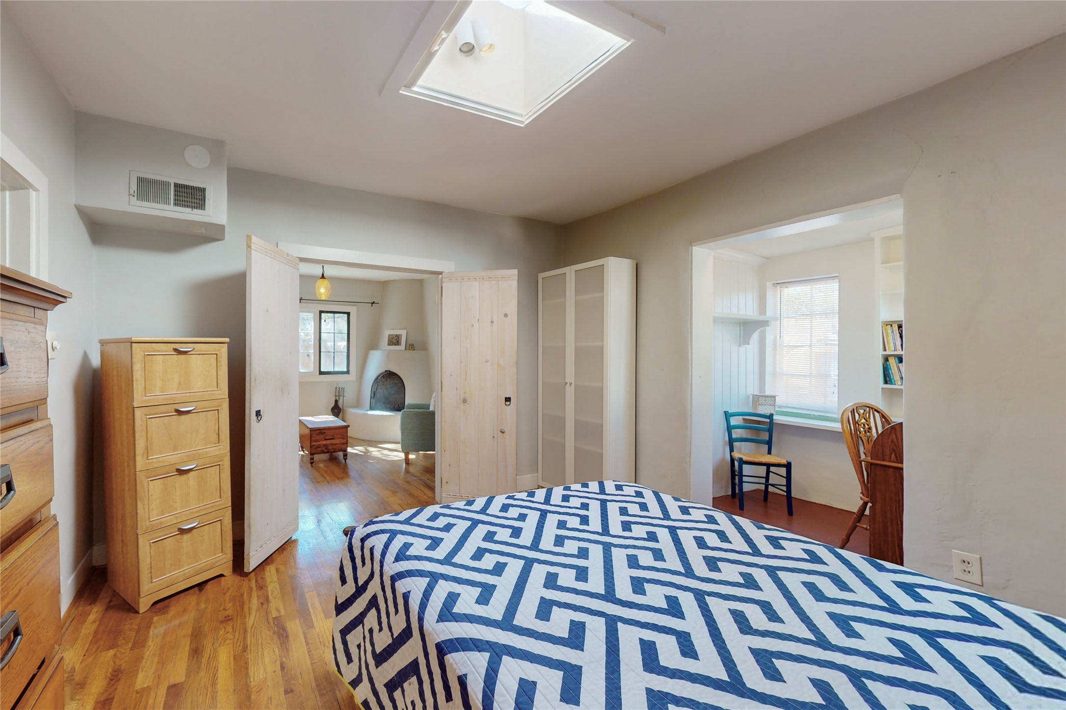 Nestled in Santa Fe's desirable South Capitol area, this 1940's bungalow captures the essence of Santa Fe living. With 1,433 square feet of space, original hardwood floors, and glass pane windows and doors, this home exudes historical charm. The stainless kitchen with a gas stove adds modern comfort while preserving its classic character. Two Kiva fireplaces, one in the primary bedroom with an ensuite bath, offer a cozy retreat. Two additional rooms and a guest bath ensure ample space for your needs. From the front of the house, you wouldn't realize just how expansive the backyard is. It's a hidden gem, offering so much room for your outdoor activities and landscaping dreams. While some updates are needed, this house presents an exceptional opportunity for expansion without sacrificing its historical allure. Tucked away within an enclave, it offers a private oasis in this central locale. Don't let this unique opportunity to shape your dream Santa Fe home, complete with these charming features and a huge backyard, pass you by. Your ideal living space awaits.
