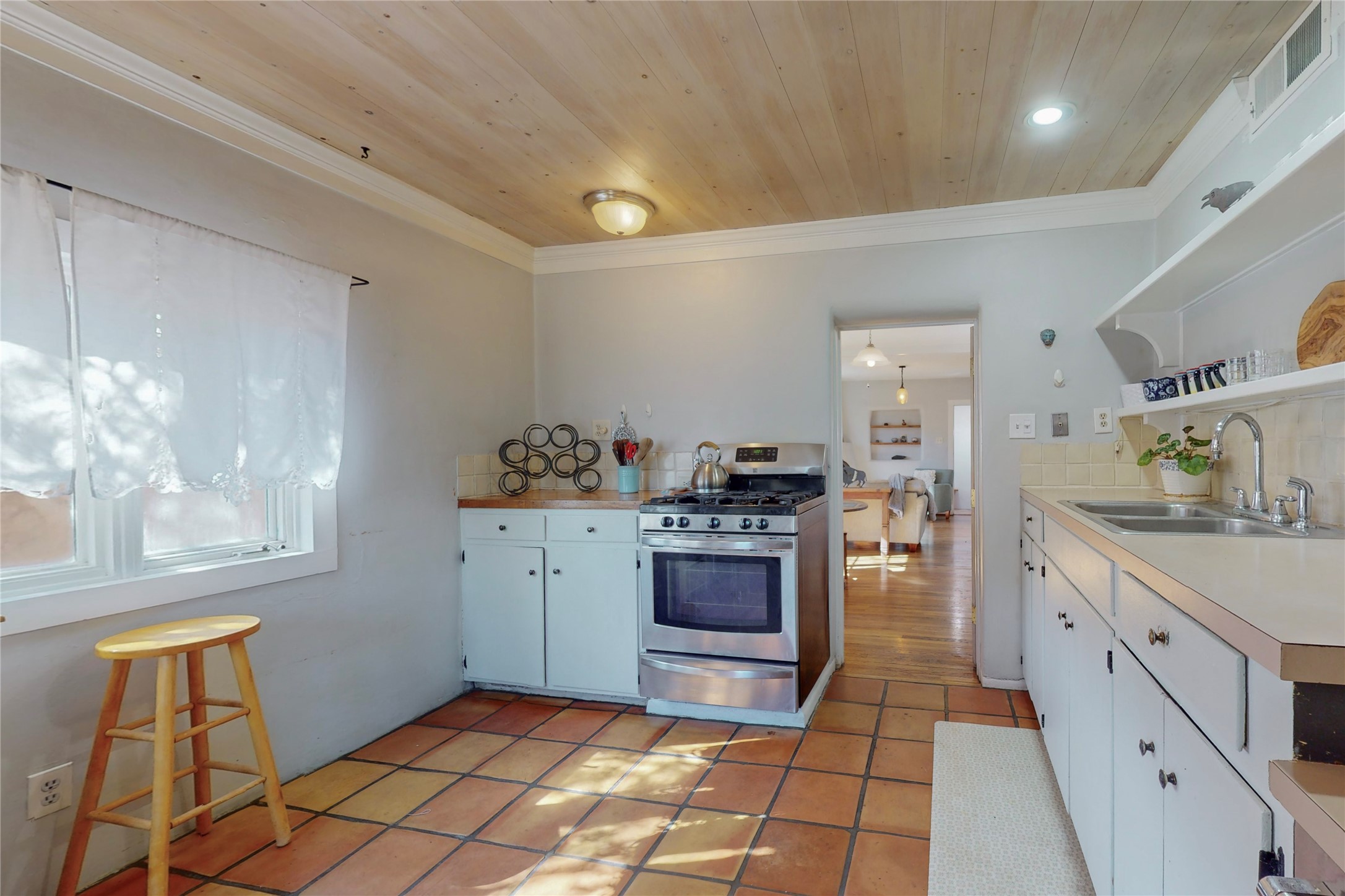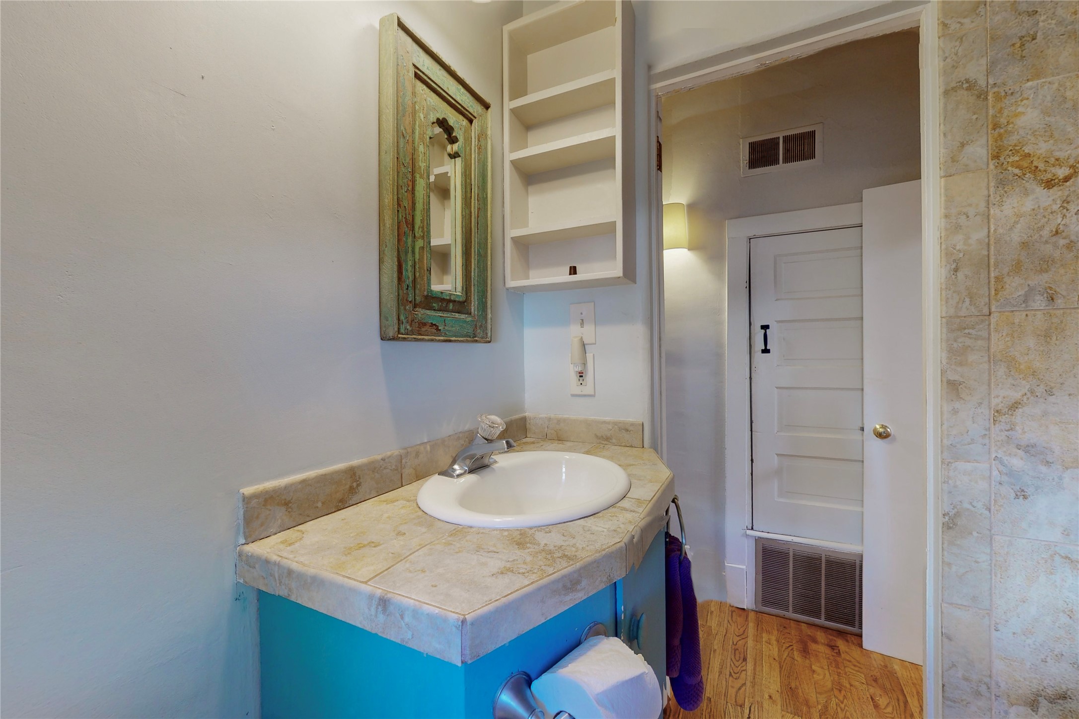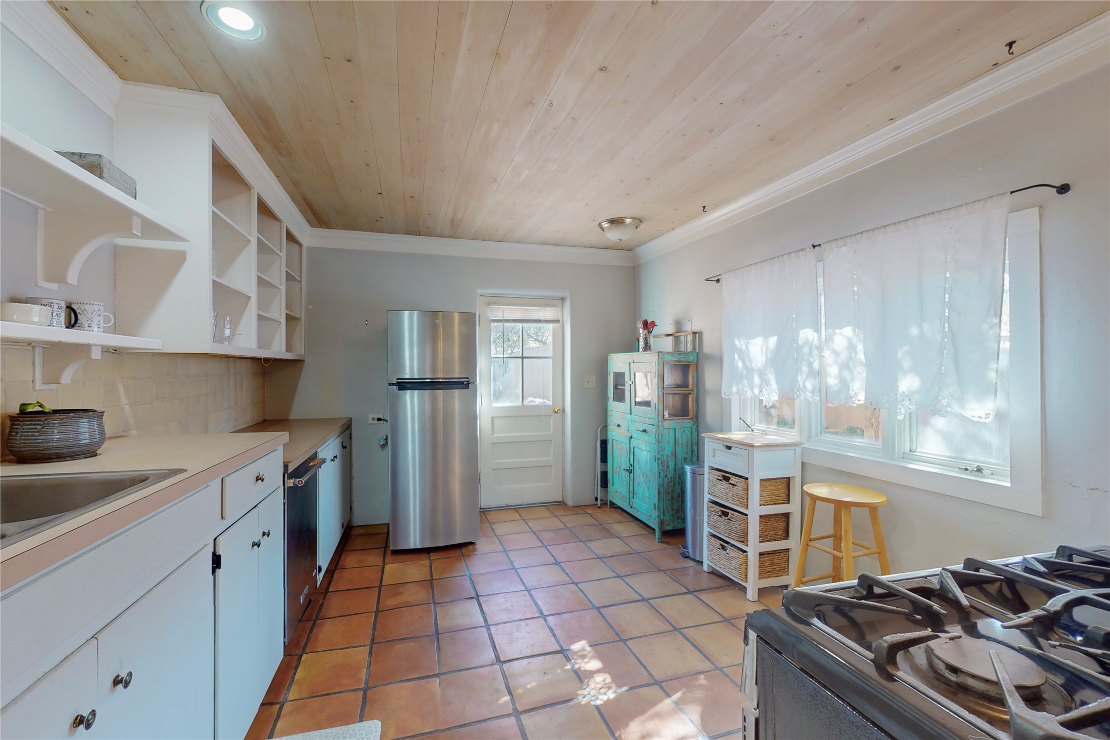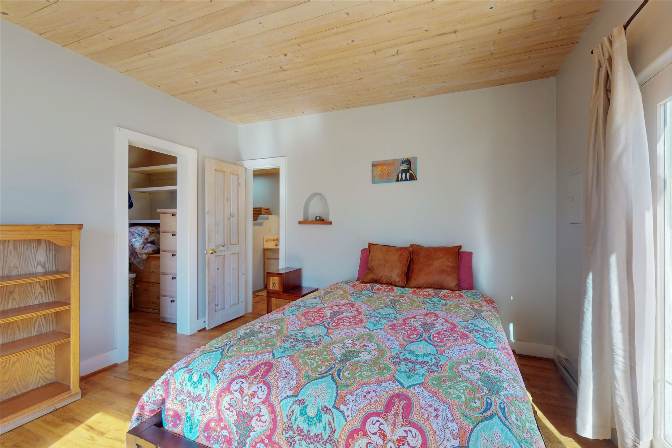Nestled in Santa Fe's desirable South Capitol area, this 1940's bungalow captures the essence of Santa Fe living. With 1,433 square feet of space, original hardwood floors, and glass pane windows and doors, this home exudes historical charm. The stainless kitchen with a gas stove adds modern comfort while preserving its classic character. Two Kiva fireplaces, one in the primary bedroom with an ensuite bath, offer a cozy retreat. Two additional rooms and a guest bath ensure ample space for your needs. From the front of the house, you wouldn't realize just how expansive the backyard is. It's a hidden gem, offering so much room for your outdoor activities and landscaping dreams. While some updates are needed, this house presents an exceptional opportunity for expansion without sacrificing its historical allure. Tucked away within an enclave, it offers a private oasis in this central locale. Don't let this unique opportunity to shape your dream Santa Fe home, complete with these charming features and a huge backyard, pass you by. Your ideal living space awaits.