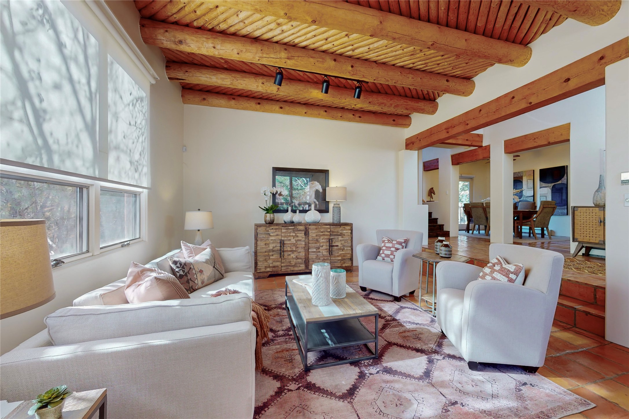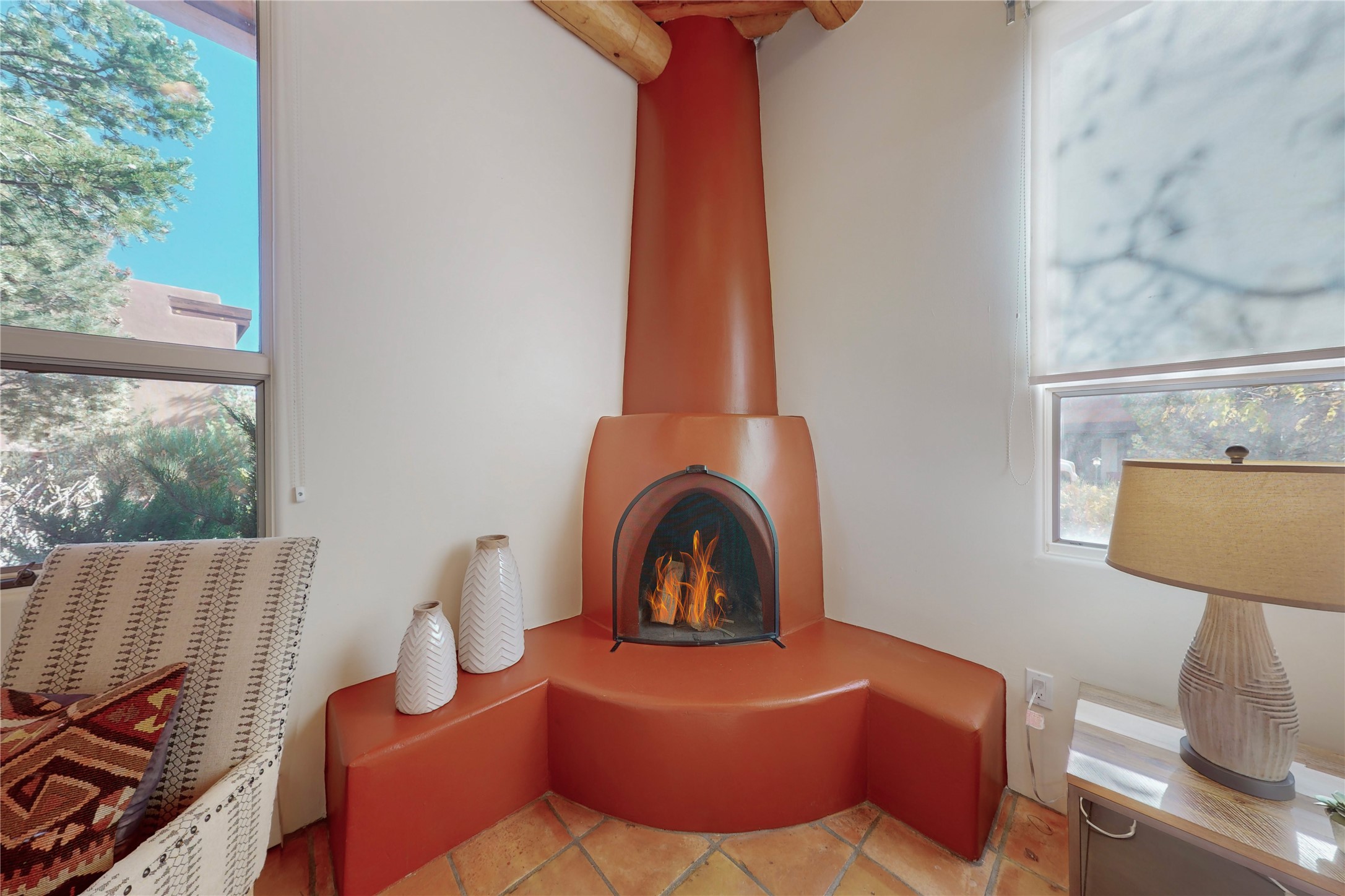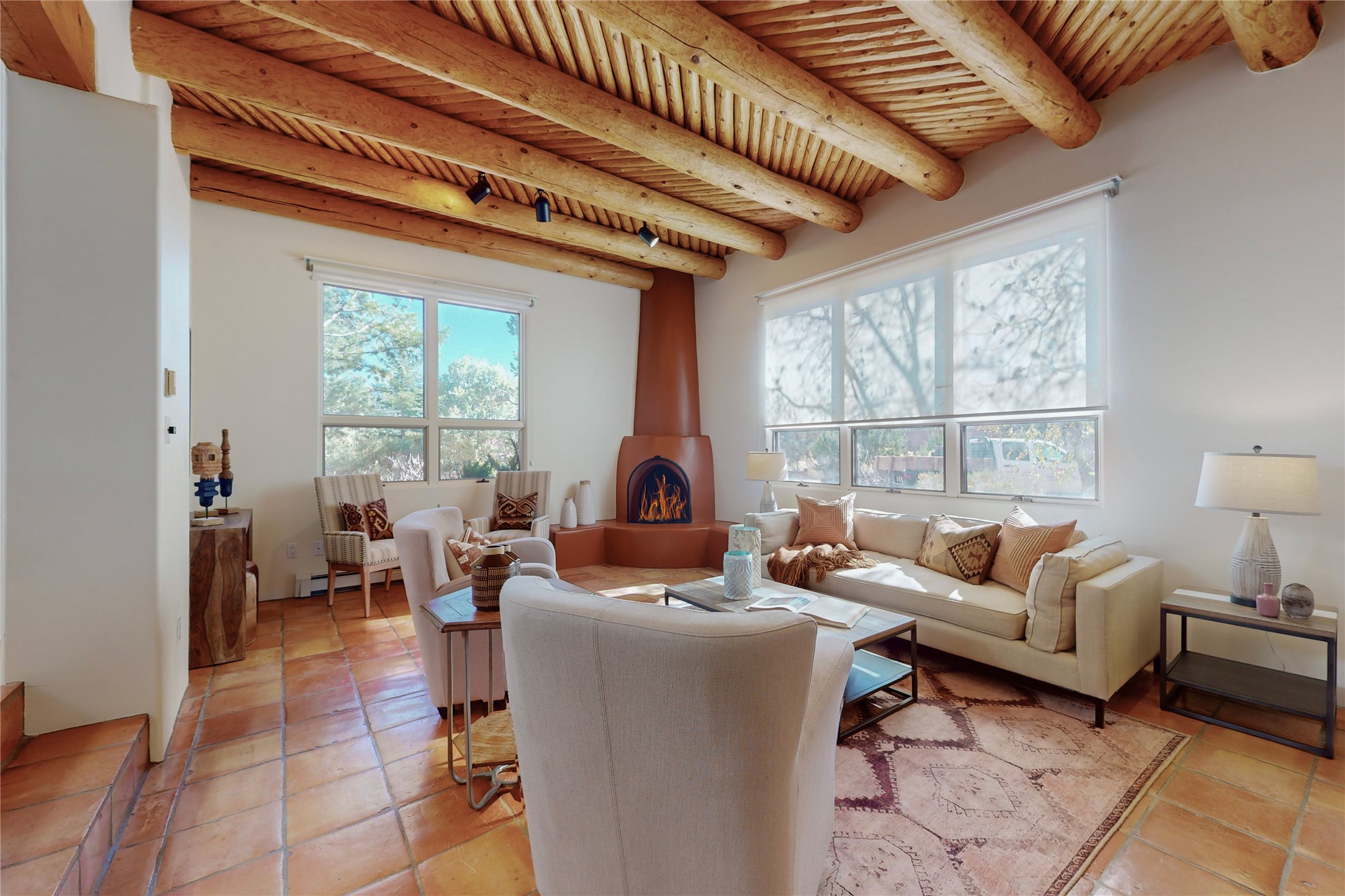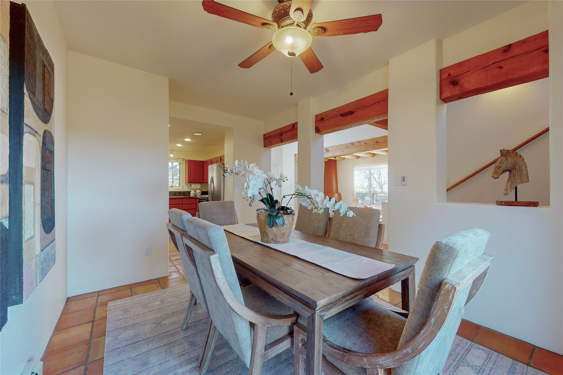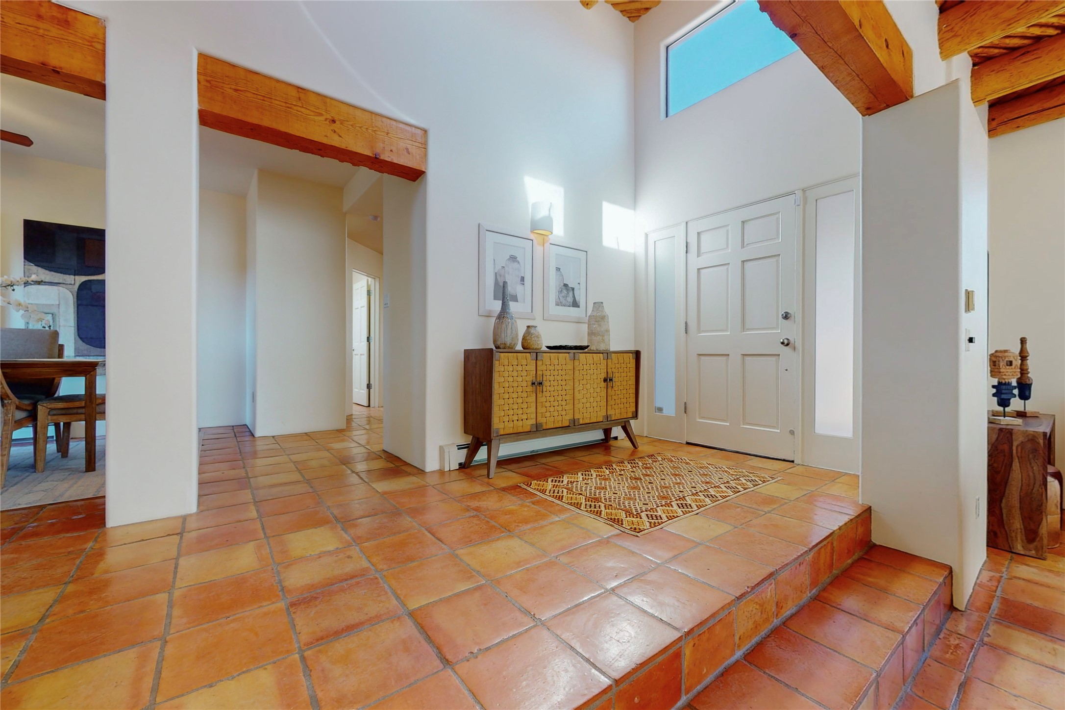 These homes are rarely available and so close to historic and downtown Santa Fe. This remodeled 2 story, 2 bedroom, 2 bath home has an open feeling with a lot of natural light. In keeping with the pueblo style, it has vigas, latillas and high ceilings. The home is on a cul-de-sac. Nice sunset views can be enjoyed from the back deck. There is formal and informal dining and a well-appointed spacious upgraded kitchen with a large pantry. An attached two car garage and Solar photovoltaic panels completes this offering. Estancia Primera has a clubhouse with a kitchen, an outdoor swimming pool, tennis and racquetball courts.