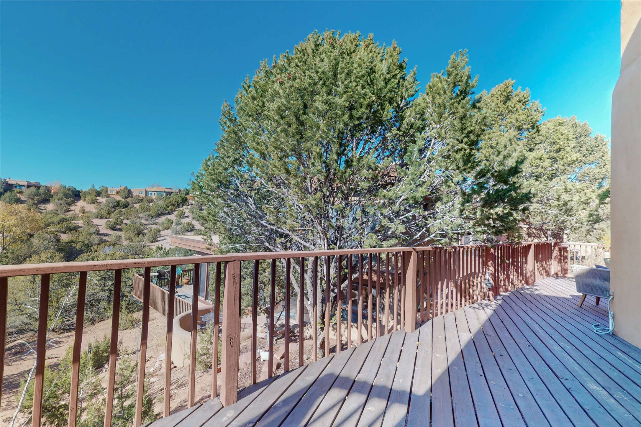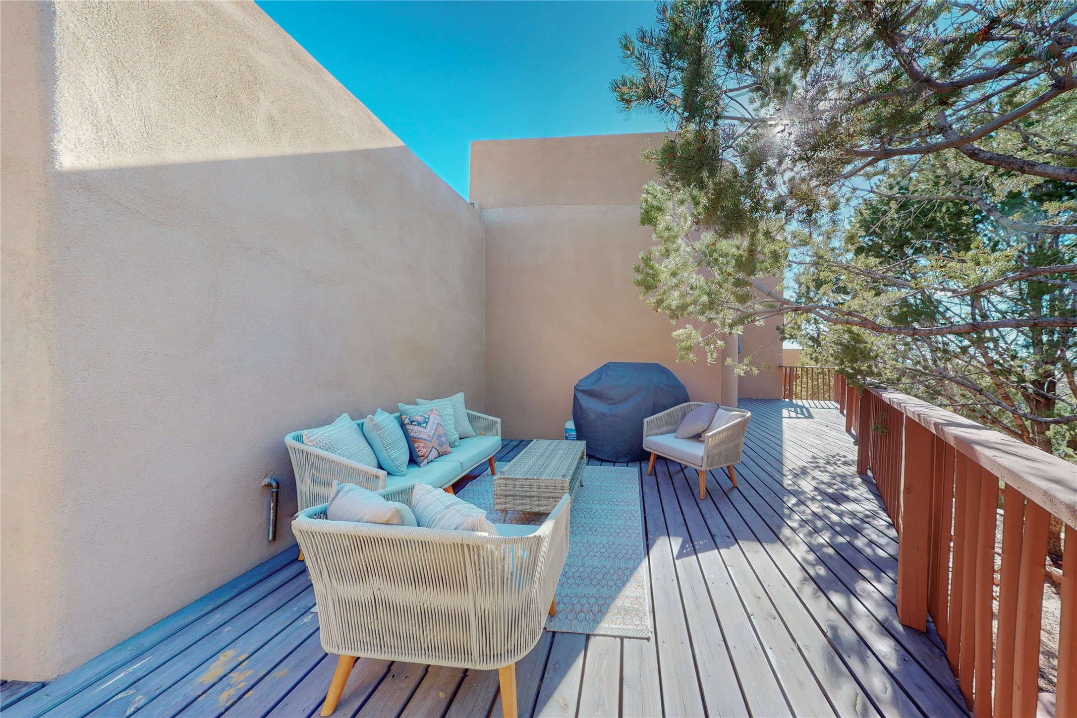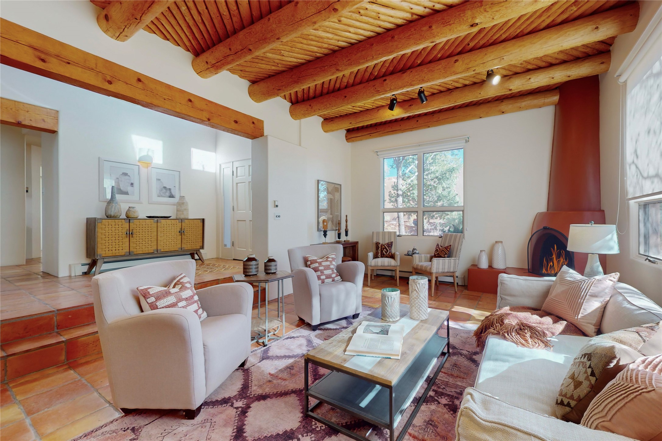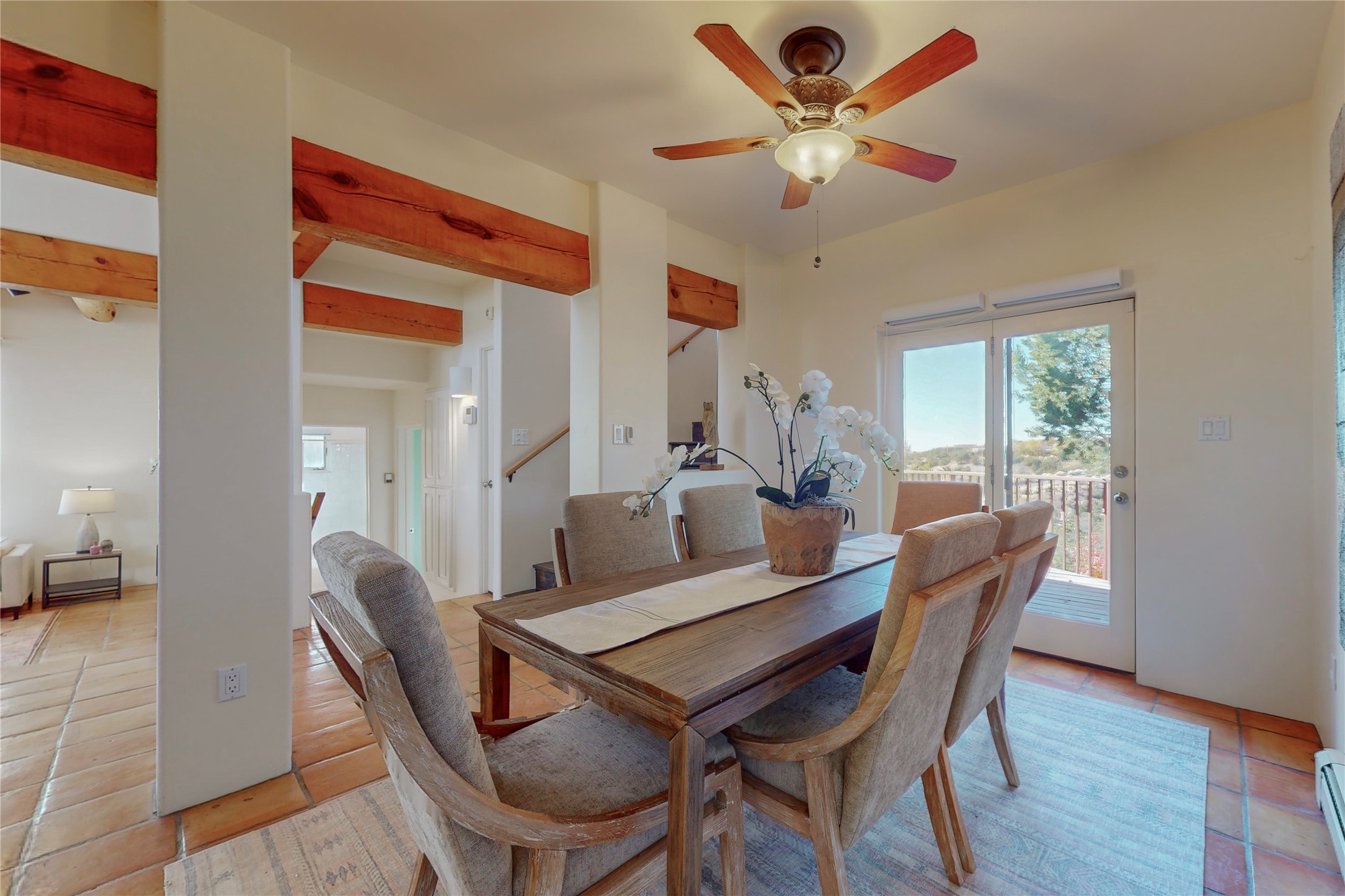 These homes are rarely available and so close to historic and downtown Santa Fe. This remodeled 2 story, 2 bedroom, 2 bath home has an open feeling with a lot of natural light. In keeping with the pueblo style, it has vigas, latillas and high ceilings. The home is on a cul-de-sac. Nice sunset views can be enjoyed from the back deck. There is formal and informal dining and a well-appointed spacious upgraded kitchen with a large pantry. An attached two car garage and Solar photovoltaic panels completes this offering. Estancia Primera has a clubhouse with a kitchen, an outdoor swimming pool, tennis and racquetball courts.