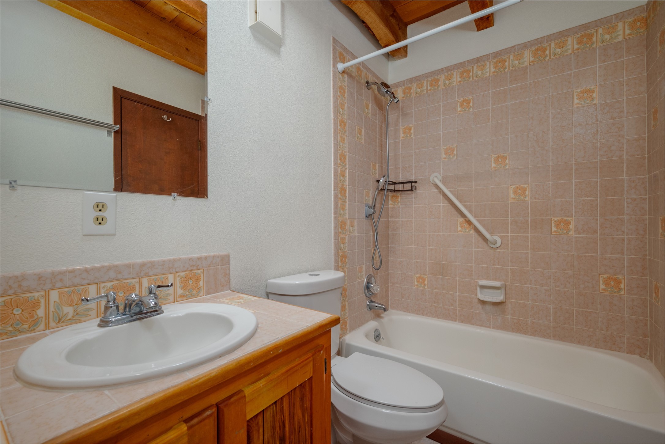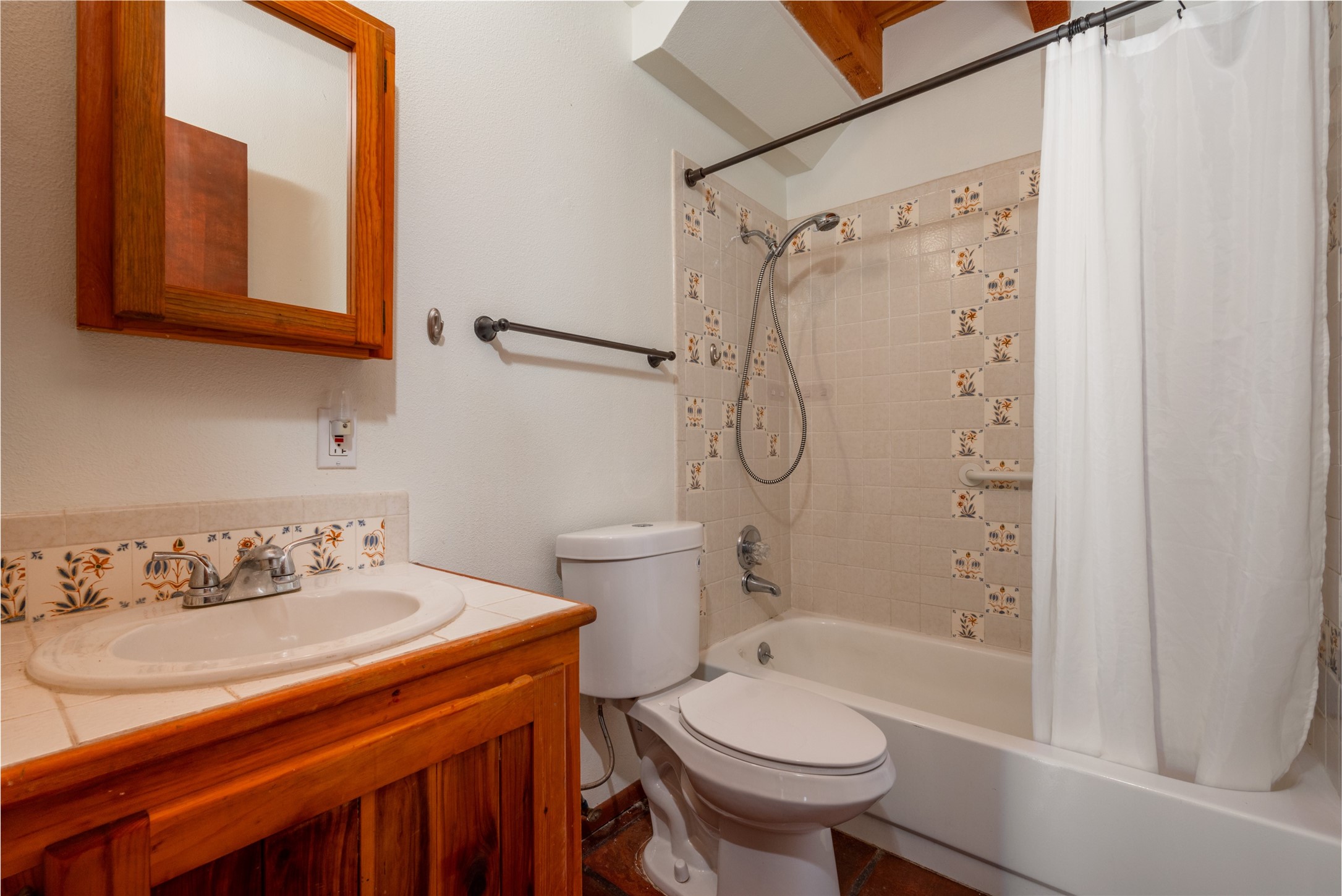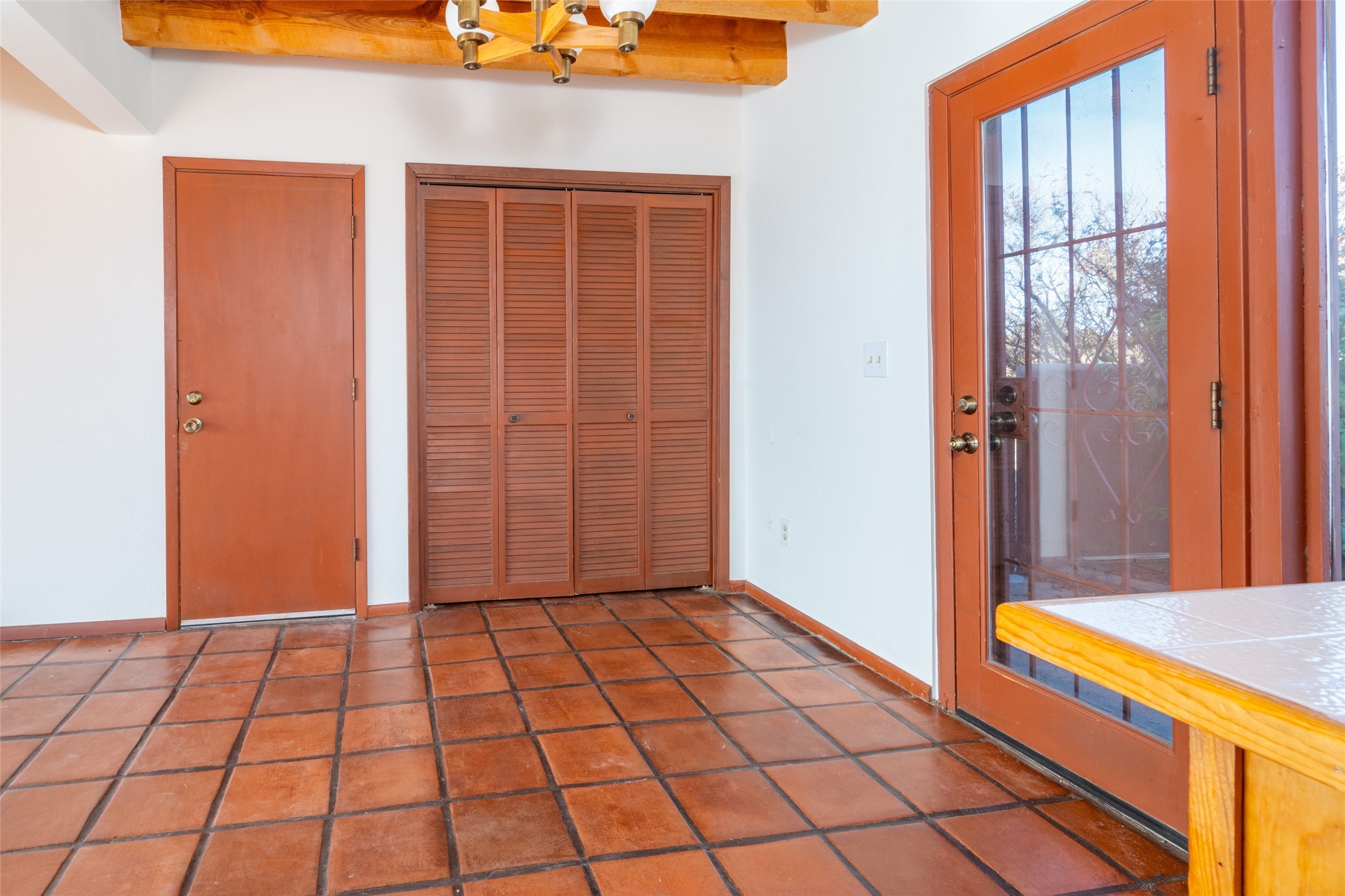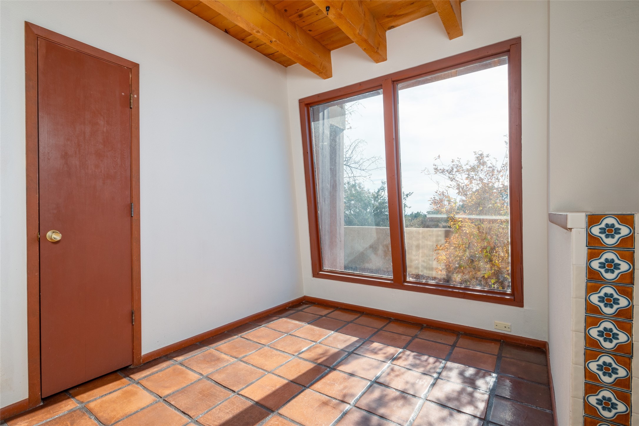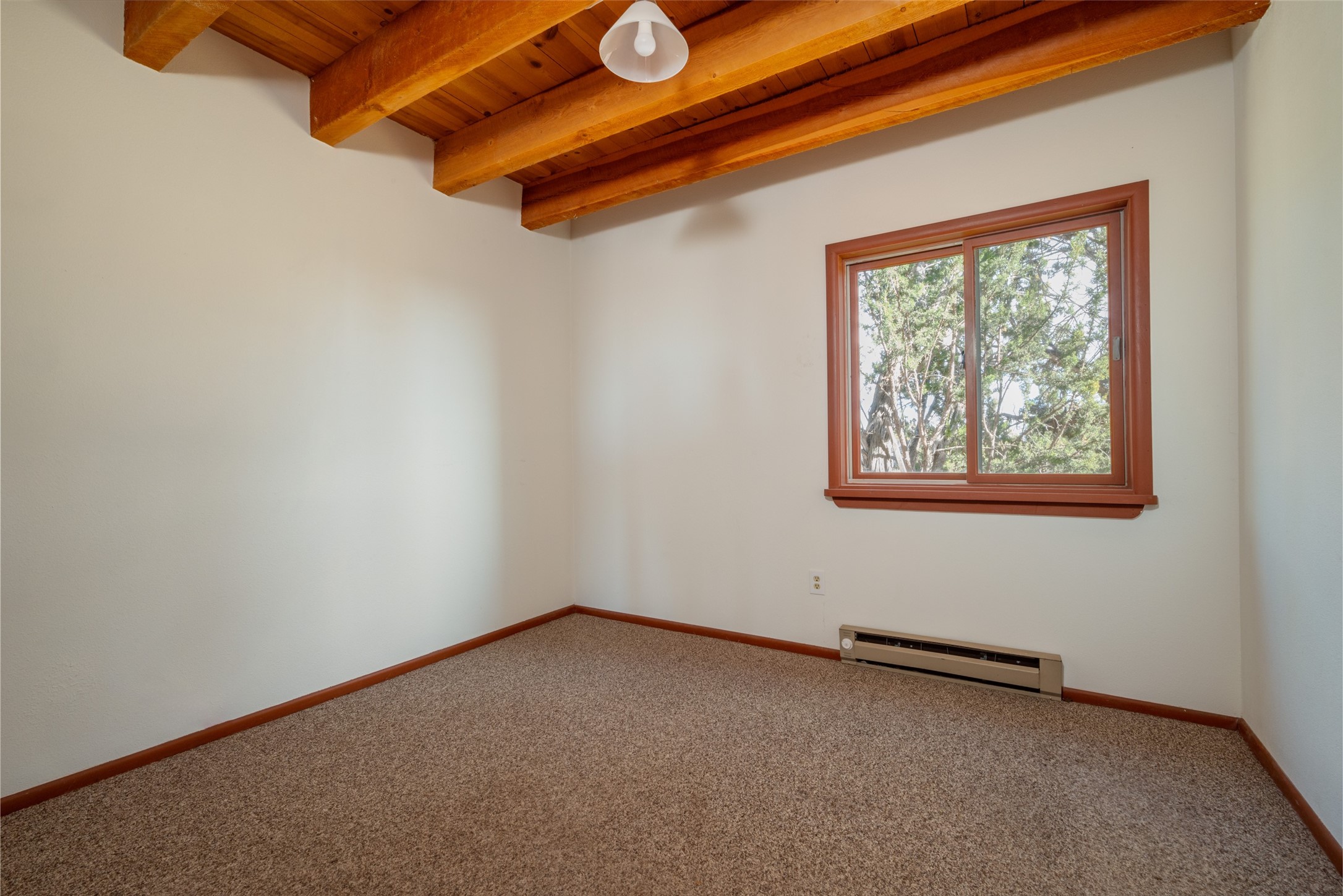Home for the Holidays!! Come view this charming passive solar style home, strategically positioned to capture breathtaking views of the Turquoise Hills, Ortiz Mountains, and Sandia Mountains. Experience the beauty of New Mexico's stunning sunsets and stormy skies from the comfort of the enclosed and heated sunroom, located off the upstairs primary bedroom. Situated on almost an acre and a half of land, this property offers ample space for outdoor activities. With two full baths, including one in the primary bedroom upstairs, convenience is ensured for all occupants. The main living area features an open floor plan with Saltillo-style flooring and beamed ceilings, adding a touch of warmth and character to the space, while the bedrooms are carpeted for added comfort. The well-appointed kitchen boasts essential appliances such as a dishwasher, electric range, and refrigerator, providing all you need for culinary endeavors. Additional features include a newer hot water heater for your comfort and efficiency. The home is all-electric with natural gas available if desired. Water supply is through a shared well. This property offers a unique opportunity to enjoy New Mexico's natural beauty while providing comfortable living spaces. Don't miss out on this wonderful home - schedule a showing today!
