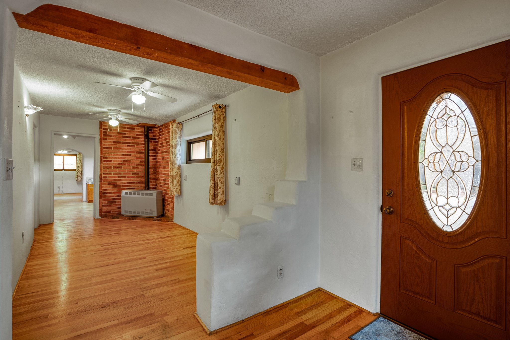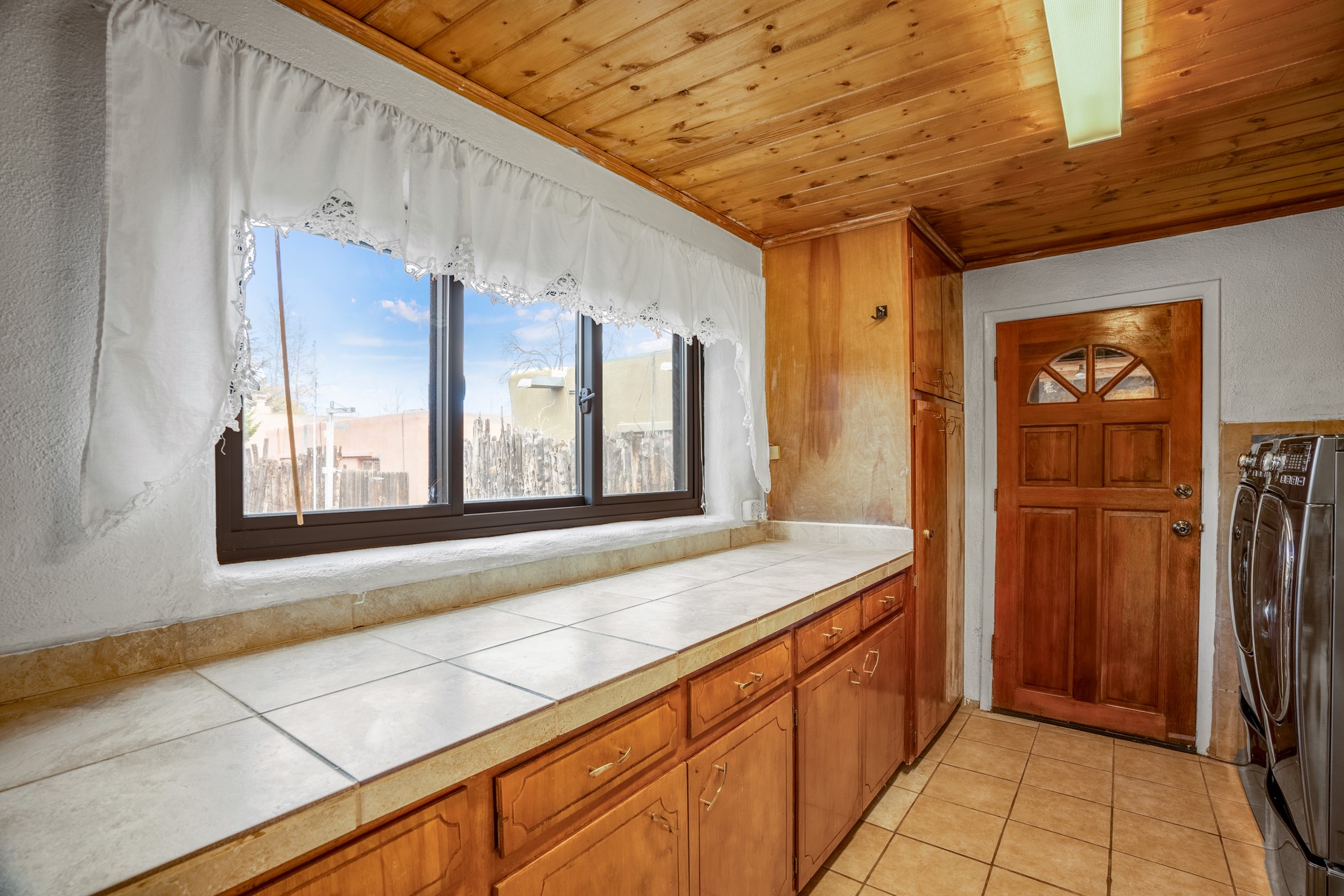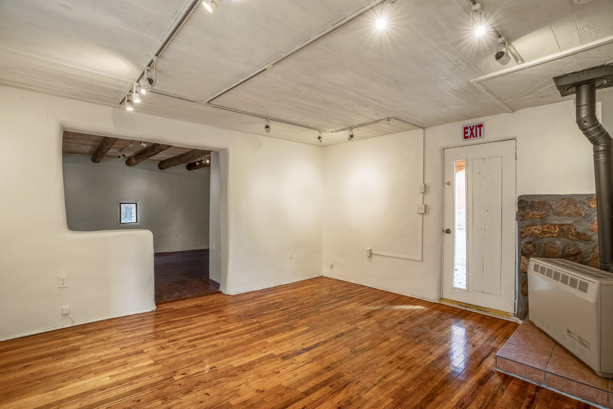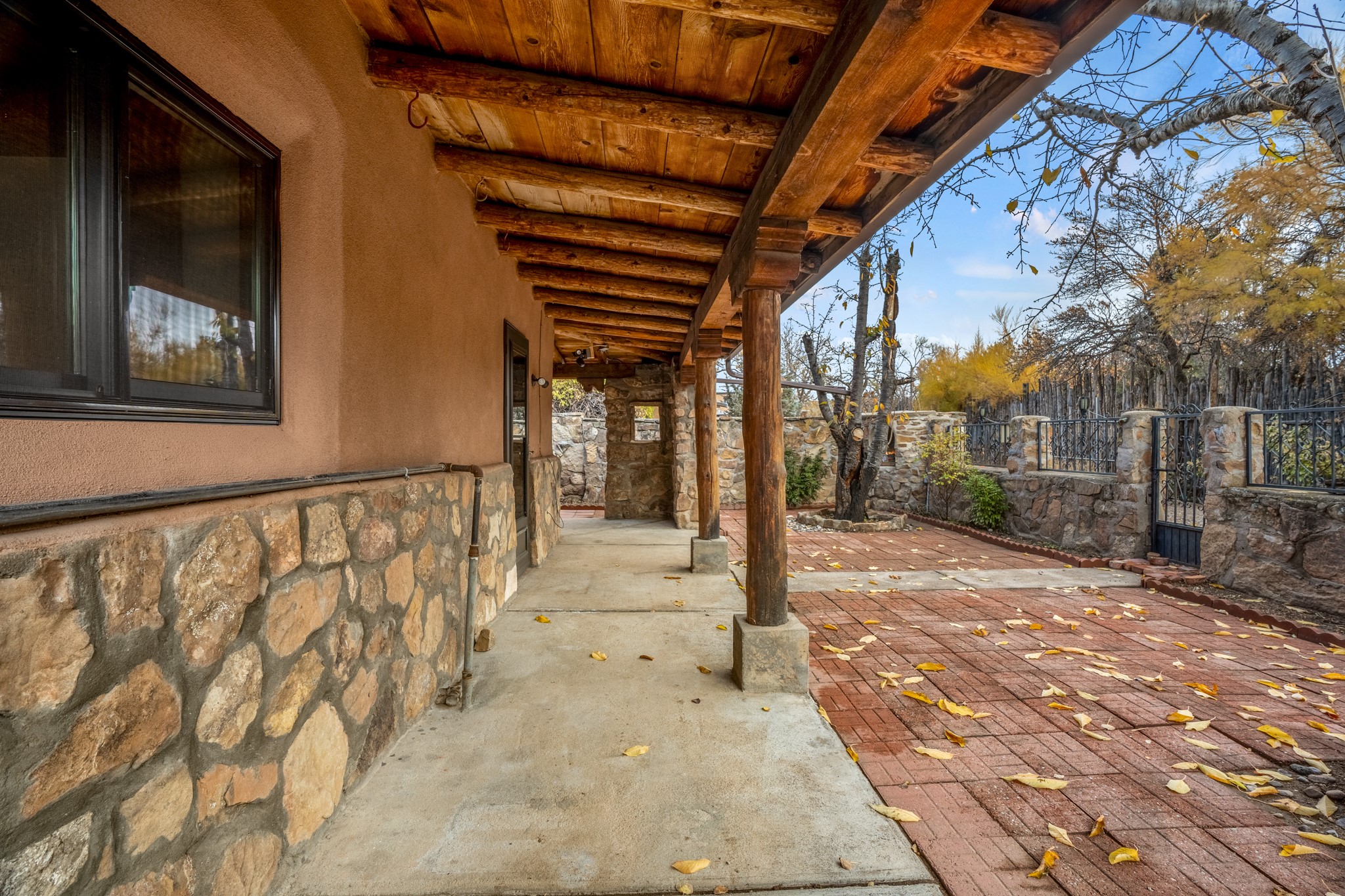 This is an amazing opportunity to own two separately deeded historic eastside properties, peacefully situated at the end of a short lane just off of renowned Canyon Rd. The smaller home would be the perfect guesthouse, studio or art gallery. These traditional adobe homes have many features to admire including hardwood floors, vigas, kiva fireplaces, delightful brick courtyards and upgraded insulated windows. Water rights from the adjacent Acequia Madre add to the appeal of these lovely homes surrounded by mature trees and lush greenery. Zoned Arts and Crafts to allow for arts related businesses, these properties are walking distance to local restaurants, art galleries and the Patrick Smith Park. Owned by one family since 1952.