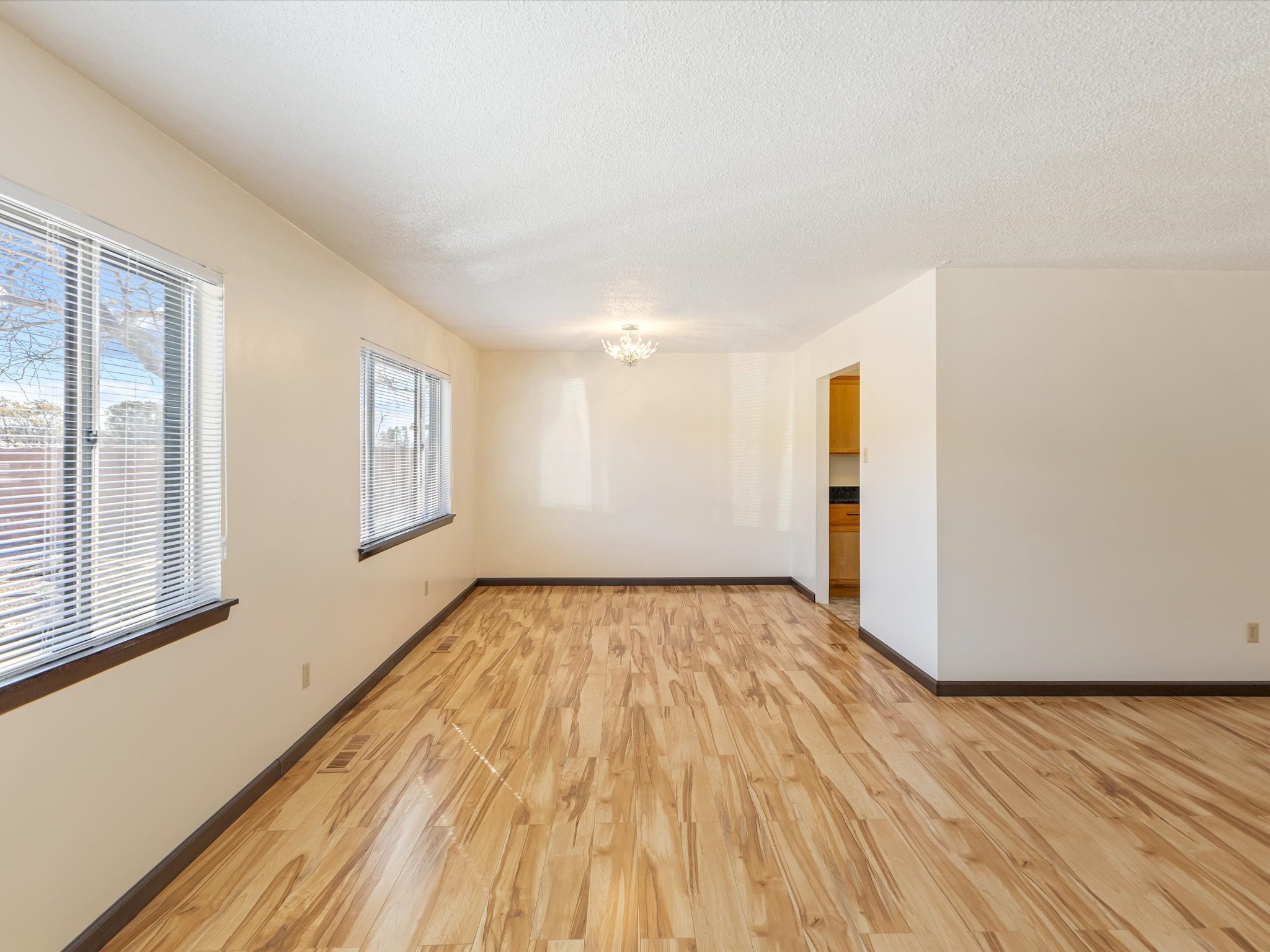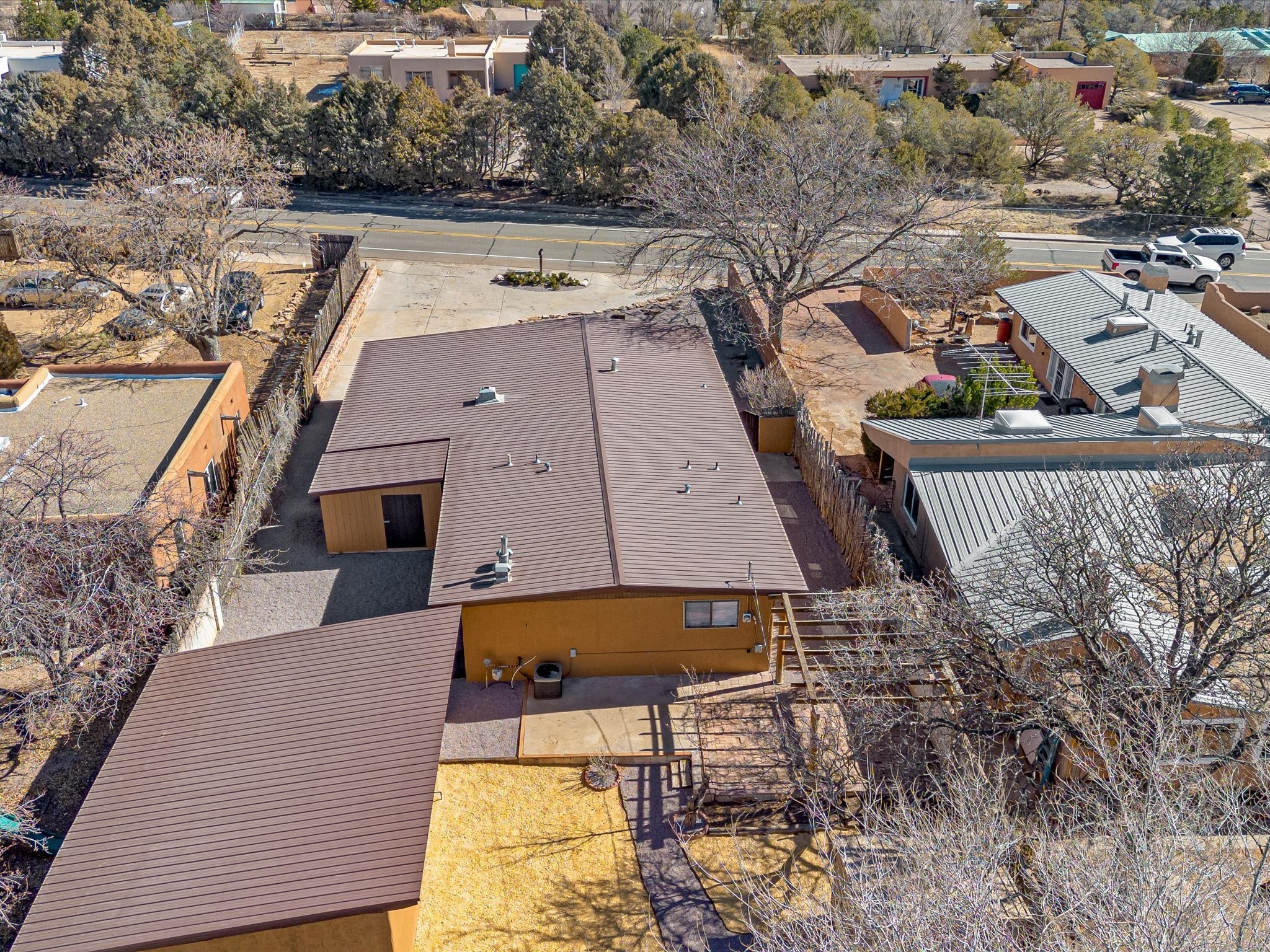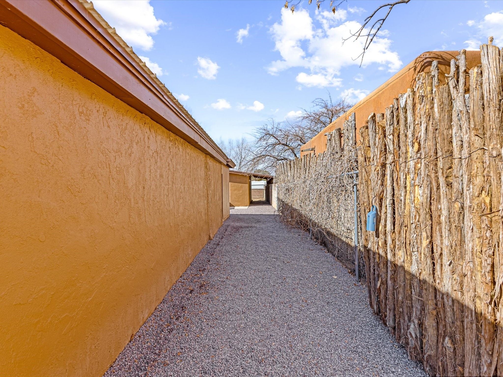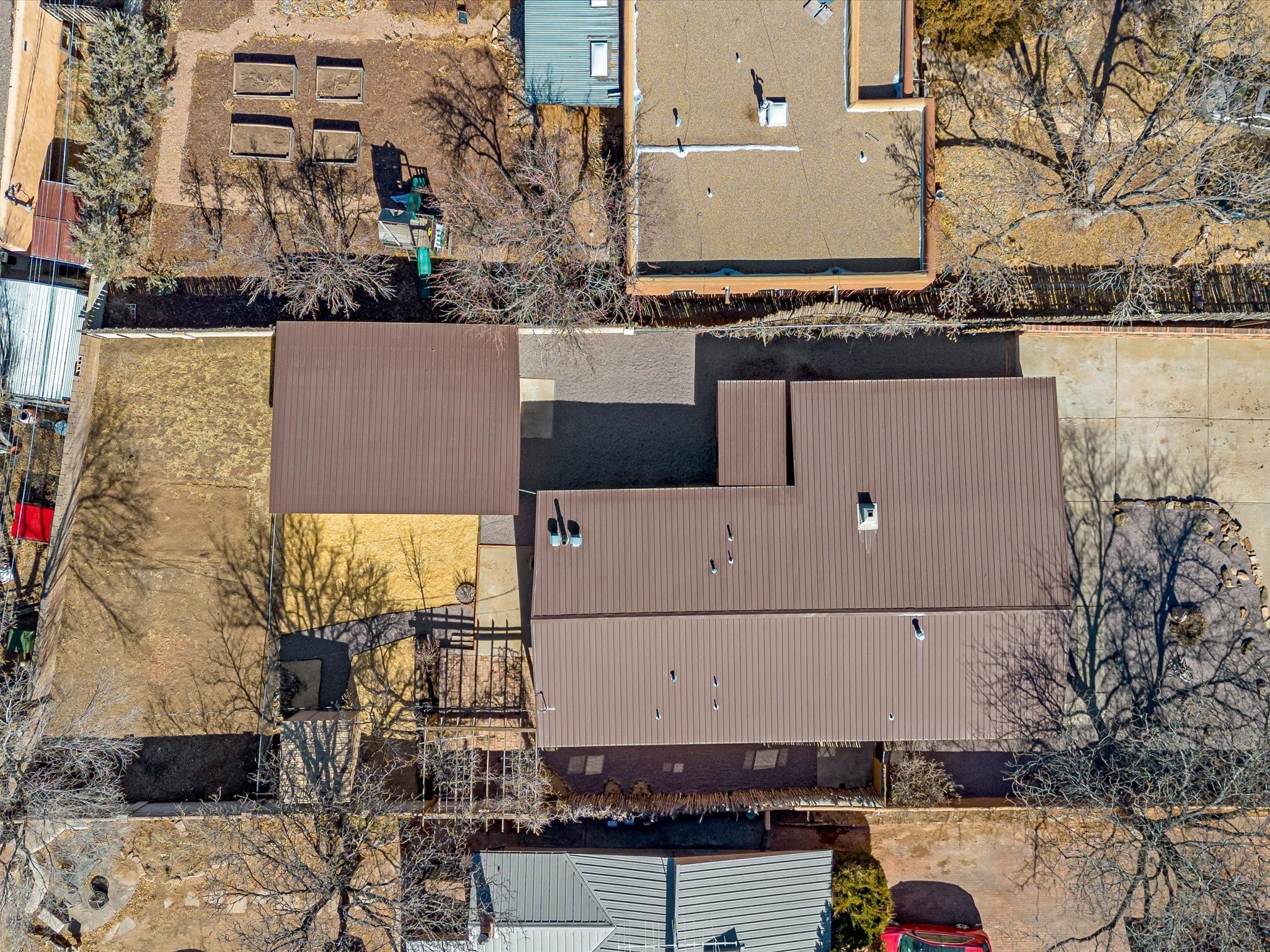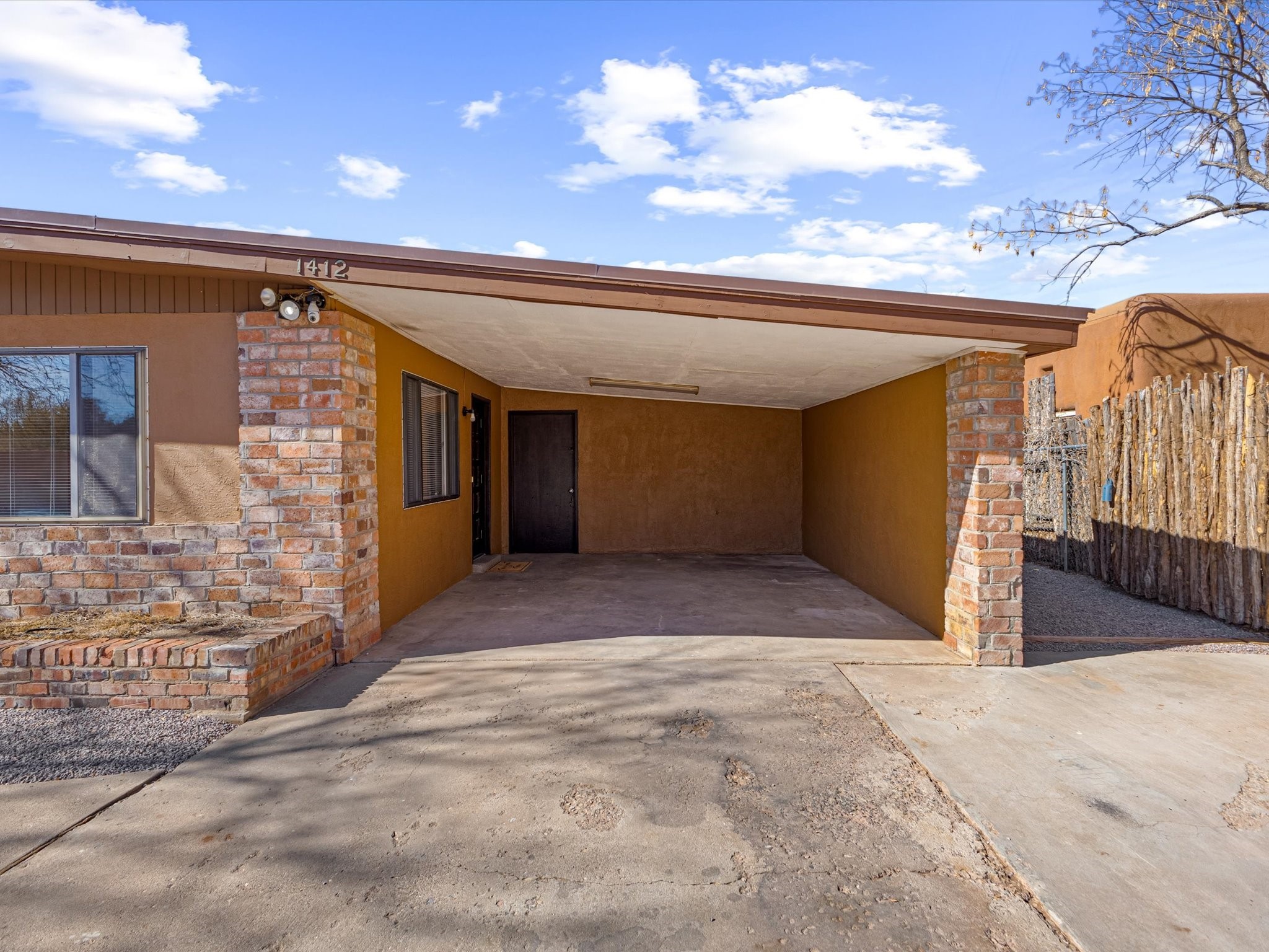 Welcome to 1412 Galisteo Street, a beautifully designed home in the heart of Santa Fe, offering 1,701 square feet of comfortable living space. This inviting property features an expansive facade with ample parking, making it perfect for homeowners who value convenience and accessibility.Inside, the open-concept living and dining area is enhanced by a traditional kiva fireplace, creating a warm and inviting atmosphere. The kitchen is equipped with stainless steel appliances and includes a cozy breakfast nook, seamlessly connected to a separate laundry station for added functionality. New Flooring and paint make this Home feel refreshed. The home offers three well-appointed bedrooms and two full baths, including a private primary suite with an attached bathroom.Step outside to find a charming fully remodeled Studio at the back of the property, ideal for use as a workshop, art studio, or guest space.Nestled in a prime location of the South Capital area, this home is just minutes away from Santa Fe's vibrant dining, shopping such as Trader Joes, cultural attractions and the Harvey Cornell Rose Park. Don't miss this opportunity to own a versatile and well-located property in one of Santa Fe's most sought-after neighborhoods!