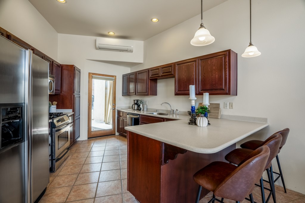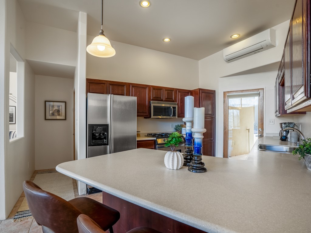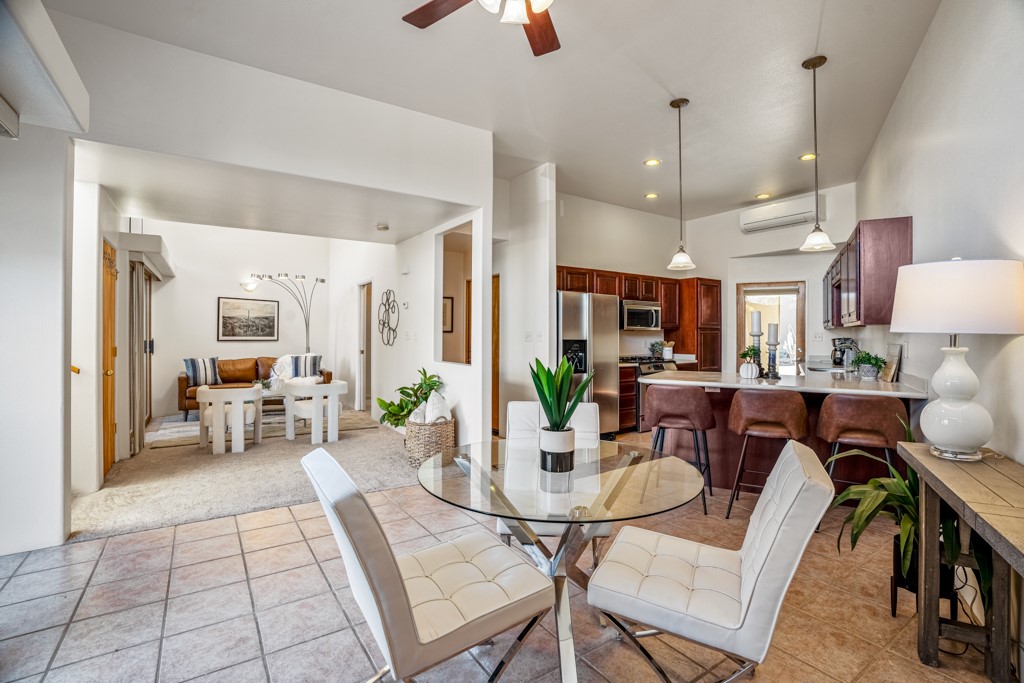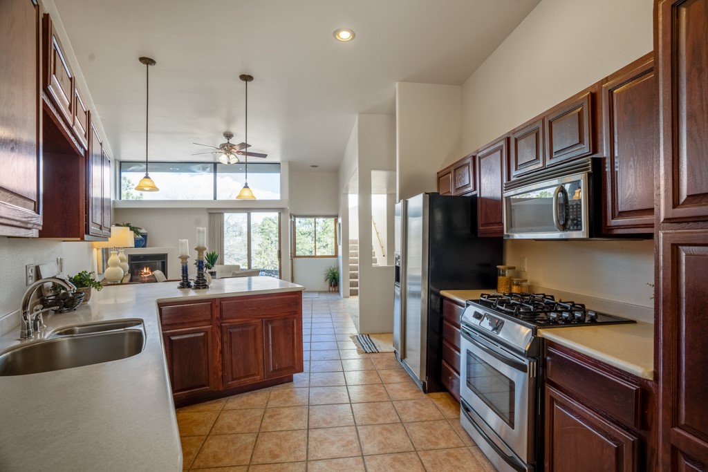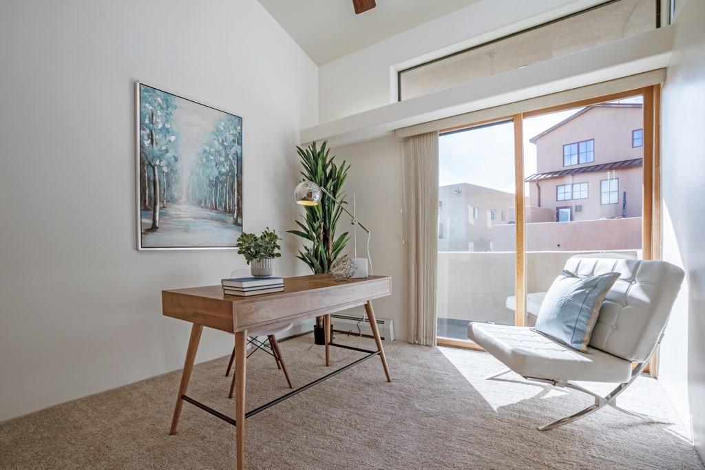 Quemazon Townhouse, Newer Construction, Canyon Views, Great Kitchen, Natural Light, 3 Bed/3 Bath, Brand New Mini-Split HVAC System with 12 Year Warranty, 2 Car Garage, and More! Welcome to 4651 Esperanza! This 2001-built townhouse is now back on the market following the installation of a brand new, whole-house mini-split heating and cooling system with a 12 year warranty! This townhouse overlooks a canyon at the bottom of Quemazon and features great views of the Sangre de Cristos from your balcony. The distinct, angular architecture provides privacy and allows abundant natural lighting to flow throughout the home. The spacious kitchen features solid surface countertops, beautiful cabinetry, stainless steel appliances, a gas range, and barstool seating for socializing with your guests while experiencing the joys of cooking. The living room features a lofted ceiling and a sliding glass door for entertaining on your patio. Upstairs, your new primary suite awaits, featuring a balcony facing the Sangre de Cristos, an en suite bathroom with dual vanities and a shower with a glass enclosure. Two guest bedrooms, a full bathroom, and laundry round out the upper floor. A two-car garage and a metal roof complete the package. The sellers plan to review offers on Tuesday, February 20, so schedule your showing today before this one is gone!