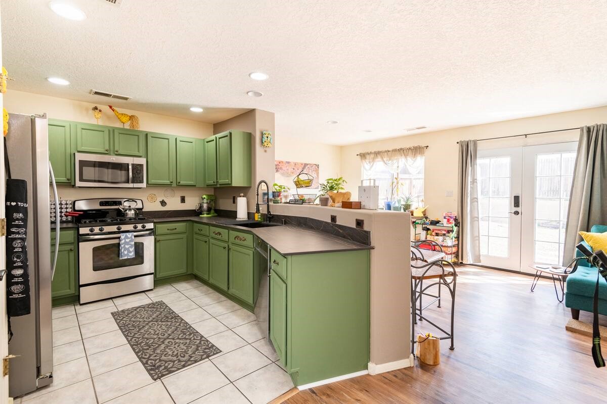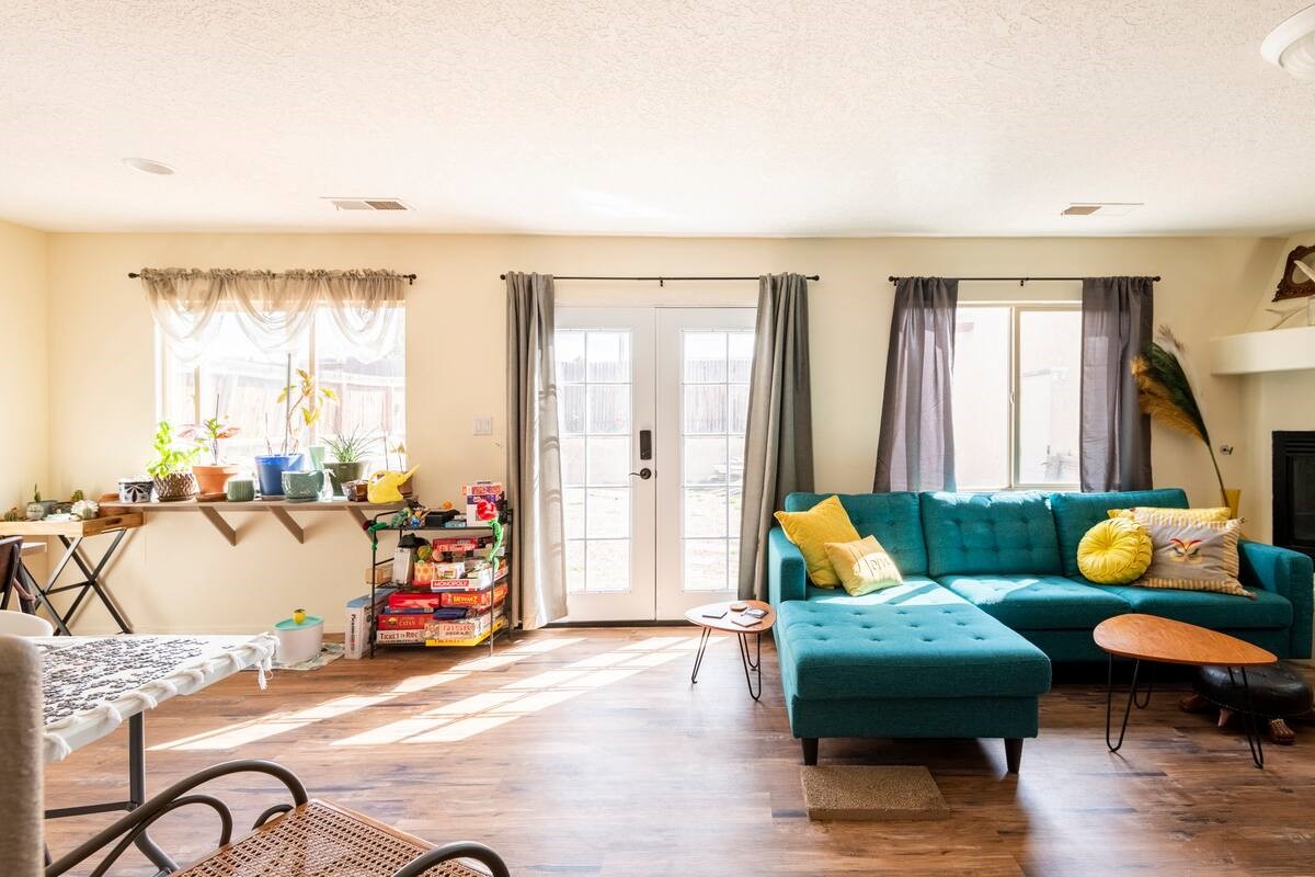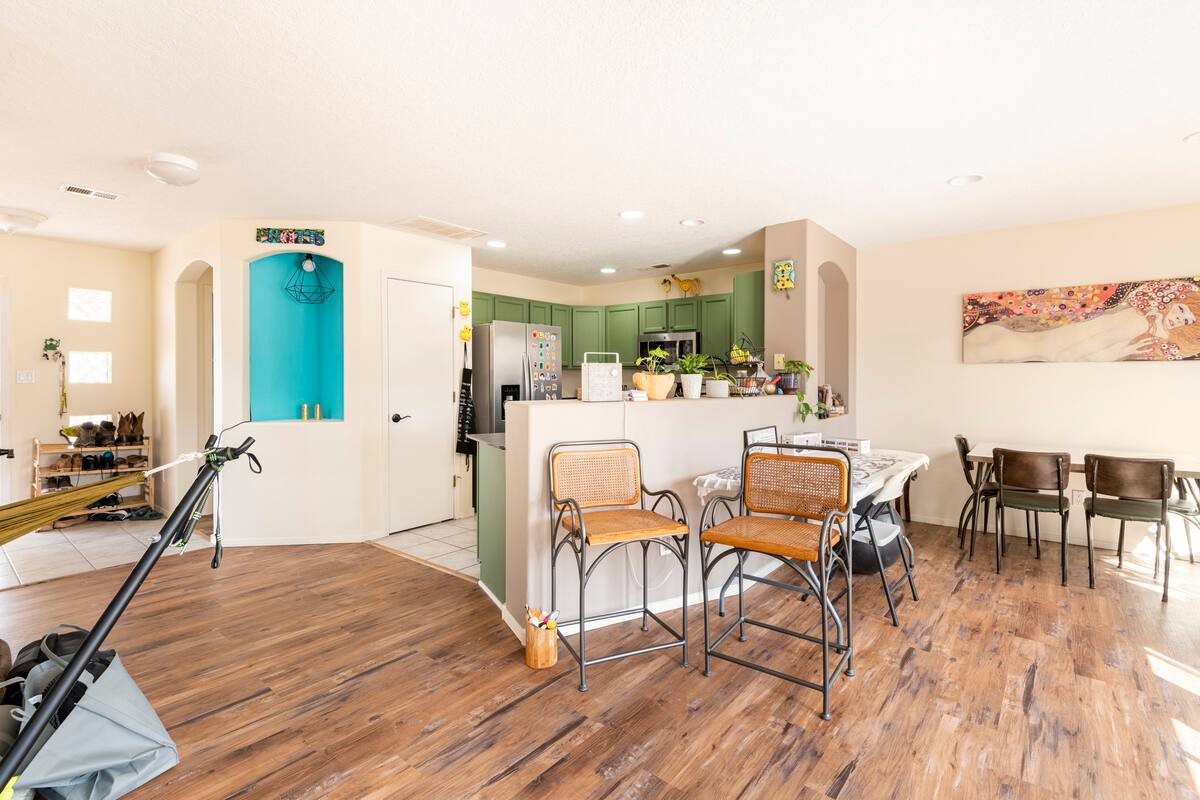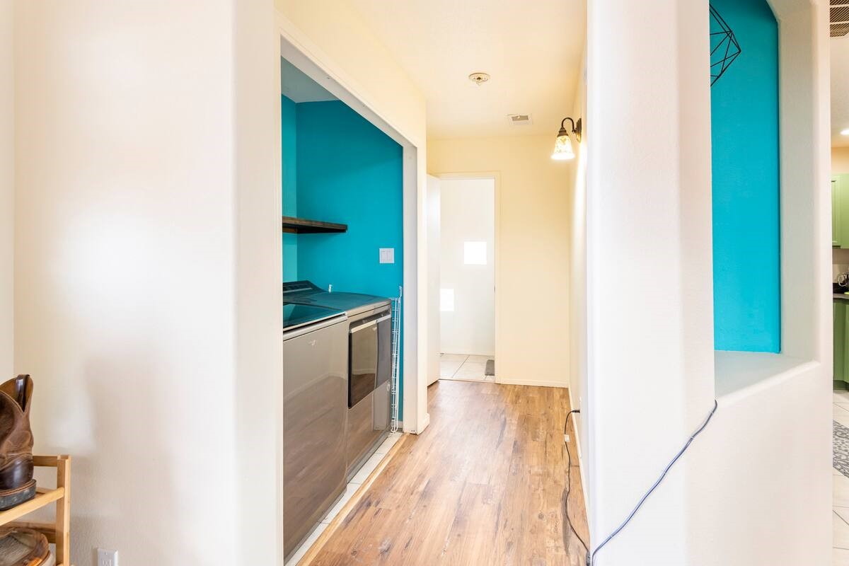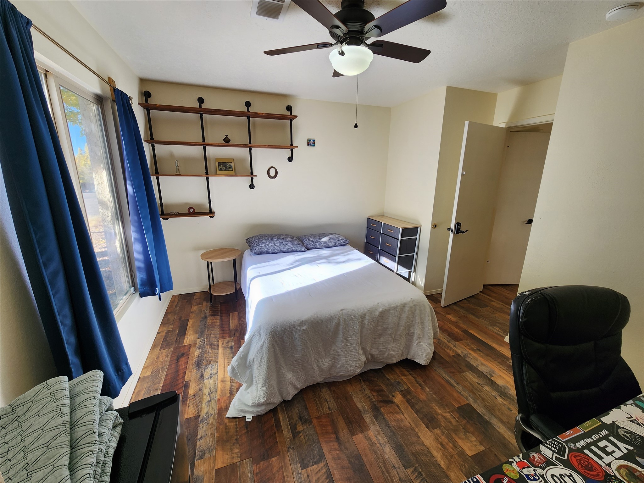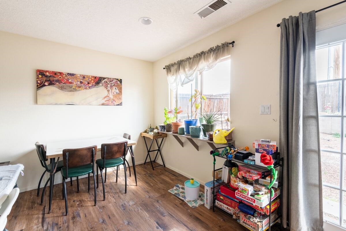 CHARMING SANTA FE pueblo style two-story on a desirable corner lot! Three bedrooms with a possible 4th for guests OR an office space for working at home in style! Special features like elegant nichos, a cozy gas fireplace and a fenced in dog run in your backyard make this one unique! The kitchen is a chef's dream with new Dekton counters and a deep farm sink. Recently installed life proof vinyl laminate flooring, 2023 water heater plus stylish fresh paint make the space feel modern and up to date. The open-concept floor plan seamlessly combines the living room with its inviting gas fireplace, a spacious kitchen, and a welcoming dining area - perfect for hosting gatherings and making lasting memories. All three bedrooms are thoughtfully positioned upstairs, ensuring privacy and tranquility. The primary bedroom has an ensuite bathroom and a convenient walk-in closet. Notably, this home is equipped with solar panels, contributing to remarkably affordable electric bills while promoting eco-friendliness. Keyless entry locks on both front and back doors, a fully fenced backyard and a detached two-car garage, ensure security and convenience. In the front yard, xeriscaping showcases low-maintenance landscaping, adding to the home's curb appeal. In addition, both front and back yards are equipped with a drip irrgation system making yard maintenance easy. Beyond the property's boundaries, wide-open spaces and nearby parks await, promising leisurely strolls and outdoor adventures for the whole family to enjoy. Enjoy the best of Santa Fe living today! Call now for a private tour and more info!