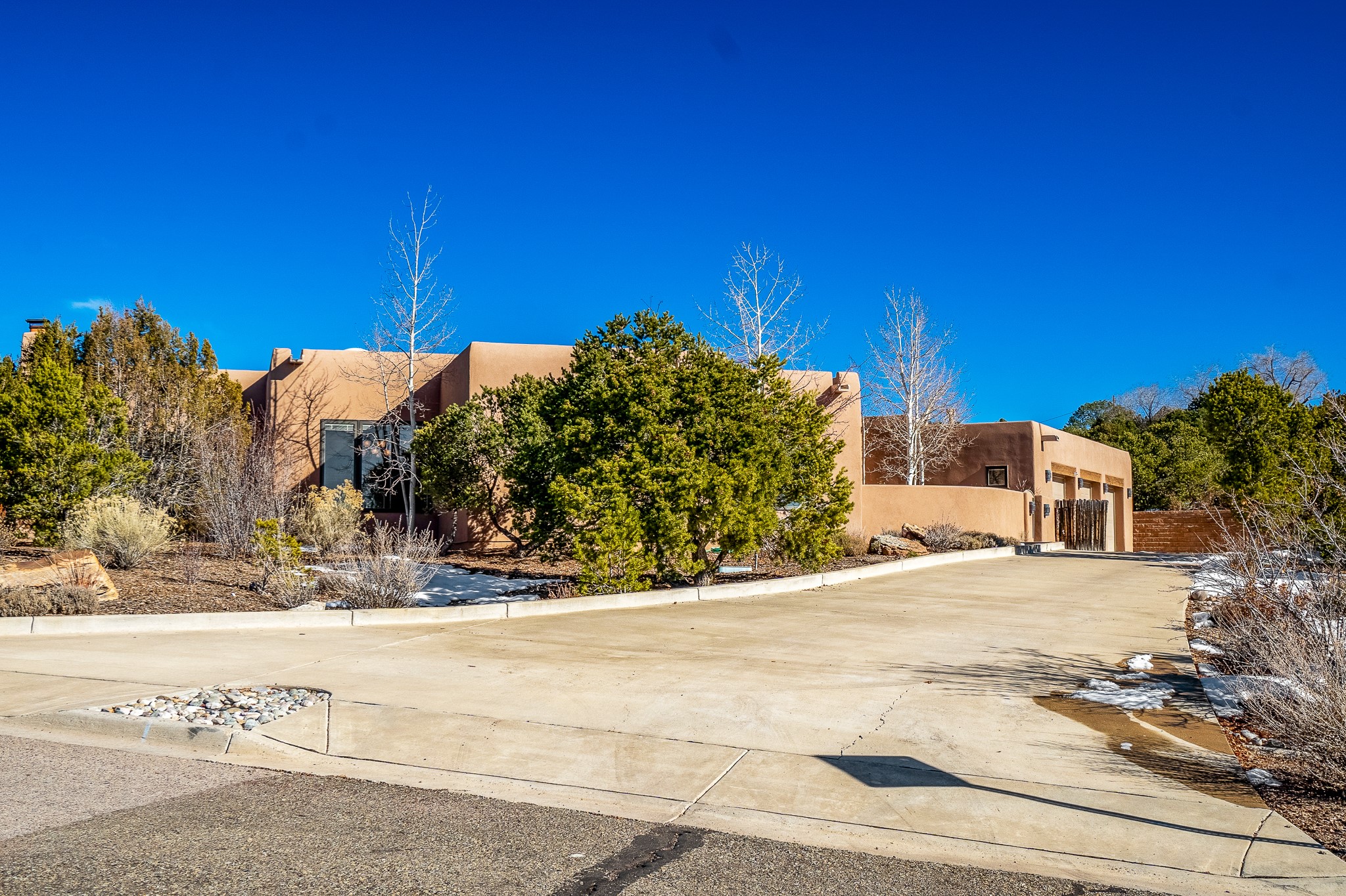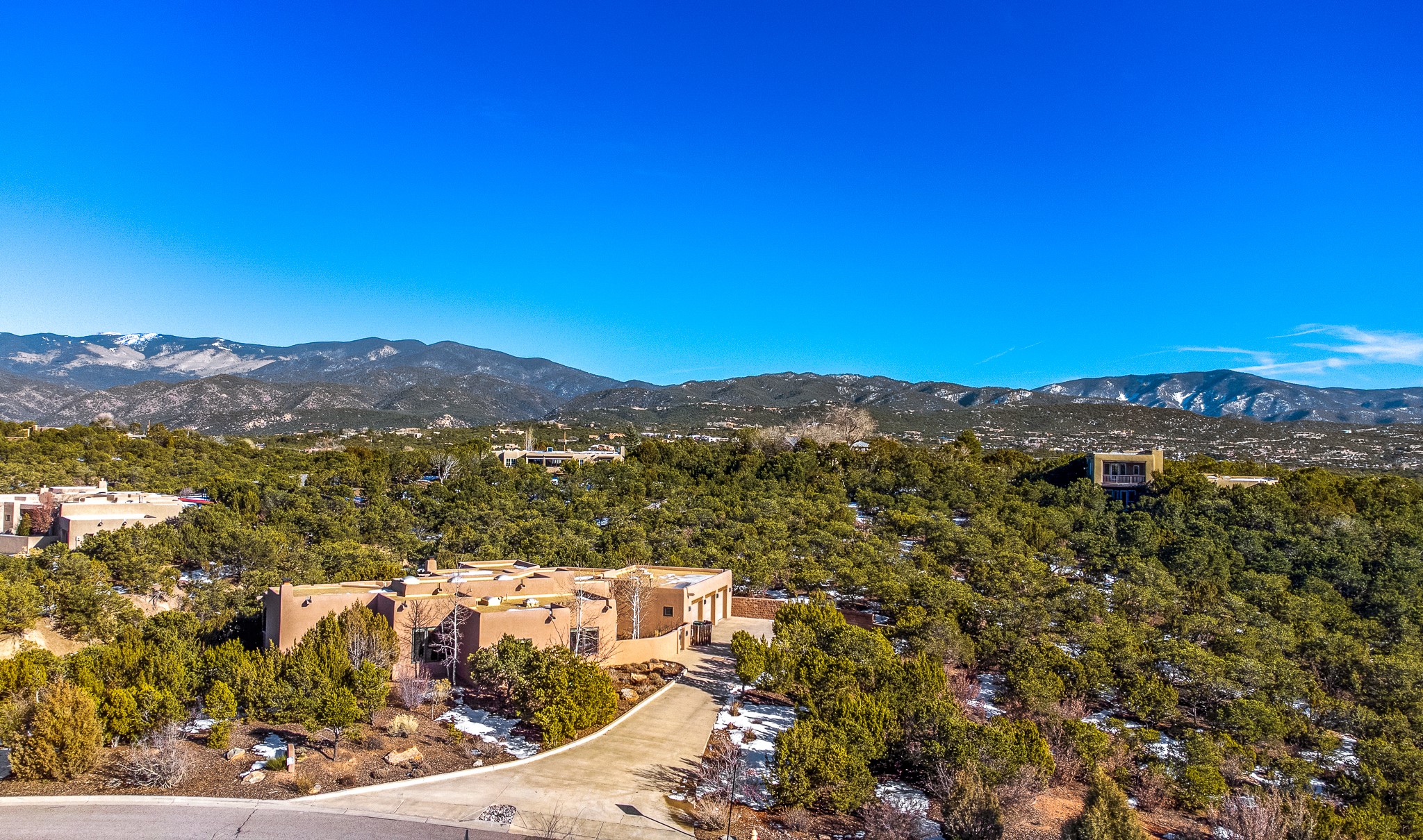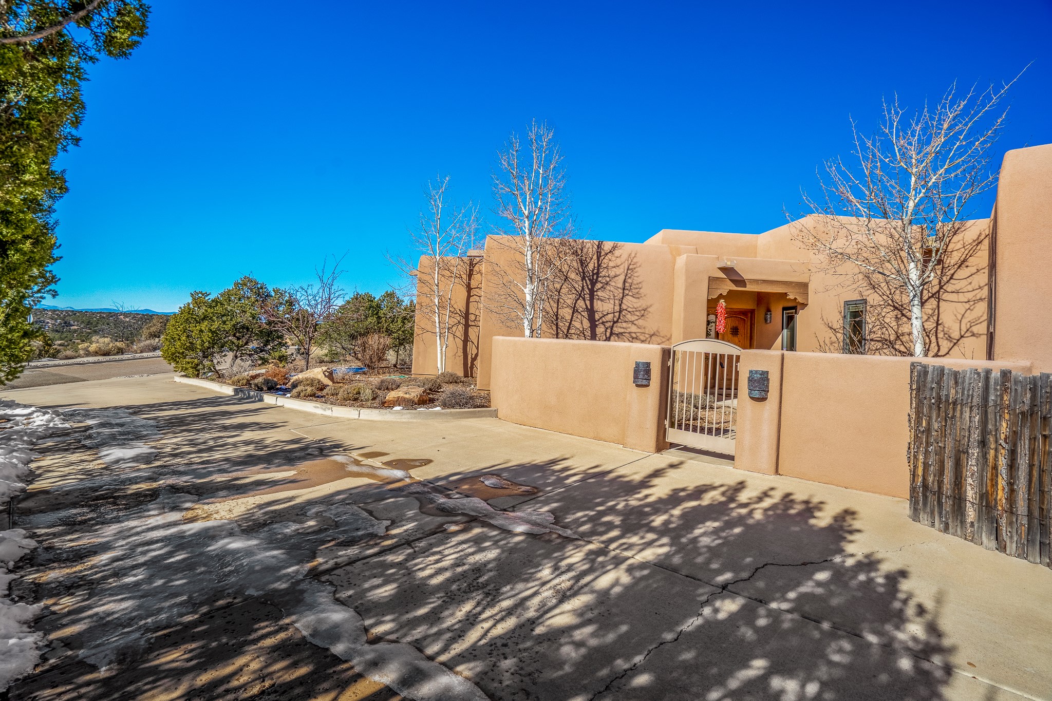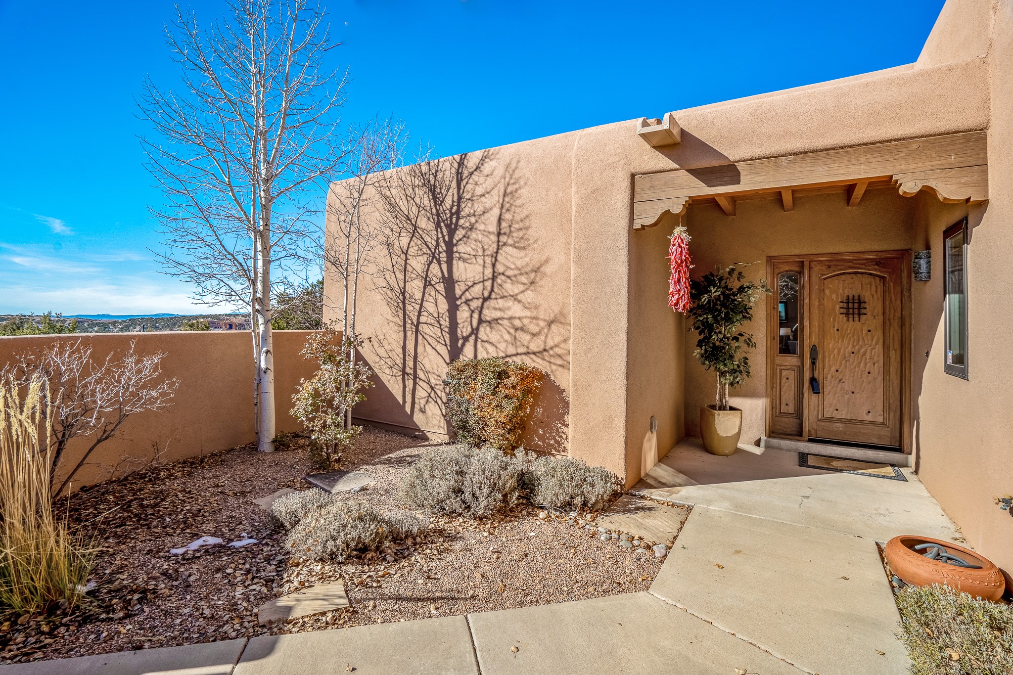 Elegant home on an almost 2 acre lot at the peak of the Las Estrellas with great views of the Sangre De Cristos and Jemez mountains. Just a few minutes from downtown Santa Fe, this is a warm and inviting home ready to move in and impeccably maintained by the original owner. Built in 2007 by Beverly Chapman, this three bedroom, three bath 2771 square foot home offers a spacious floor plan perfect for entertaining and comfortable living. The gourmet kitchen features high end appliances and granite countertops. With a private primary suite, two additional bedrooms and landscaped outdoor spaces, this home embodies the tranquility and elegance of Santa Fe living. The formal dining and living rooms and cozy den with kiva fireplace offer a variety of living spaces to share with your family and guests. The spacious three car garage has built in storage cabinets and ample workspace for projects. Whether you're sipping coffee in the morning or stargazing at night, this residence provides a front row seat to the natural beauty that defines Santa Fe. Embrace the serenity and awe inspiring vistas that make this property truly extraordinary.