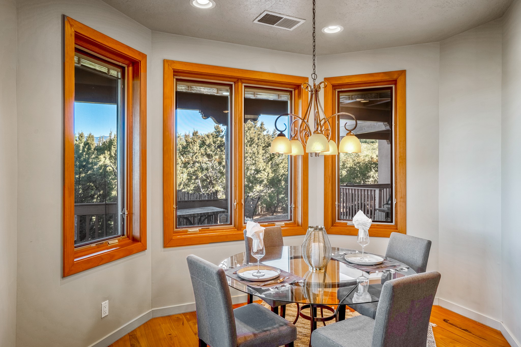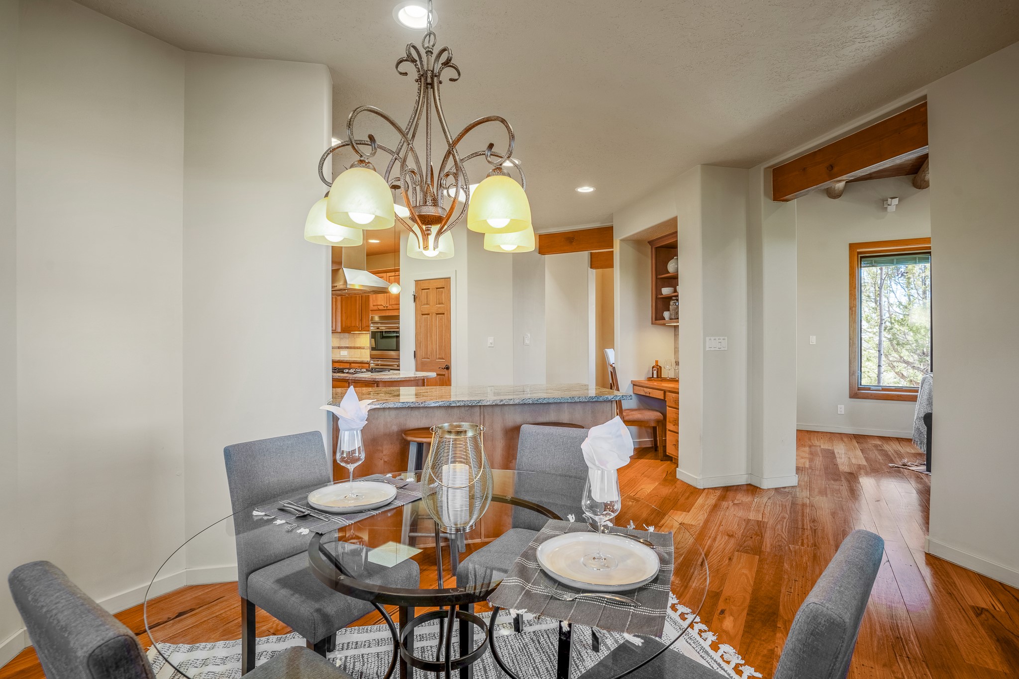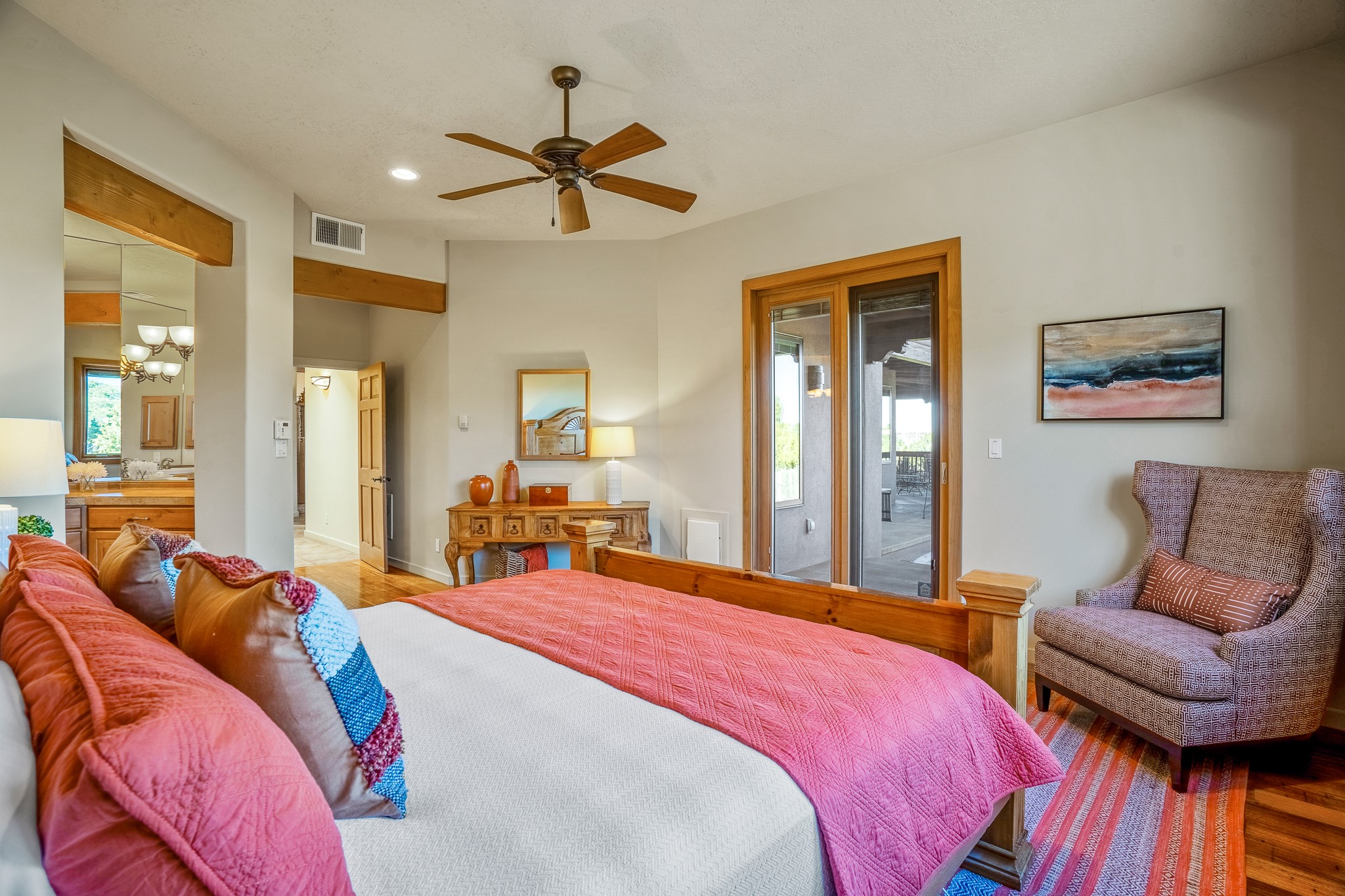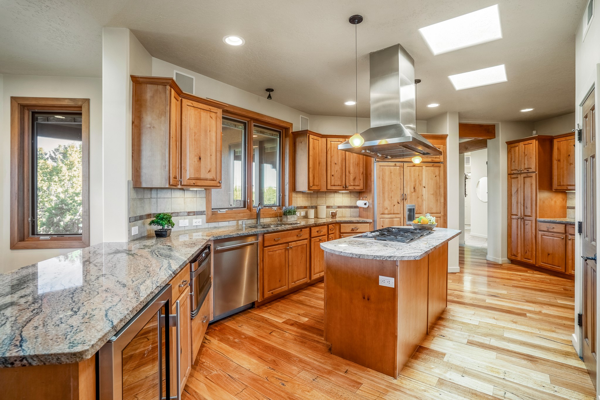 Elegant home on an almost 2 acre lot at the peak of the Las Estrellas with great views of the Sangre De Cristos and Jemez mountains. Just a few minutes from downtown Santa Fe, this is a warm and inviting home ready to move in and impeccably maintained by the original owner. Built in 2007 by Beverly Chapman, this three bedroom, three bath 2771 square foot home offers a spacious floor plan perfect for entertaining and comfortable living. The gourmet kitchen features high end appliances and granite countertops. With a private primary suite, two additional bedrooms and landscaped outdoor spaces, this home embodies the tranquility and elegance of Santa Fe living. The formal dining and living rooms and cozy den with kiva fireplace offer a variety of living spaces to share with your family and guests. The spacious three car garage has built in storage cabinets and ample workspace for projects. Whether you're sipping coffee in the morning or stargazing at night, this residence provides a front row seat to the natural beauty that defines Santa Fe. Embrace the serenity and awe inspiring vistas that make this property truly extraordinary.