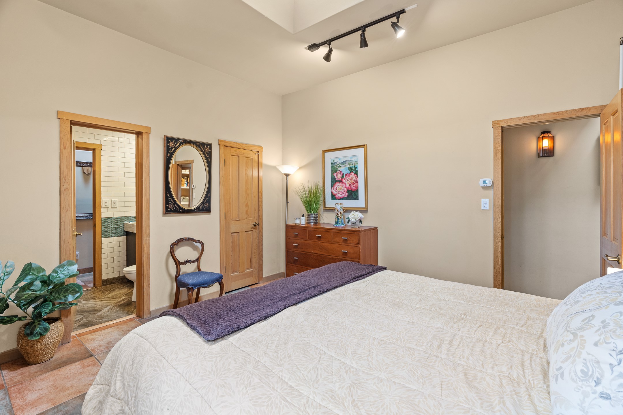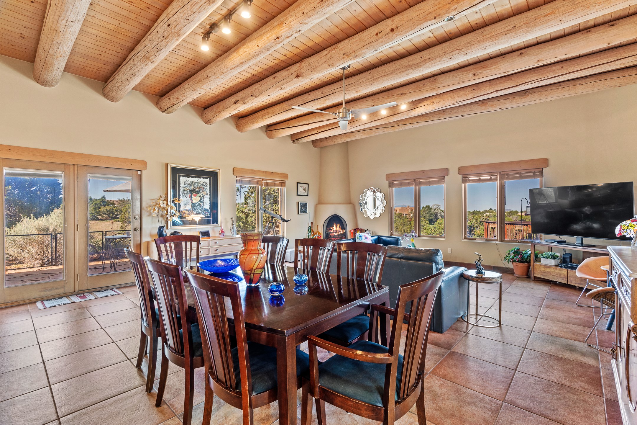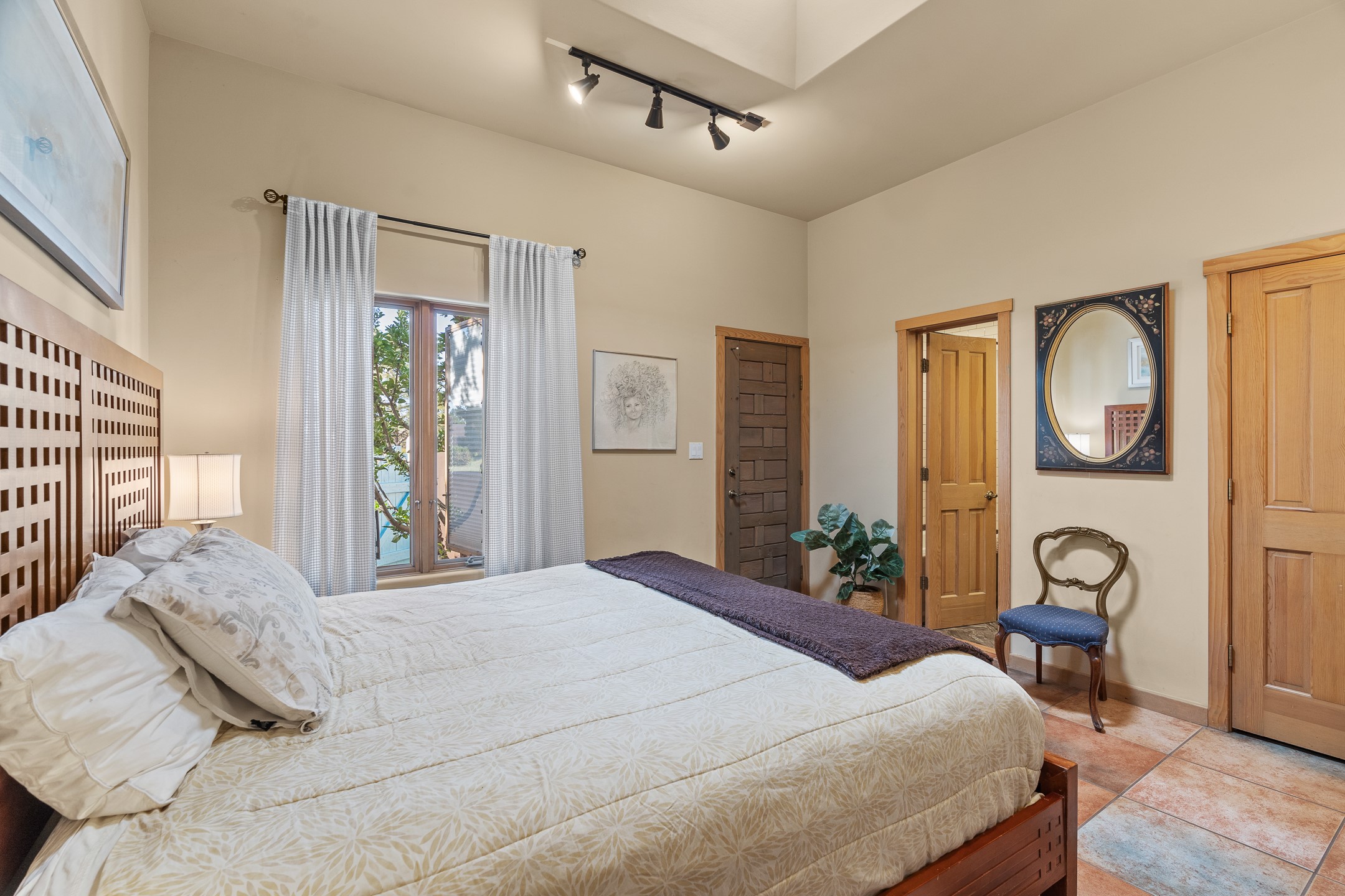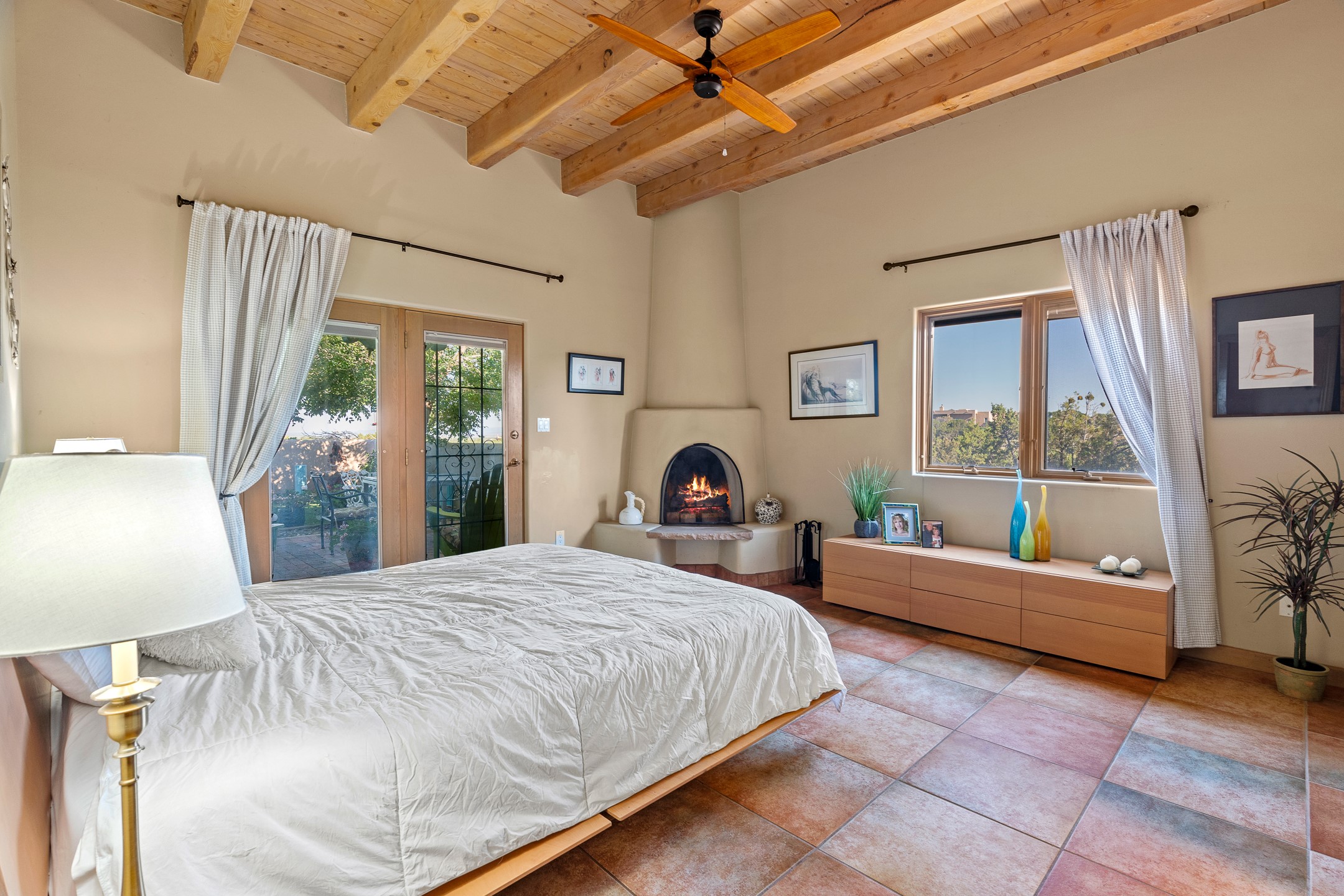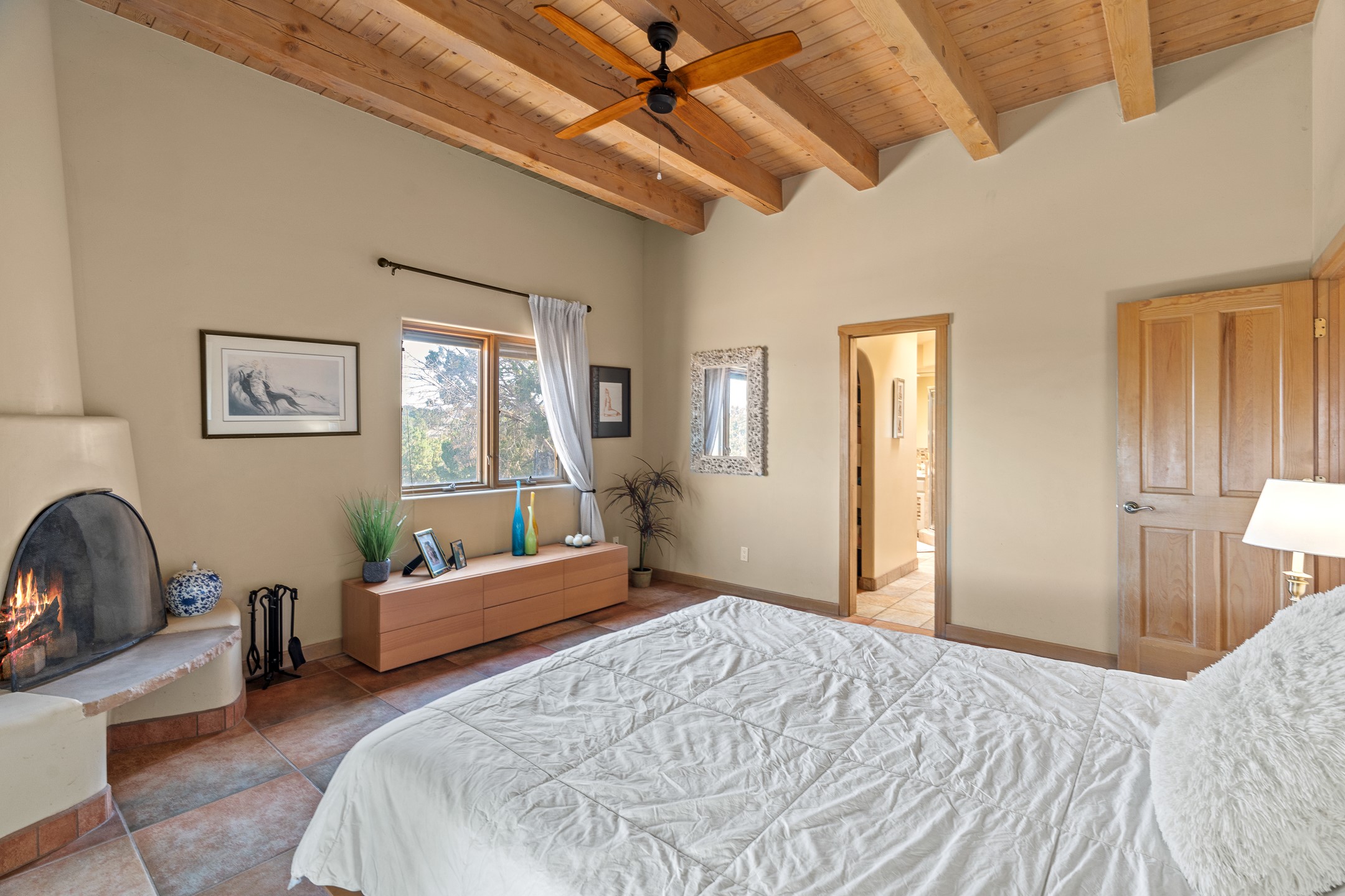 A hidden gem nestled at the end of the cul-de-sac! As soon as you walk in the door, you can feel the quality of craftsmanship and the care that has been put into this property. The formal entryway provides the perfect introduction to a large open concept living room with high ceilings, beautiful vigas and a view towards the chef's kitchen, which features granite countertops, custom pull-out drawers, and high end appliances. From the living room and primary bedroom windows, your eye travels to distant mountains. A unique and sensible floorplan, there are two guest bedrooms each with their own outdoor access. There is also an office space that is currently being used as a painting studio, with a newly added bathroom as well. The primary suite is large and cool, with wonderful closet space, and features "his" and "hers" sinks in the primary bathroom. This home would be ideal for anyone who had family members or guests coming to stay, as each would have their own entrance if desired. The meticulously manicured grounds will please even the most discerning buyers. The exterior wood and stucco have just been painted. The current sellers have pruned the trees and underbrush throughout the property. There is even a viewing deck that showcases the surrounding mountain ranges! Don't miss this absolute gem of a property. Schedule a showing today!