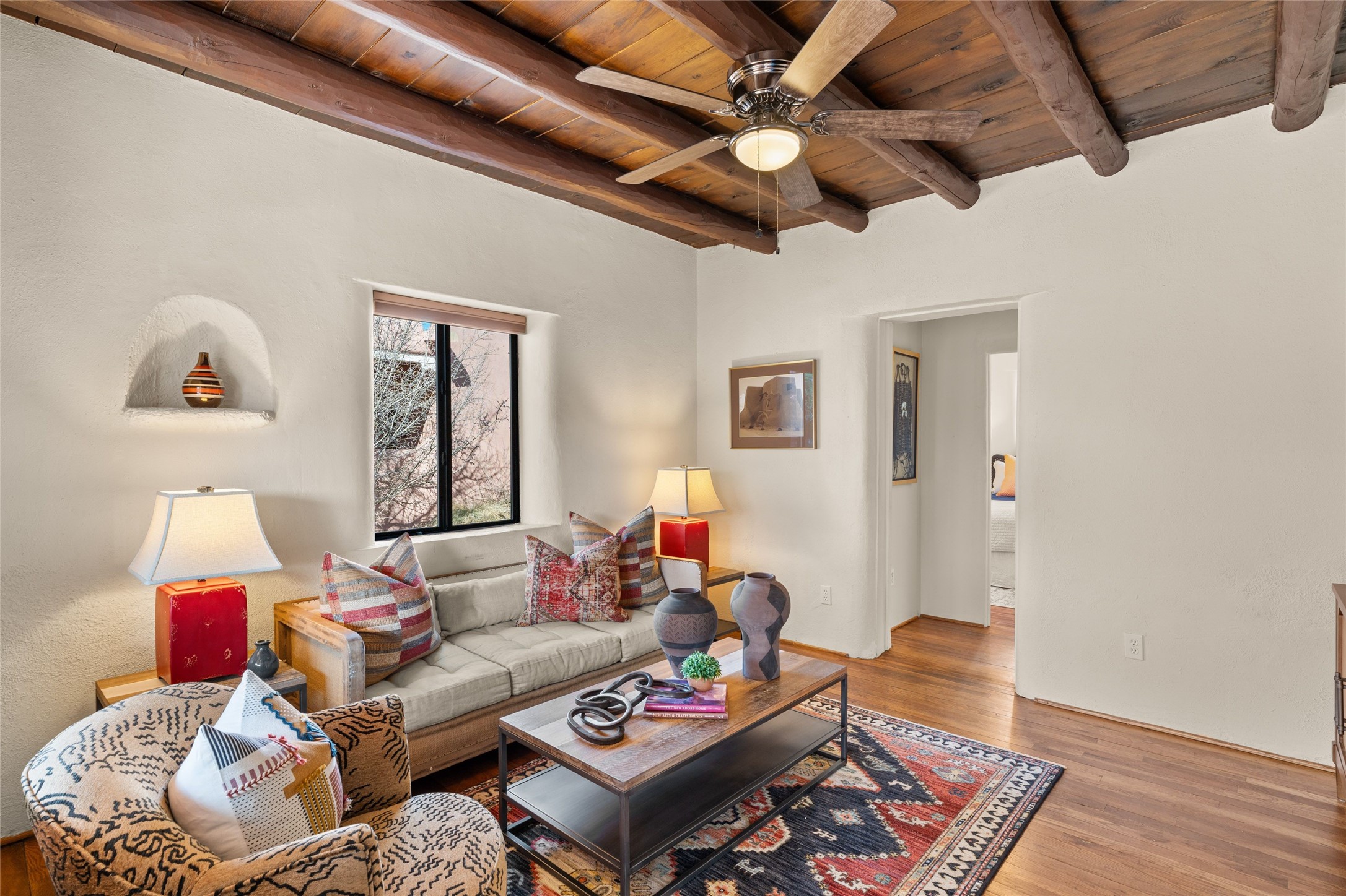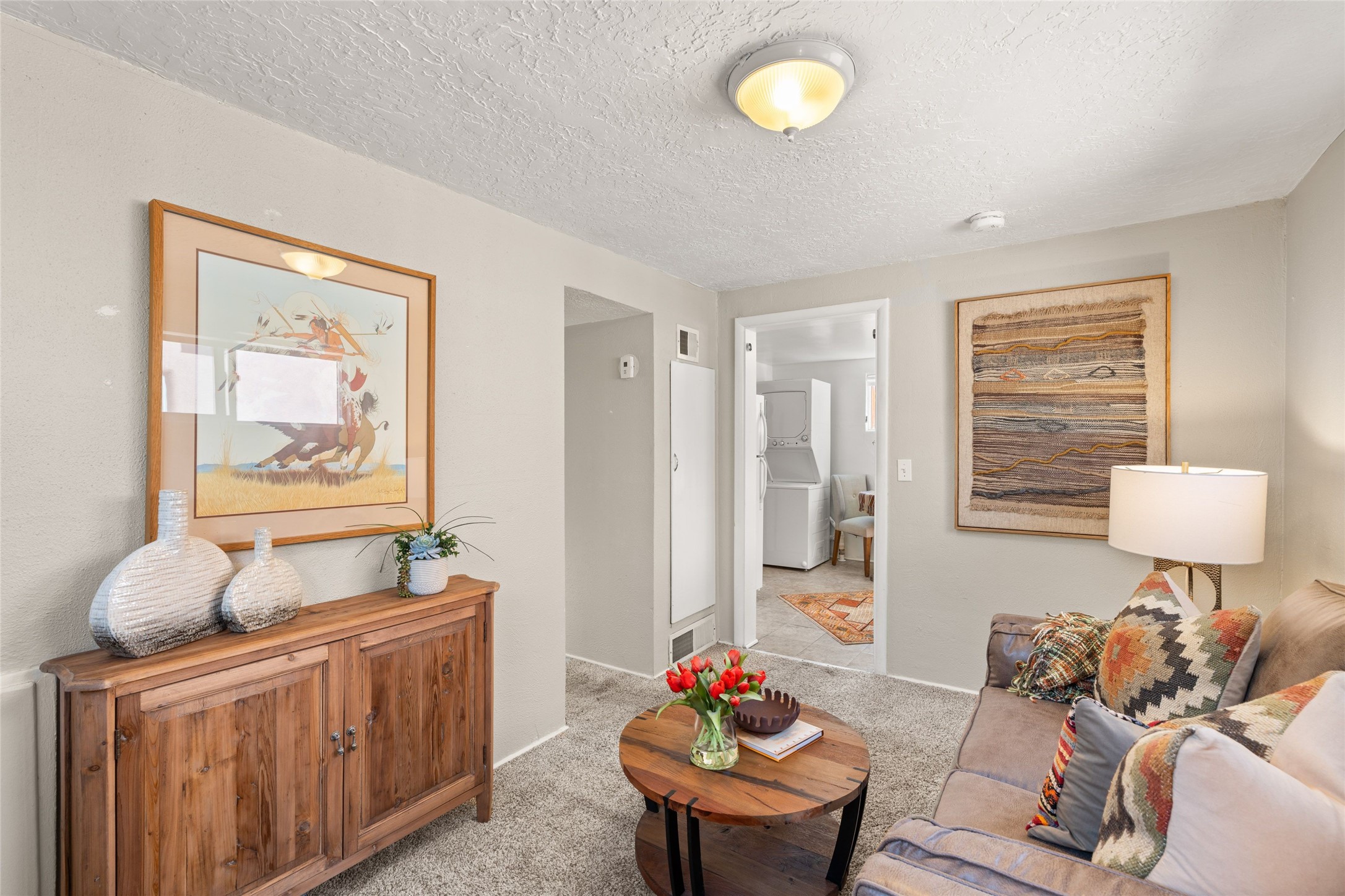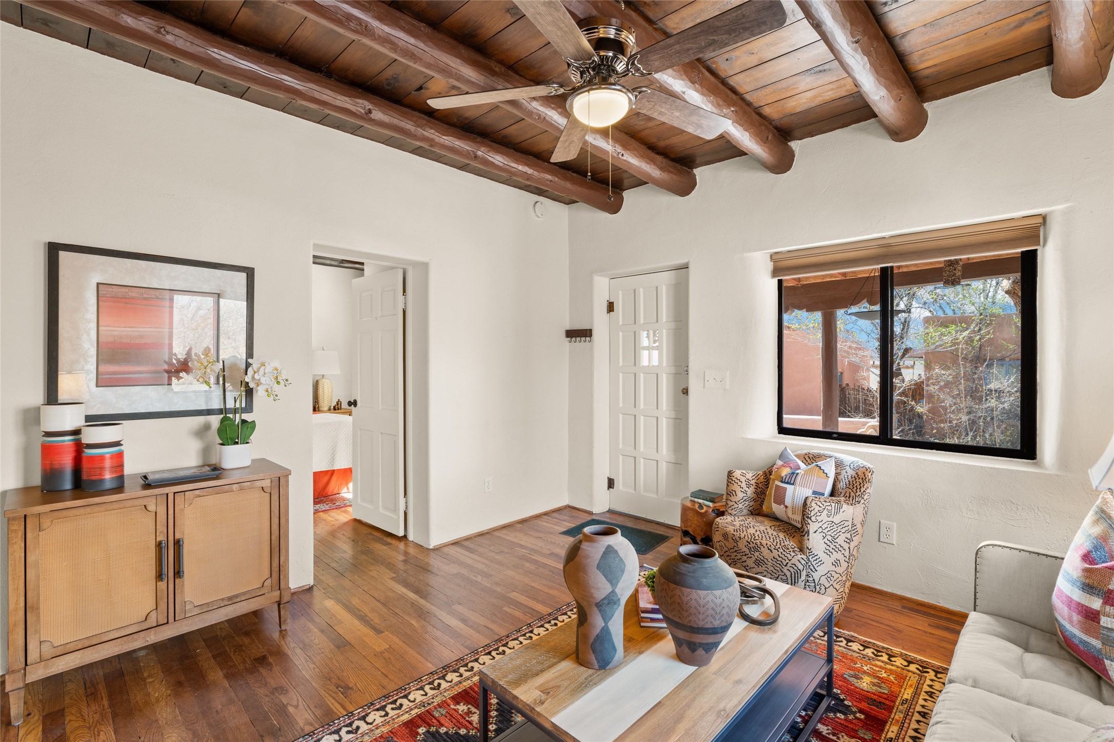 Come see this gem in the heart of historic Santa Fe. A casa and casita loaded with character and charm located on one of the most compelling and walkable streets in South Capitol is available for sale. Main house built in 1940 and consists of a lovely living room with original vigas, 2 bedrooms, a full bathroom and kitchen with new stainless steel appliances. Behind the main home sits a private lovely court yard and a separate guest house. The guest house, built in 1960, consists of a living room, full bathroom, bedroom, and kitchen. Both the casa and casita are heated with forced air heat and contain a stackable washer and dryer. One private off street parking space. This little gem is your private Santa Fe sanctuary, surrounded by trees and flowers while still close to everything.