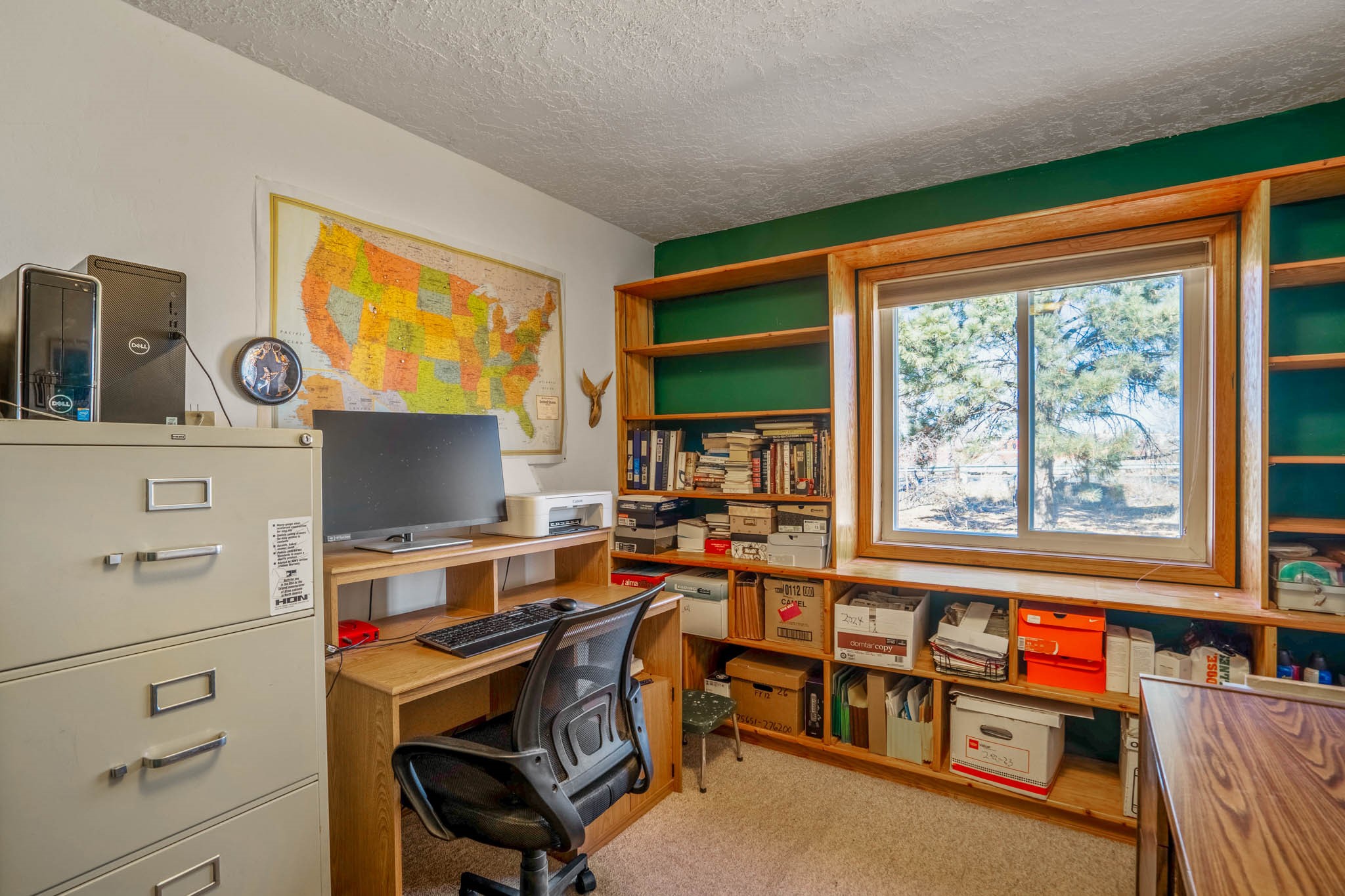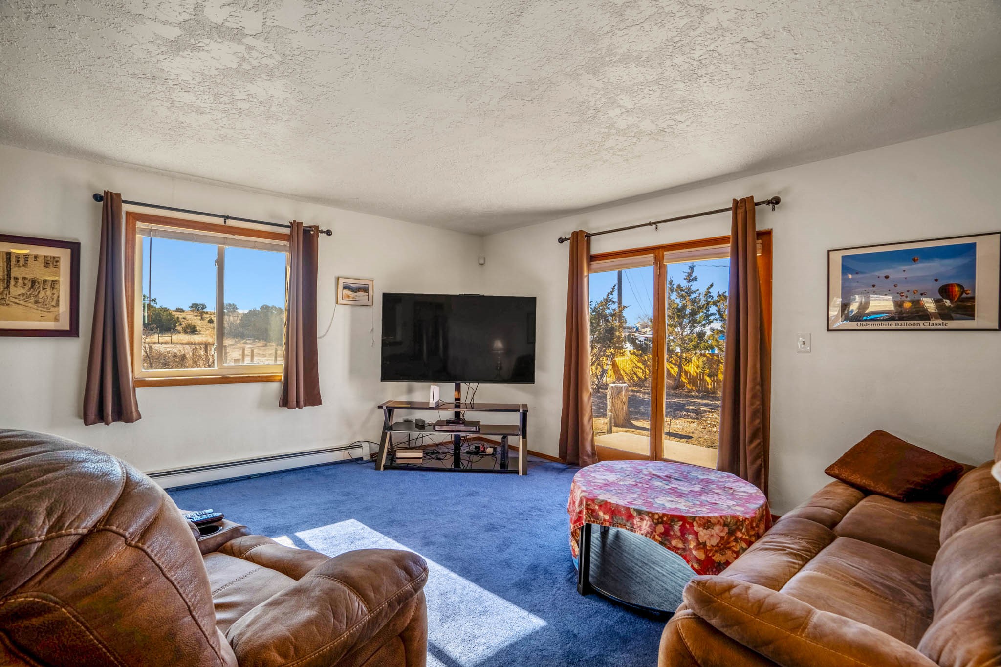 Welcome to your country home on the outskirts of Santa Fe. This charming property offers just over 2,000 square feet of living space, featuring 4 bedrooms, 3 bathrooms, and two living areas (or living area and flex space) that provide plenty of room to relax and entertain. A 2-car garage offers convenient parking, while the approx. 1000 sqft detached, heated garage--previously used as a workshop--adds extra versatility for hobbies or storage.Situated on 3 beautiful acres, the property is surrounded by mature shade trees, creating a peaceful atmosphere with distant mountain views. The stables provide an excellent opportunity for horse lovers or those looking for additional outdoor space. Recent updates in the past four years include a newer bitumen roof, 2-inch insulation foam installed around the house and garage, fresh plaster and stucco applied to the house, garage, and perimeter wall, and new Pella windows. The home also features a new boiler and water heater, vinyl flooring in the kitchen, and a newly installed dog-eared fence in the backyard, offering privacy and security.Conveniently located just minutes from I-25, 599, and Highway 14, this home provides easy access to nearby a hospital, schools, shopping and dining options, making it the perfect blend of country charm and modern convenience.For sale only, no leases.