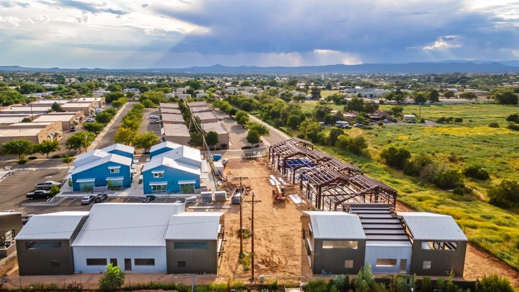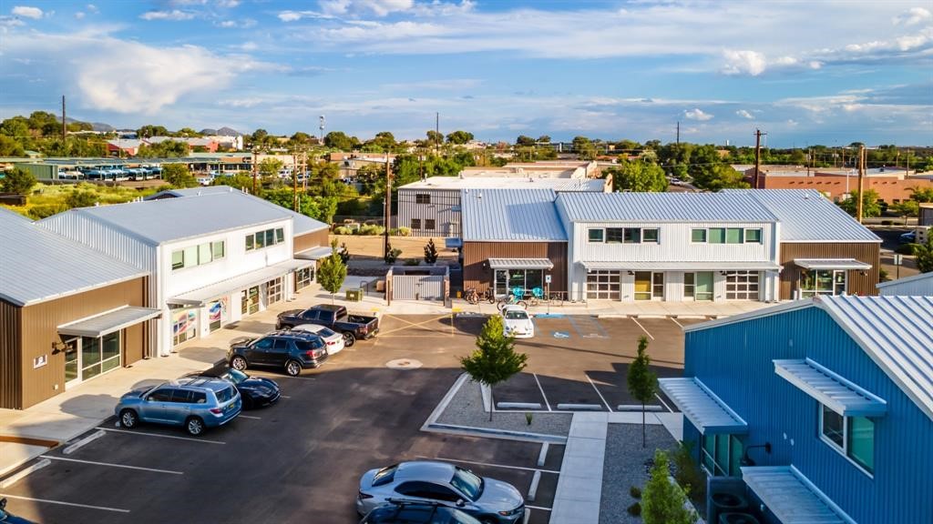 The Studios at Parkway Phase 2, currently under construction, is Santa Fe's newest commercial, industrial, and flex-use condominium development in the thriving Siler/Rufina Warehouse, Art & Innovation District.Designed with an industrial aesthetic, The Studios offer open, light-filled spaces with contemporary touches that create an inspiring environment for business. Each unit spans nearly 1,677 square feet, including 1,587 square feet of interior space ("walls in"), and features tall ceilings, large aluminum glass roll-up garage doors, expansive storefront windows, and finished concrete floors. Inside, you'll find LED lighting, handcrafted steel staircases with wood treads, and smooth drywall finishes. The ground floor encompasses 1,092 square feet, while the second story adds 584 square feet.These units are designed with flexibility in mind, with an option for Live-Work as an accessory to commercial use. Each unit has separately metered utilities, kitchen-ready hookups, a designated area for a shower, and thoughtfully landscaped grounds tailored for shipping and receiving. Zoned I-1, these state-of-the-art condominiums are suitable for a range of uses, from offices, galleries, and artist studios to warehouses, wellness businesses, and light industry. Additionally, the roof is prepared for solar PV installation, and the property is located in a Federal Opportunity Zone.