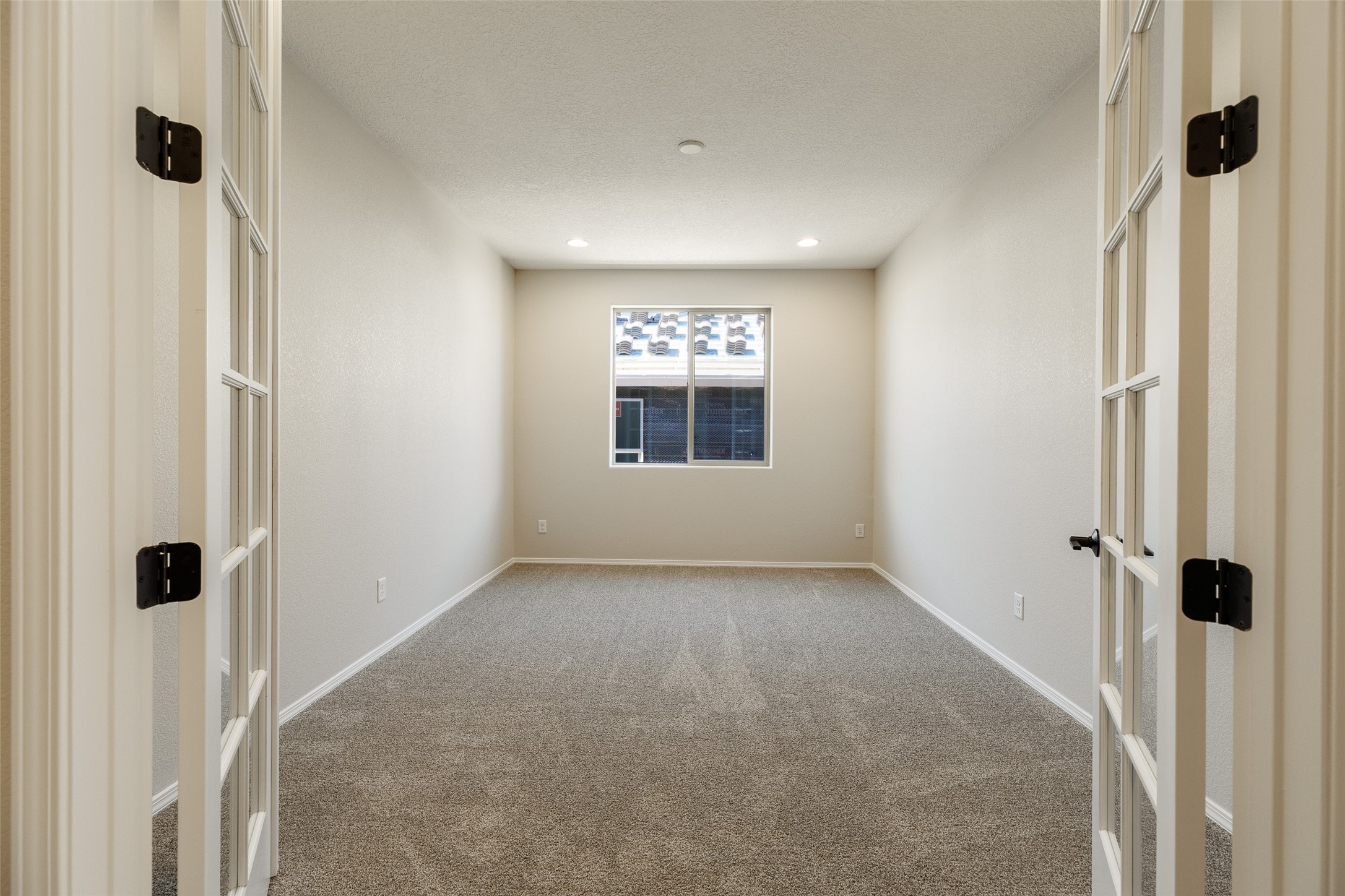 Step into this exceptional single-story home, where elegance meets functionality. The expansive covered patio provides the perfect outdoor retreat for relaxation or entertaining. Inside, the heart of the home features a huge kitchen island, paired with upgraded white cabinets that offer timeless style and ample storage. Cozy up by the fireplace in the inviting living area, and retreat to the owner's suite, complete with a framed walk-in shower for a spa-like experience. A spacious office with French doors is ideal for productivity or quiet reflection. The home's thoughtful design continues with a tray ceiling in the entryway, adding a touch of sophistication, and elegant 8-foot interior doors, enhancing the sense of space throughout. This home is truly a blend of luxury and comfort, perfect for making lasting memories.