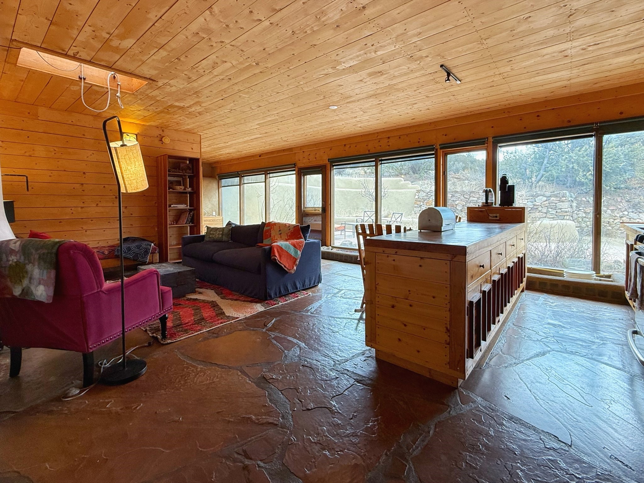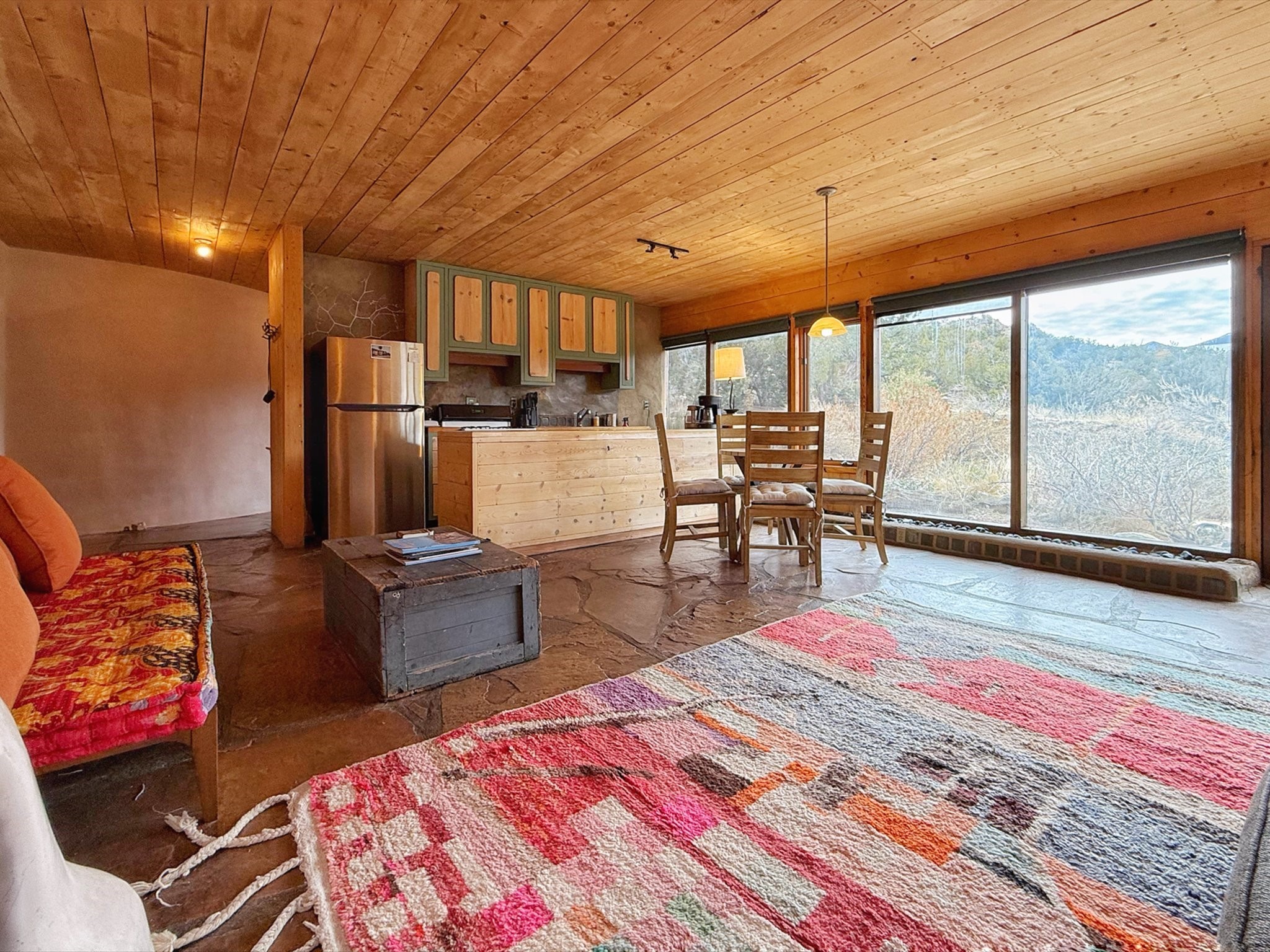 Discover a true masterpiece of sustainable living with this remarkable Earthship, designed and built by the renowned Michael Reynolds. This off-grid oasis embodies innovative eco-design and self-sufficiency, offering a rare opportunity to live in harmony with nature in the breathtaking landscape of Cerrillos, New Mexico. This 2 Bedroom 2 Bath Earthship is Surrounded by expansive views and endless skies, a unique blend of artistry and functionality, utilizing natural and reclaimed materials to create a home that is both energy-efficient and environmentally conscious. If you've ever dreamed of embracing a sustainable lifestyle without compromising comfort, this property is your perfect match. Don't miss the opportunity to own an Earthship!